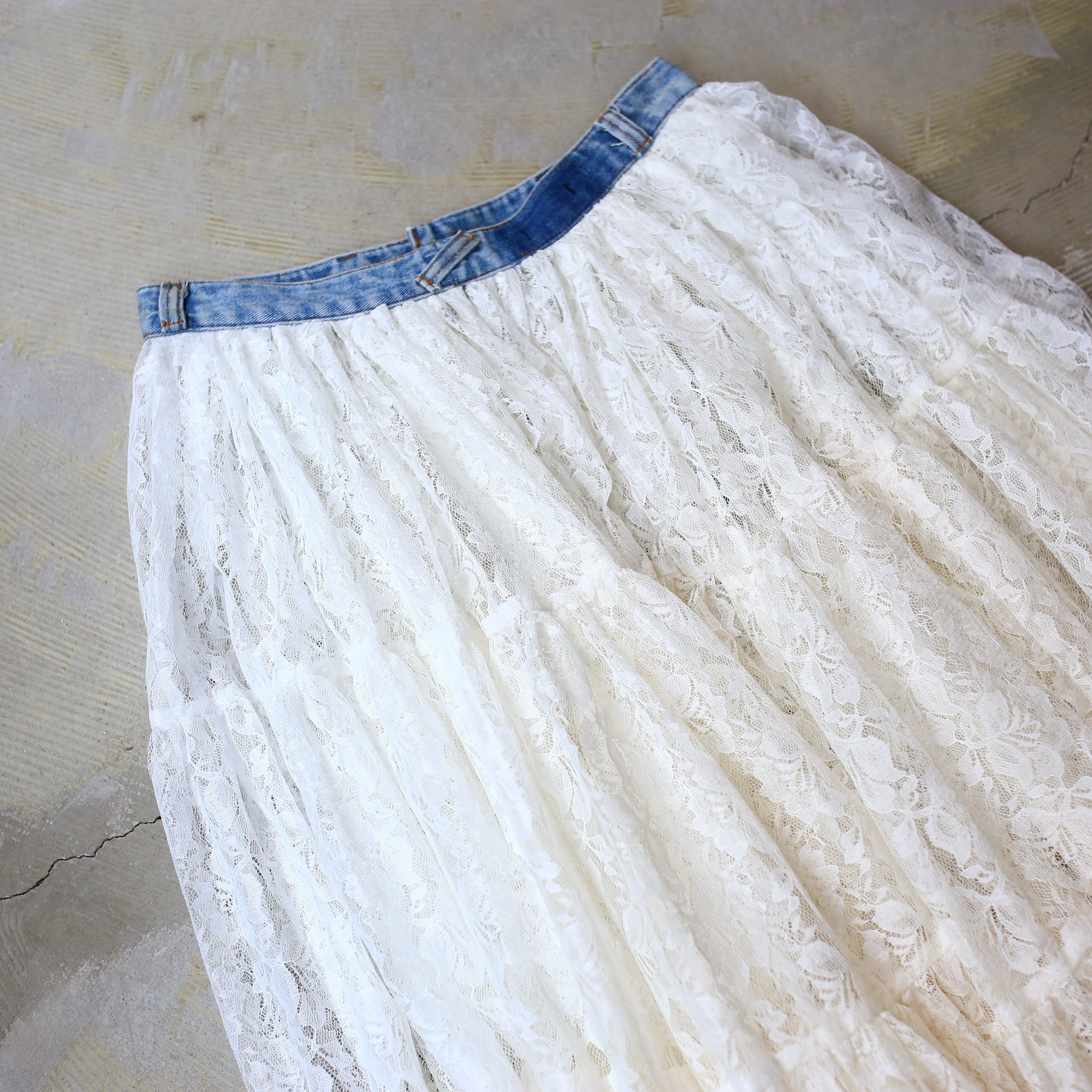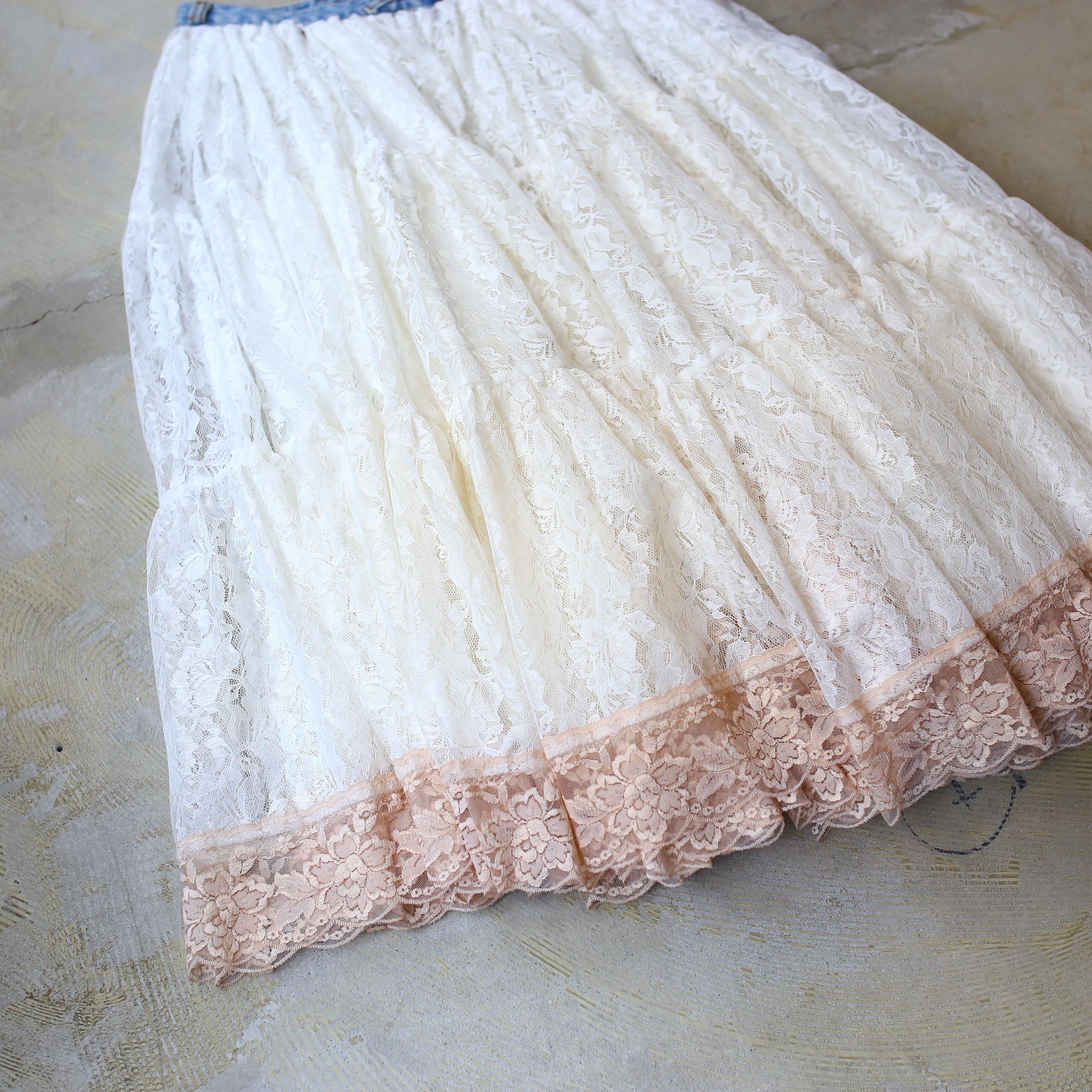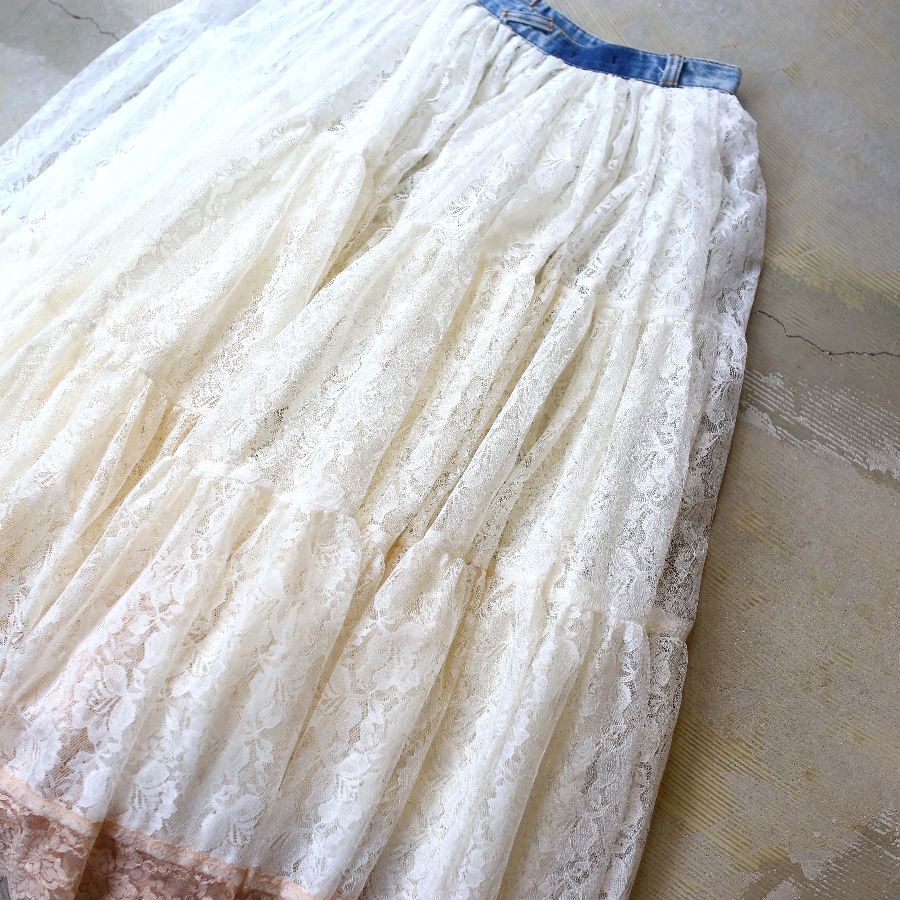 【DE:CODE】BOTANICAL LACE TEA DYEING FLARE SKIRT / リメイク フレア ティアード スカート