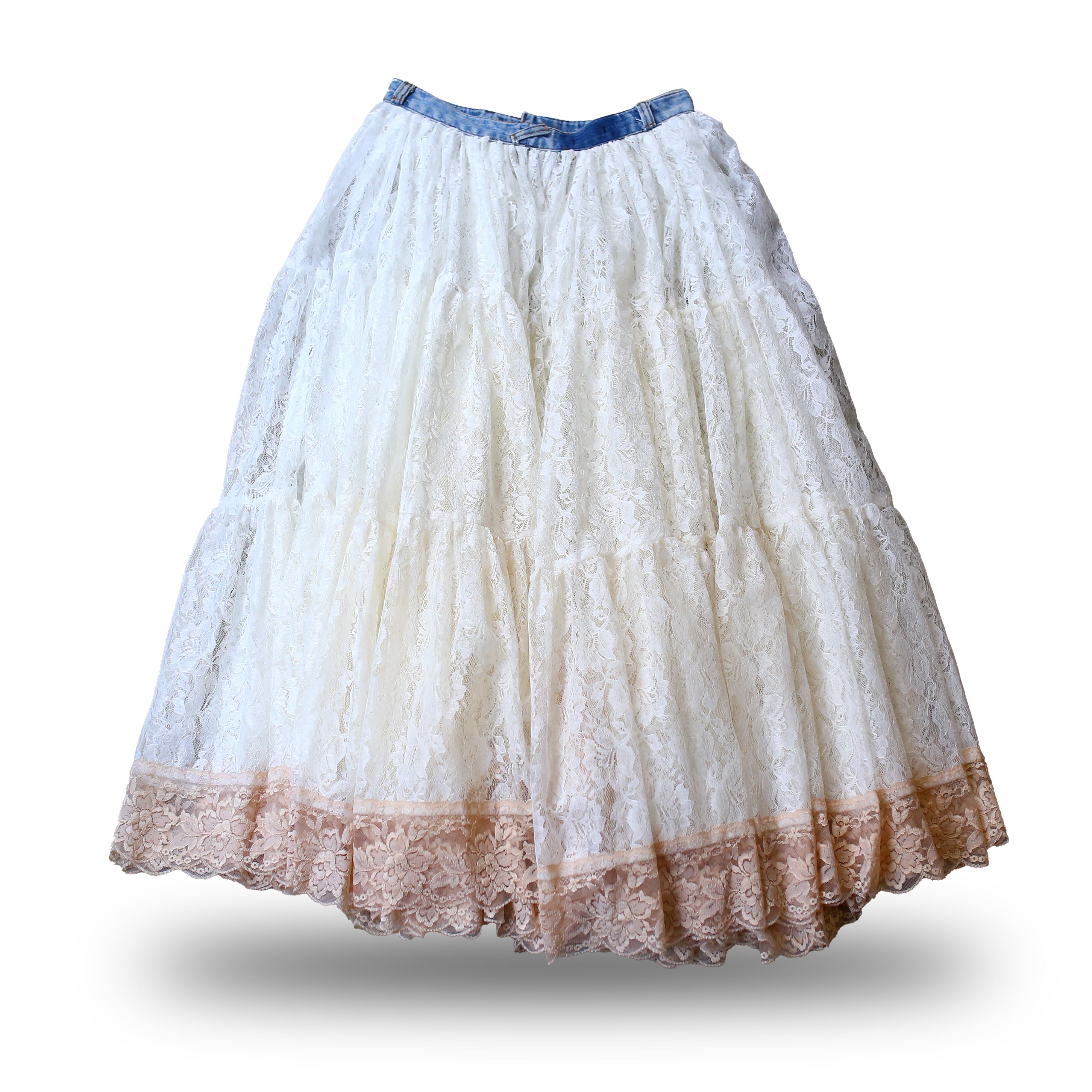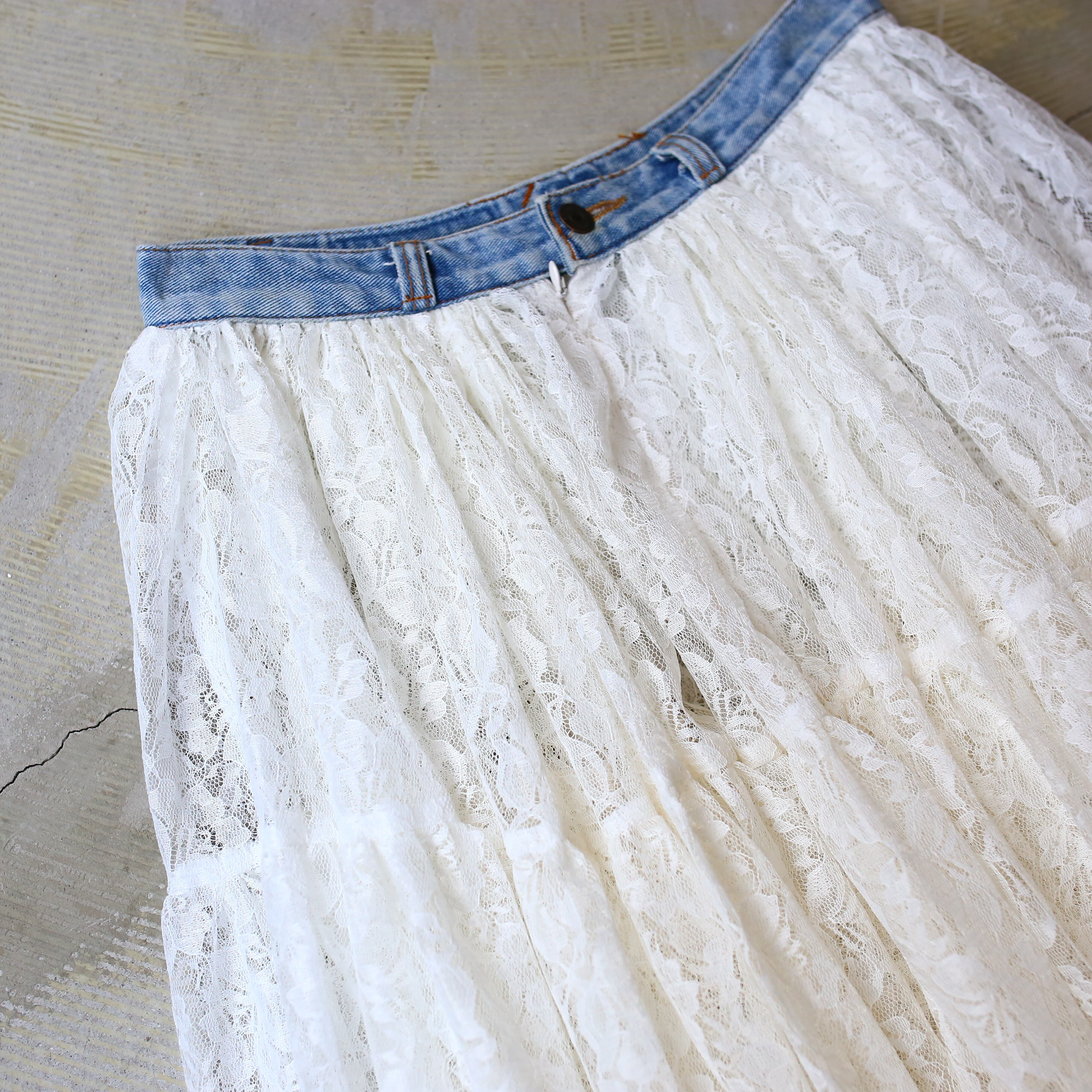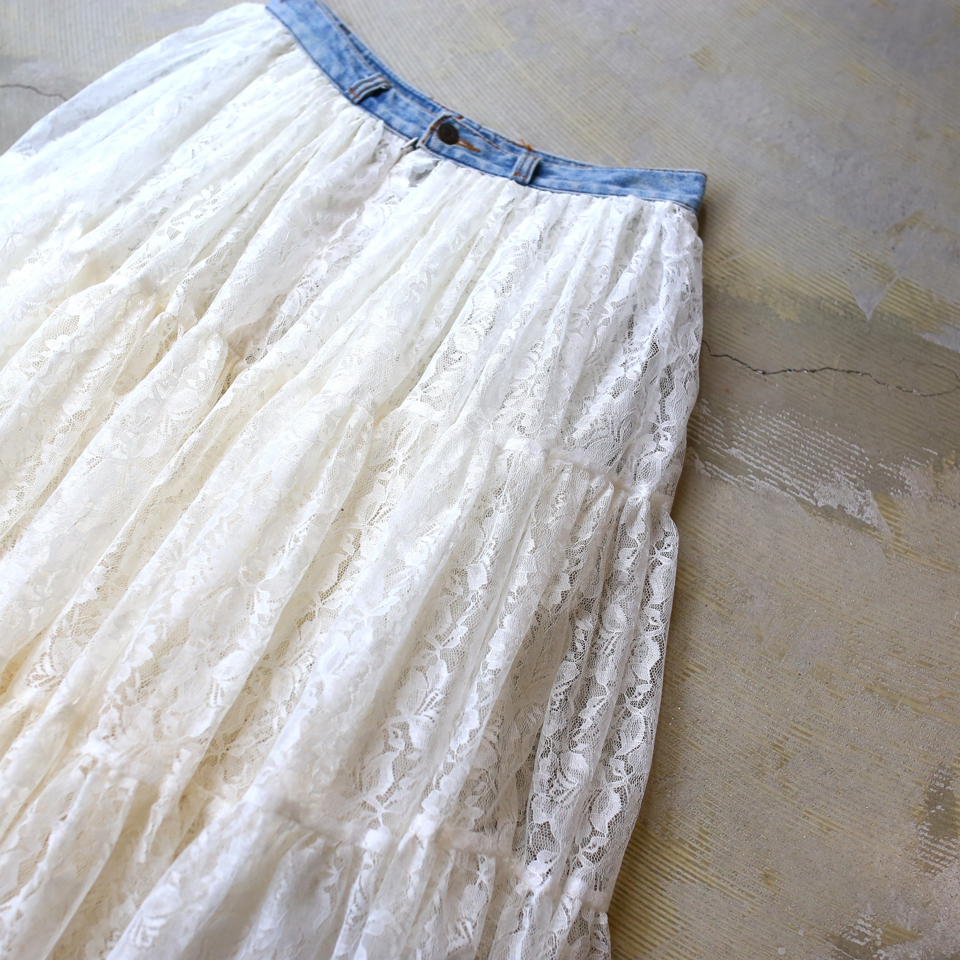 【DE:CODE】BOTANICAL LACE TEA DYEING FLARE SKIRT / リメイク フレア ティアード スカート