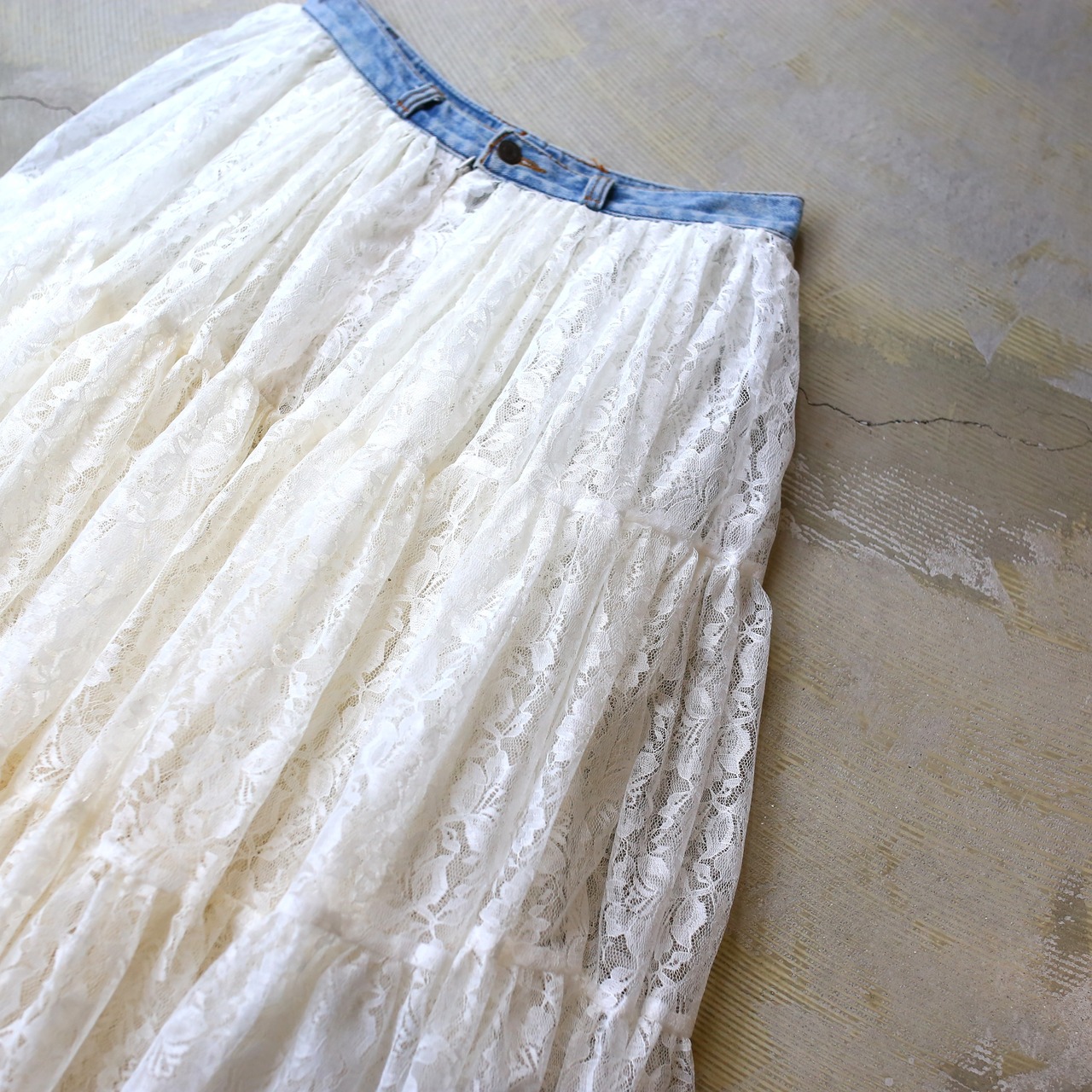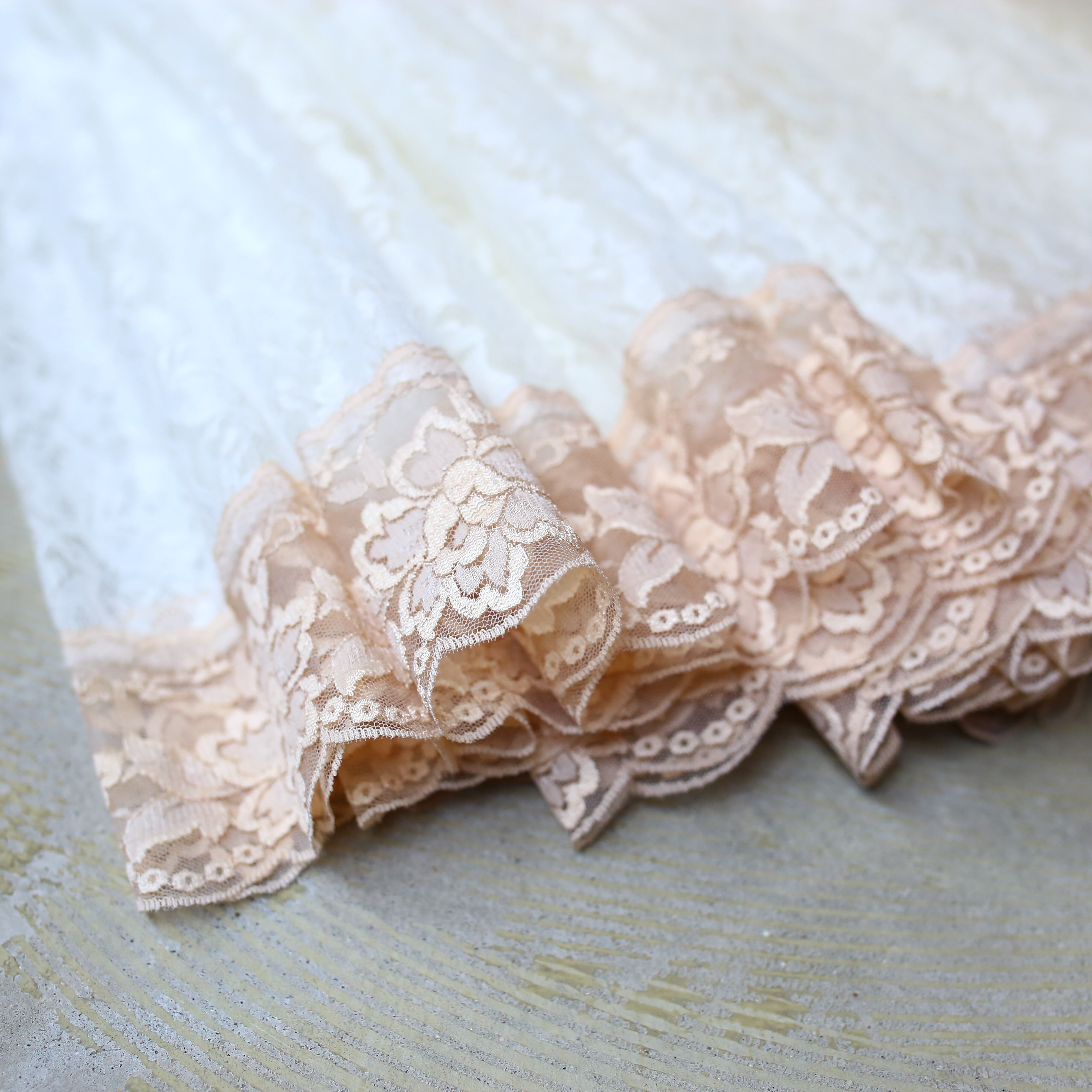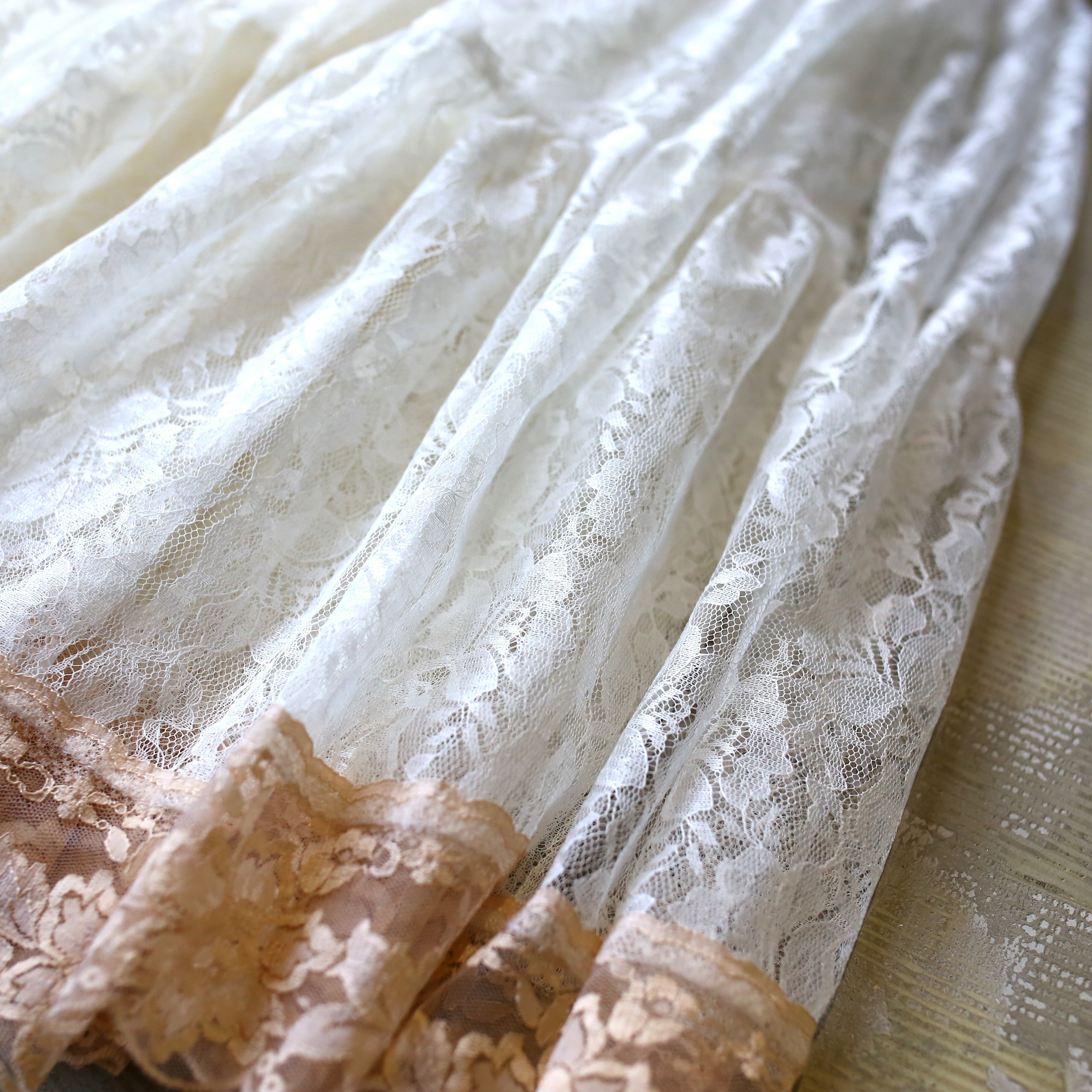 裾には同様のレースに紅茶染めを施した仕様で