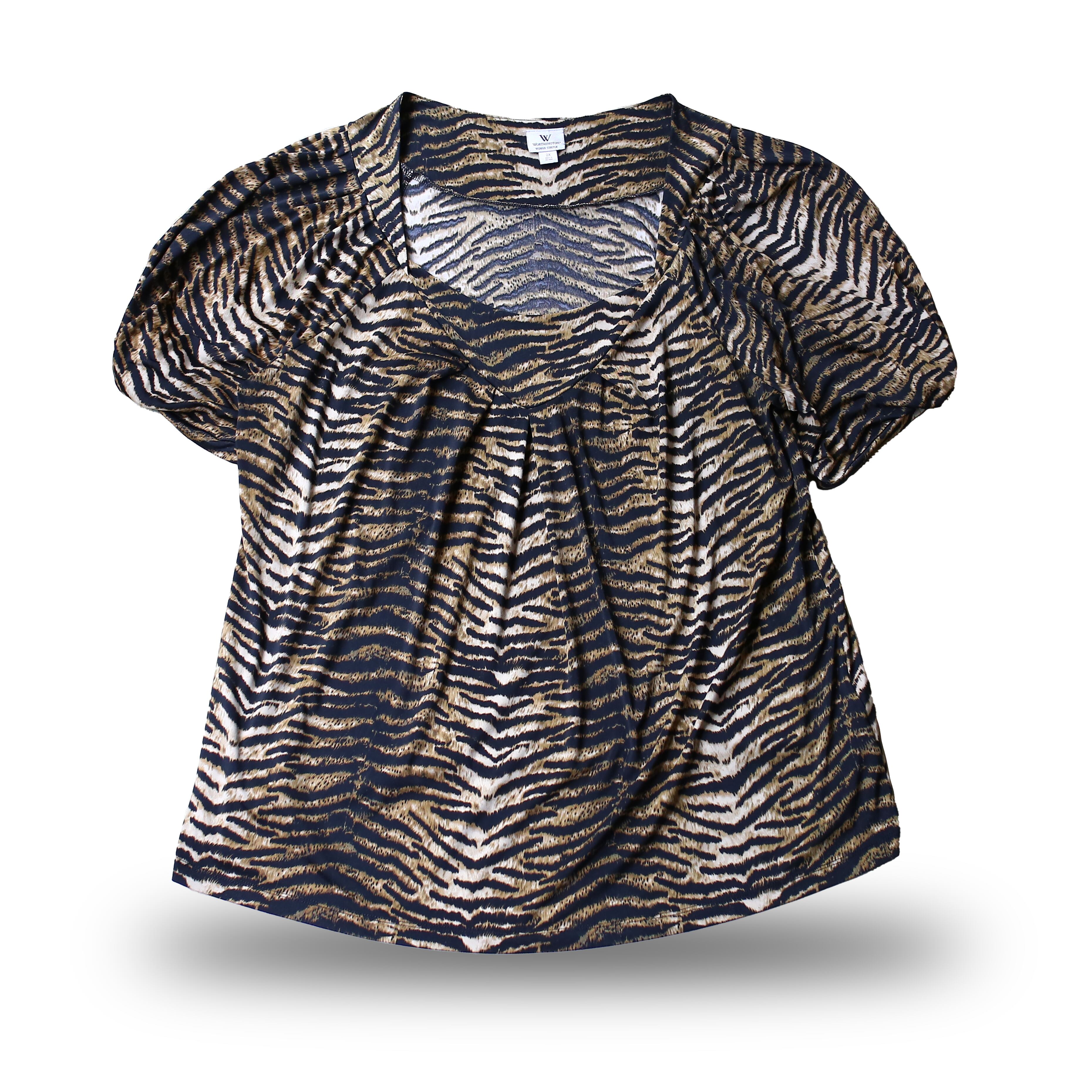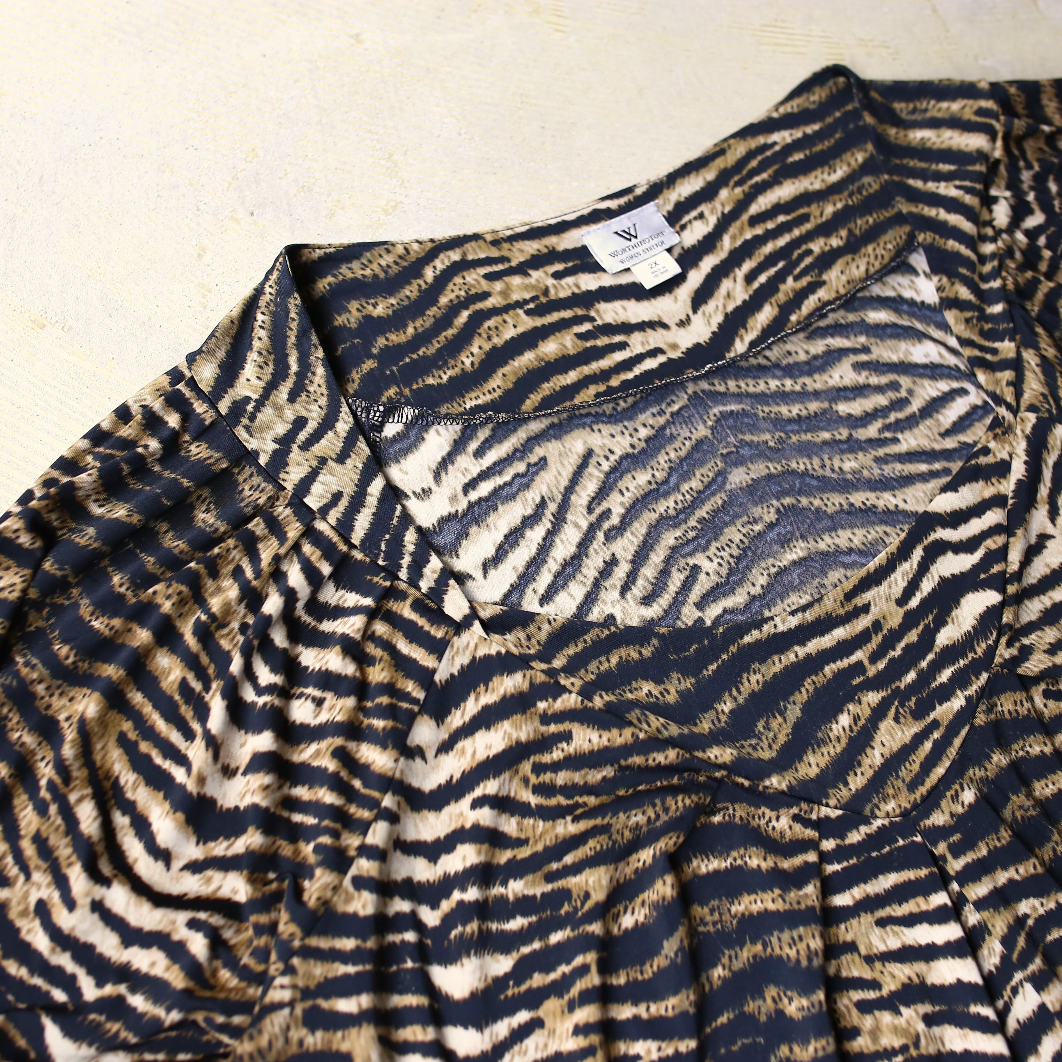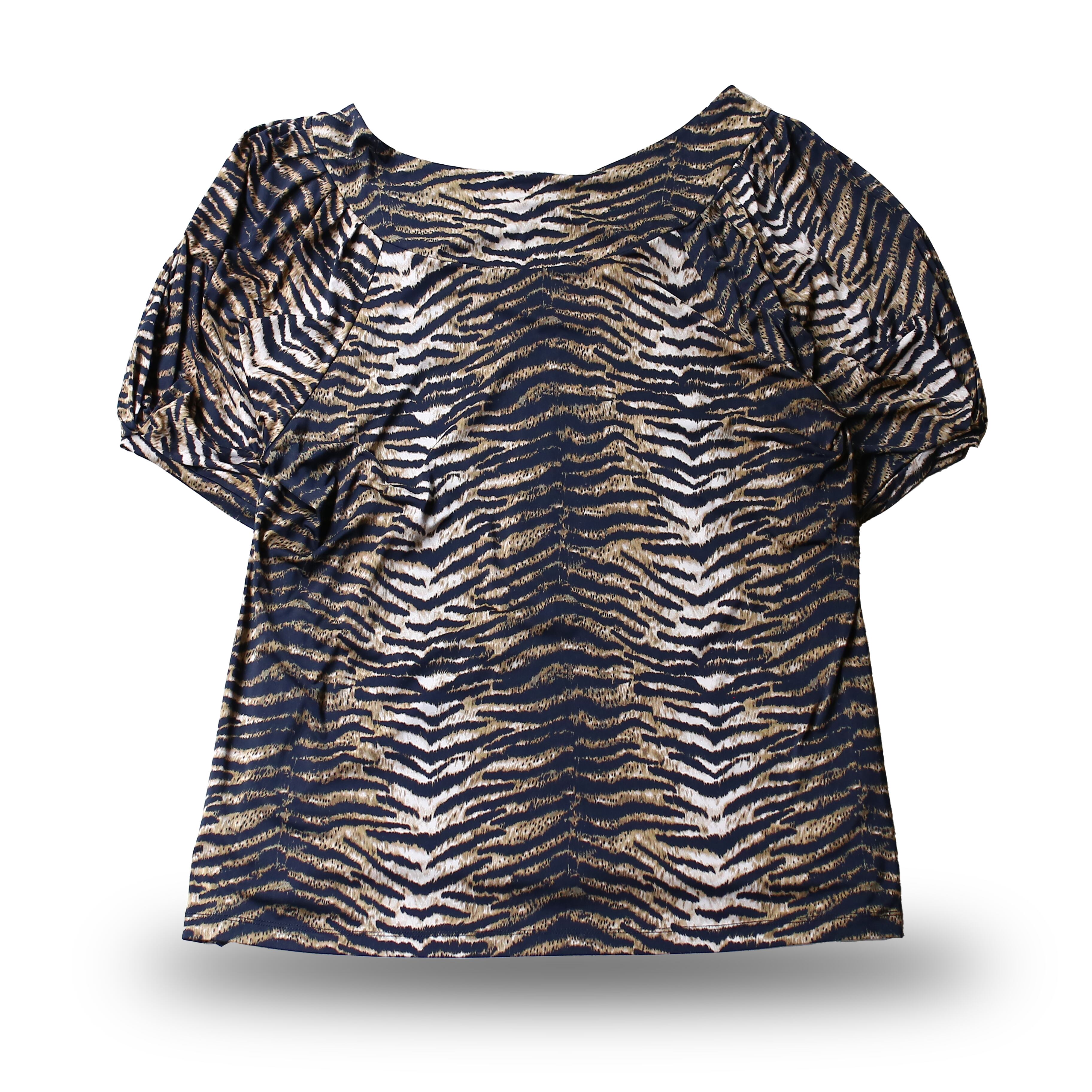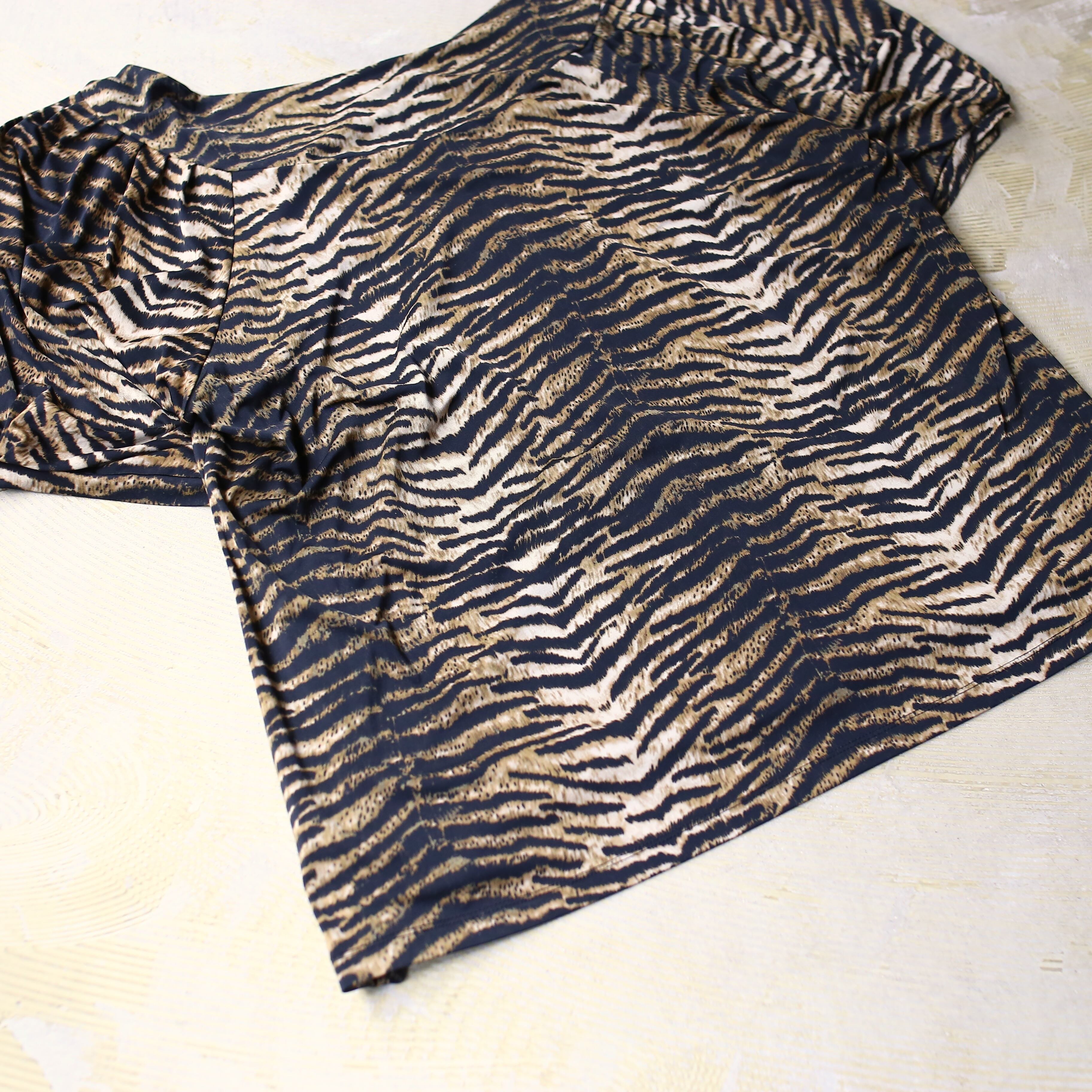 目を惹くデザイン性に優れたレオパードトップス。