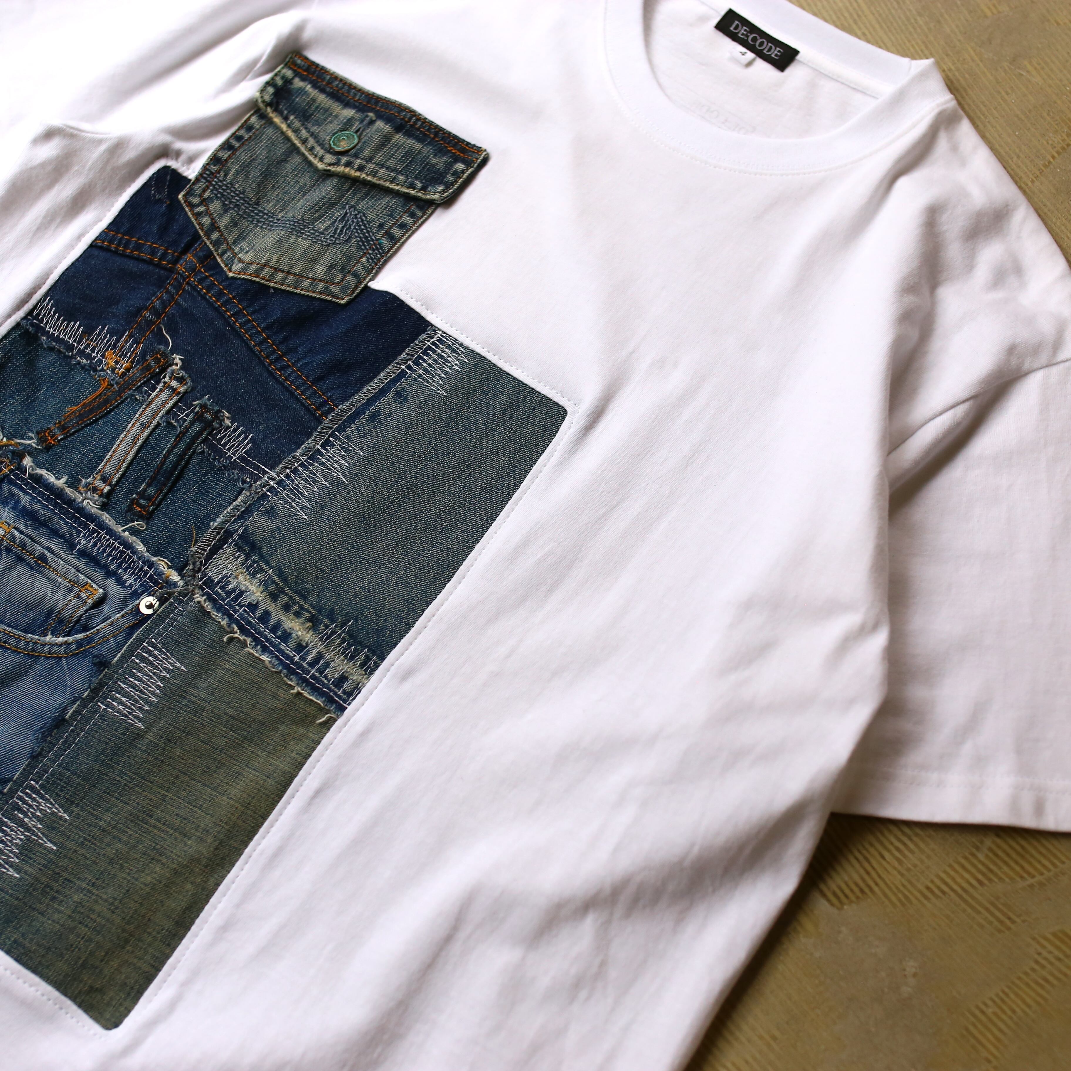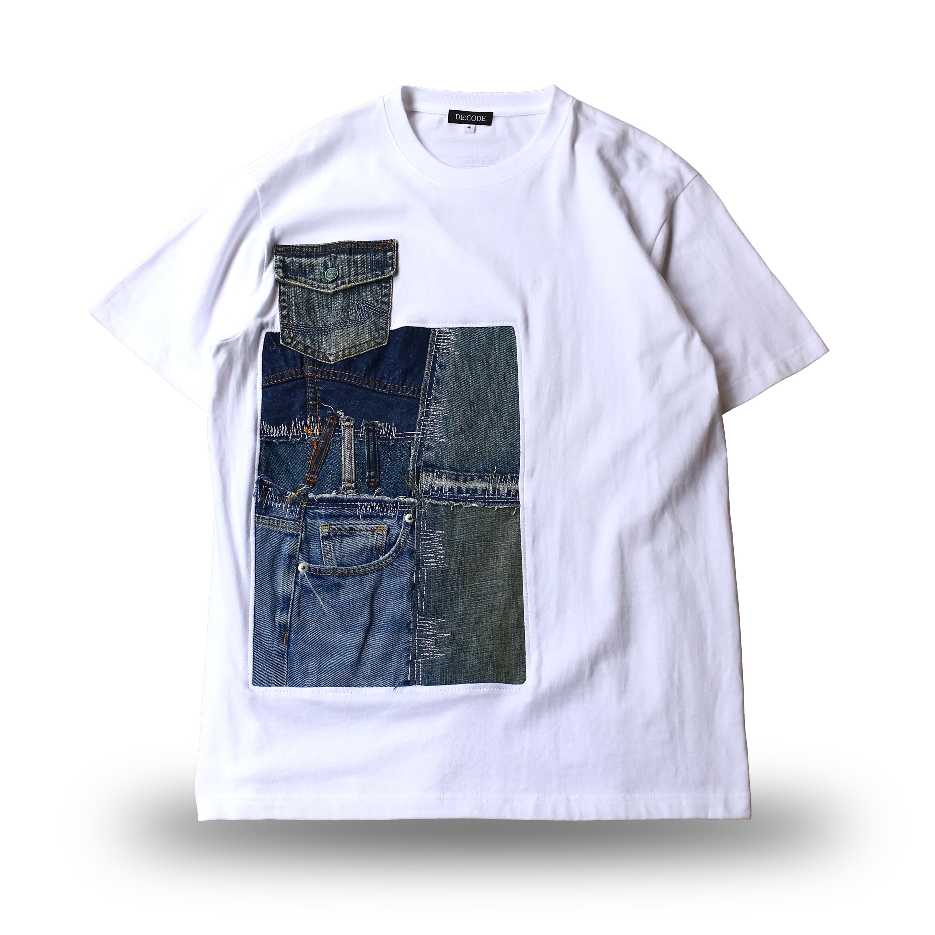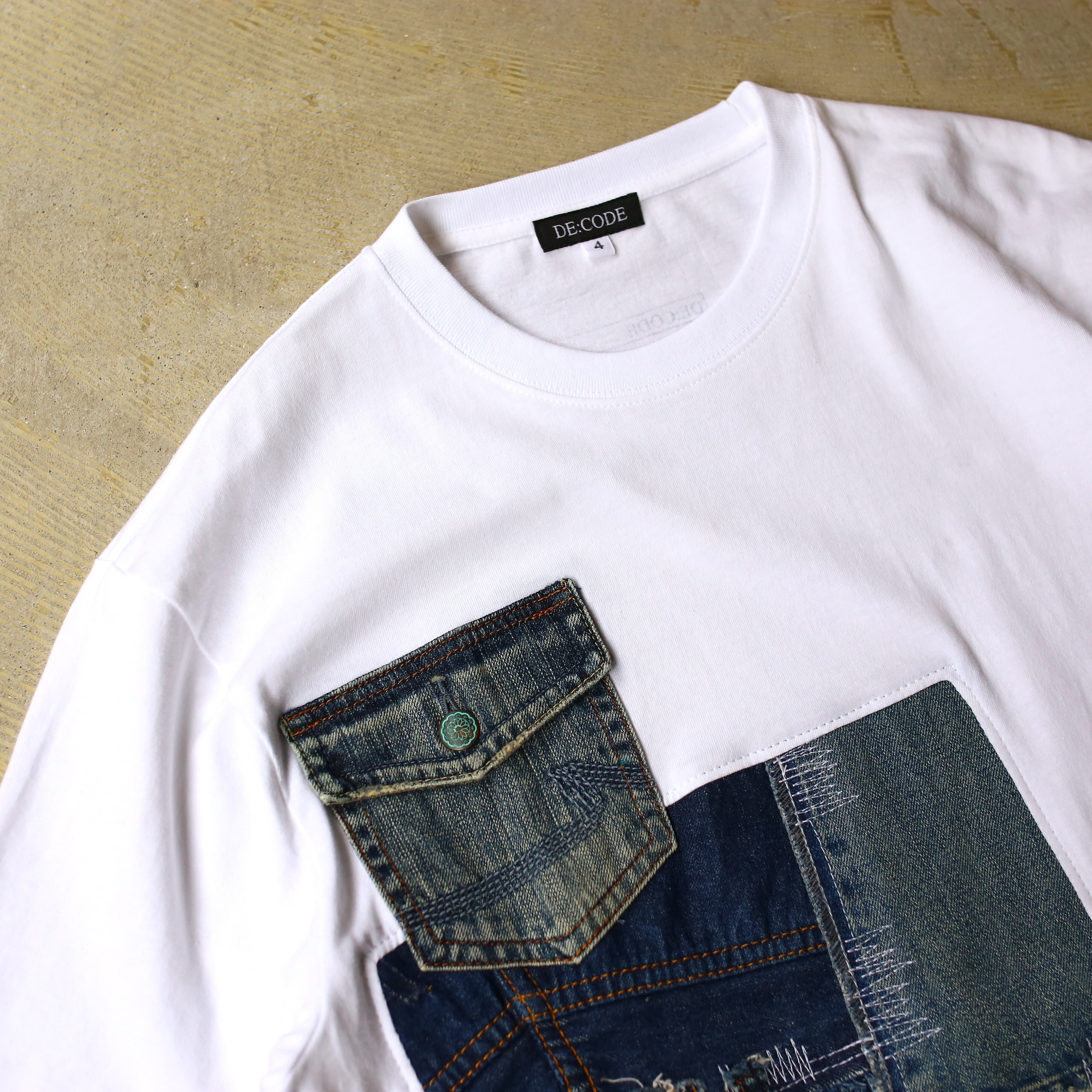 【DE:CODE】 WHITE BODY PATCHWORK DESIGN DENIM S/S TEE / リメイク 半袖 T シャツ