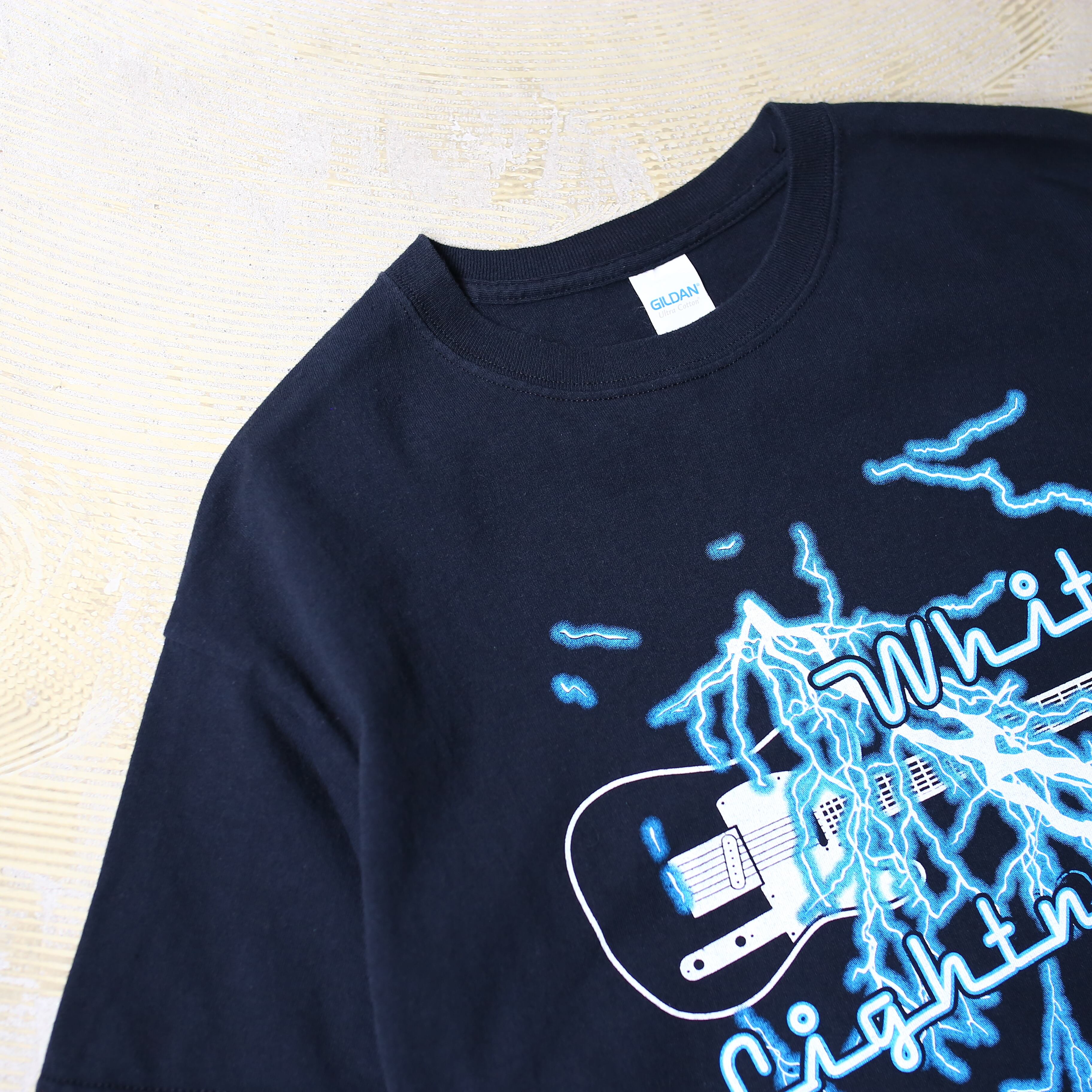 ・青白い稲妻に身を纏ったギターをフロントにプリントした
