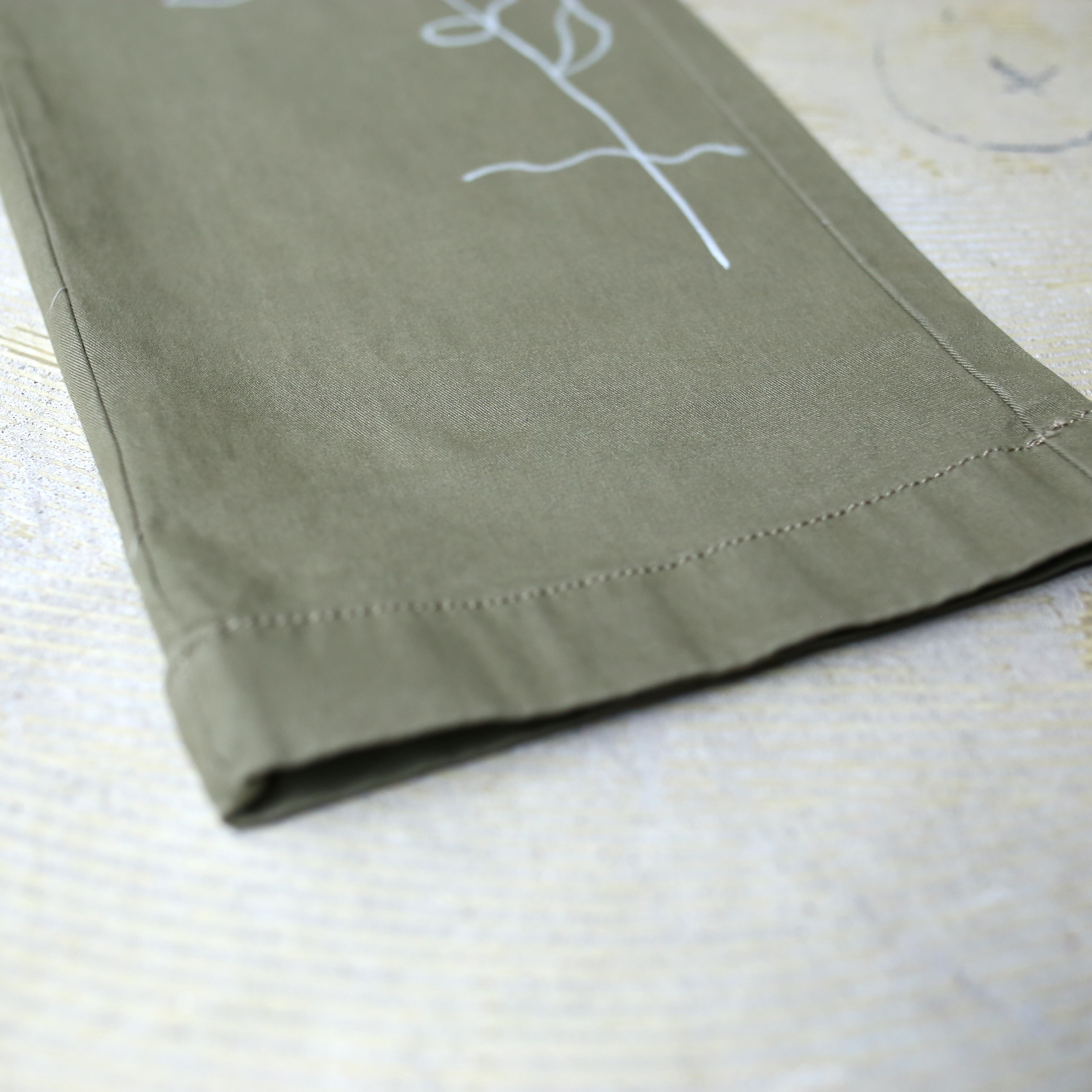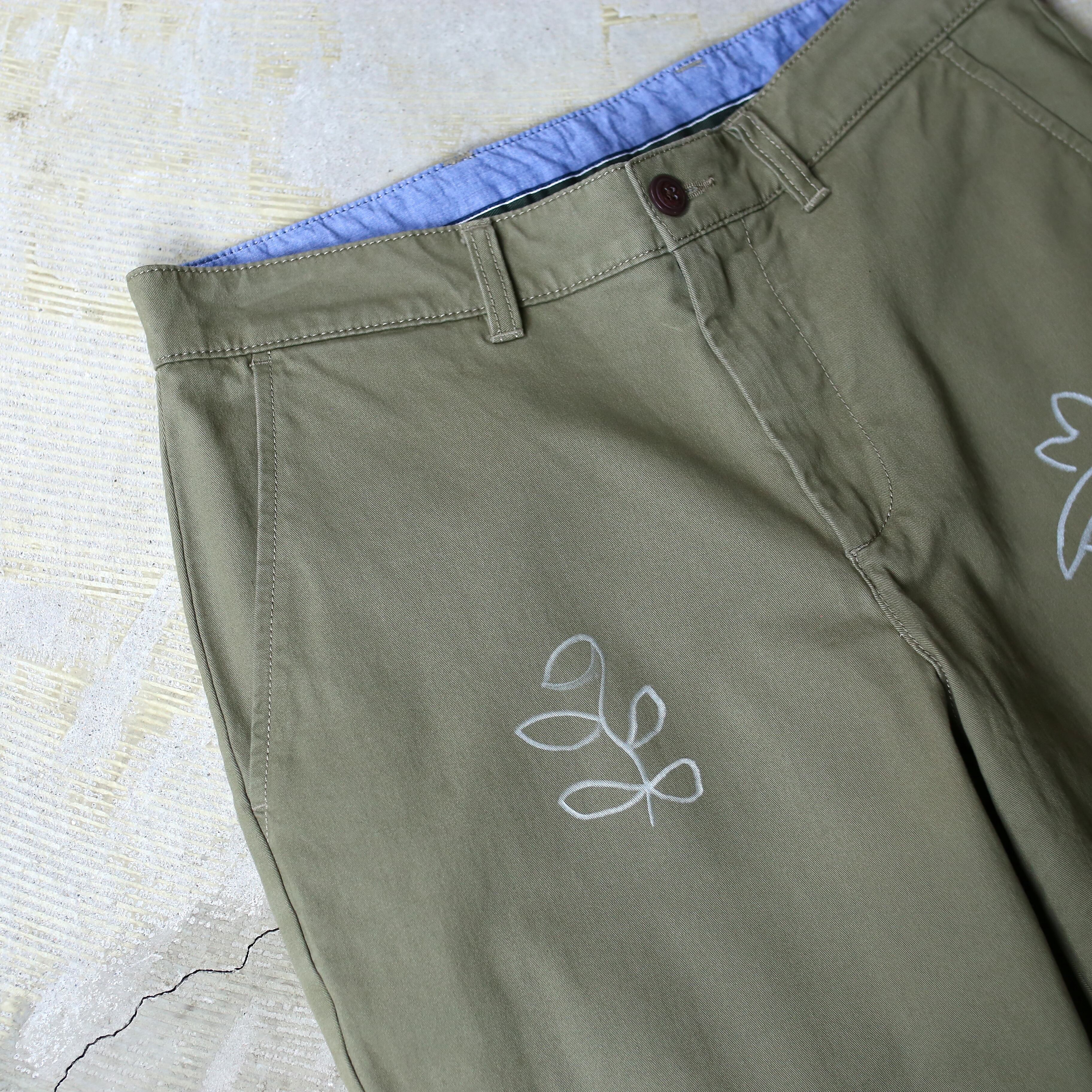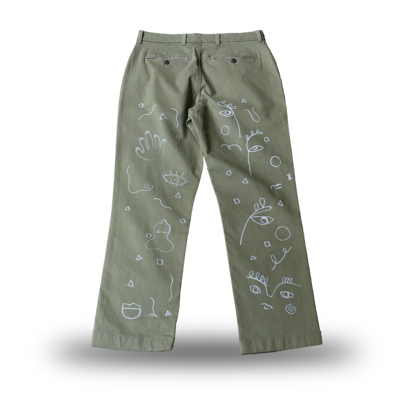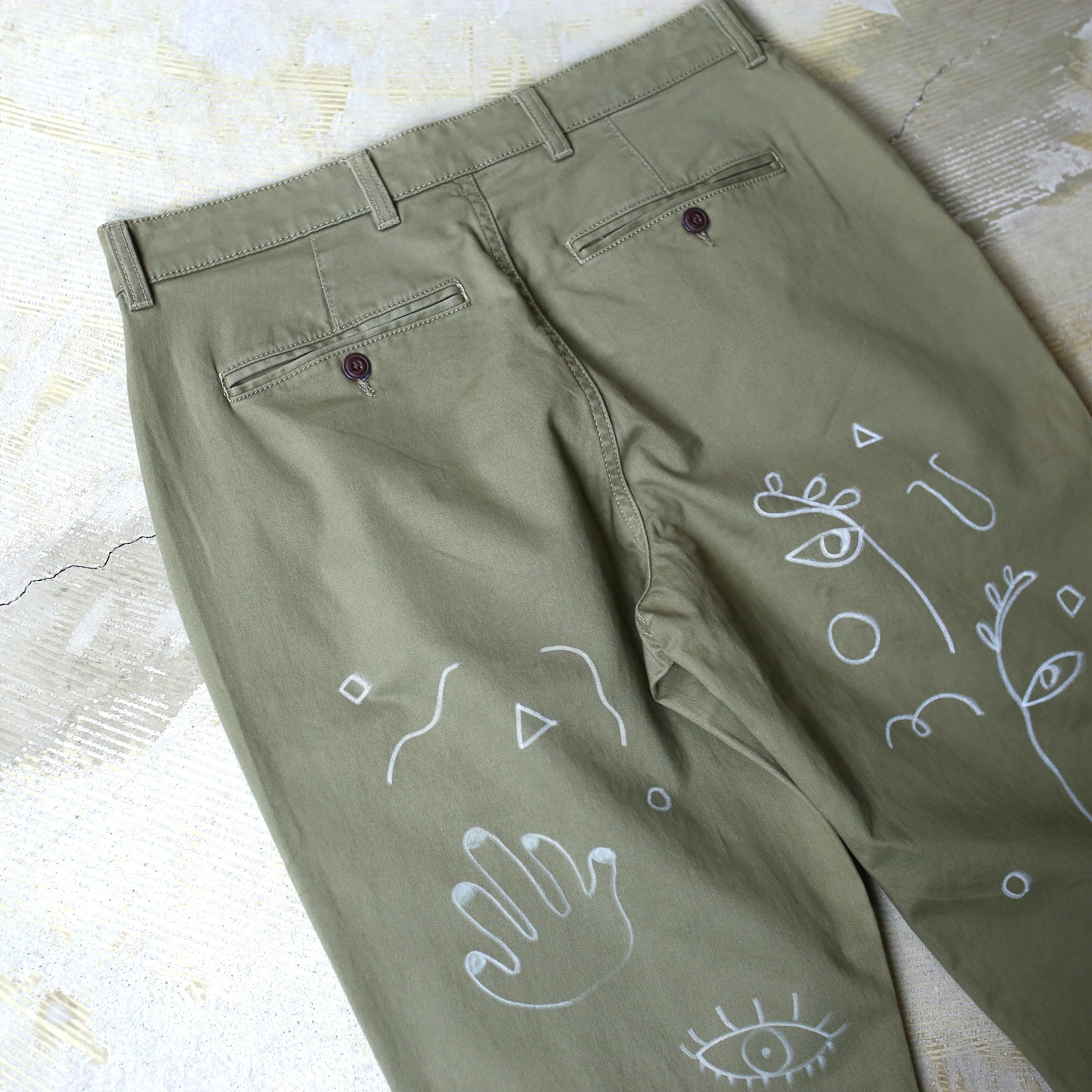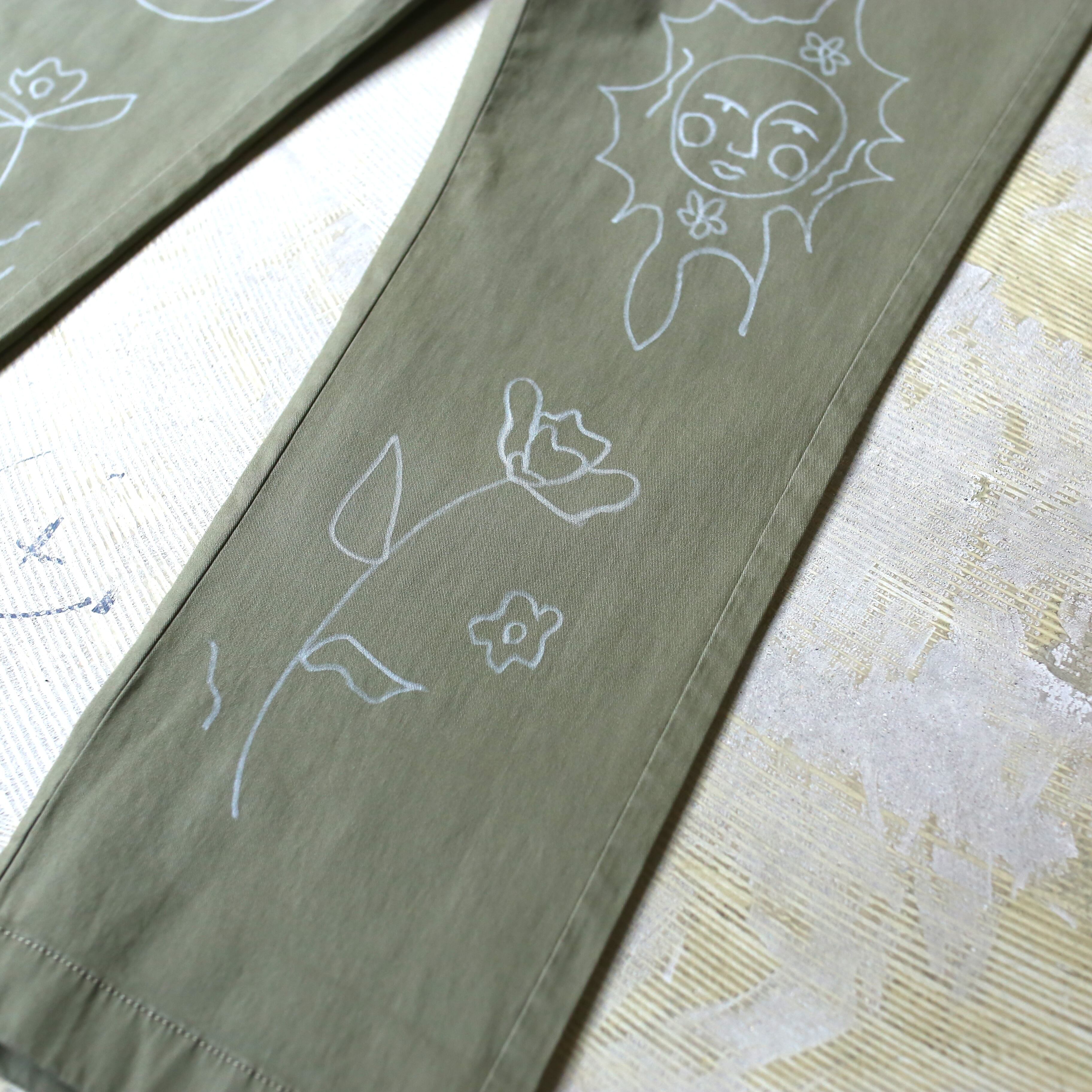 ・カーキのボディにホワイトカラーの手描きペイントが施された