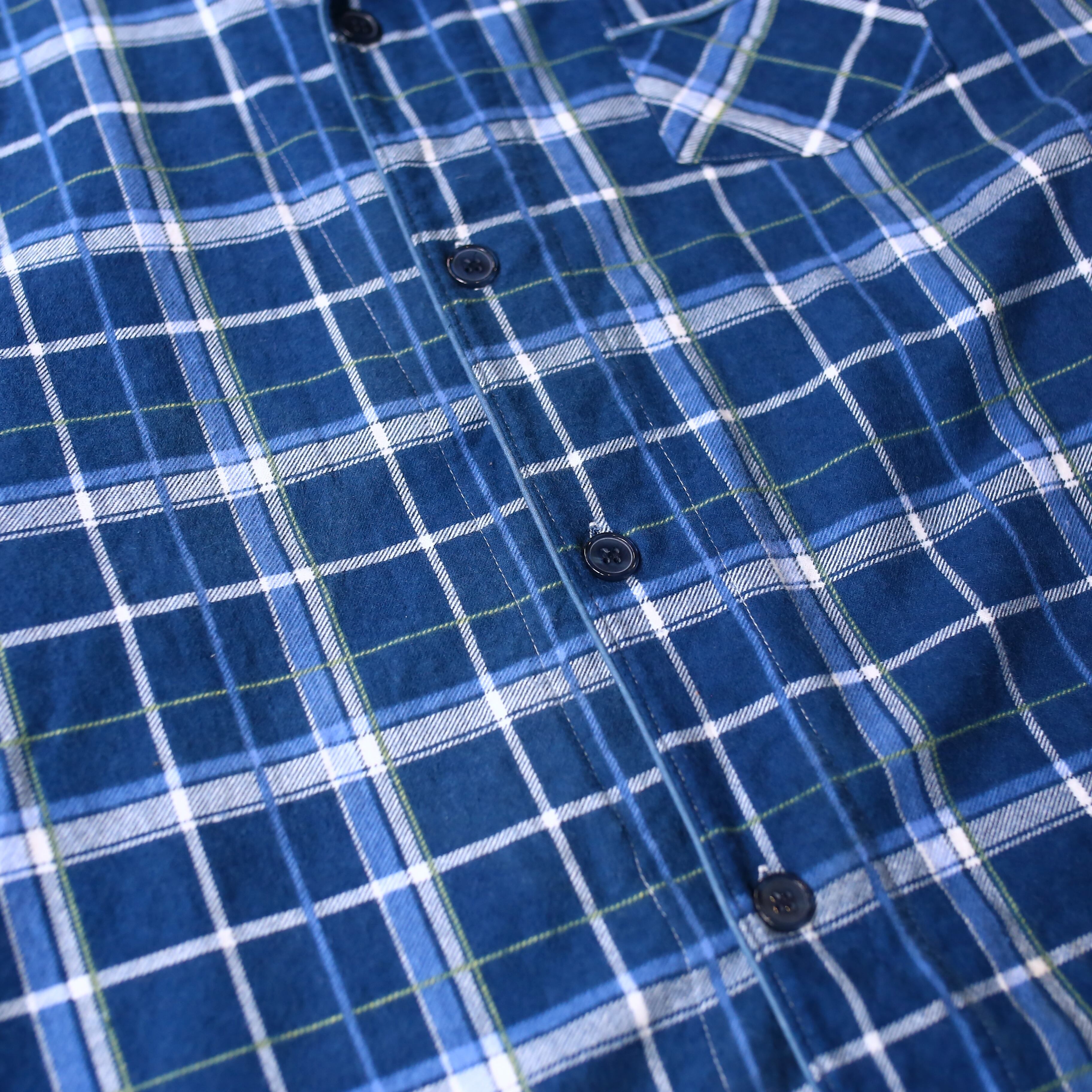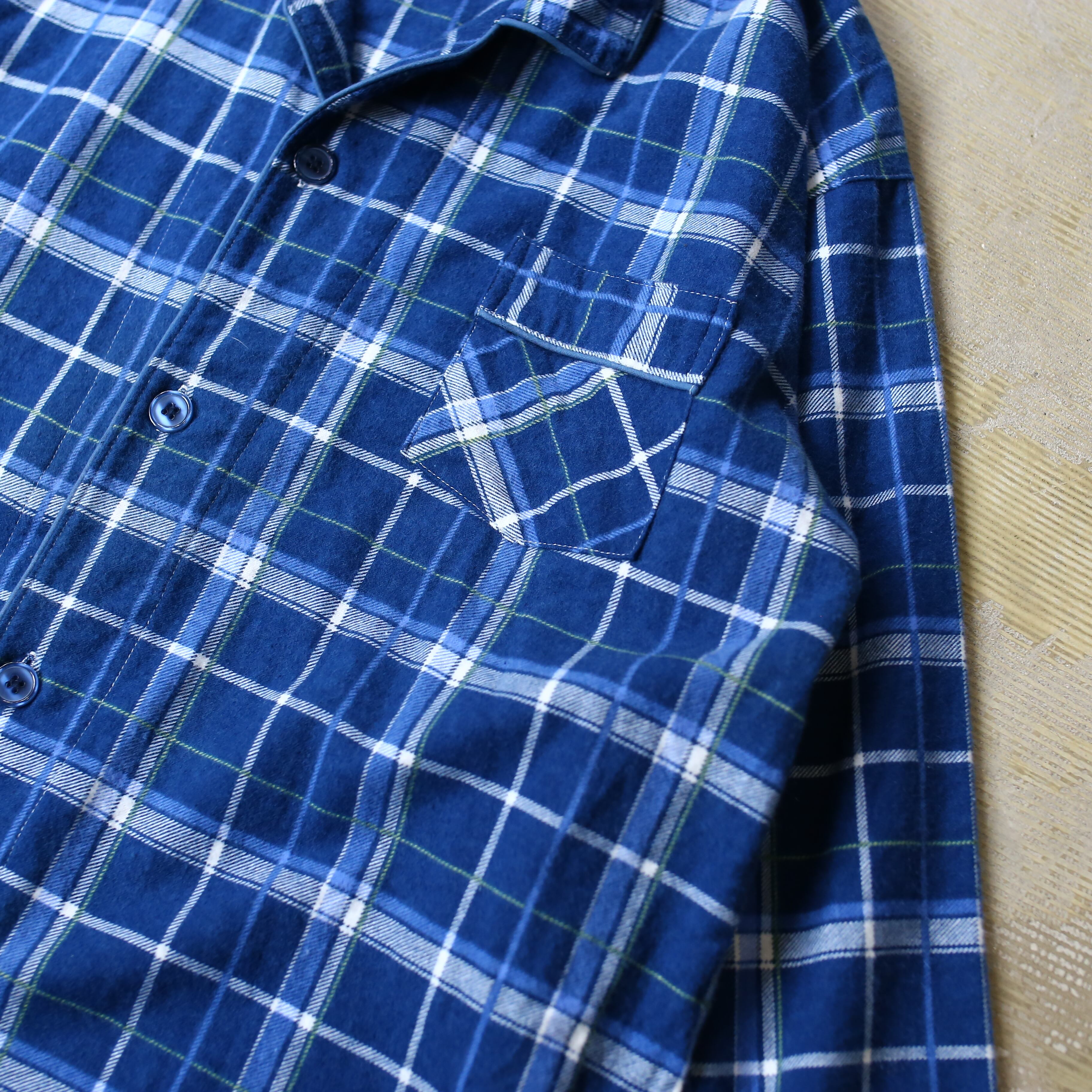 BLUE CHECK PATTERN PAJAMA DESIGN L/S SHIRT / チェック柄 長袖 パジャマ シャツ