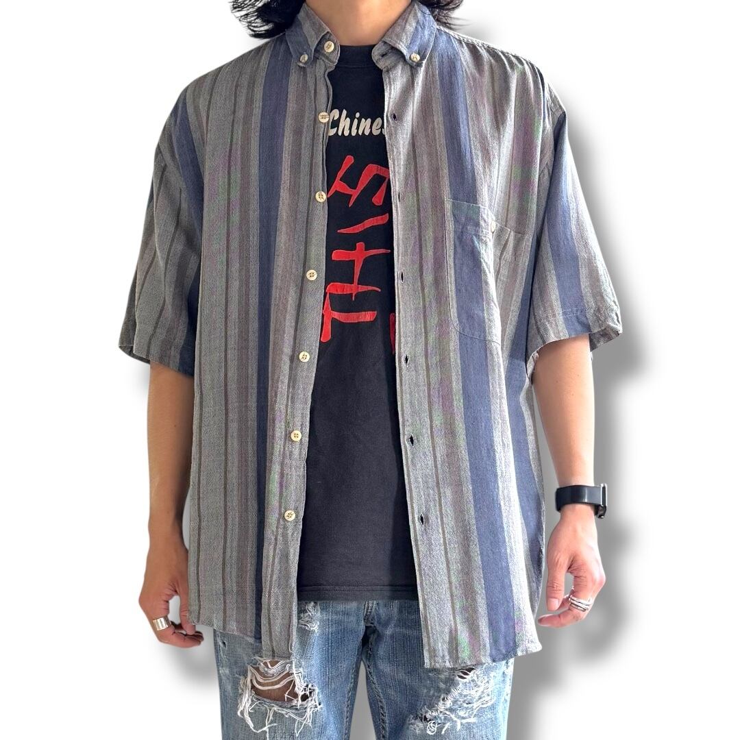 1990's 【GOOUCH】VINTAGE STRIPE PATTERN DESIGN S/S SHIRT / 90年代 総柄 アート ストライプ 半袖 シャツ