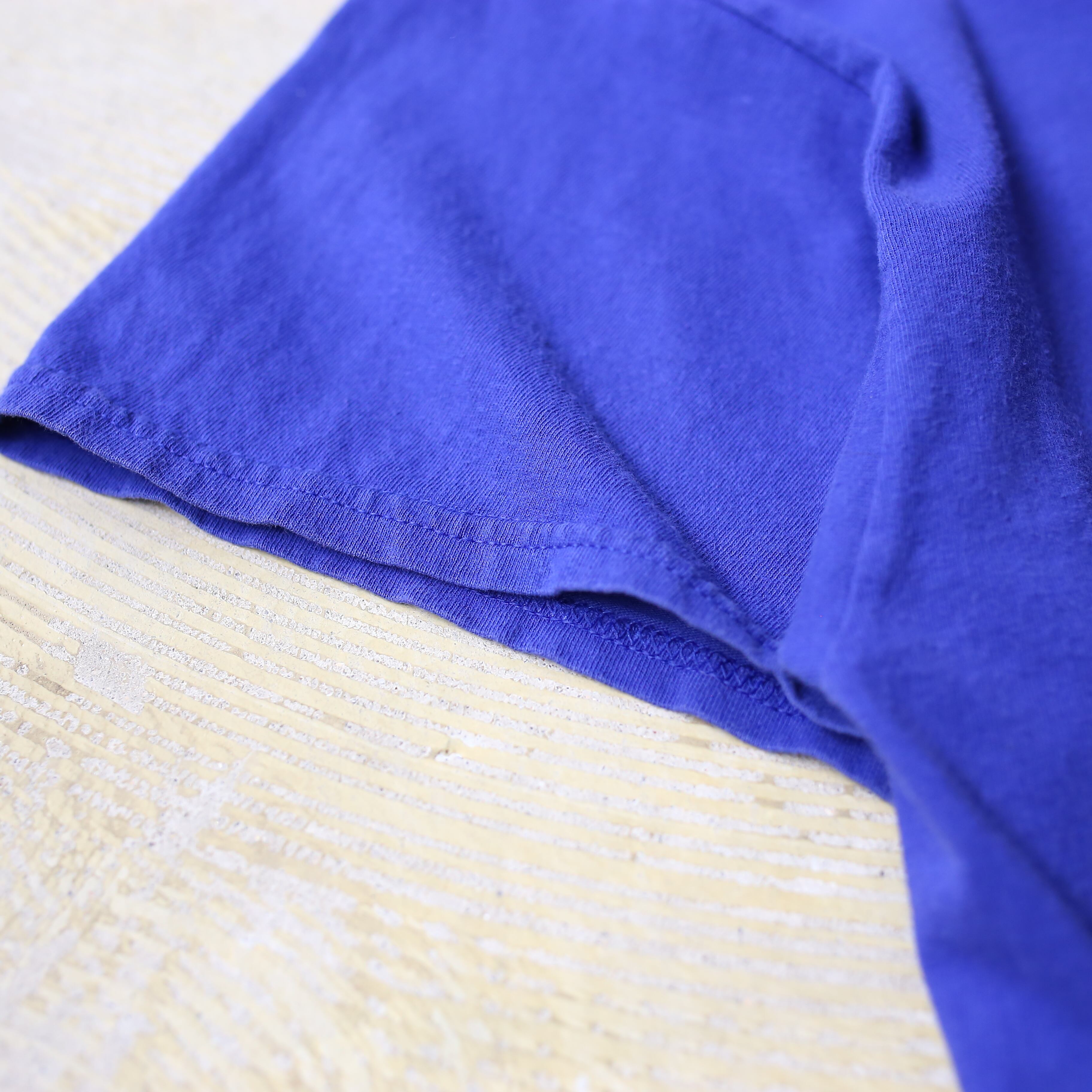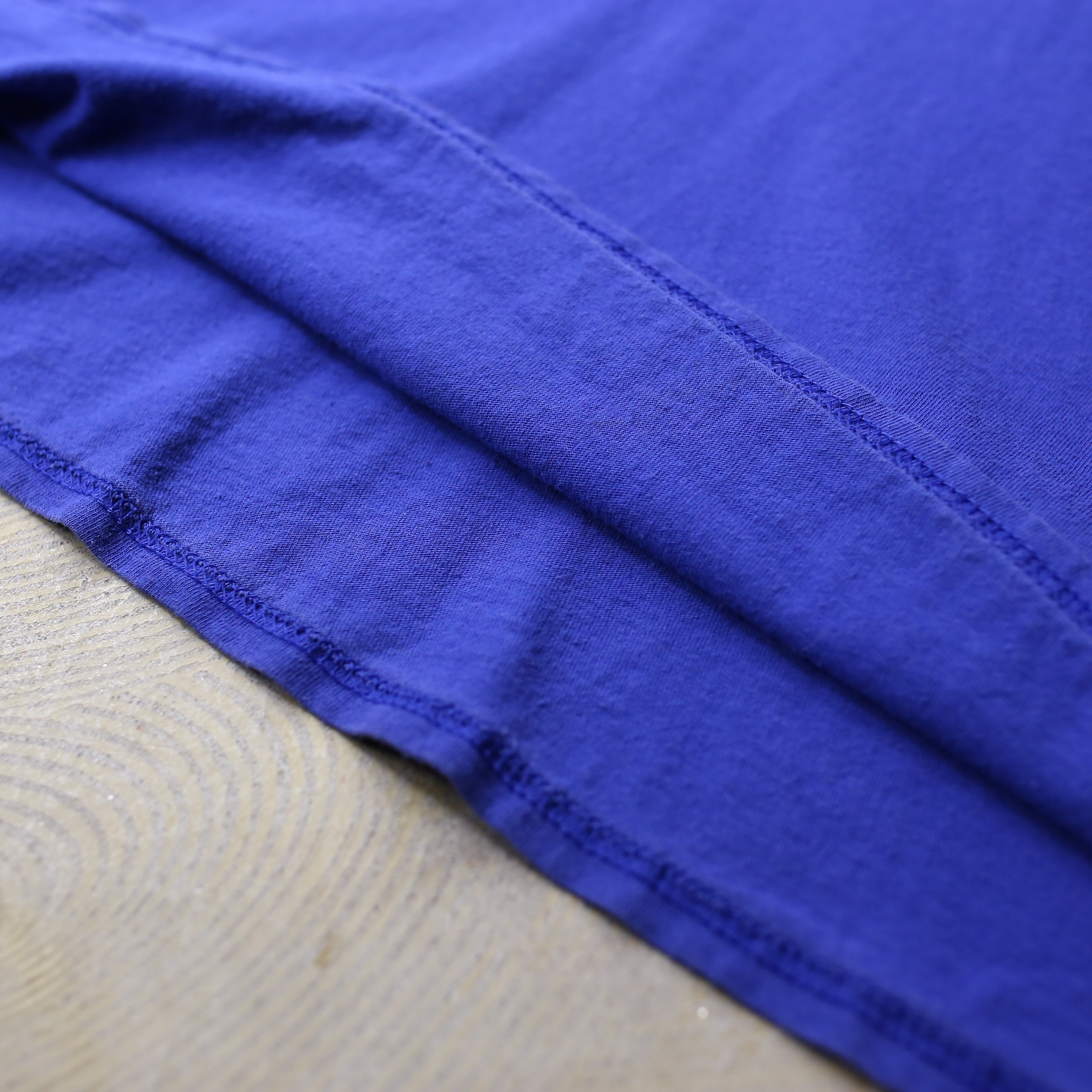 鮮やかなロイヤルブルーが目を惹くこのTシャツは
