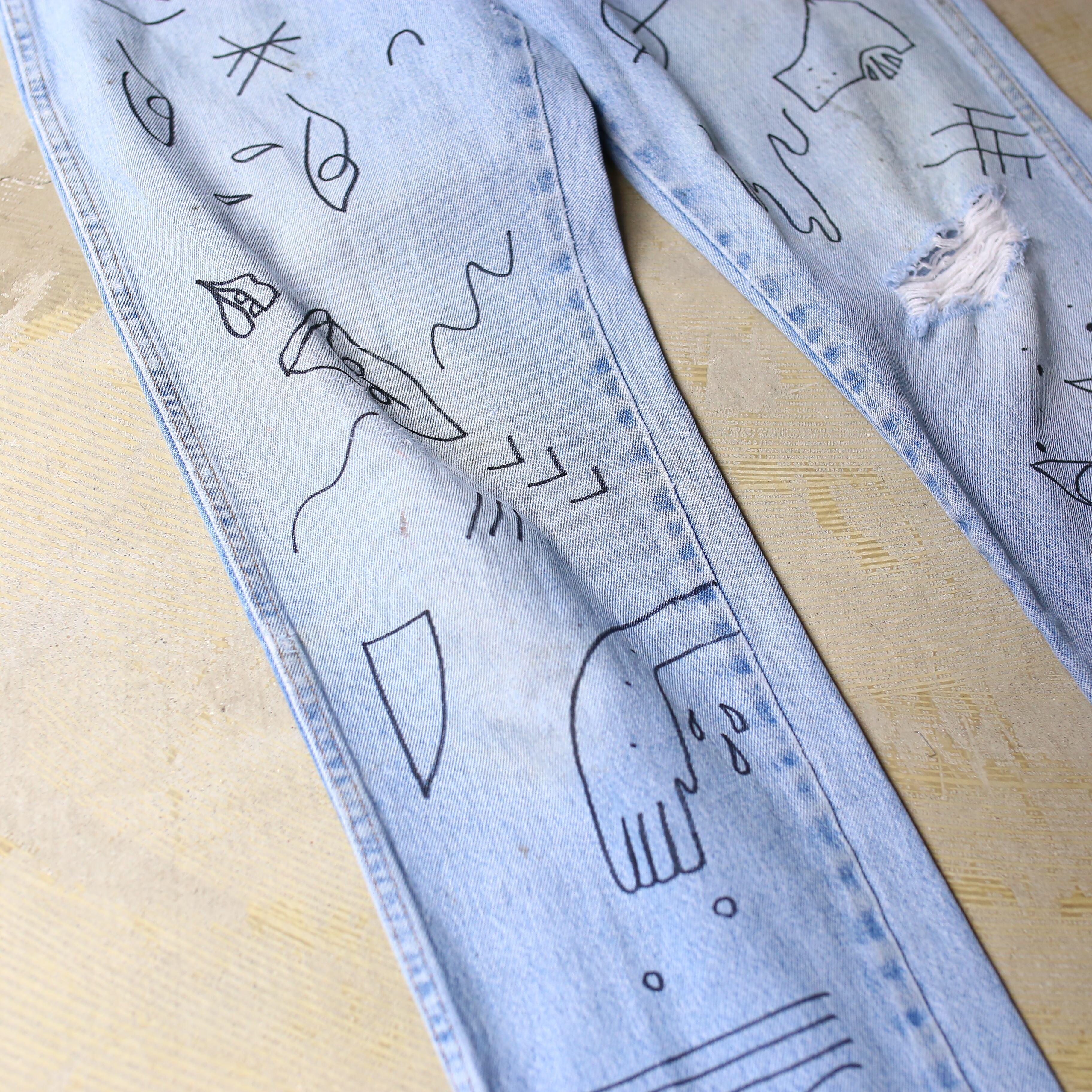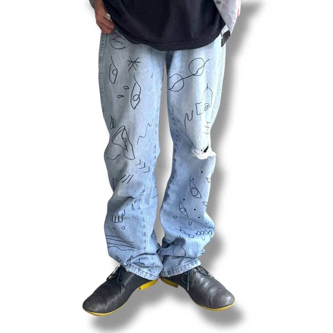 【WRANGLER】 LINE ART HAND PAINT DENIM PANTS / ラングラー アート ハンド ペイント 落書き デニム パンツ