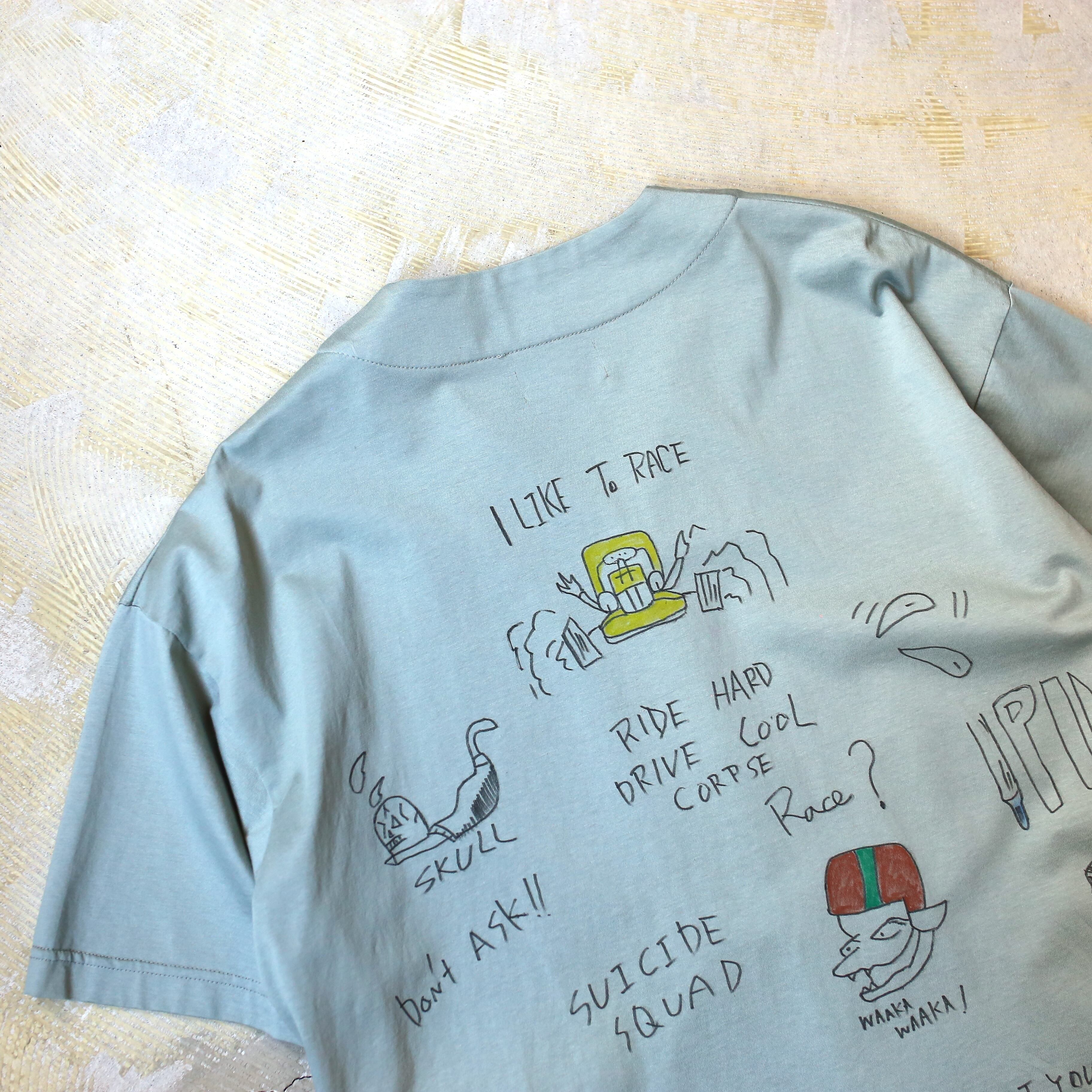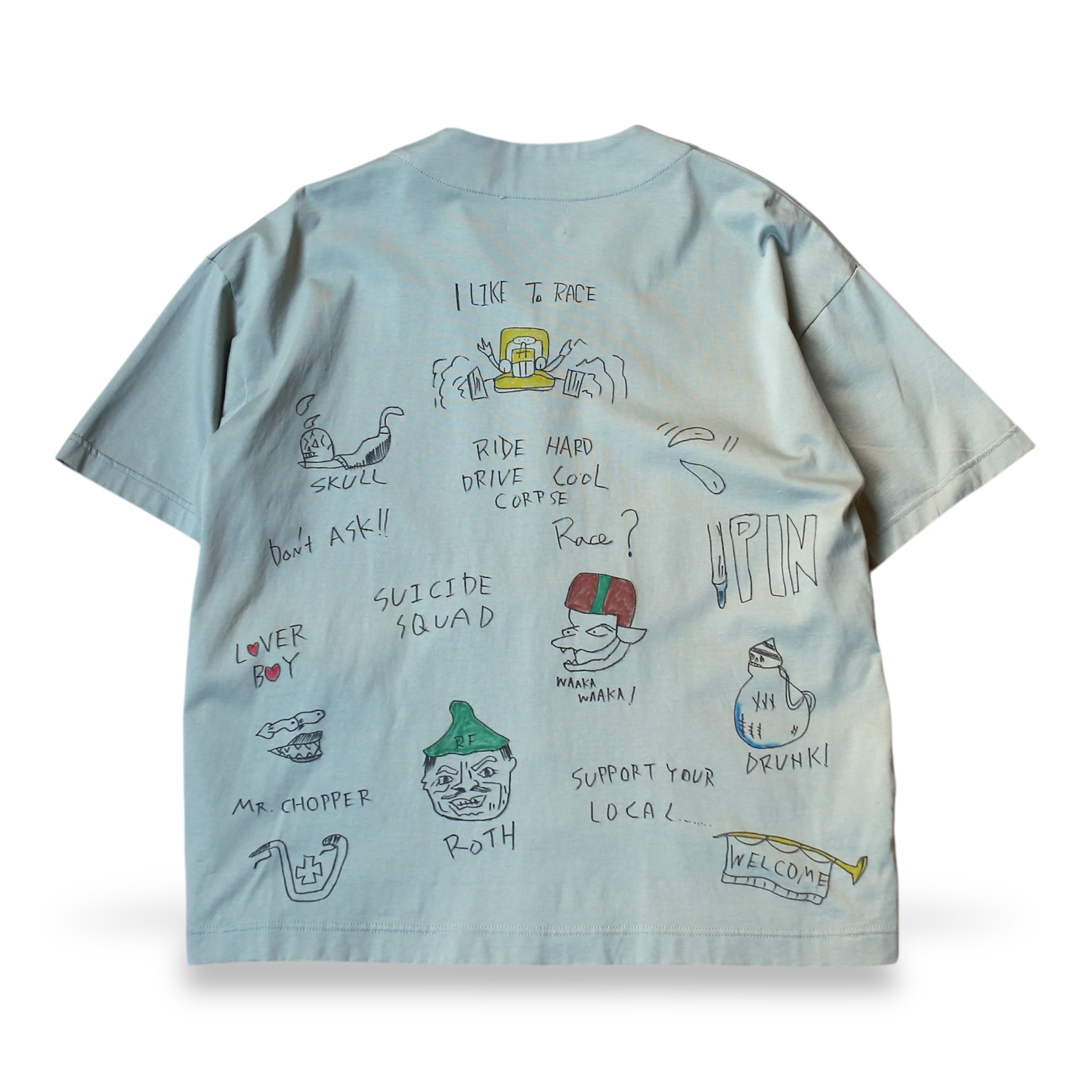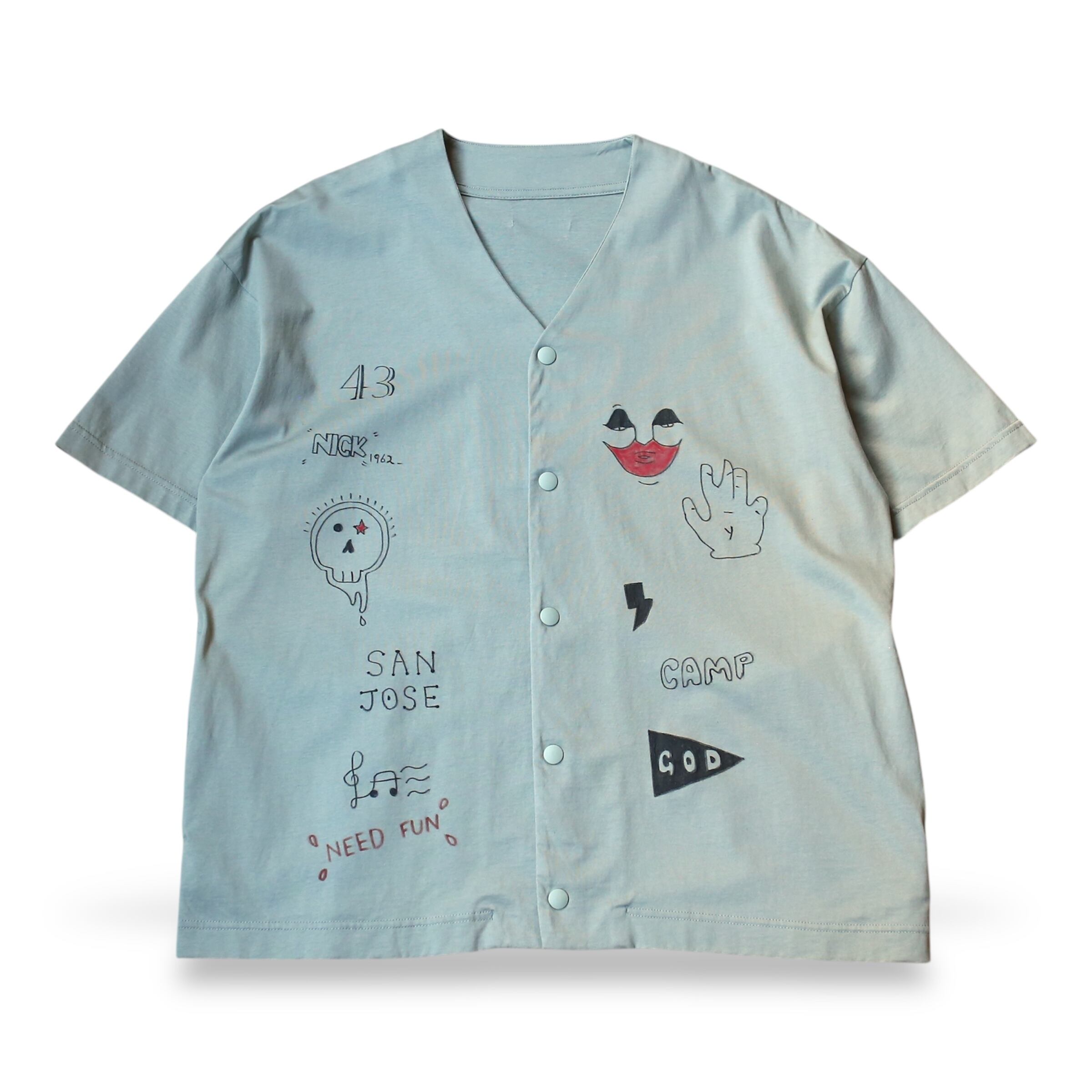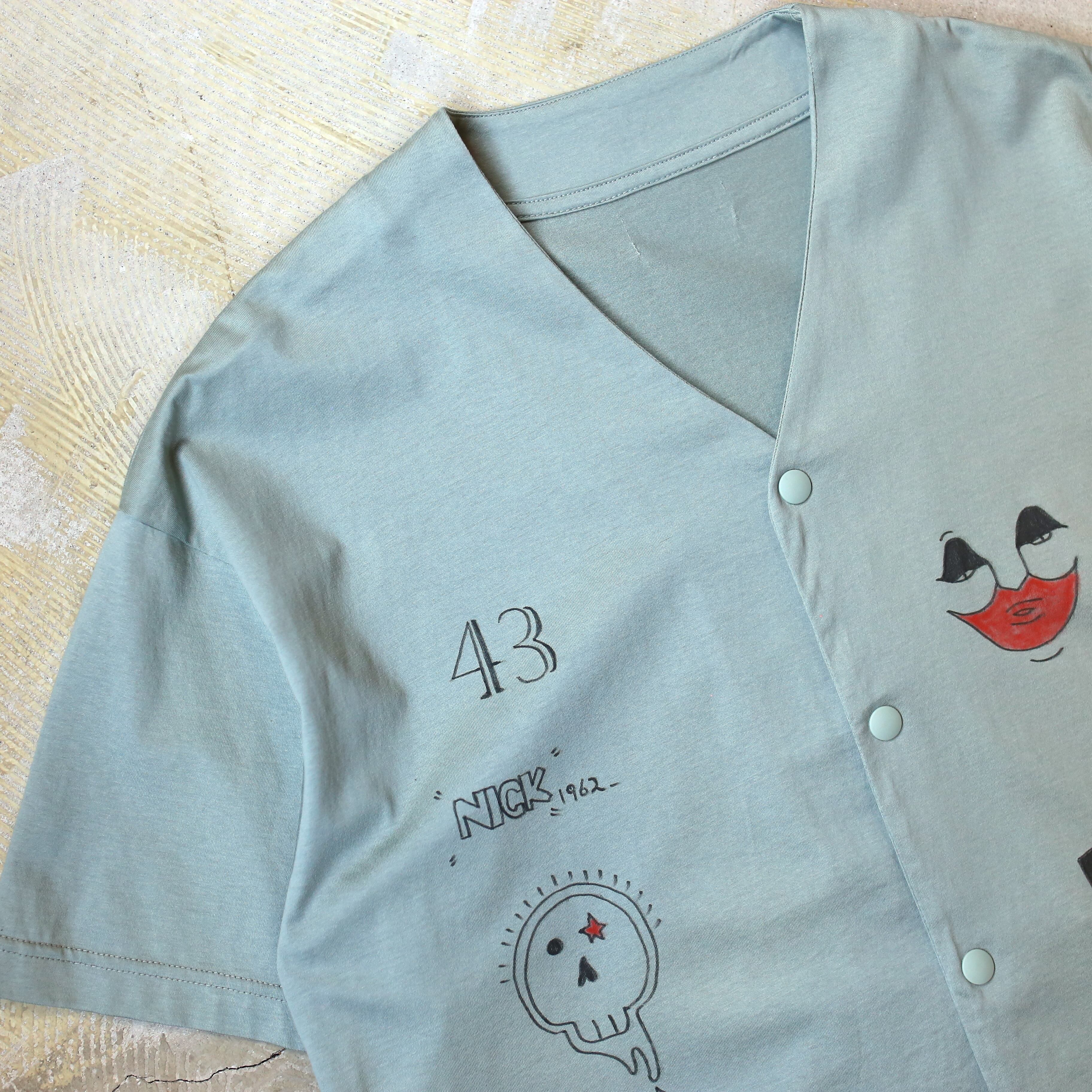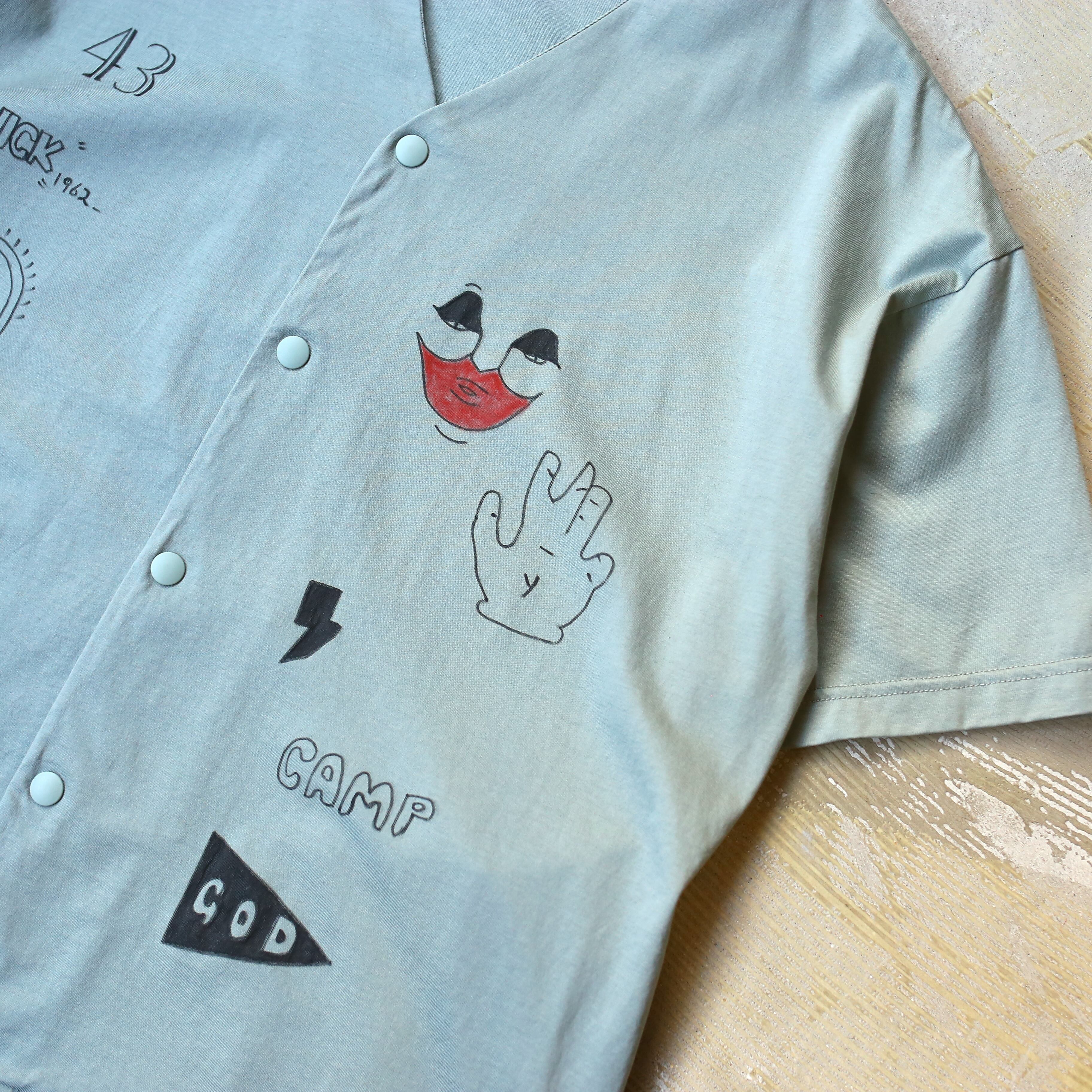 POP ART DESIGN HAND PAINT NO COLLAR S/S SHIRT / アート ハンド ペイント 落書き 半袖 シャツ