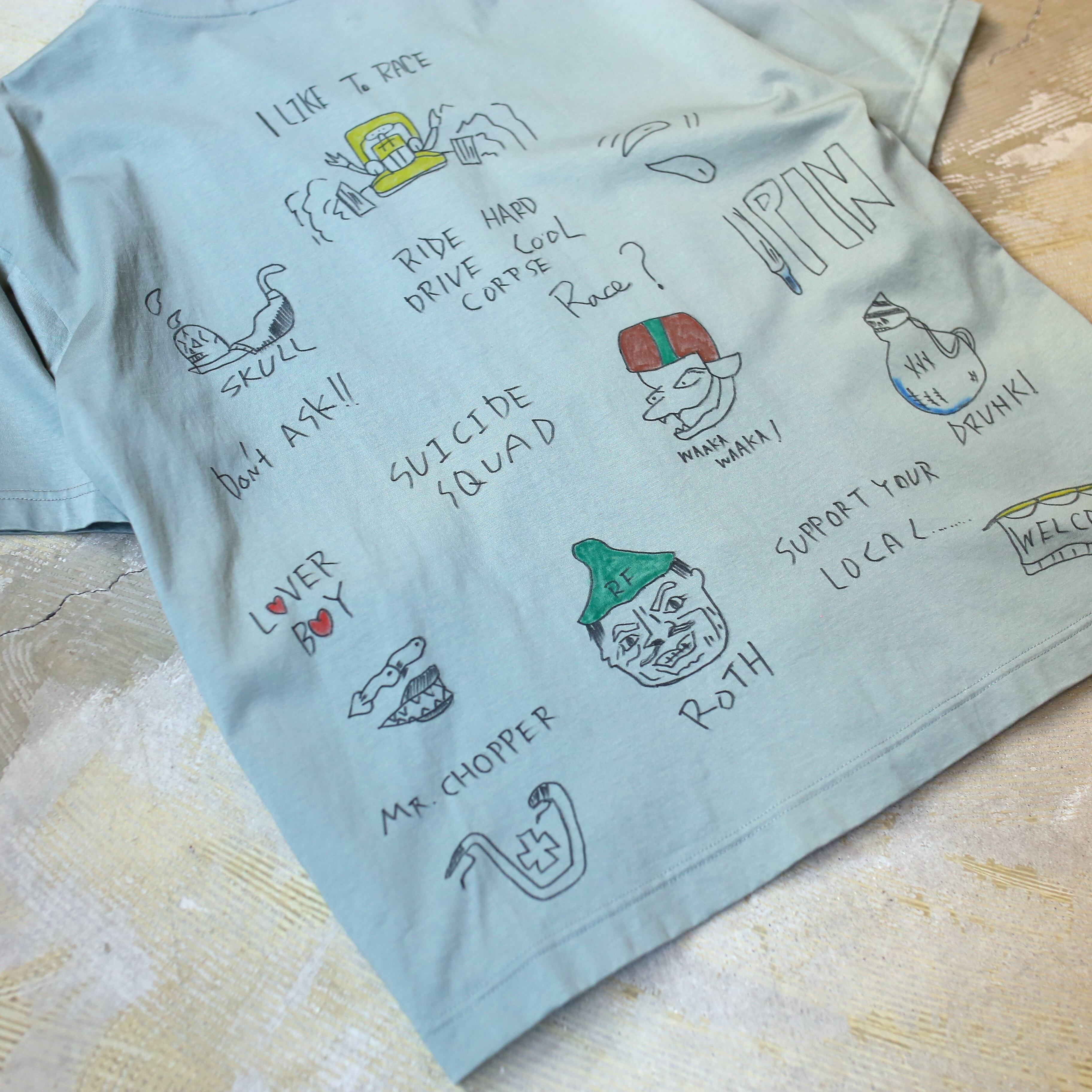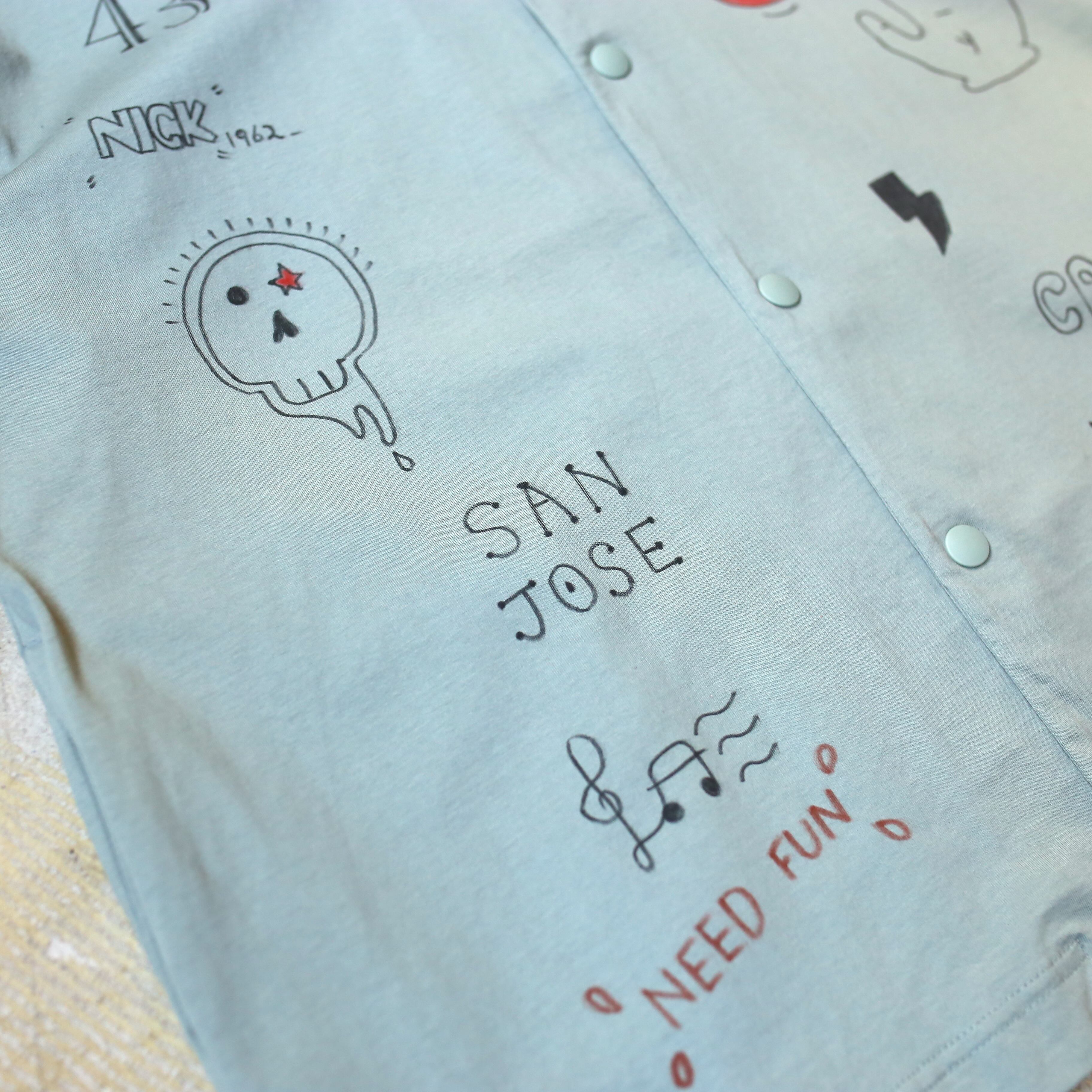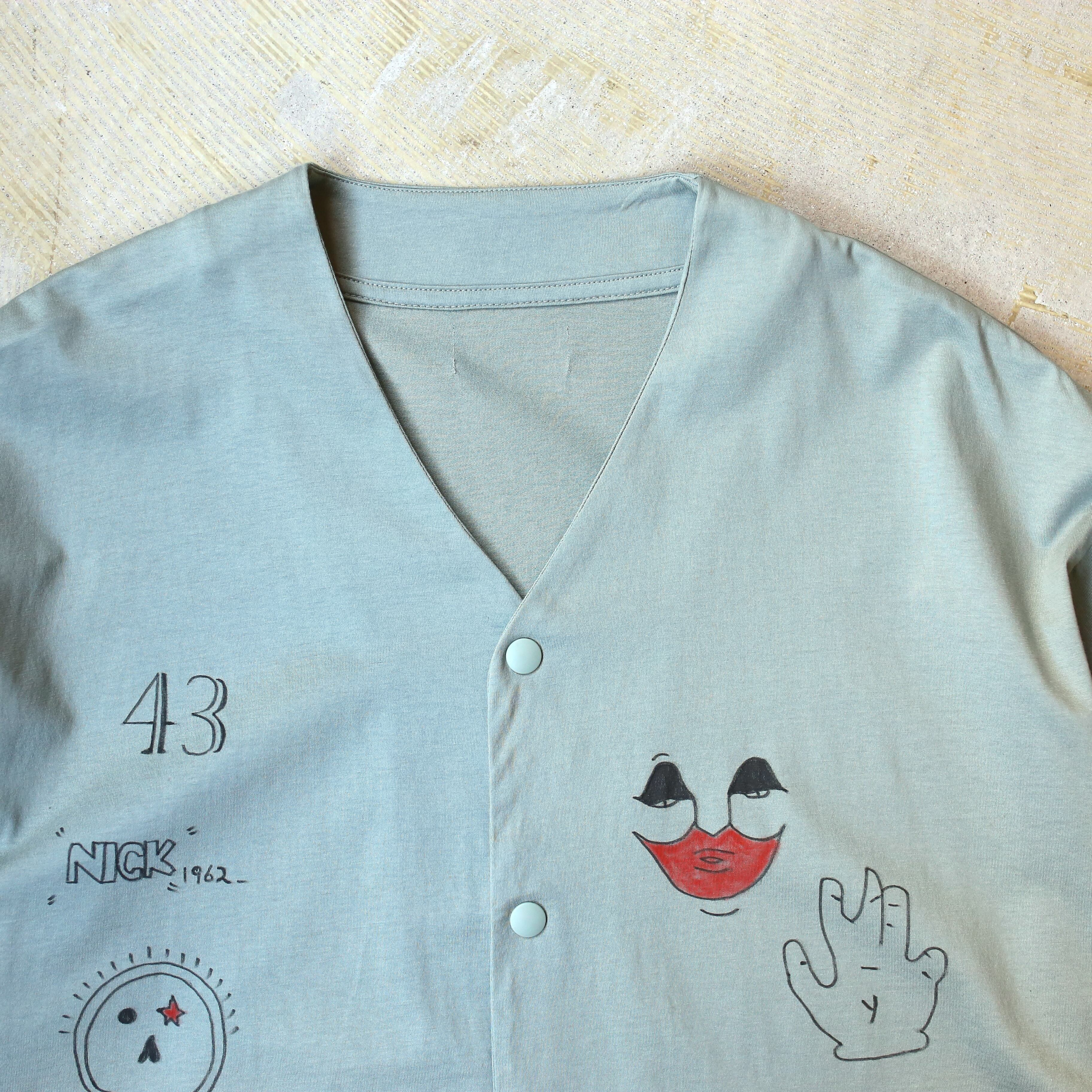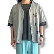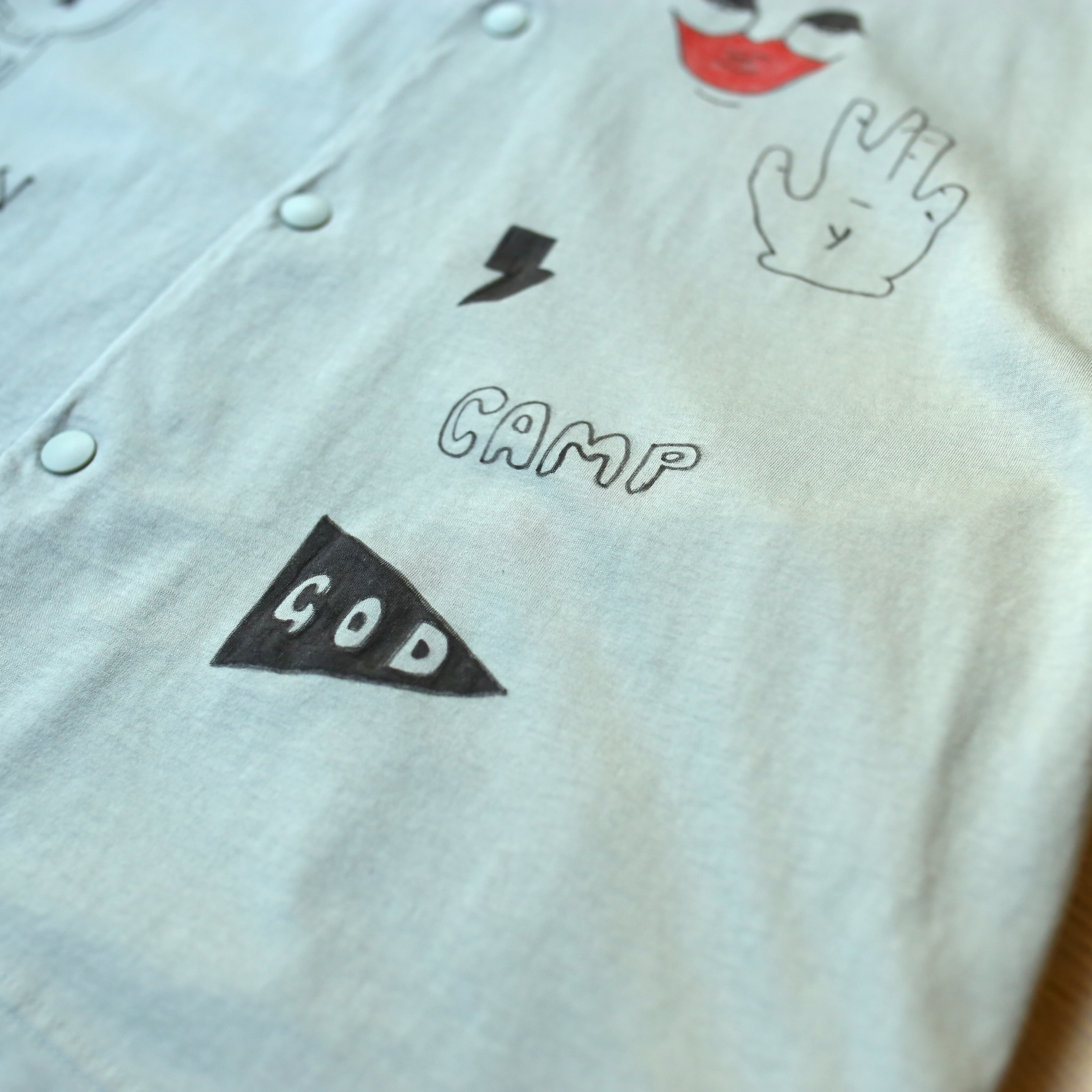 POP ART DESIGN HAND PAINT NO COLLAR S/S SHIRT / アート ハンド ペイント 落書き 半袖 シャツ
