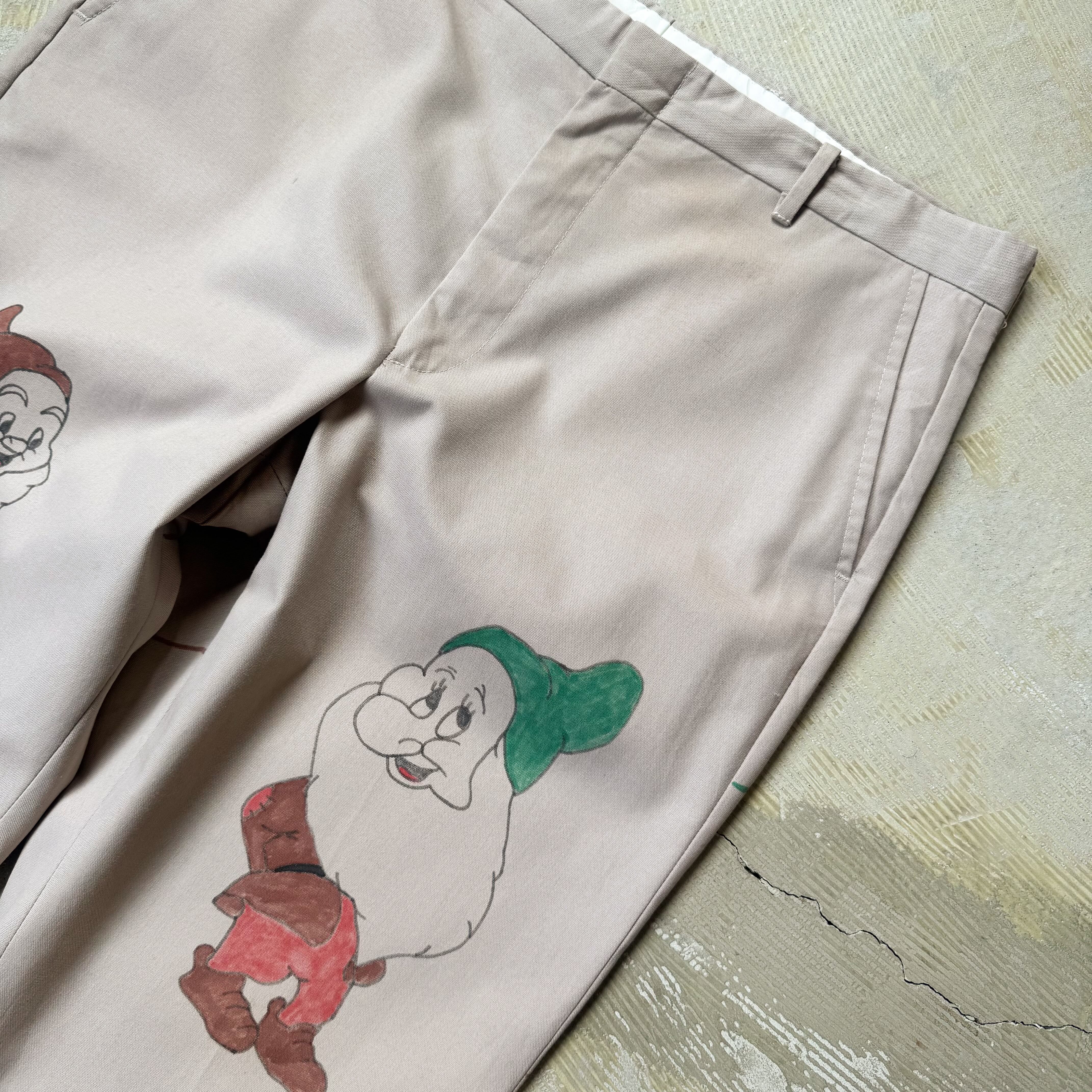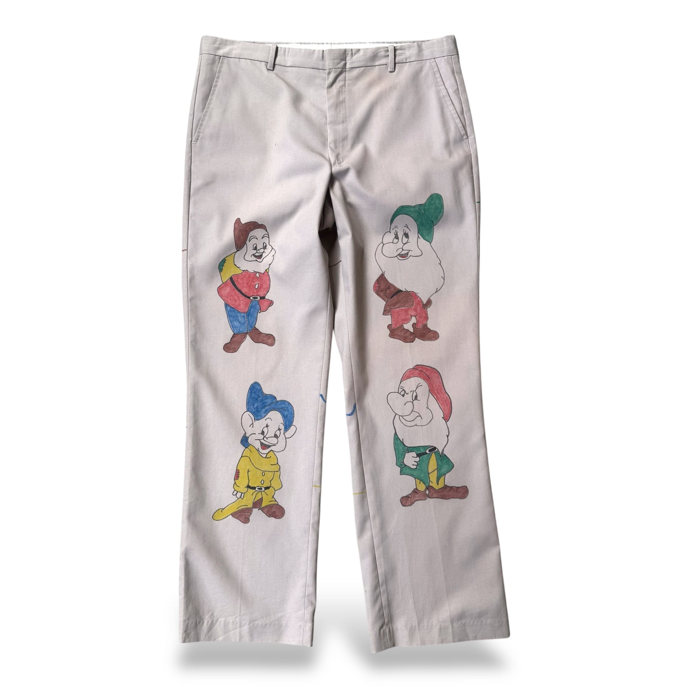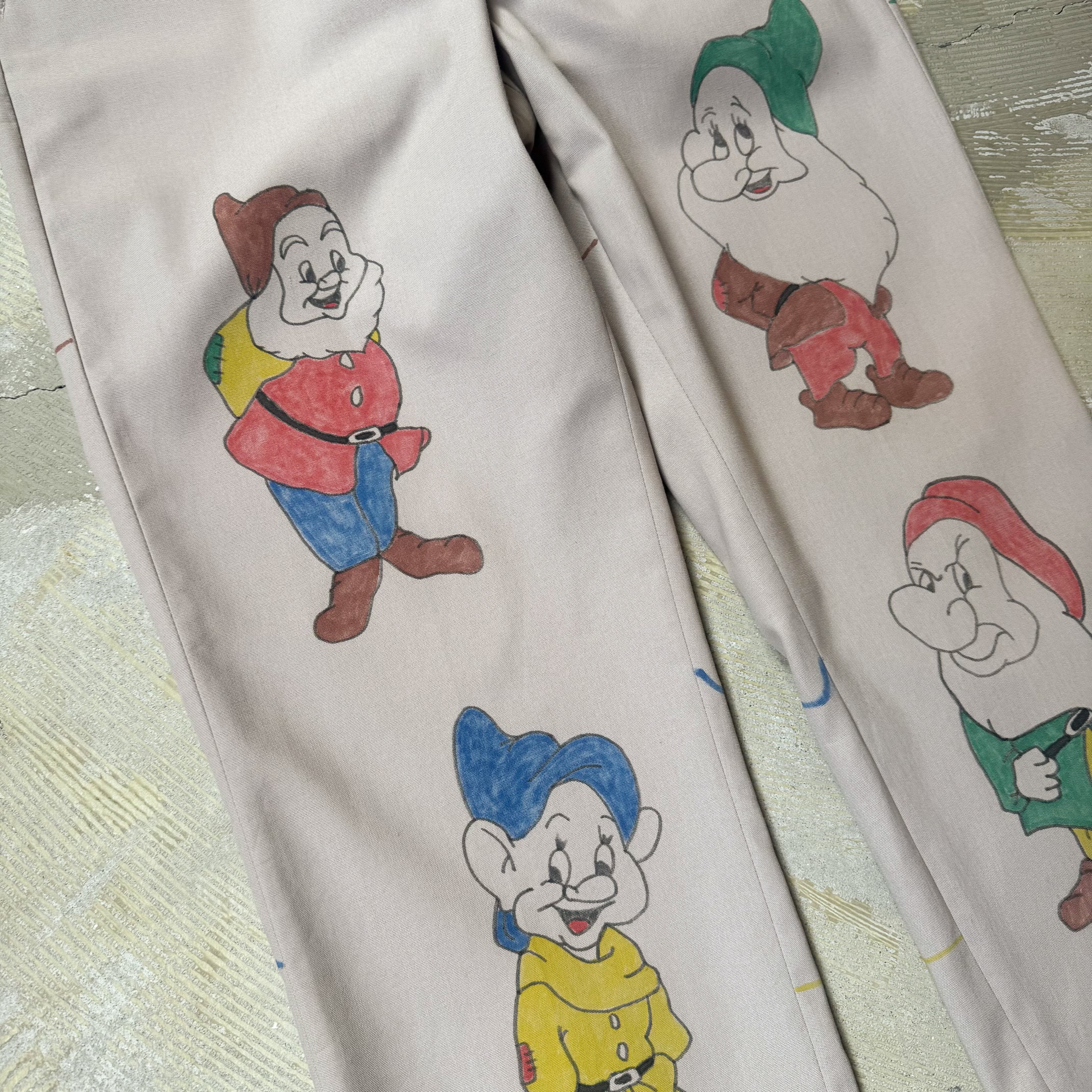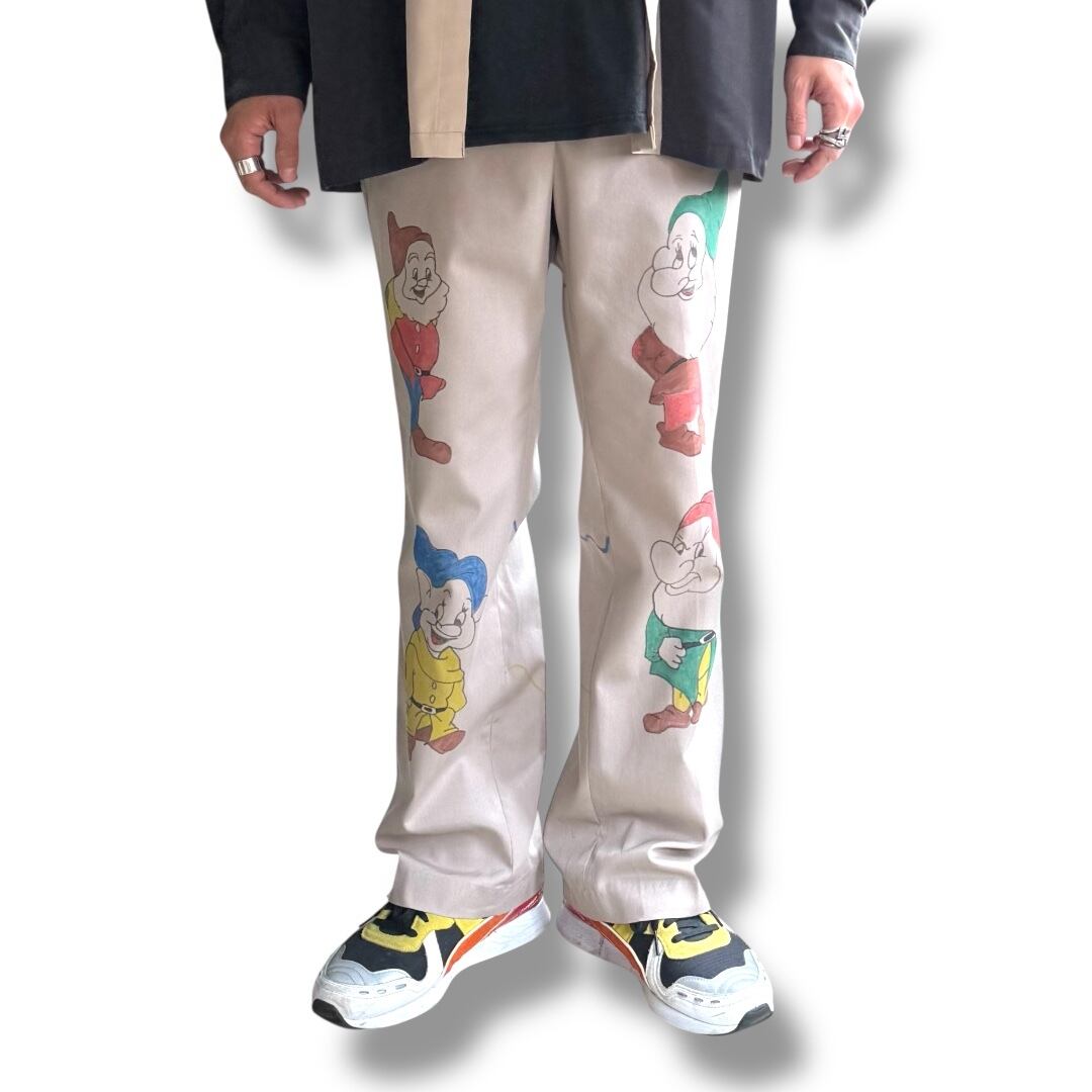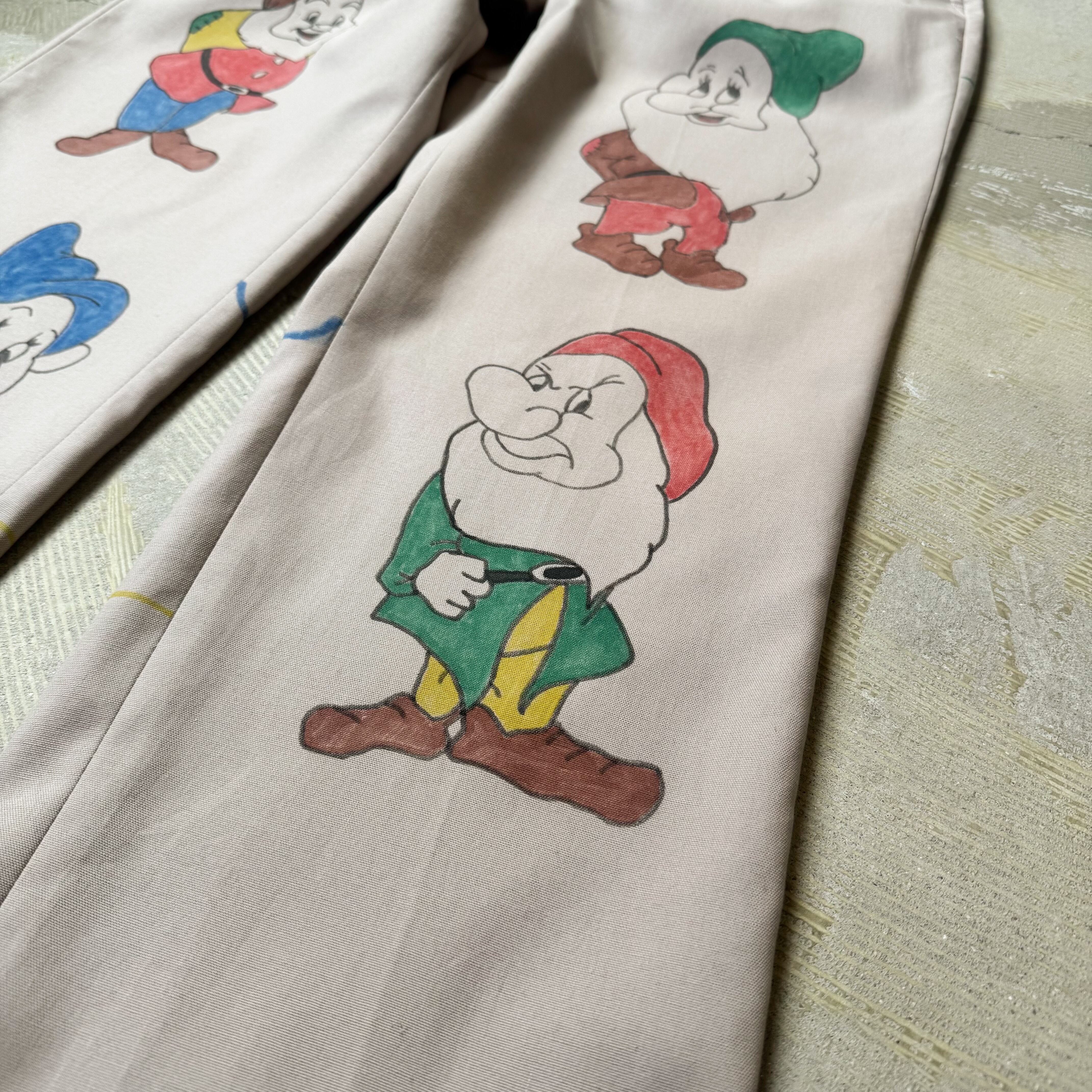HAND PAINT SEVEN DWARFS DRAWING SLACKS PANTS / ハンド ペイント 7人のこびと 白雪姫 落書き スラックス パンツ