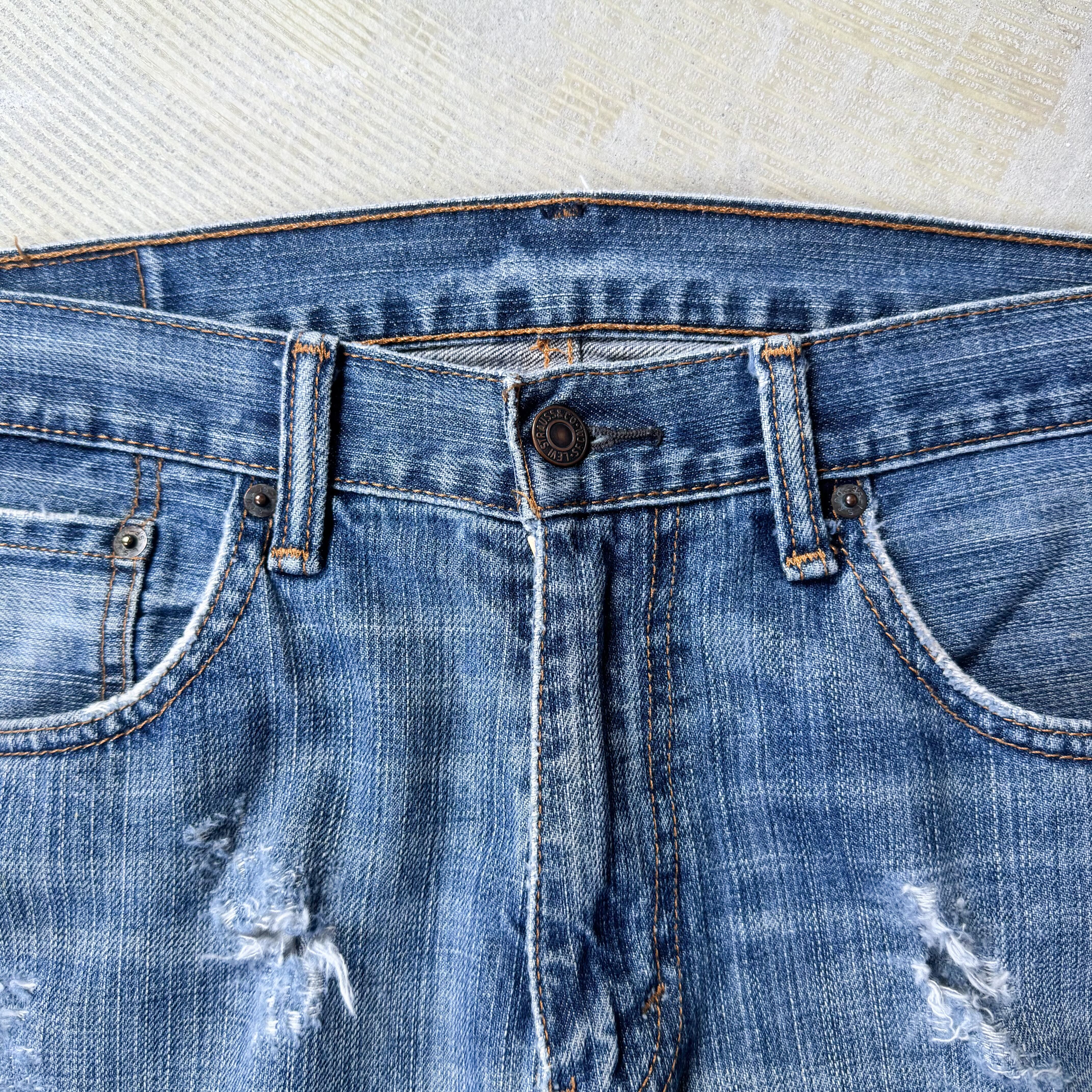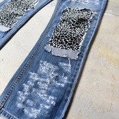 視線を集めるアートピース的な存在のリメイクデニムパンツ。