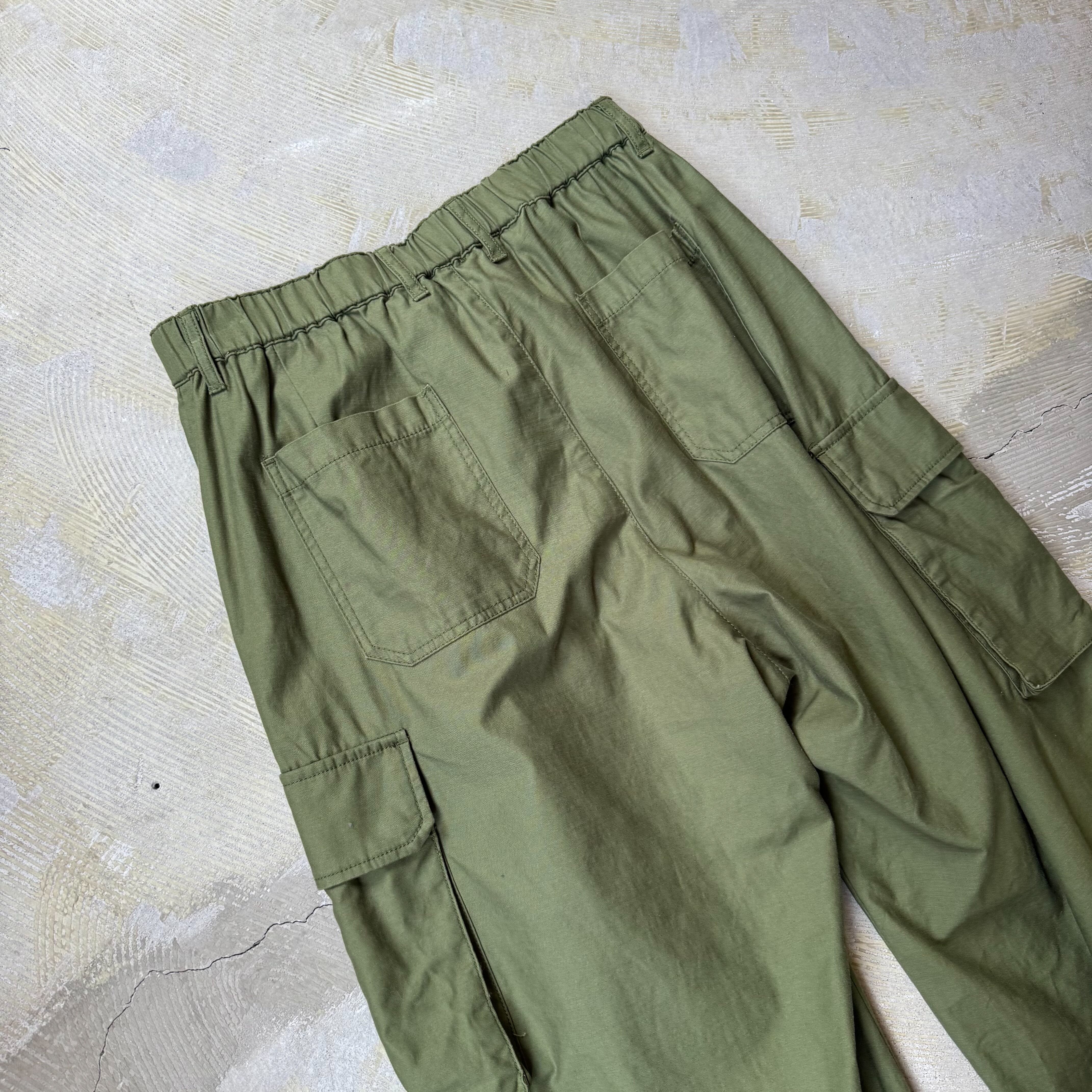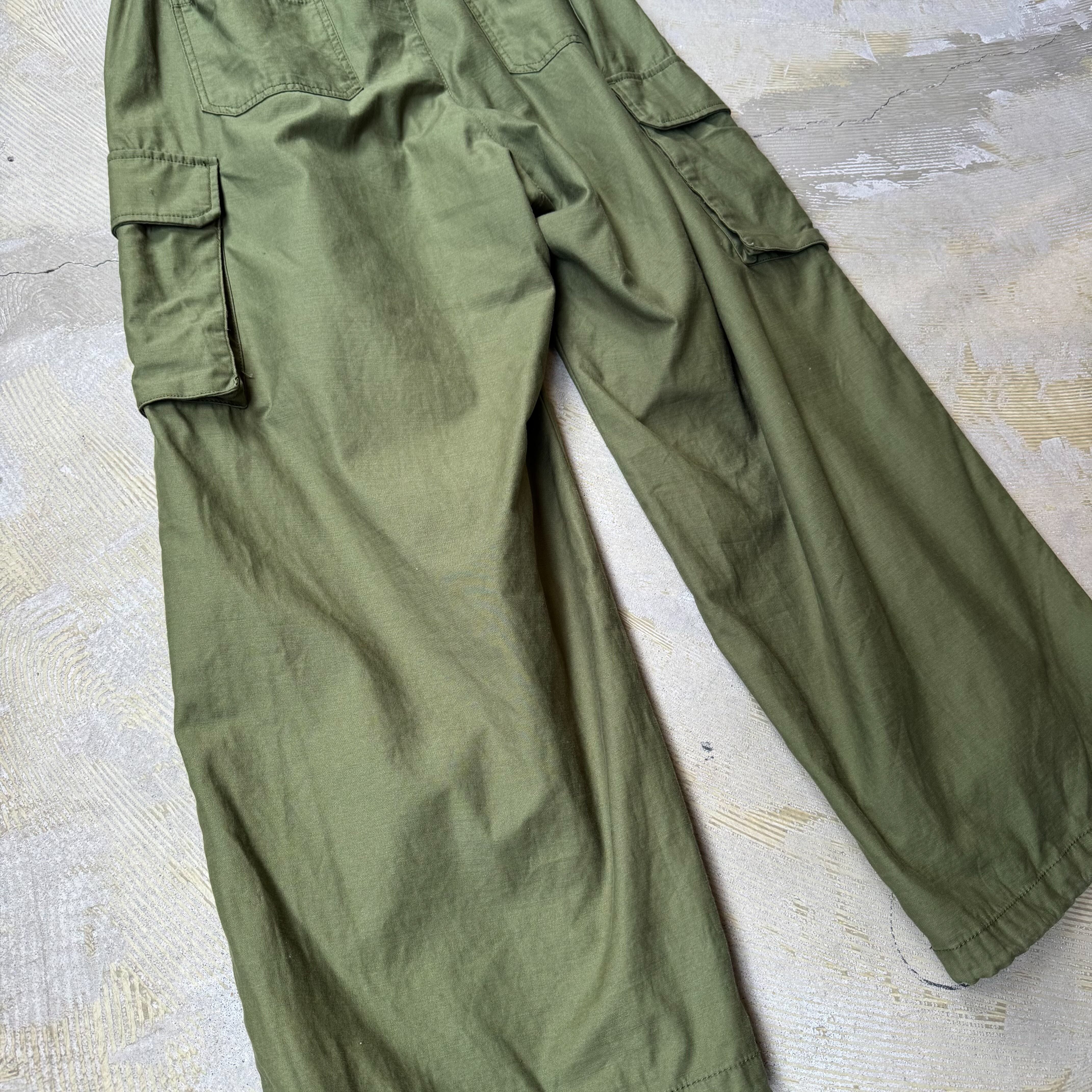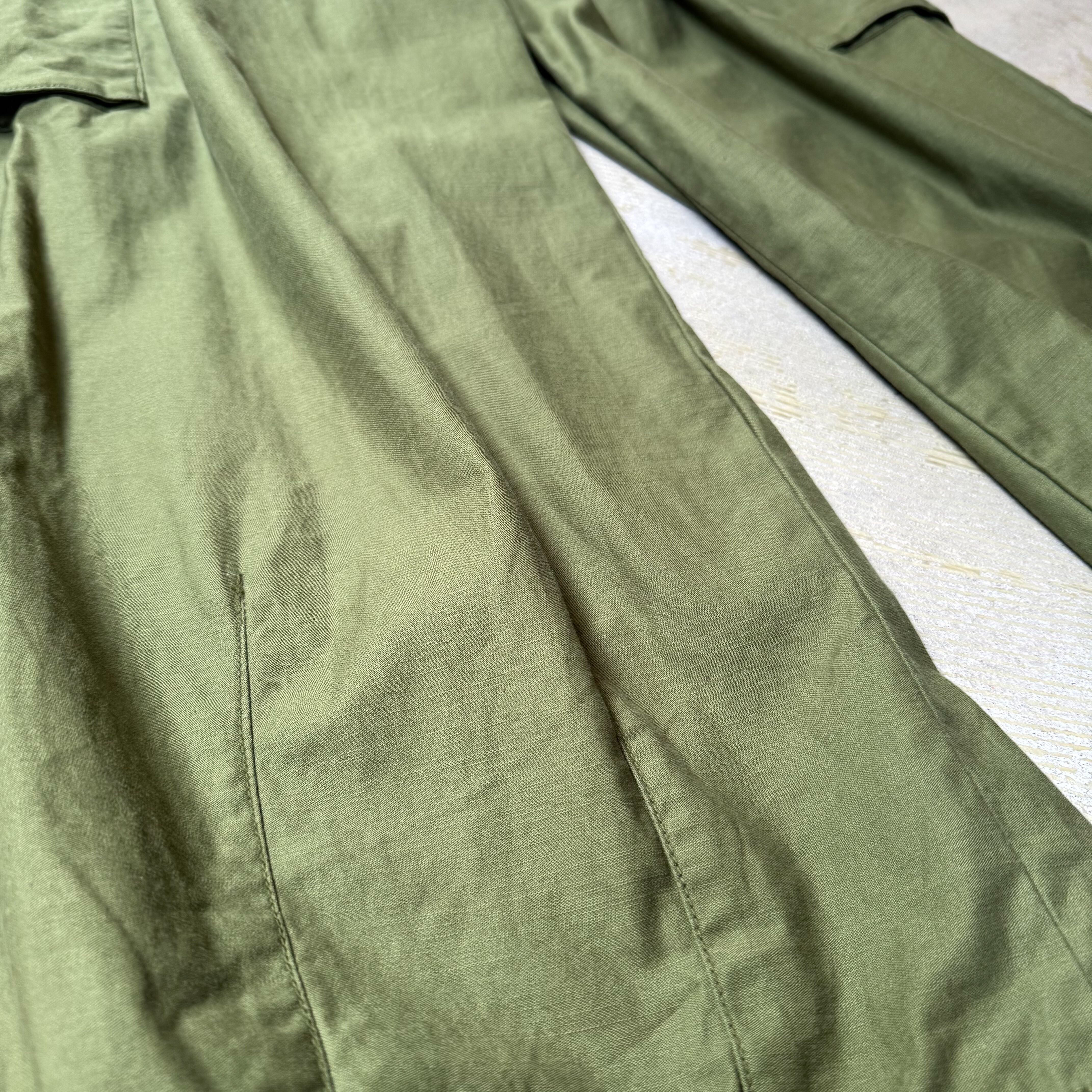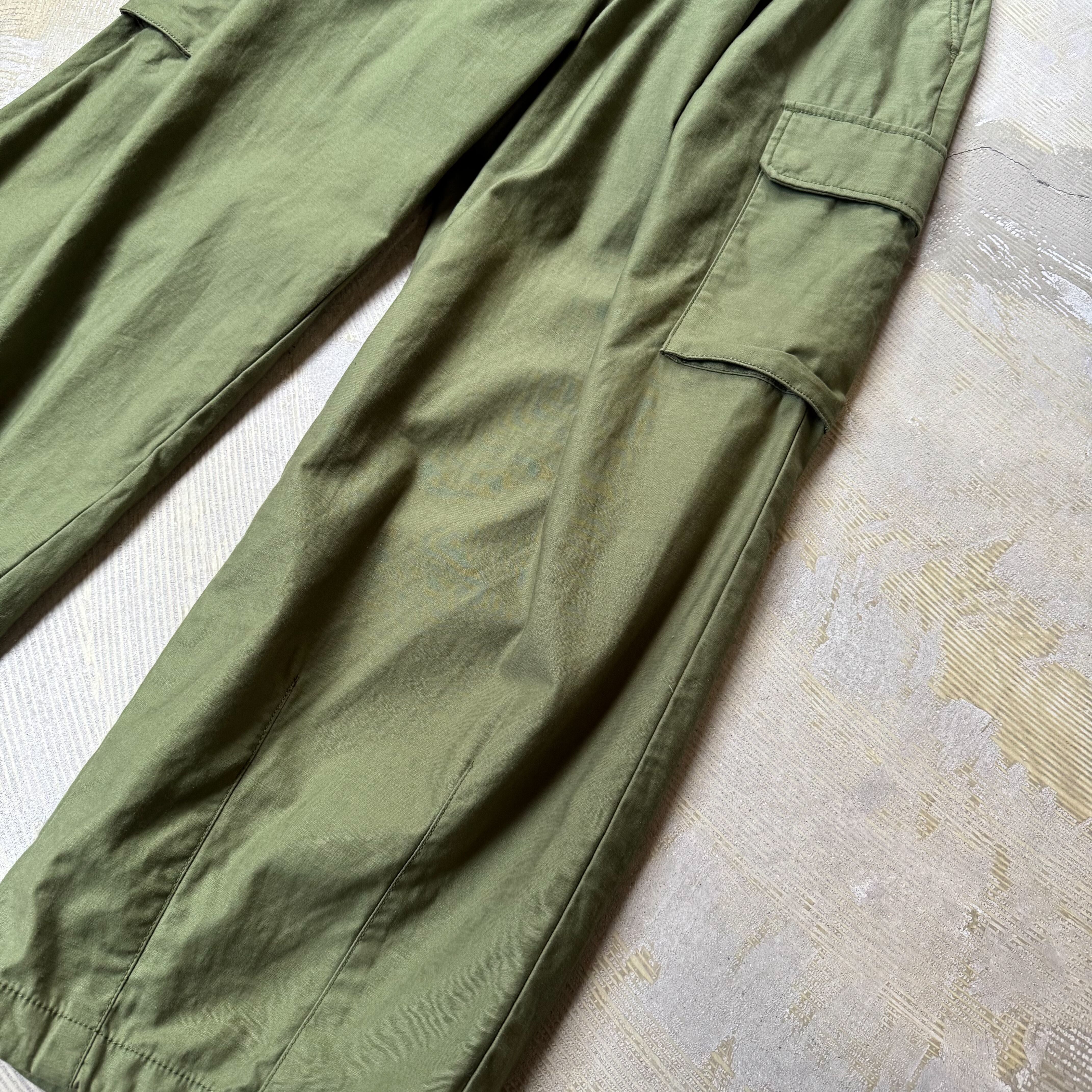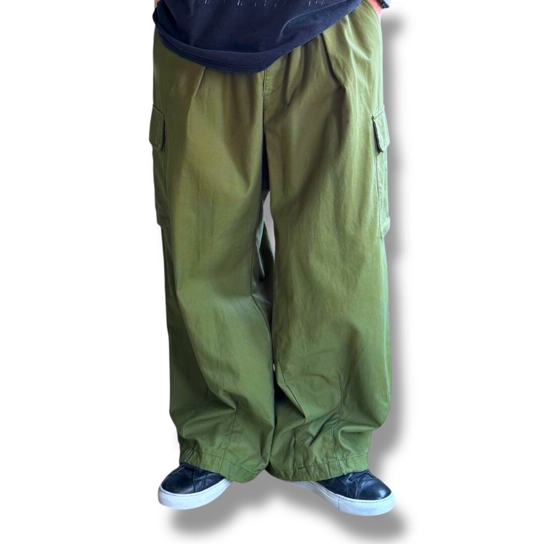 深みのあるオリーブカラーにワイドなシルエット