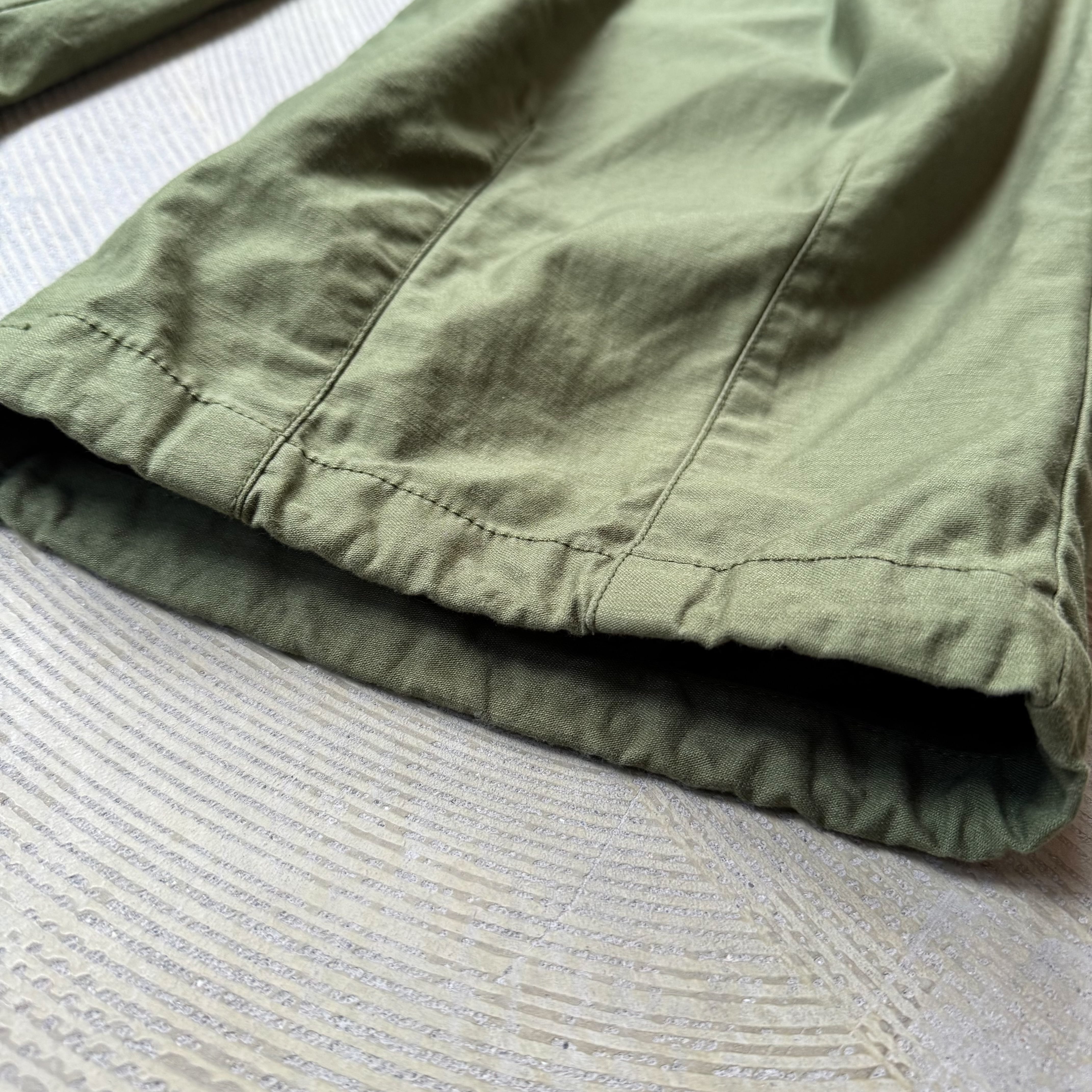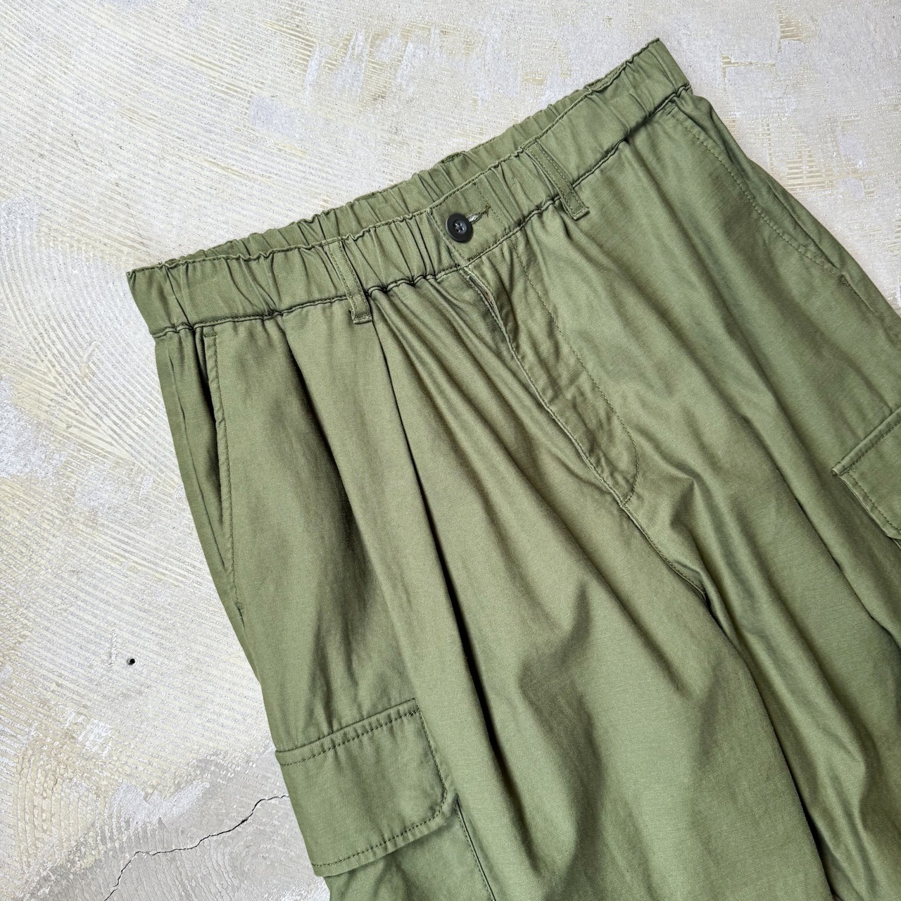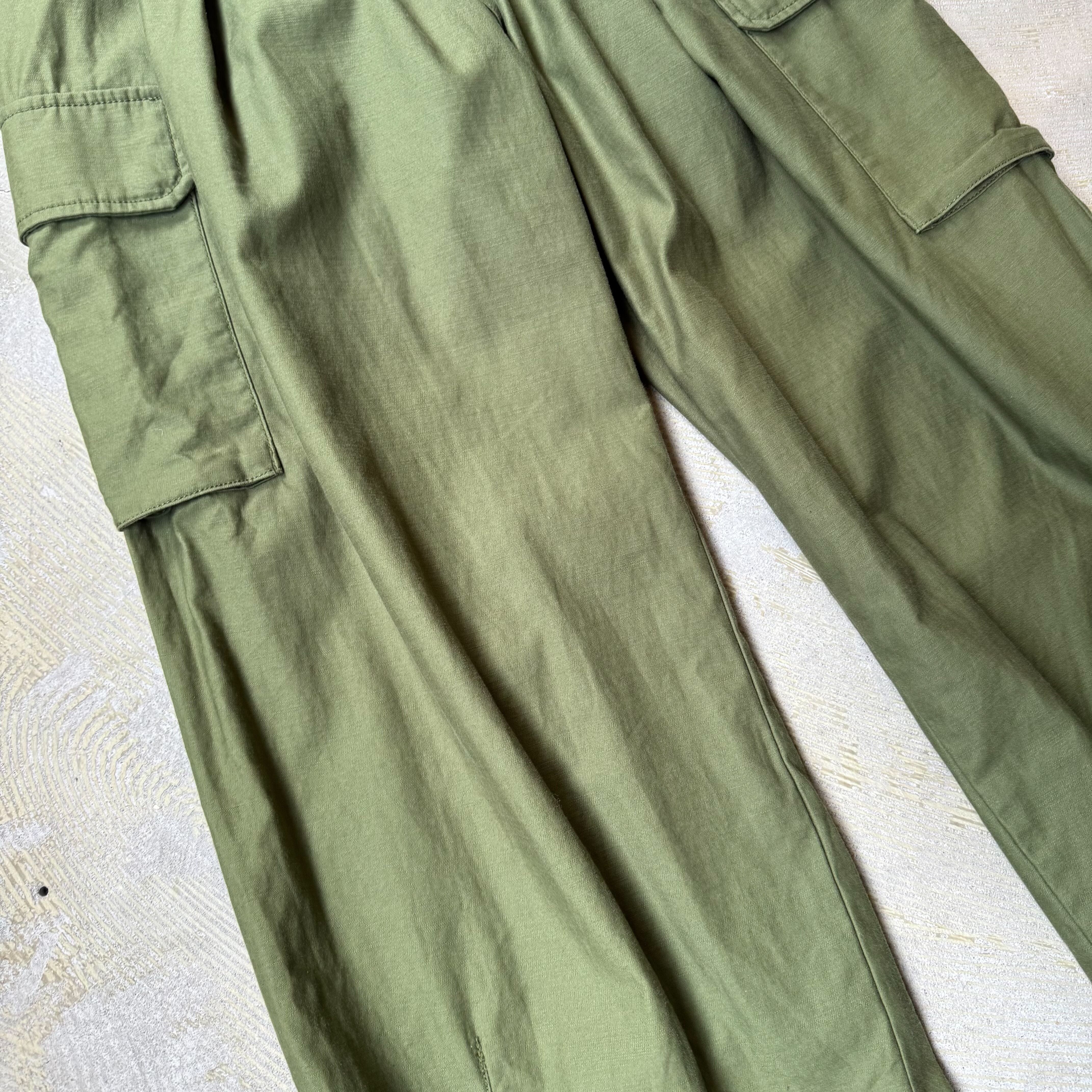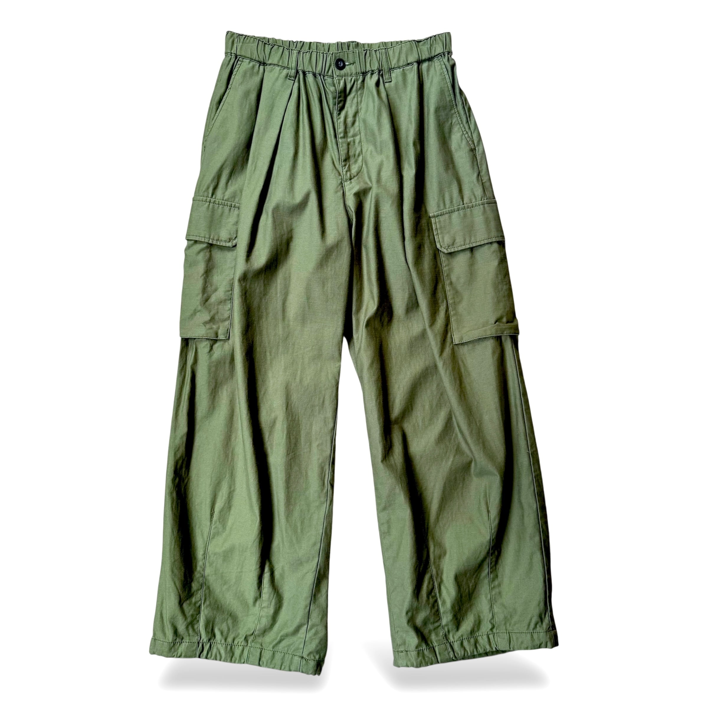 深みのあるオリーブカラーにワイドなシルエット