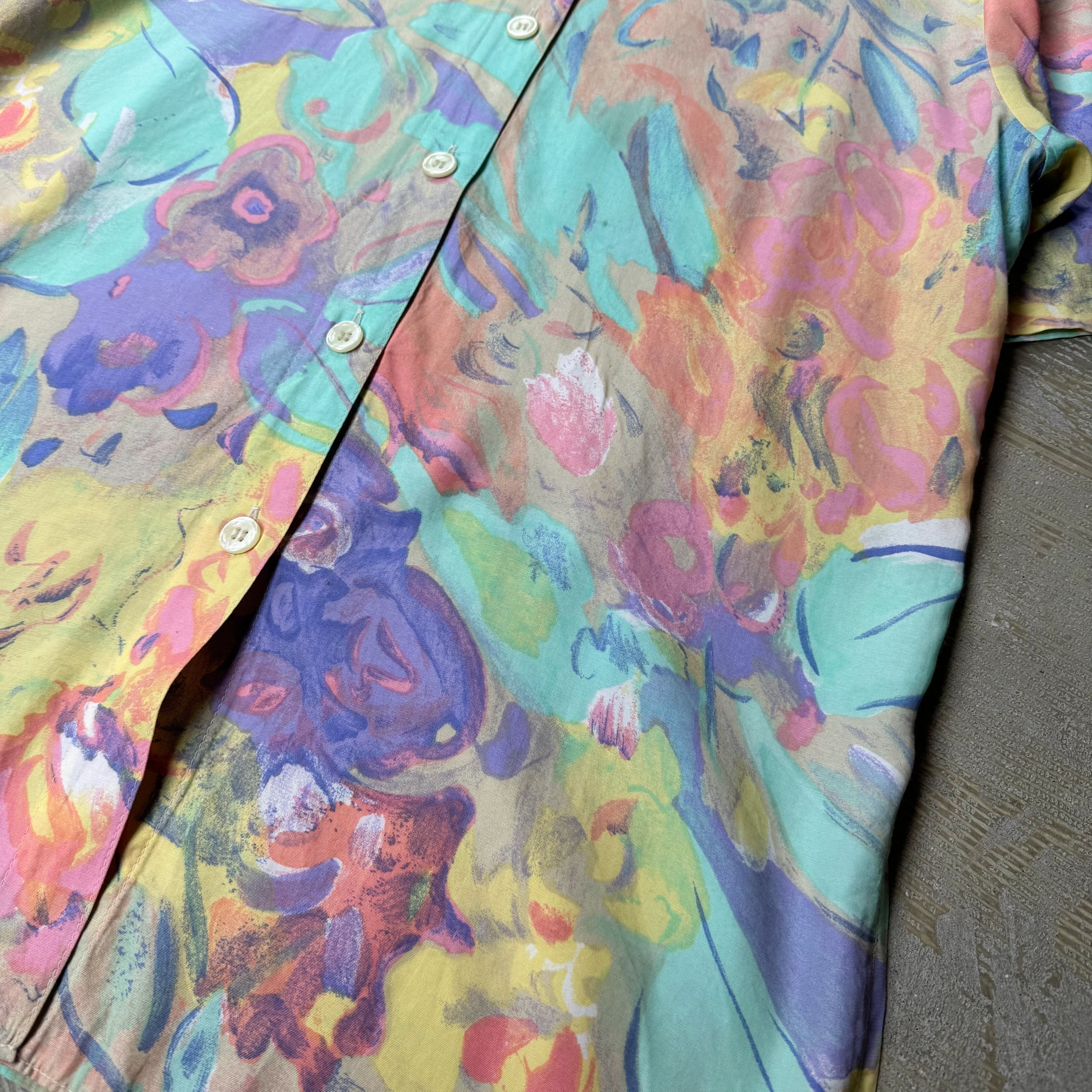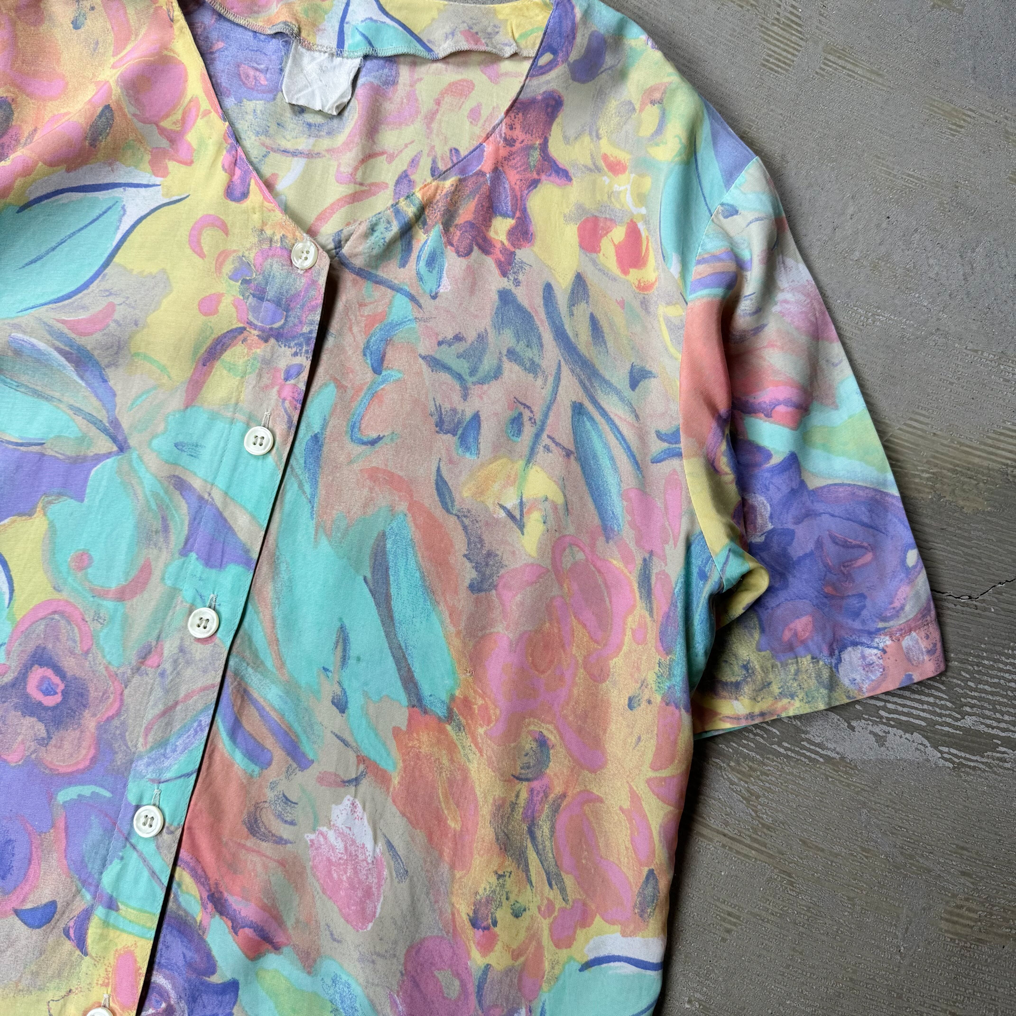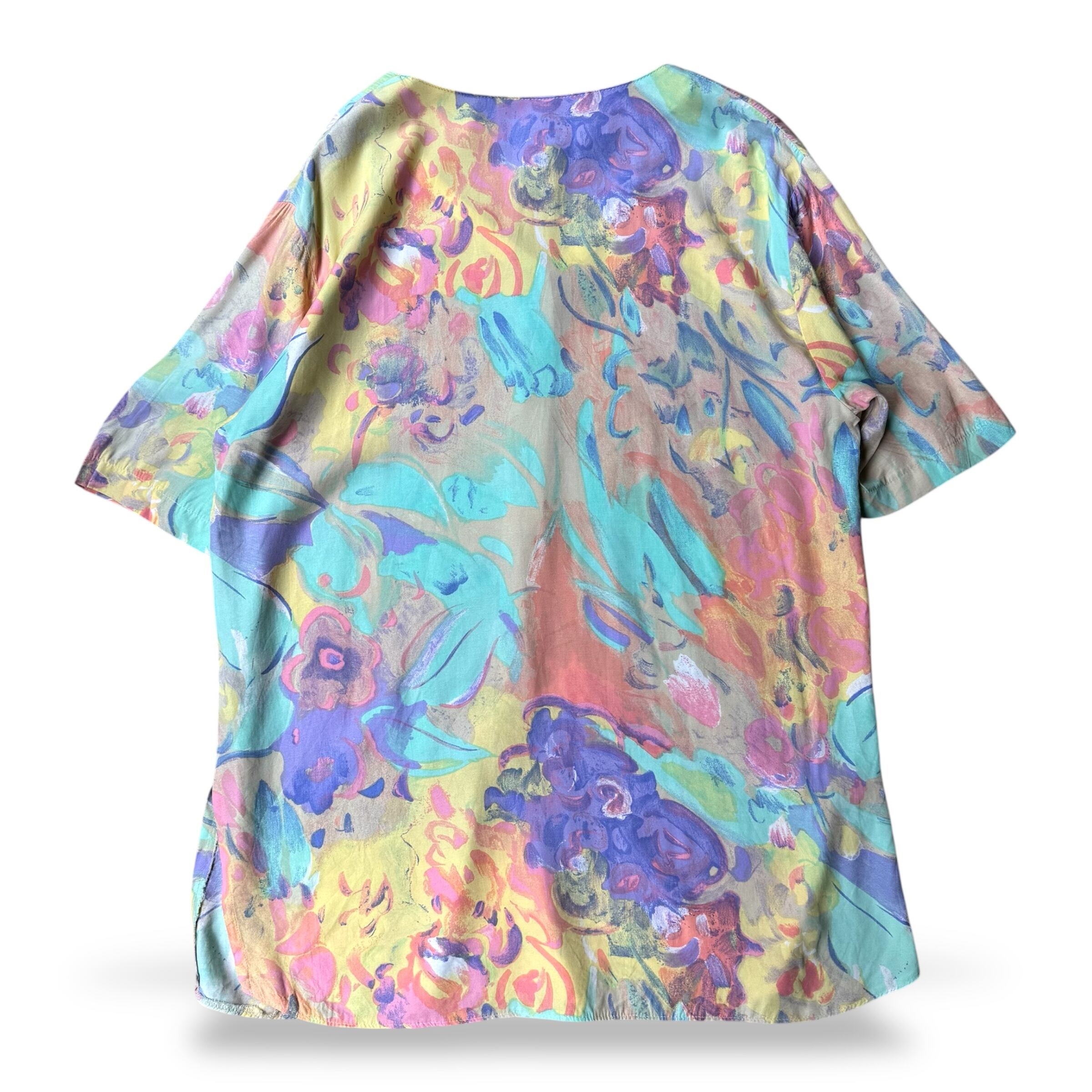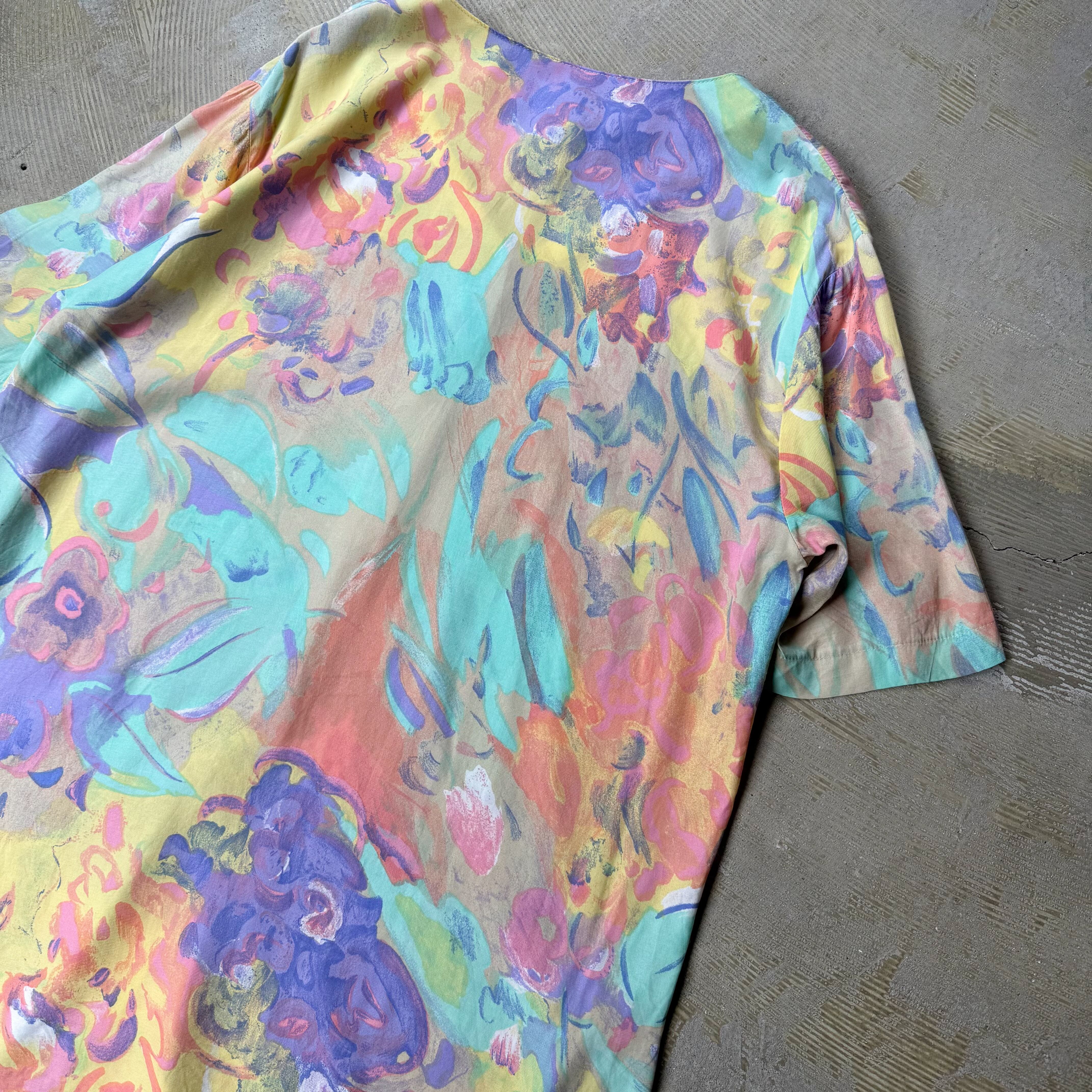 1980~1990's VINTAGE ARTISTIC PASTEL BLOOM PATTERN S/S SHIRT / 80年代 90年代 総柄 アート 抽象 パステル 半袖 シャツ