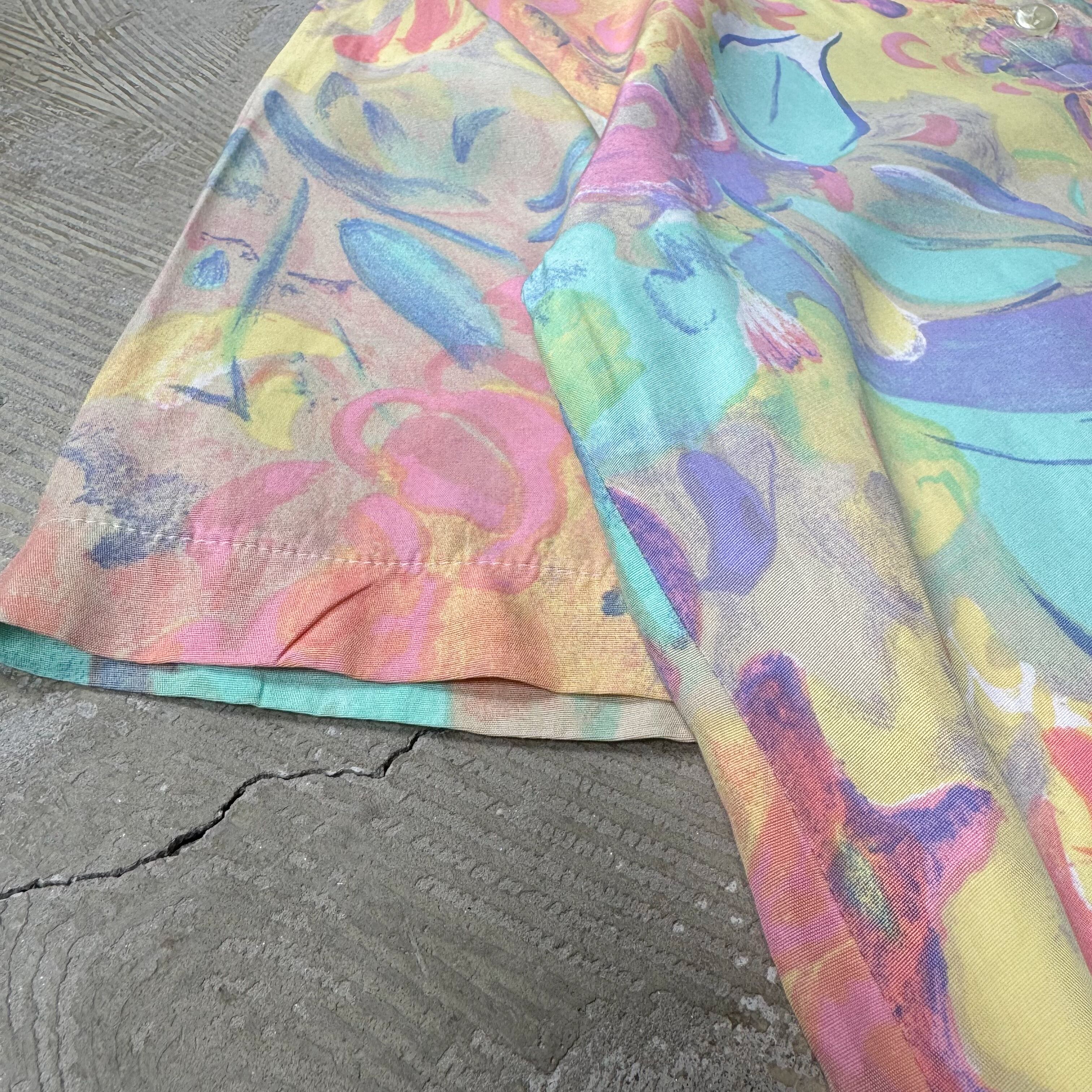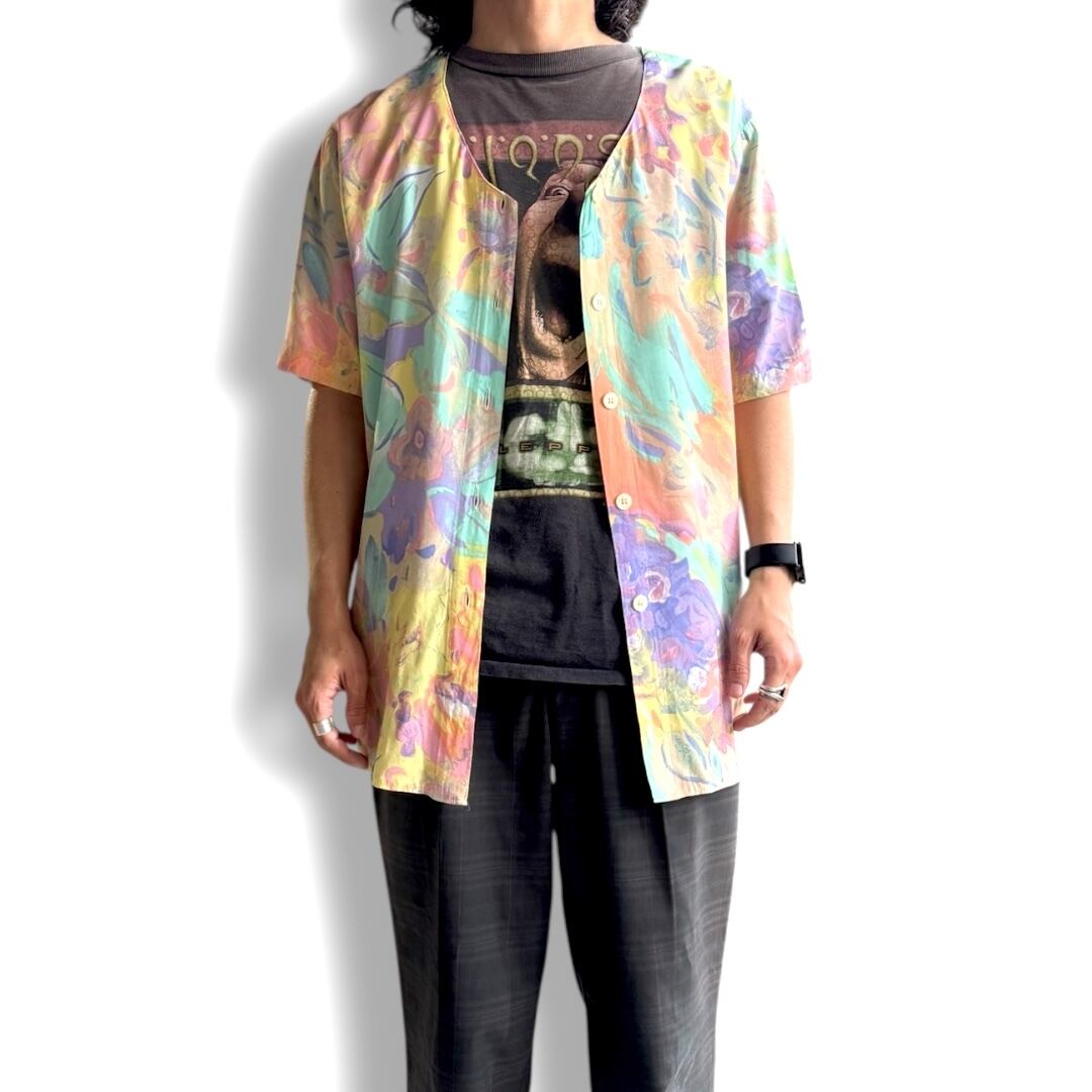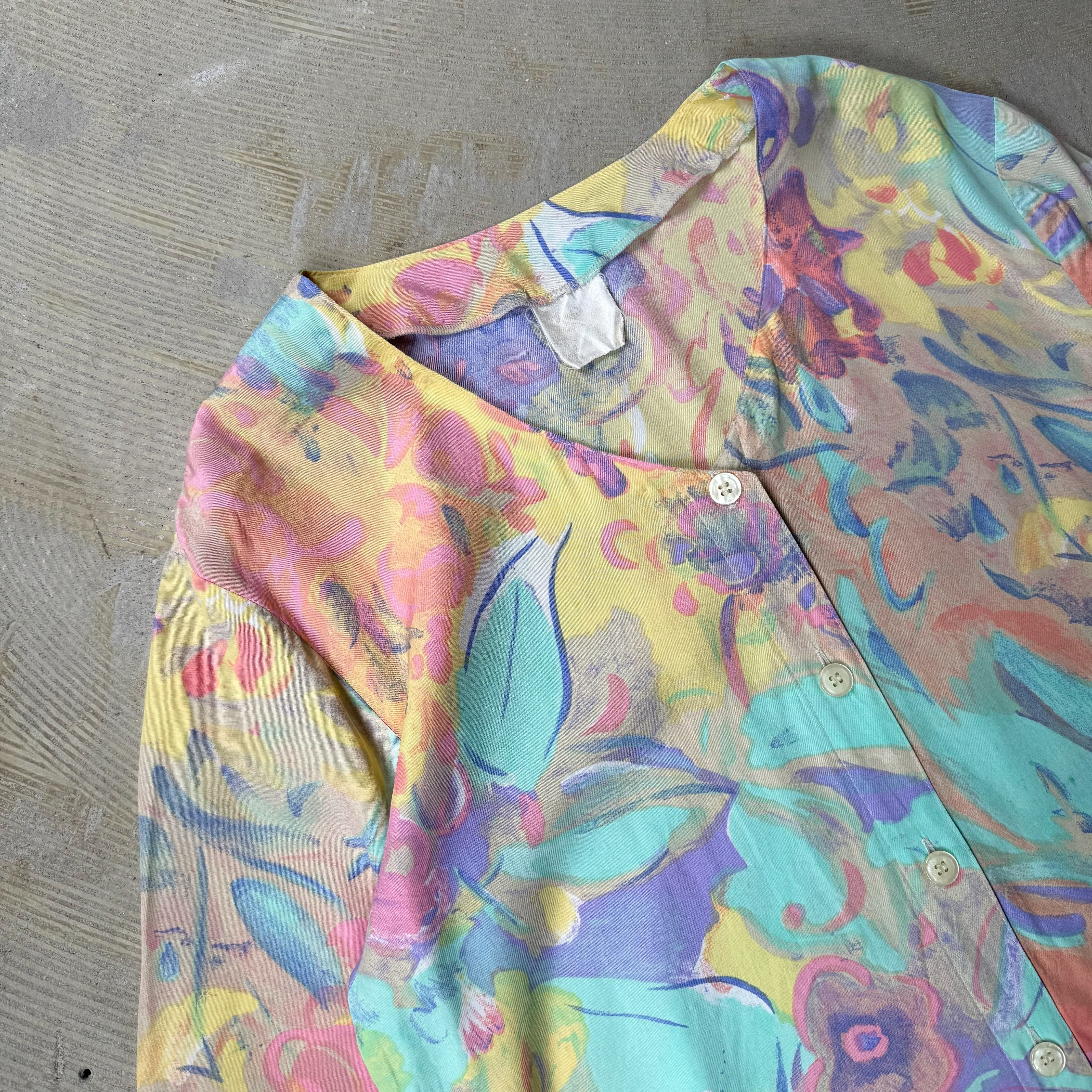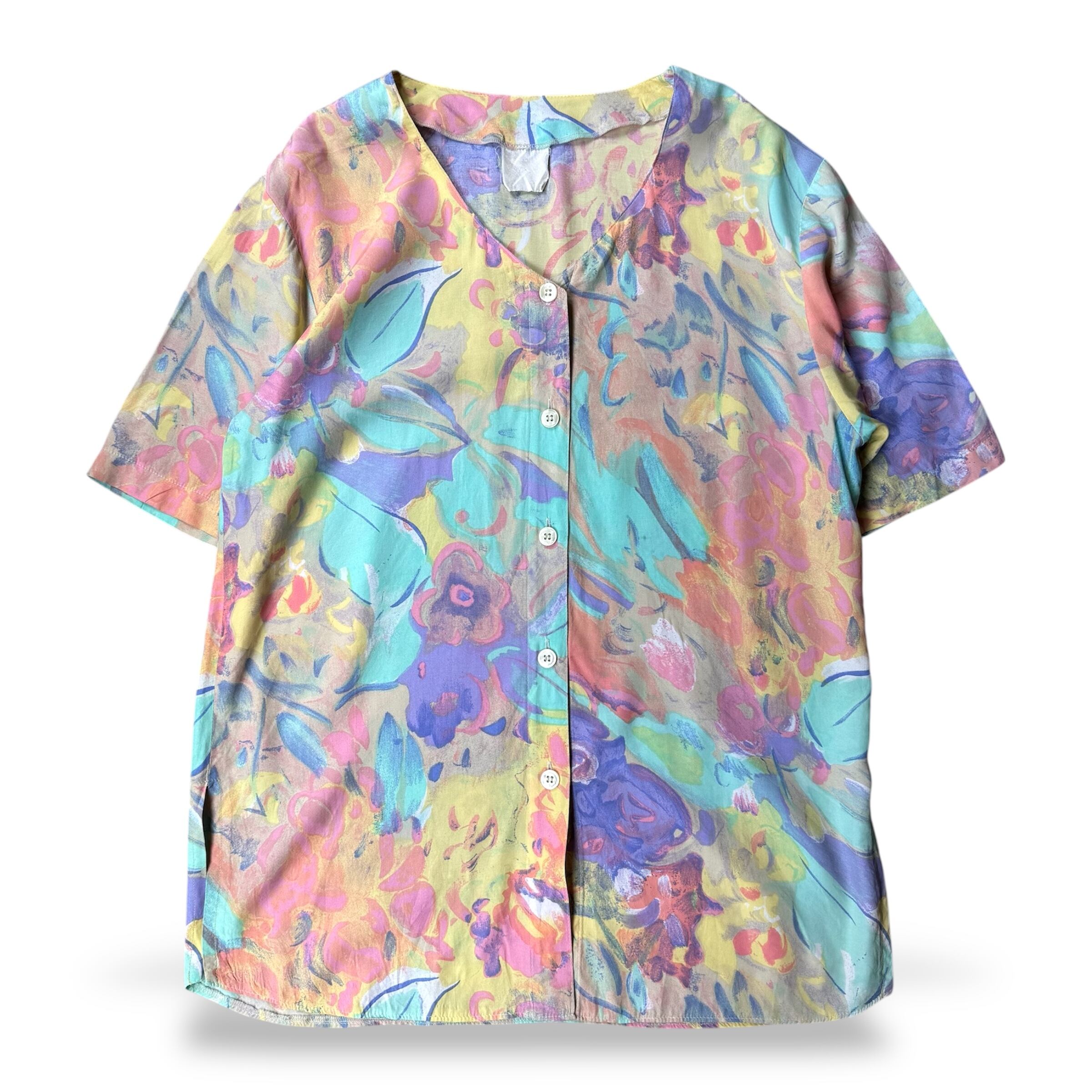 1980~1990's VINTAGE ARTISTIC PASTEL BLOOM PATTERN S/S SHIRT / 80年代 90年代 総柄 アート 抽象 パステル 半袖 シャツ