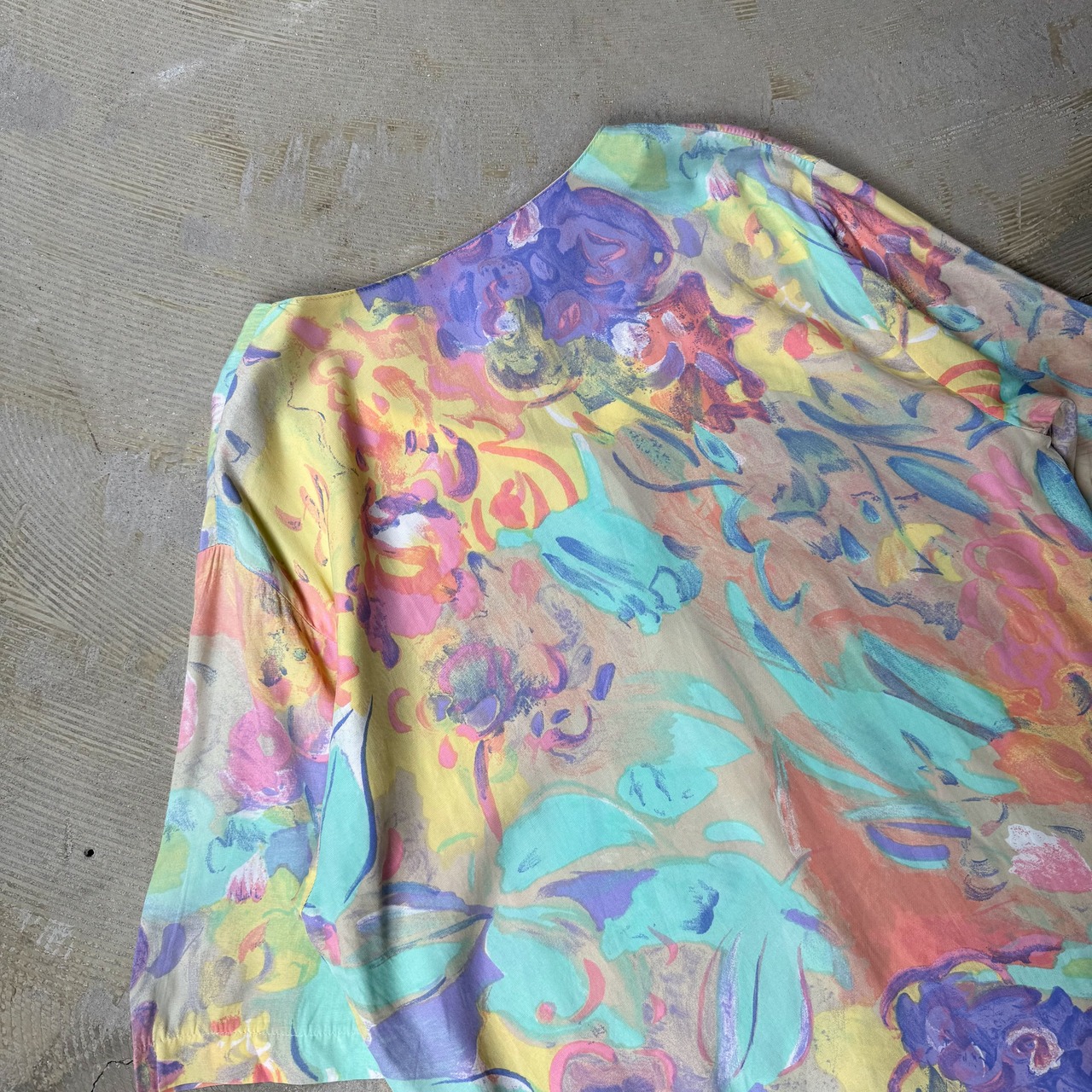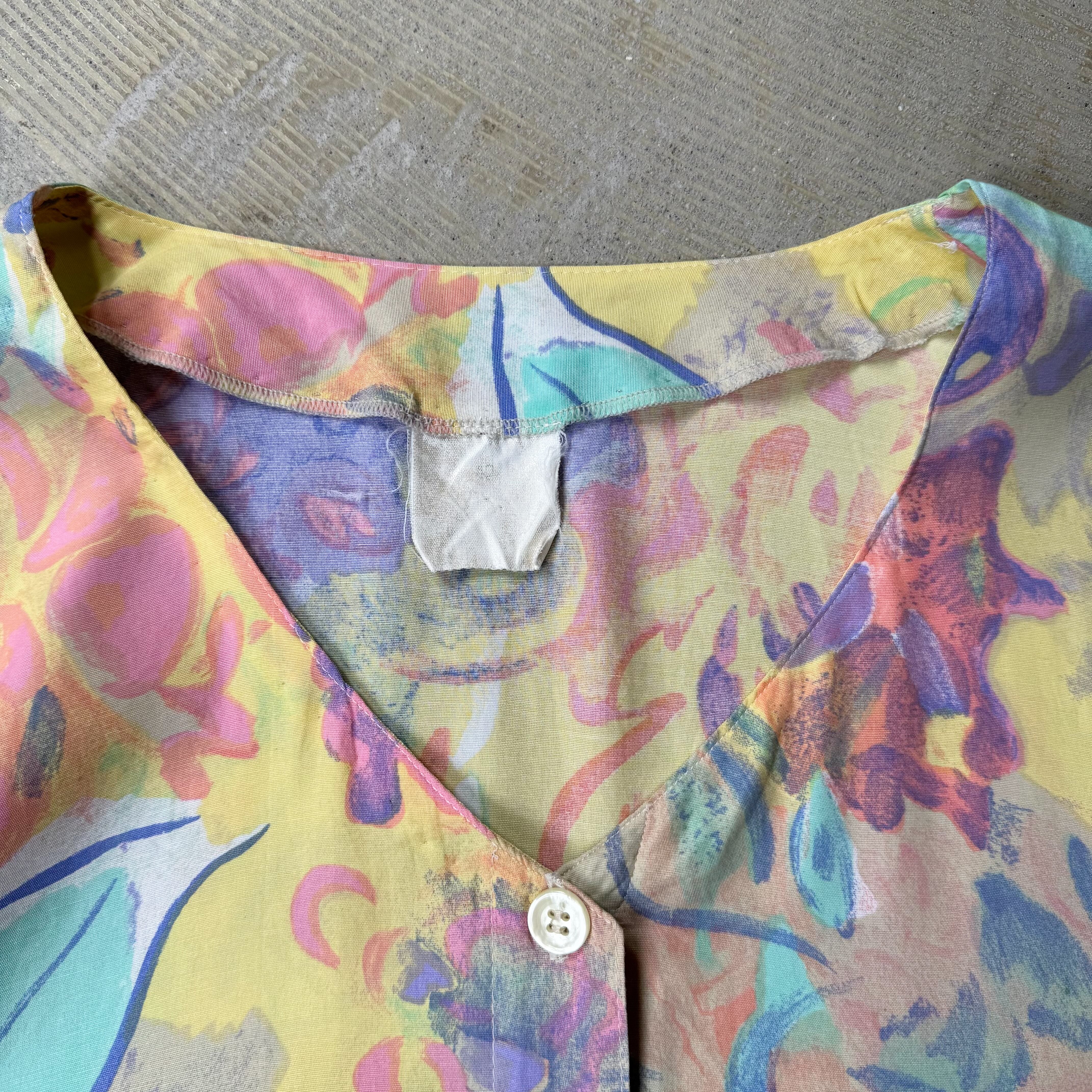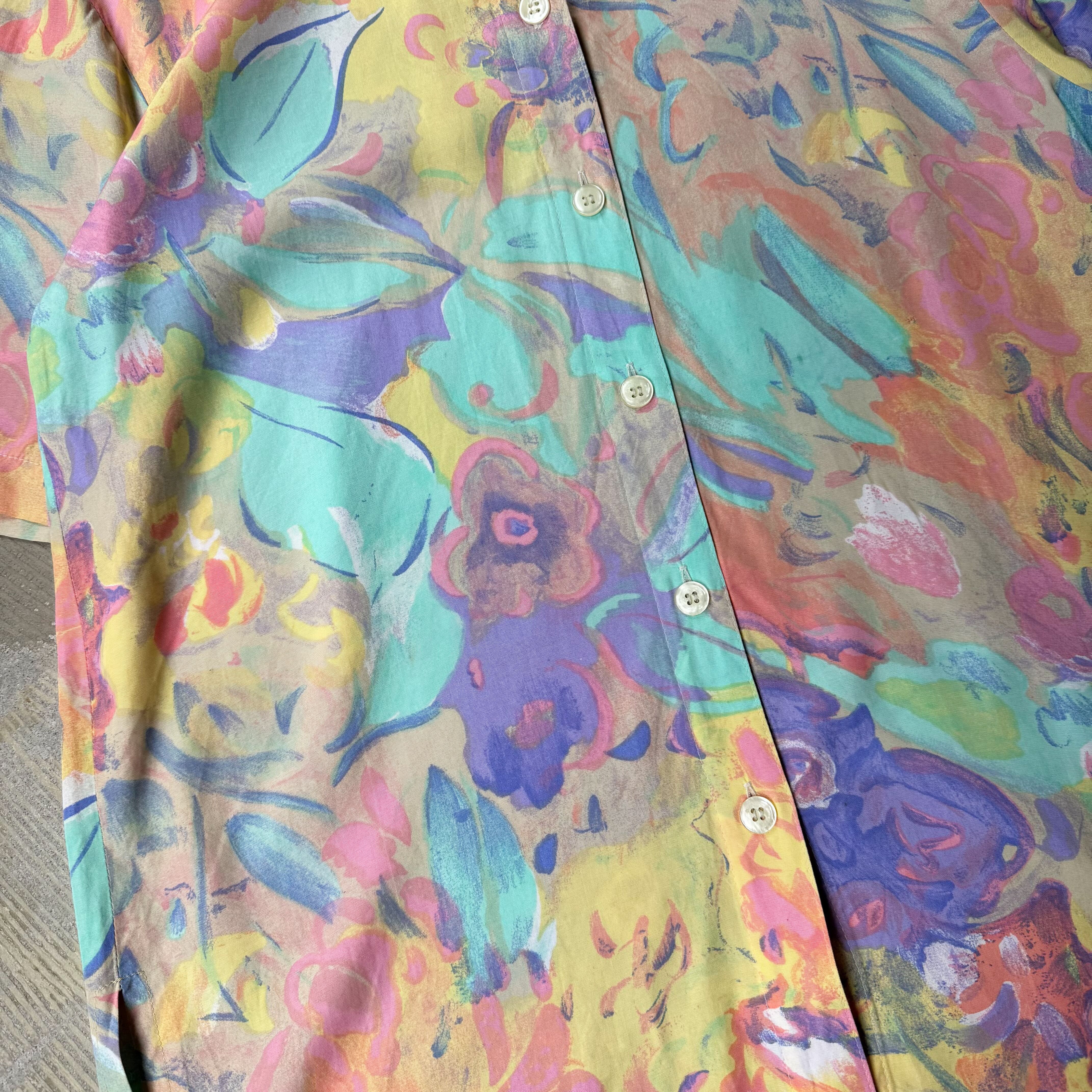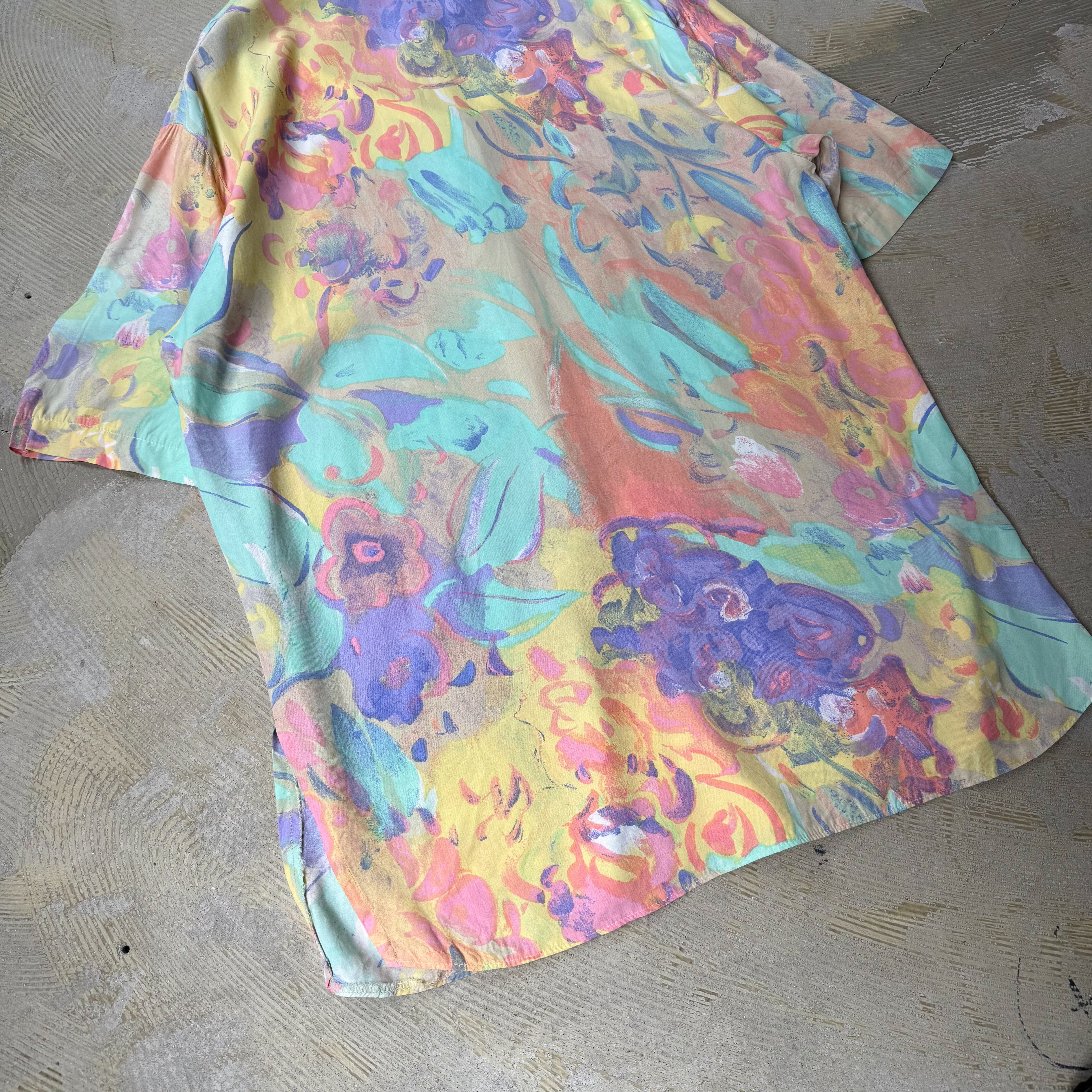 1980~1990's VINTAGE ARTISTIC PASTEL BLOOM PATTERN S/S SHIRT / 80年代 90年代 総柄 アート 抽象 パステル 半袖 シャツ