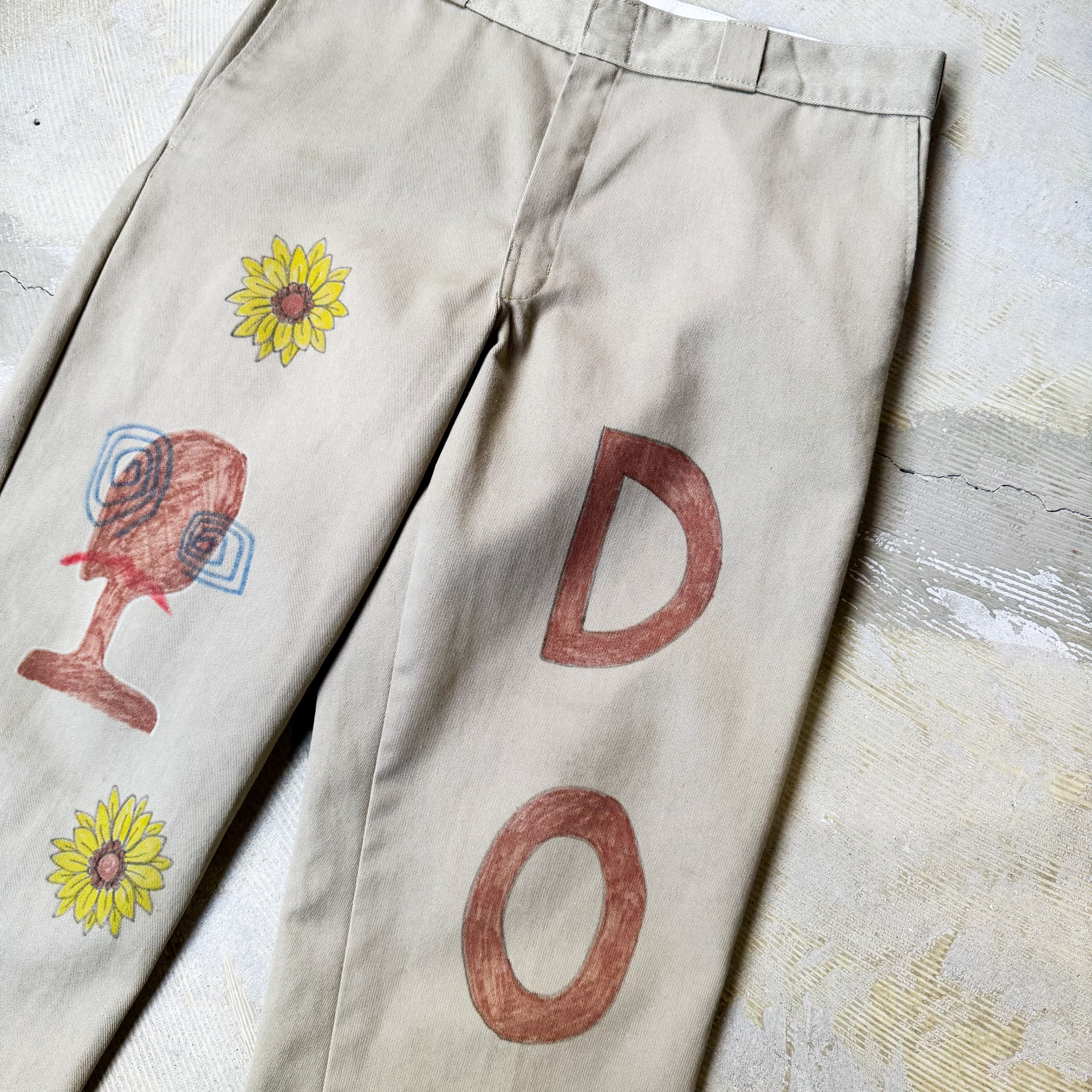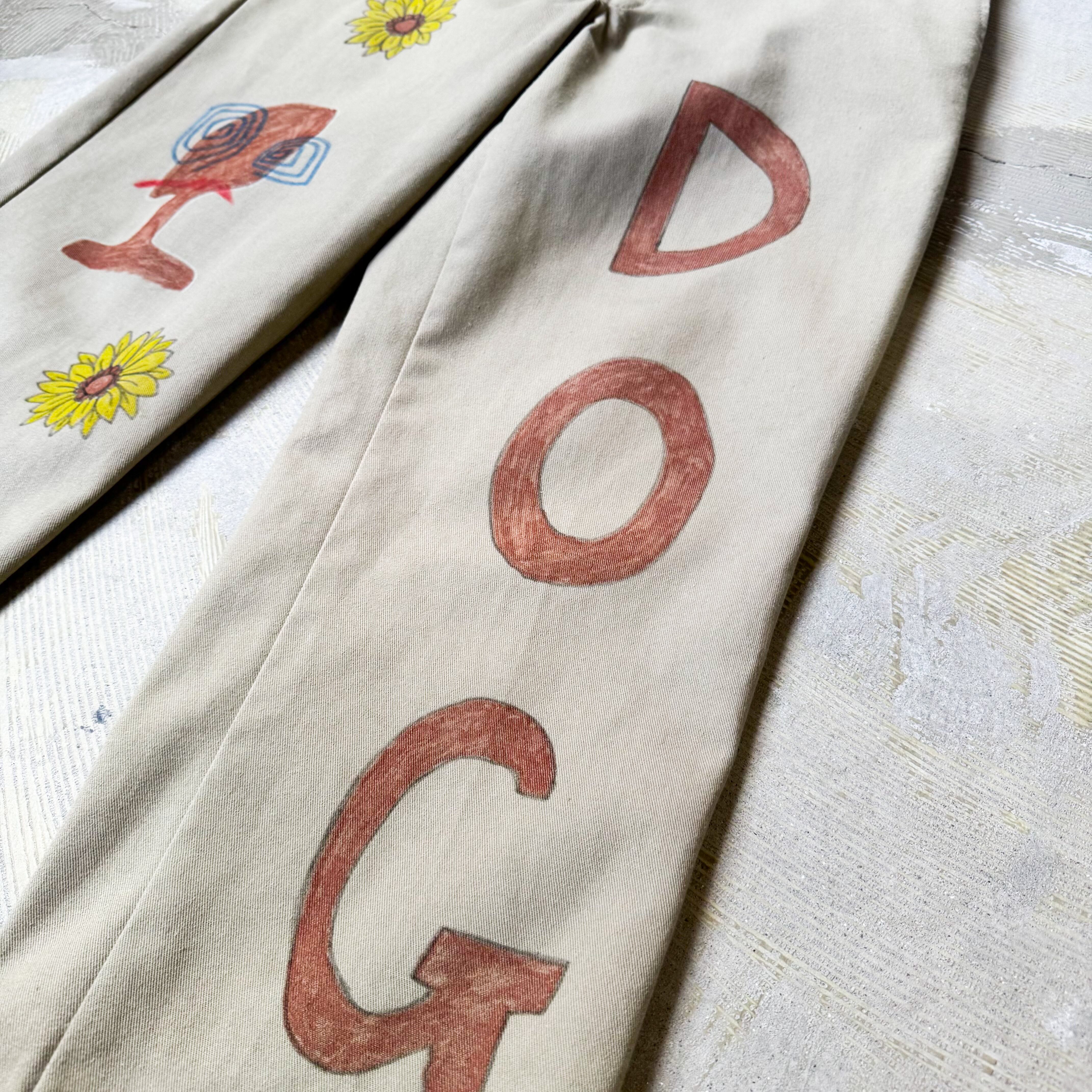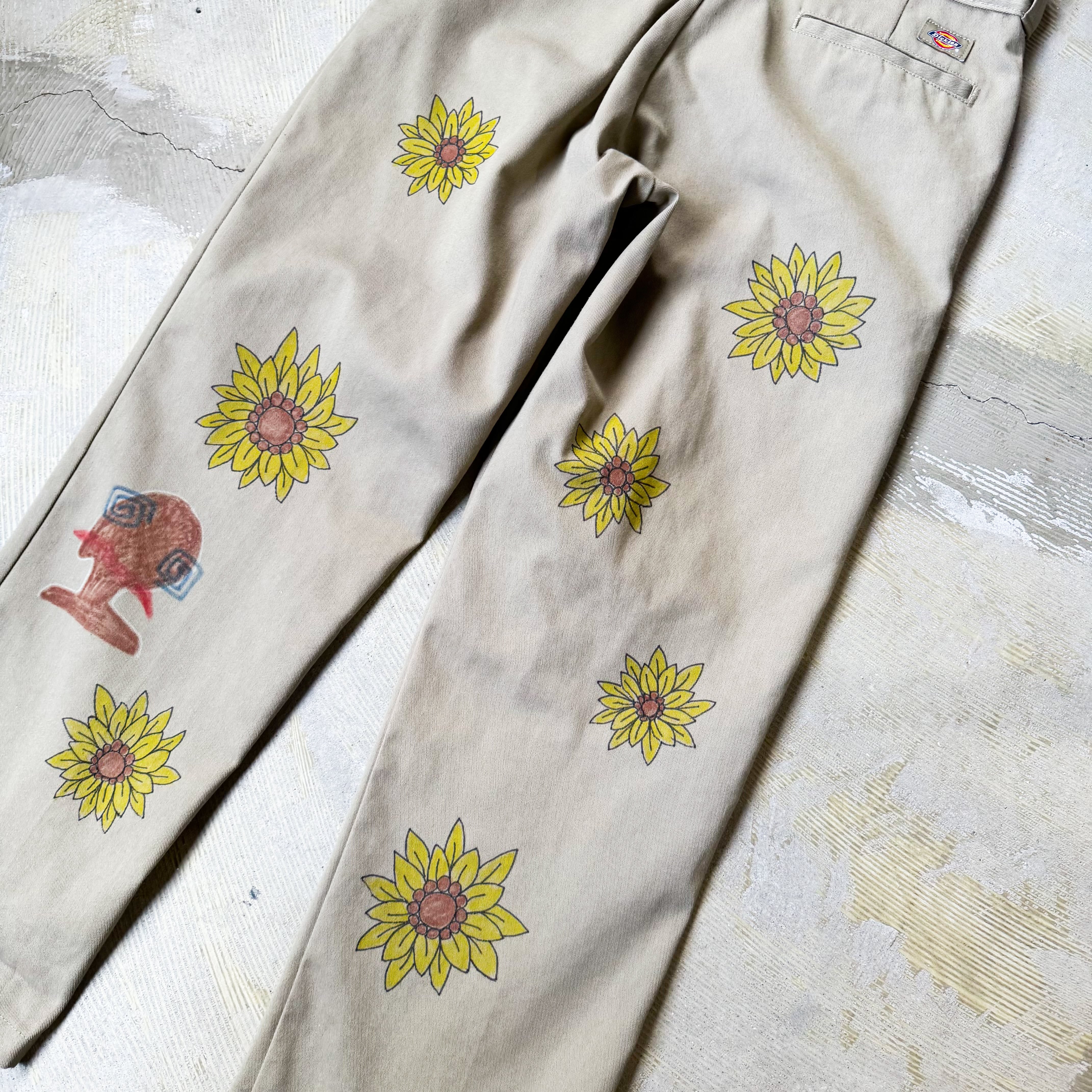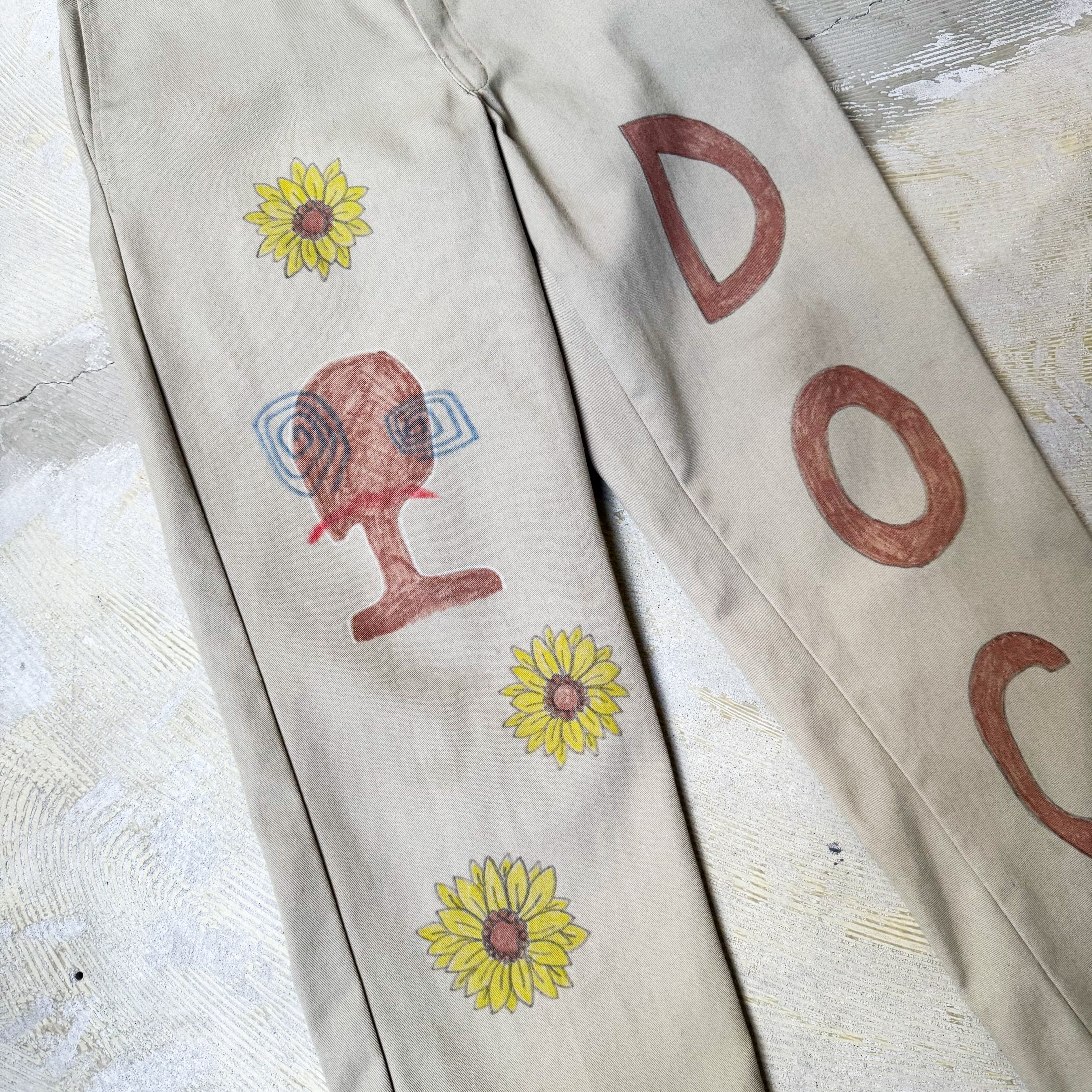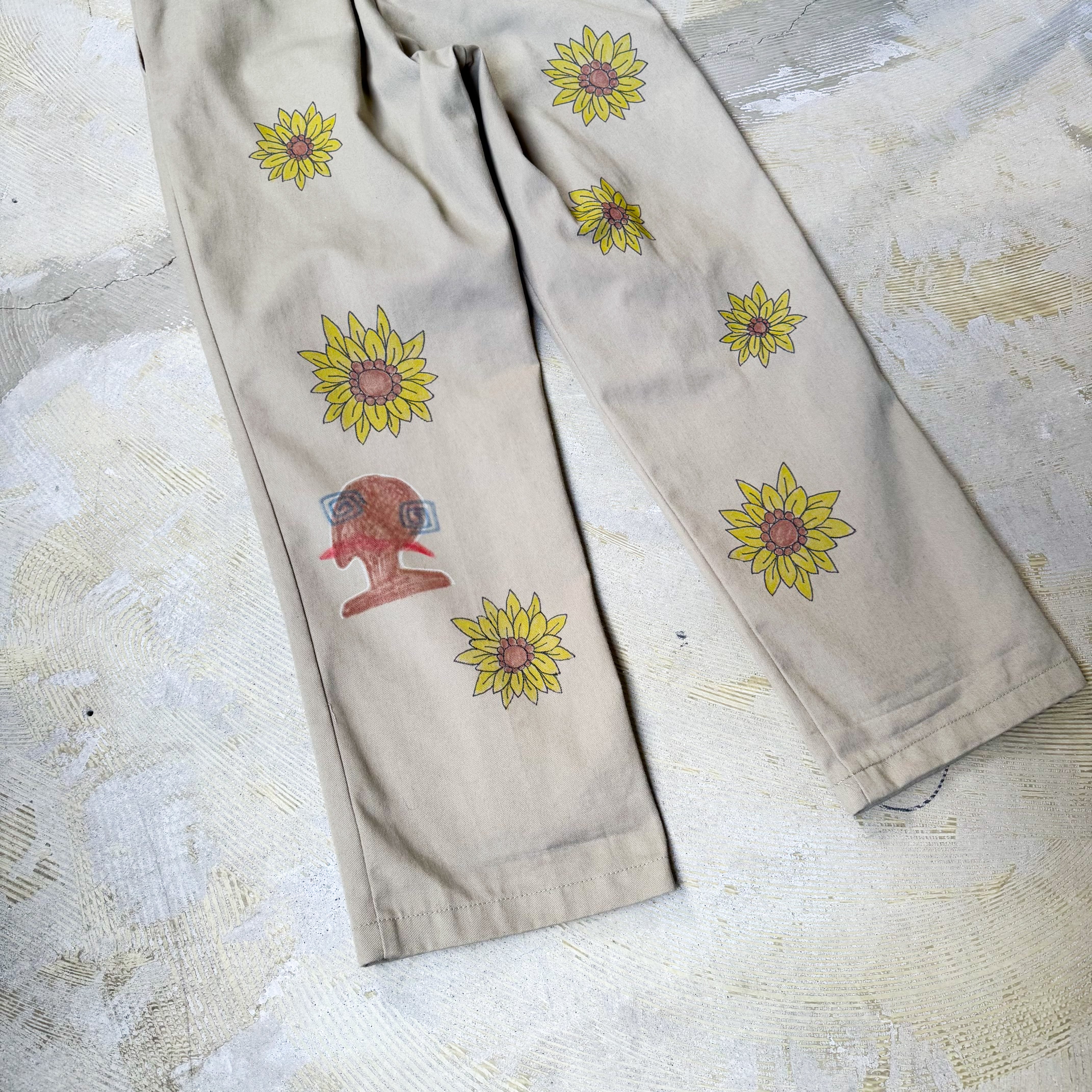 HAND PAINT SUNFLOWERS PATTERN DESIGN PANTS / ハンド ペイント ひまわり 柄 落書き メモリアル チノ パンツ