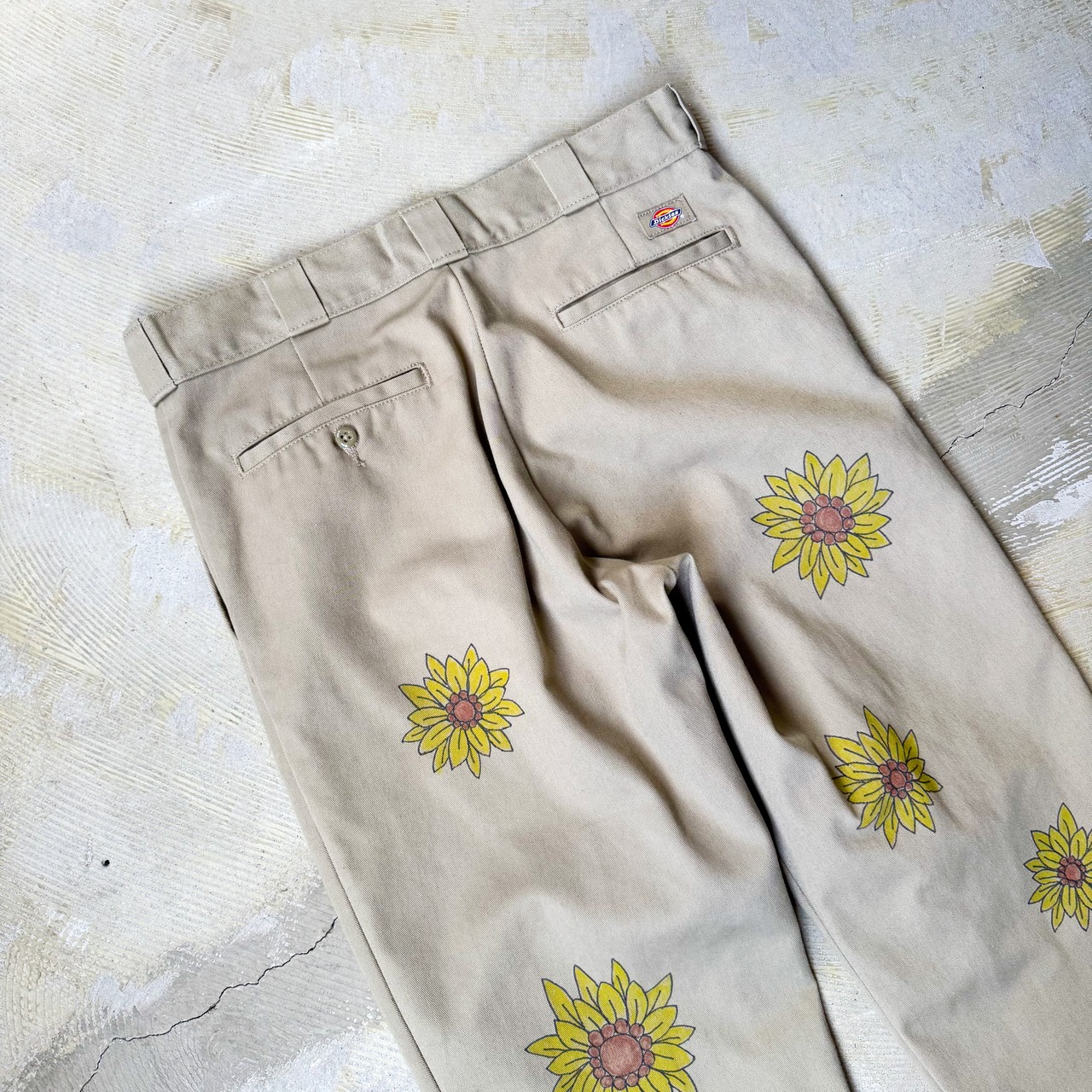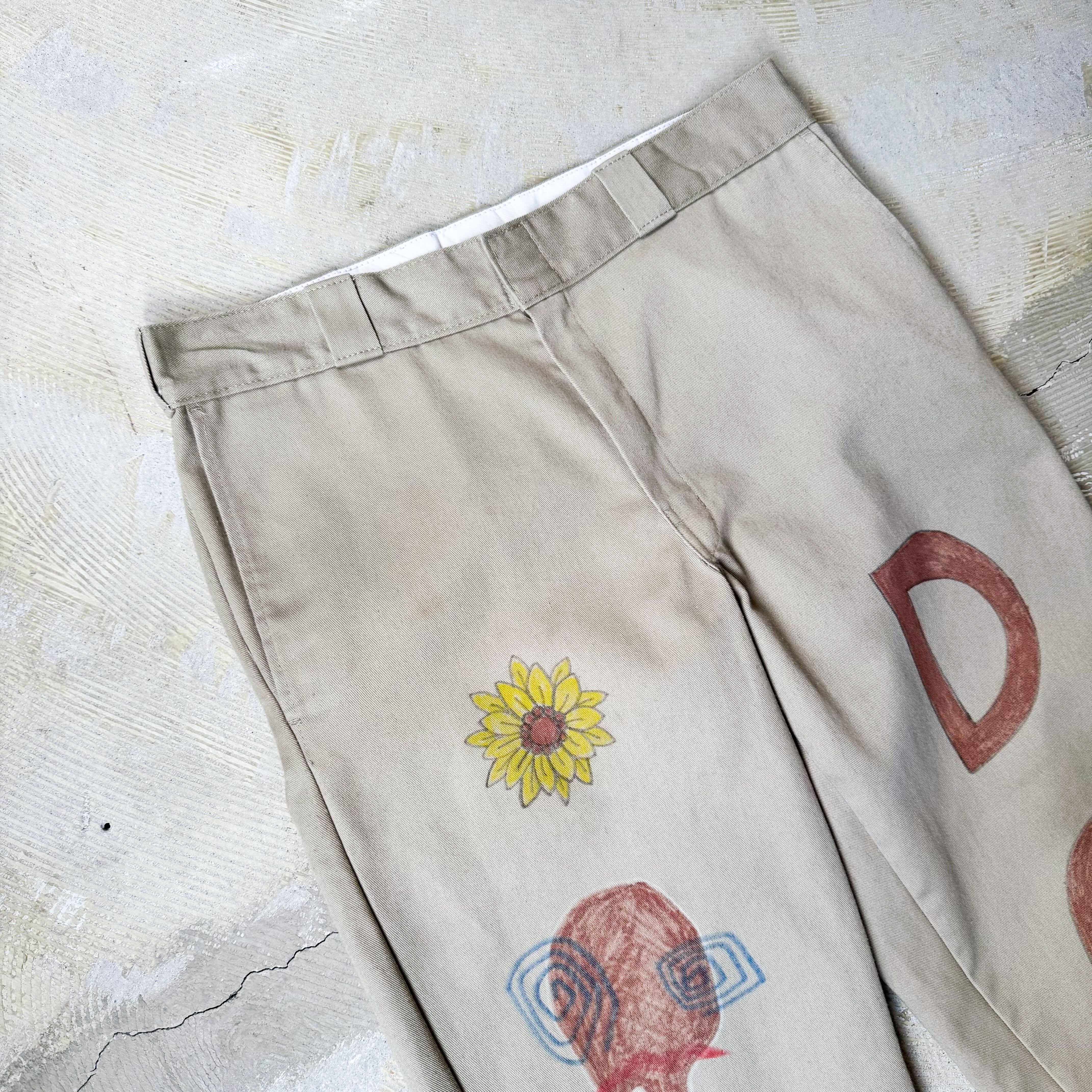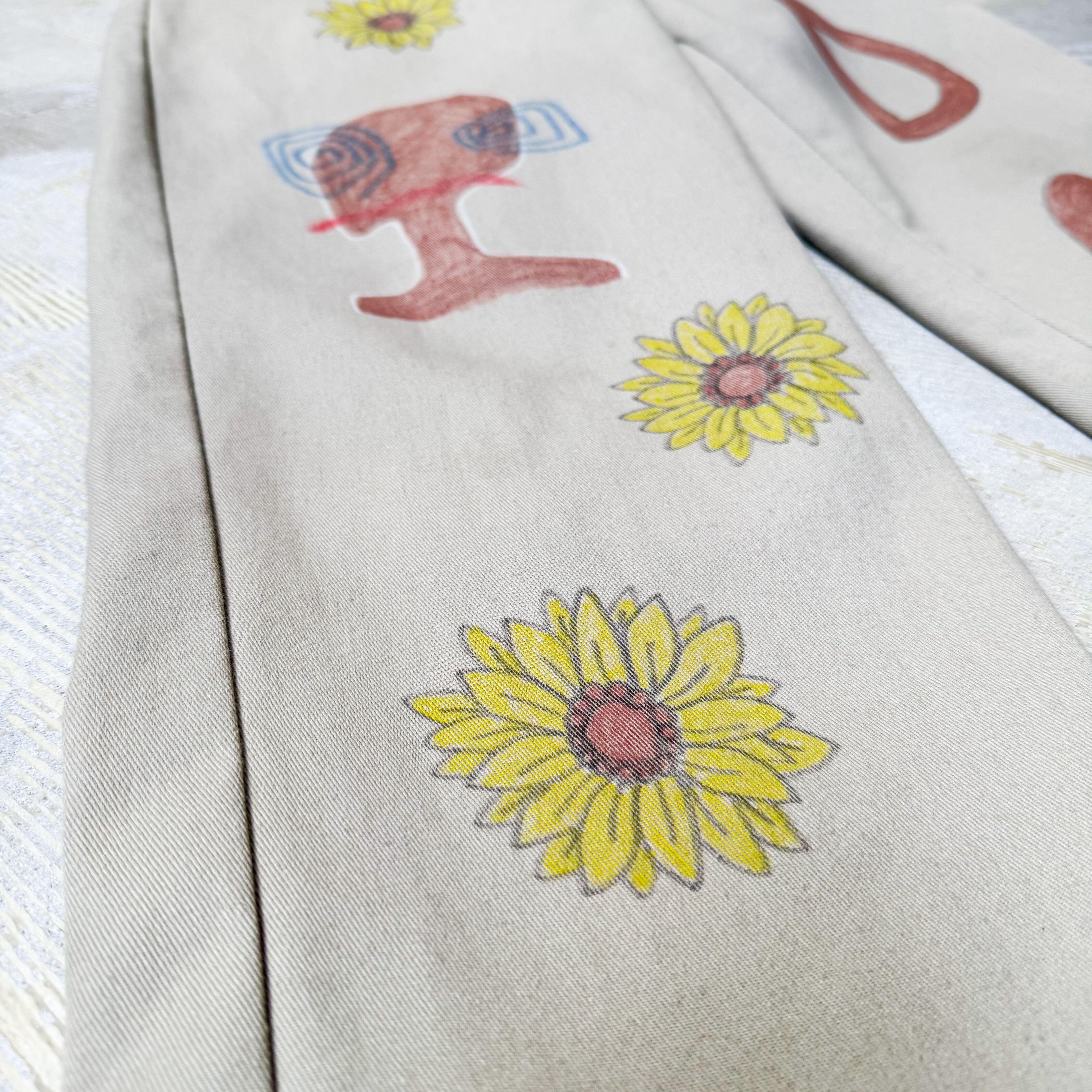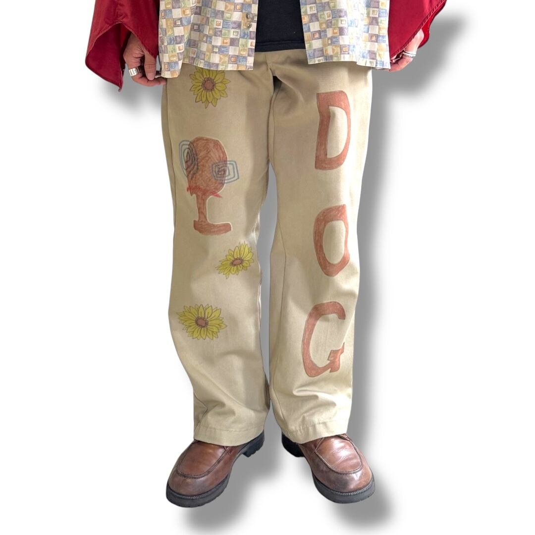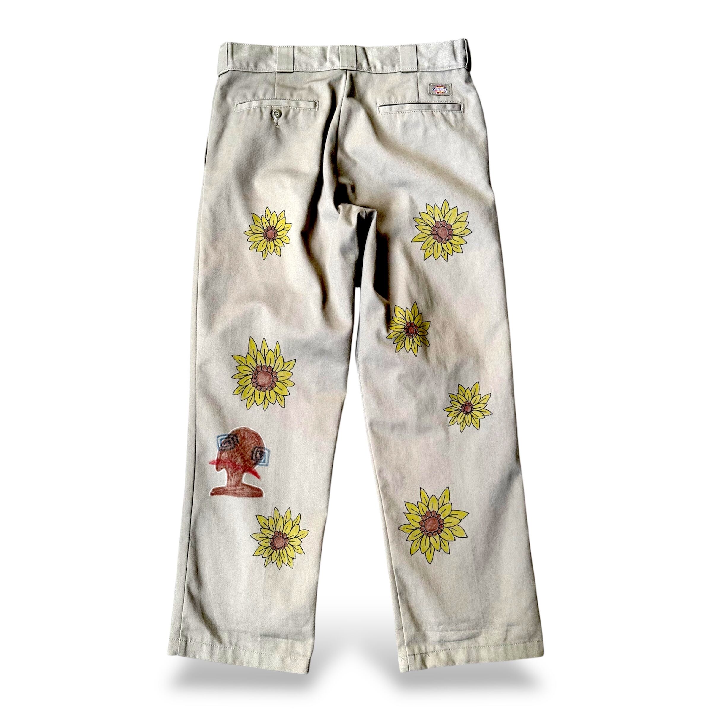 HAND PAINT SUNFLOWERS PATTERN DESIGN PANTS / ハンド ペイント ひまわり 柄 落書き メモリアル チノ パンツ