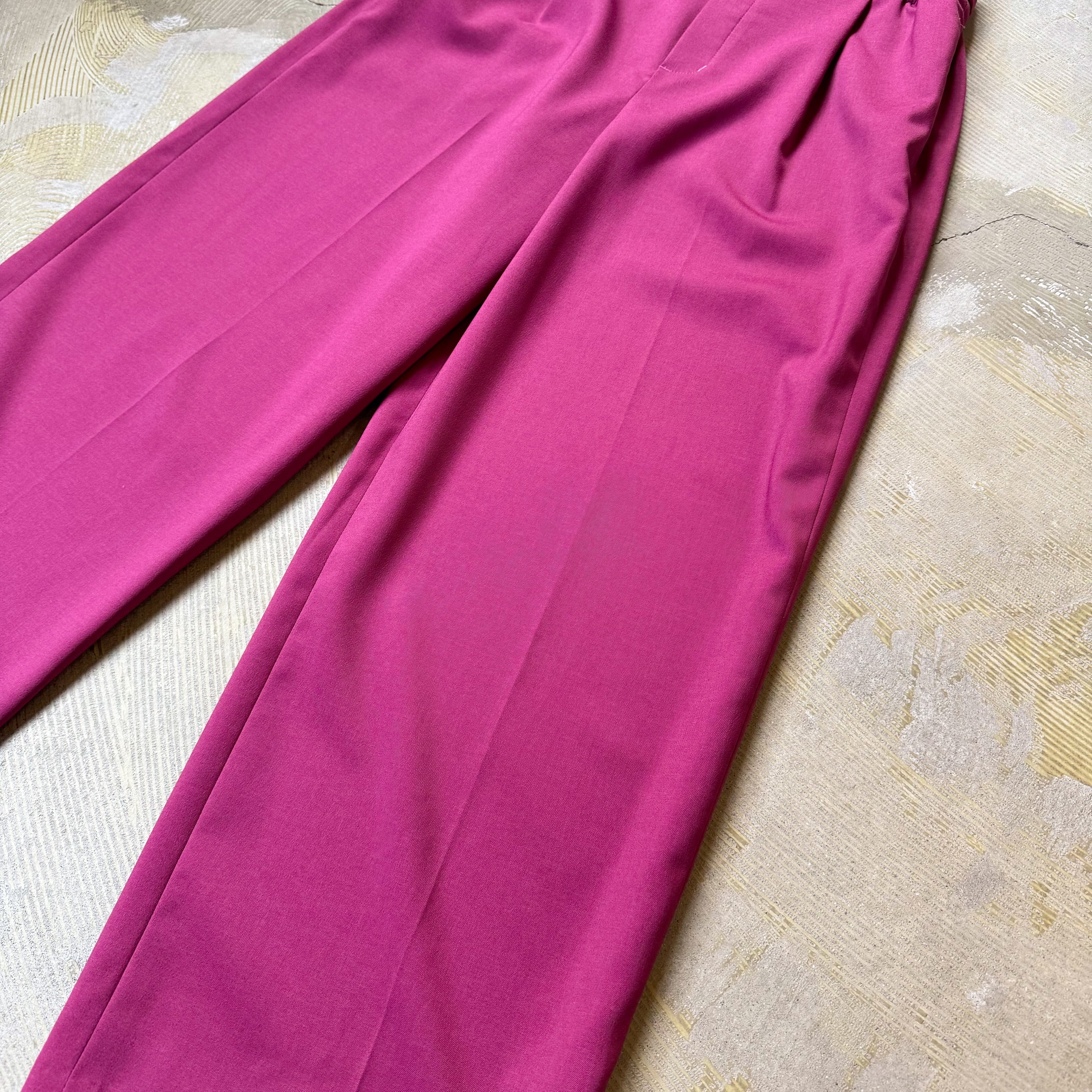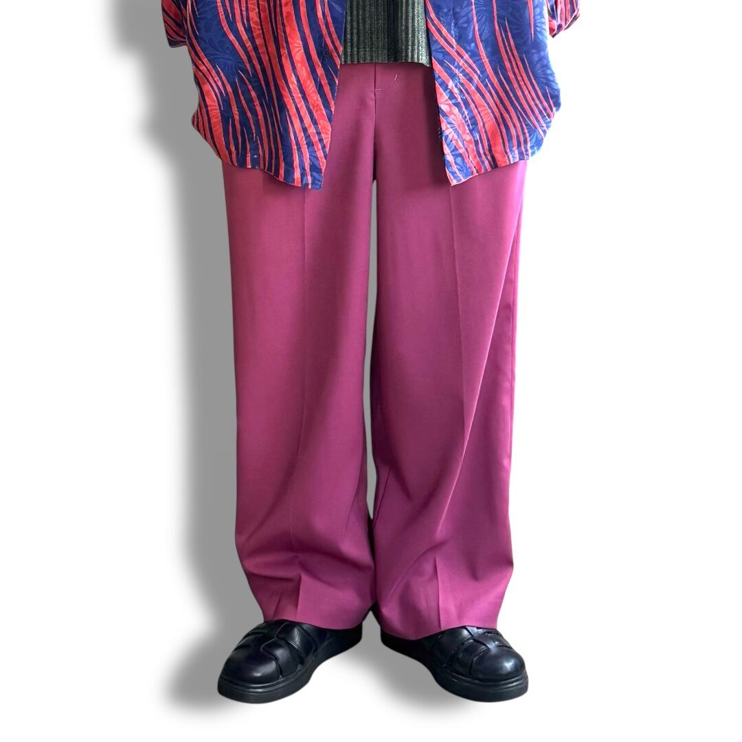 BERRY PINK COLOR WIDE SILHOUETTE PANTS / カラー デザイン ワイド スラックス パンツ