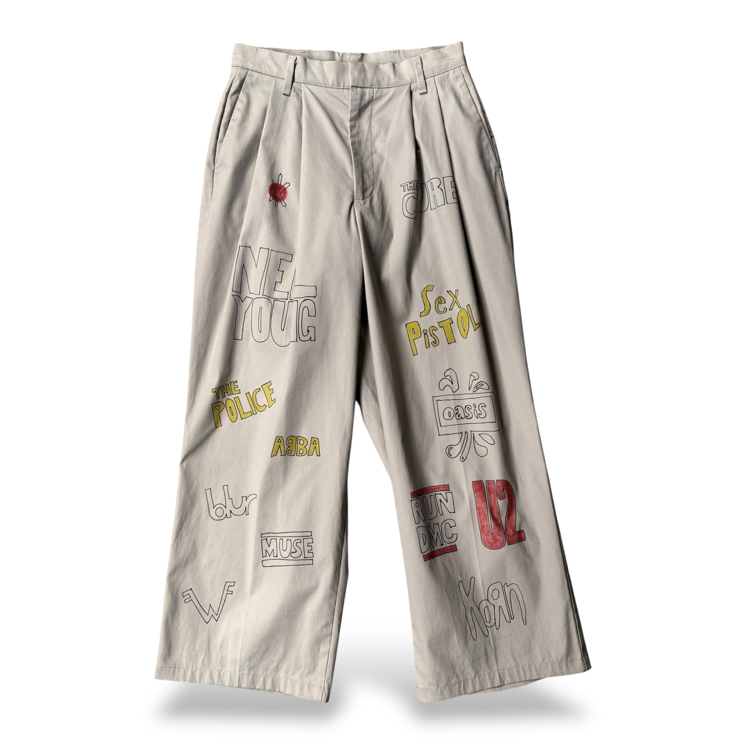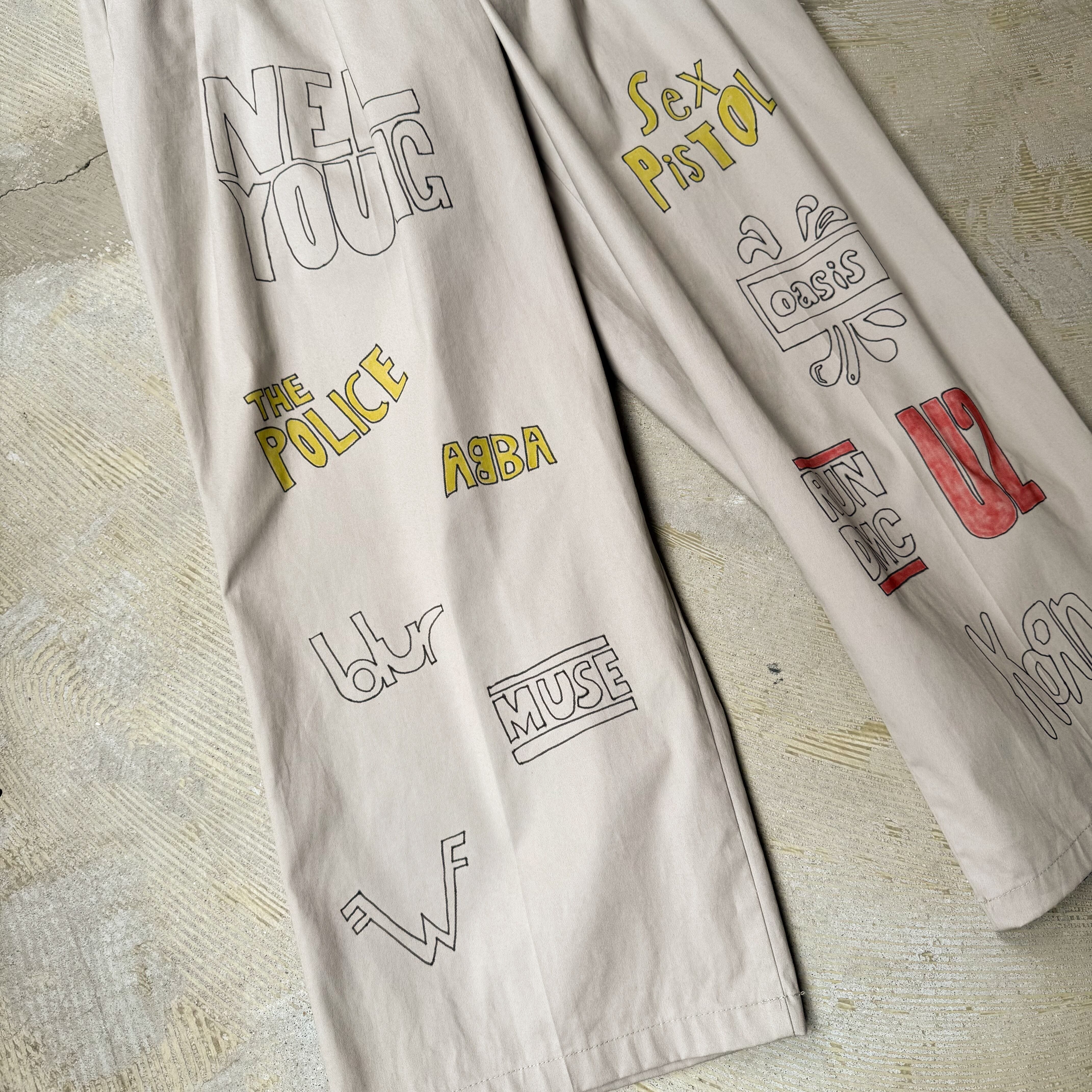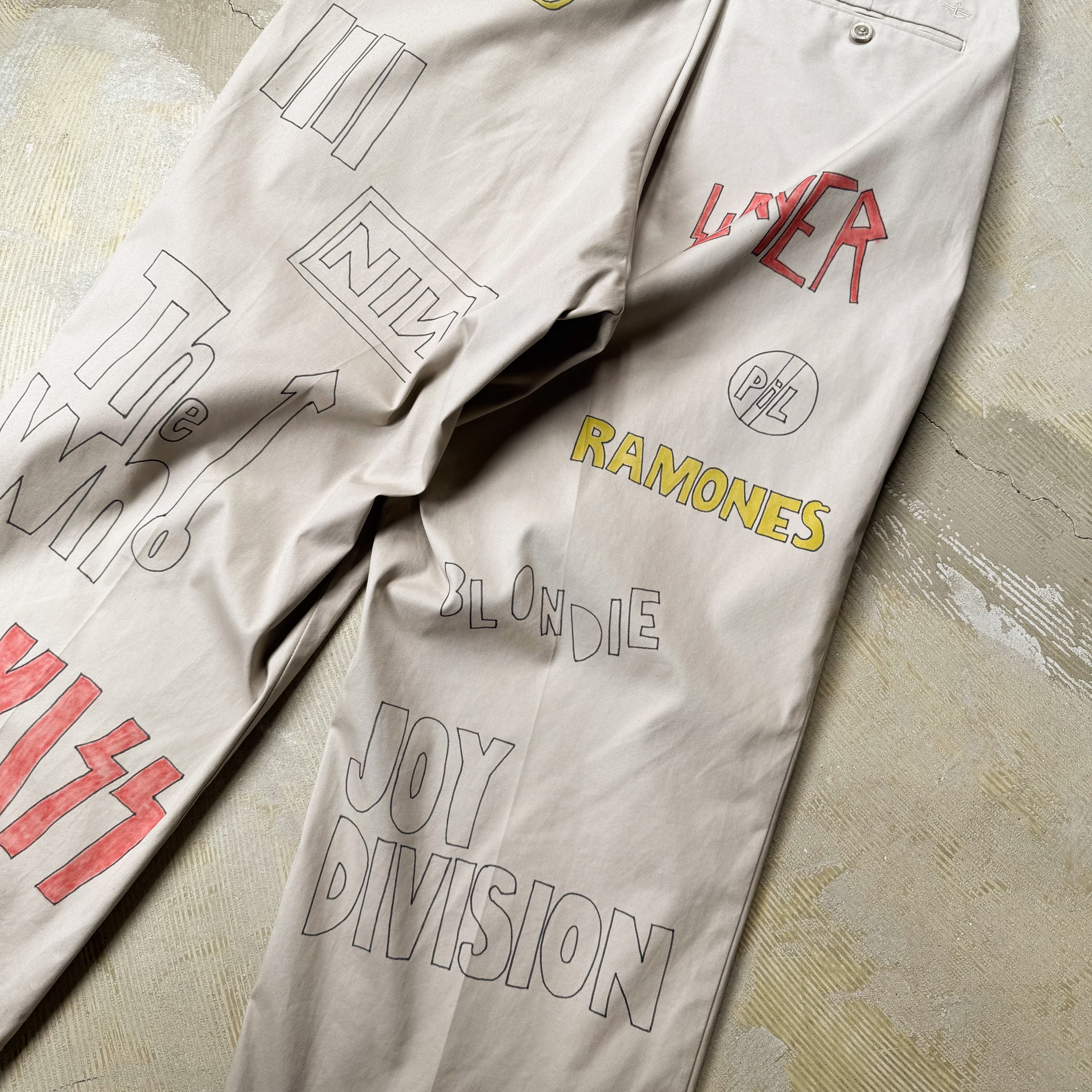 HAND PAINT MUSIC GRAFFITI CHINO PANTS / 音楽 ロック バンド ハンド ペイント 柄 落書き メモリアル チノ パンツ