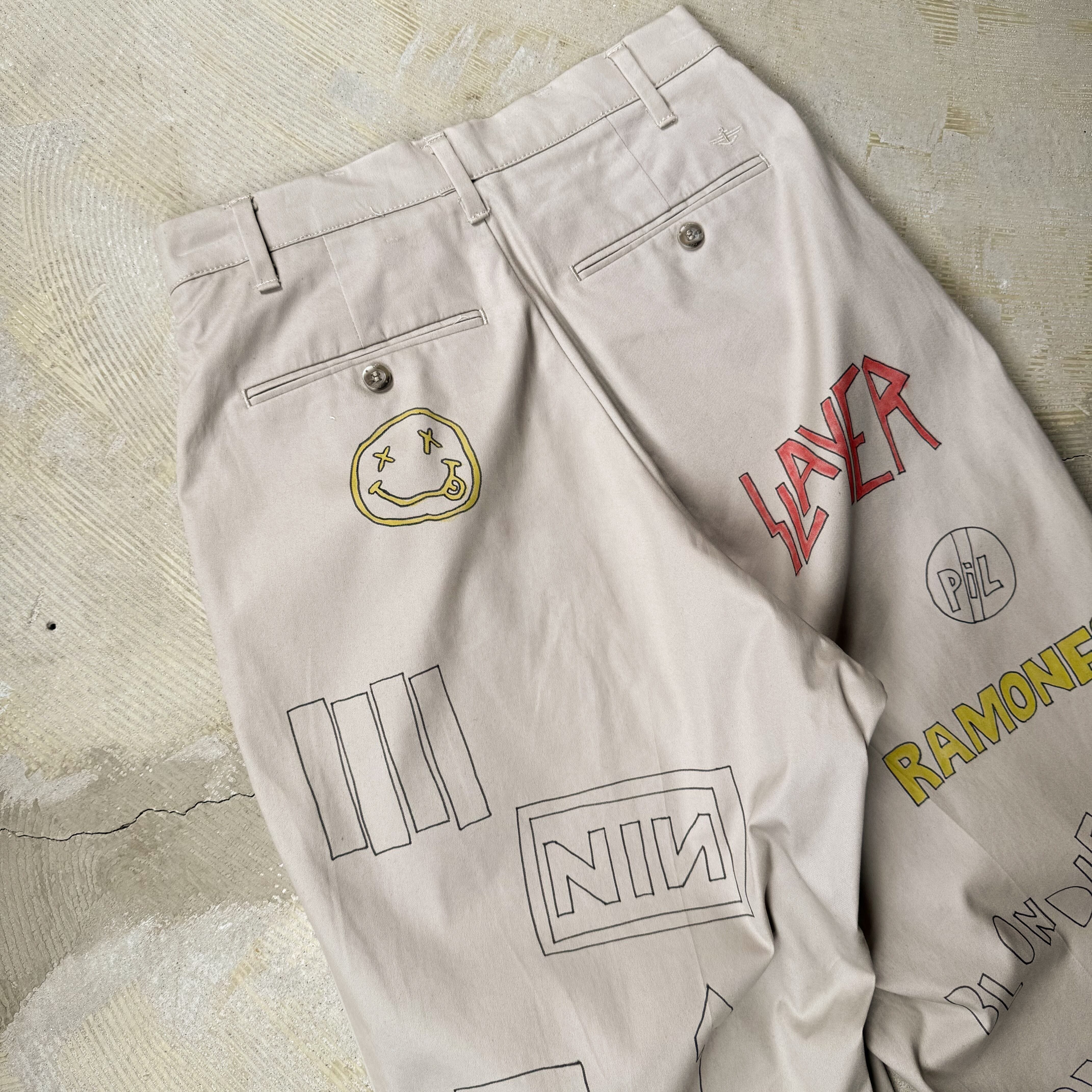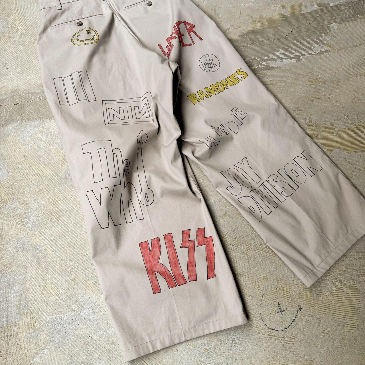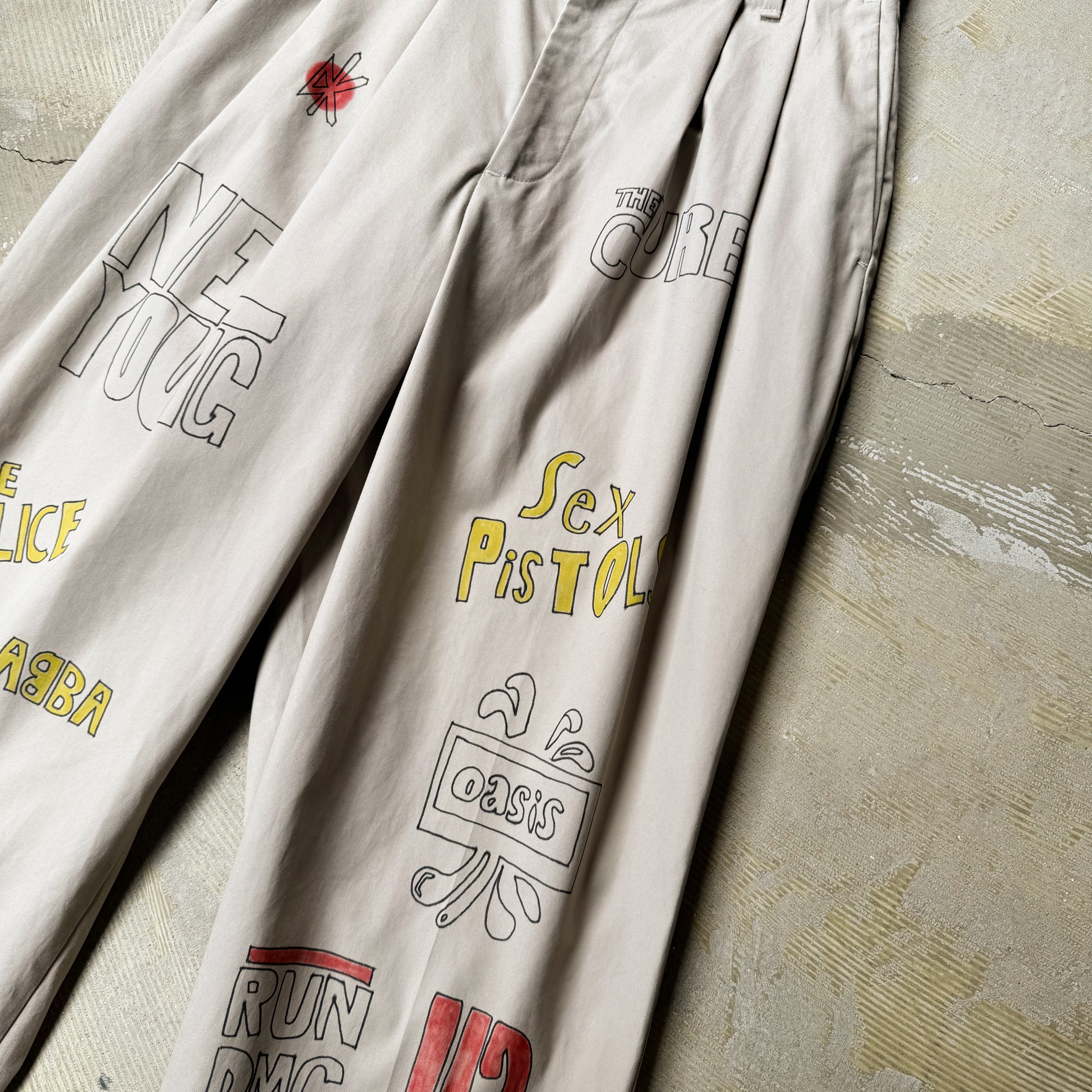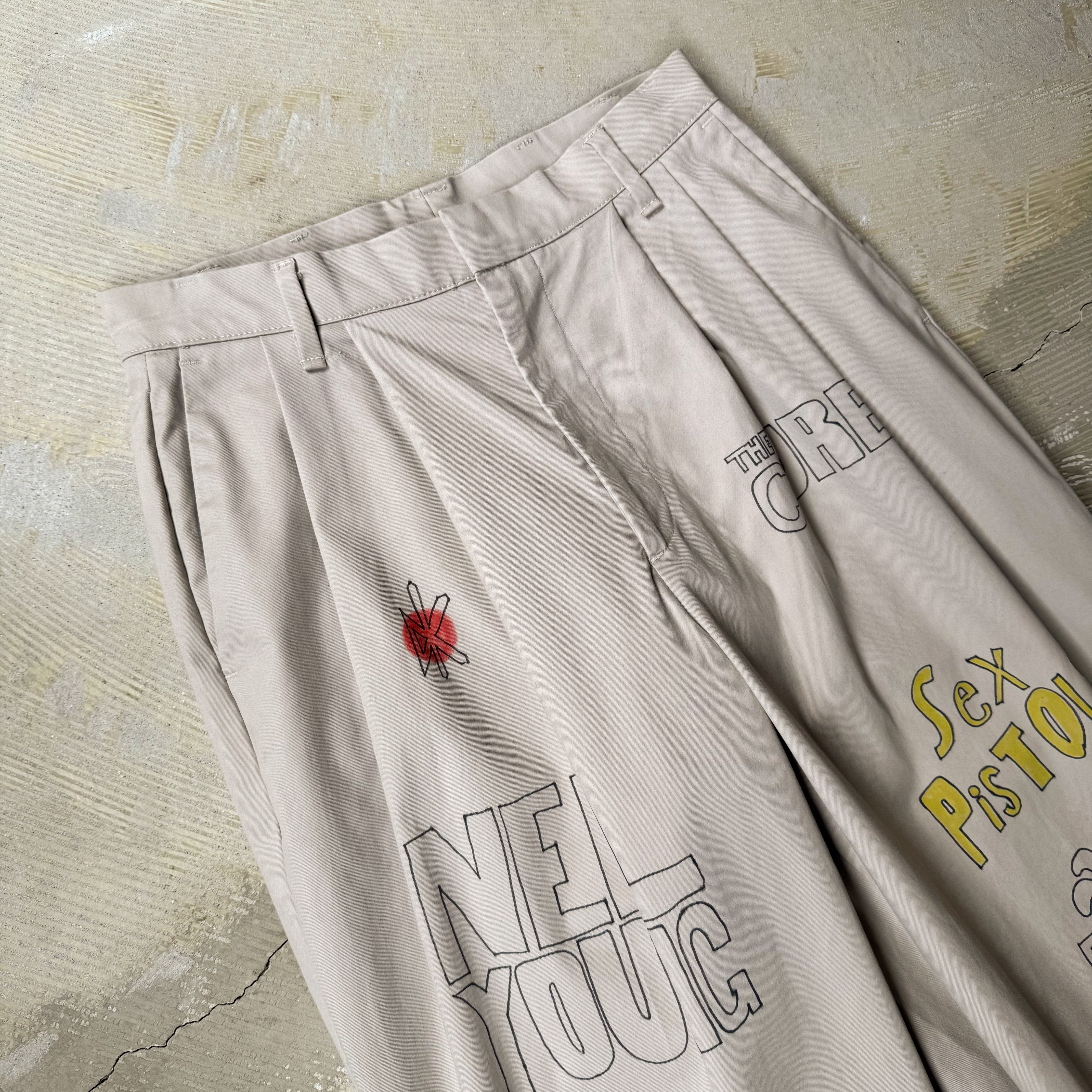 HAND PAINT MUSIC GRAFFITI CHINO PANTS / 音楽 ロック バンド ハンド ペイント 柄 落書き メモリアル チノ パンツ