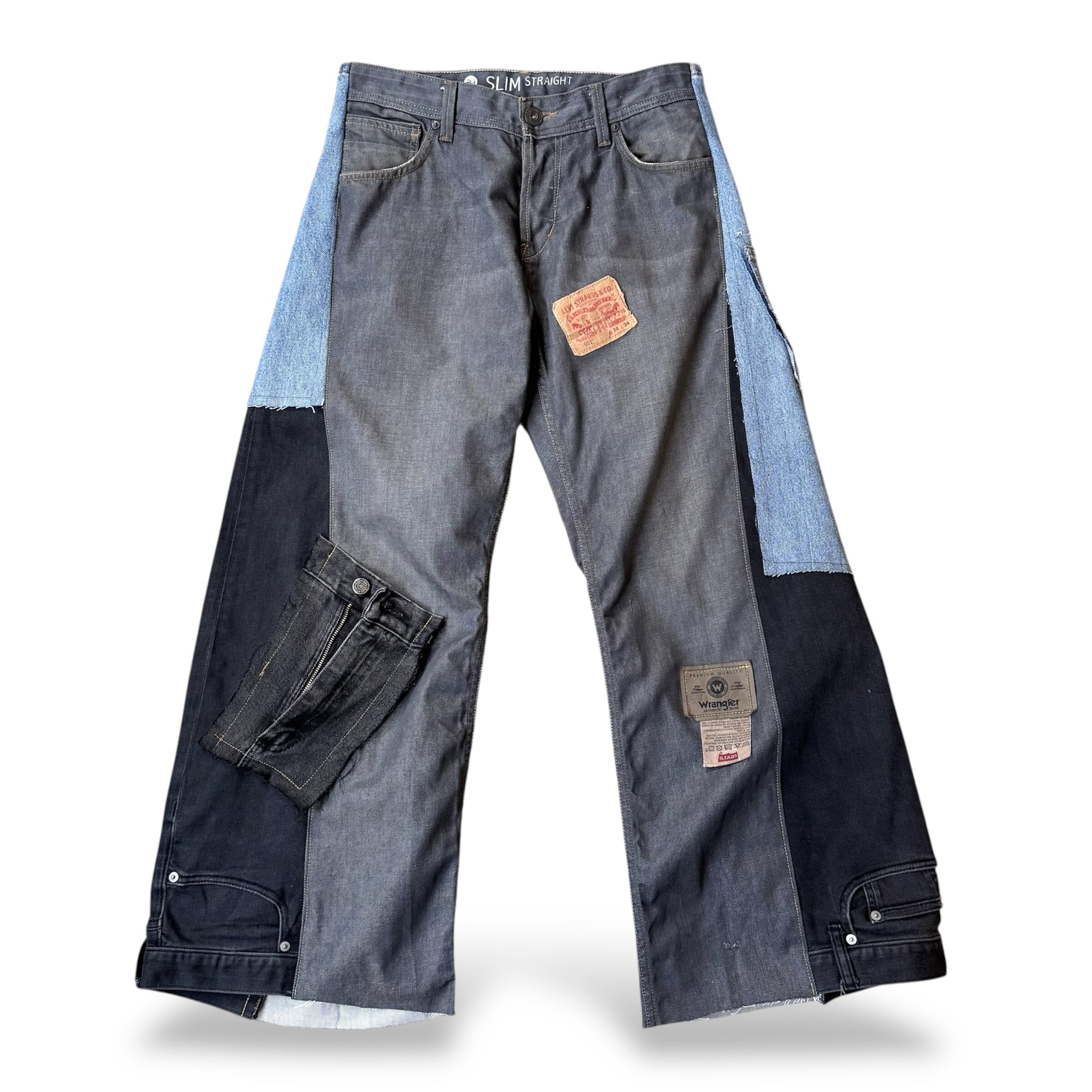 REBUILD PATCH SWITCHED WIDE DENIM PANTS / パッチ ワイド 切替 デニム パンツ ハンド メイド リメイク