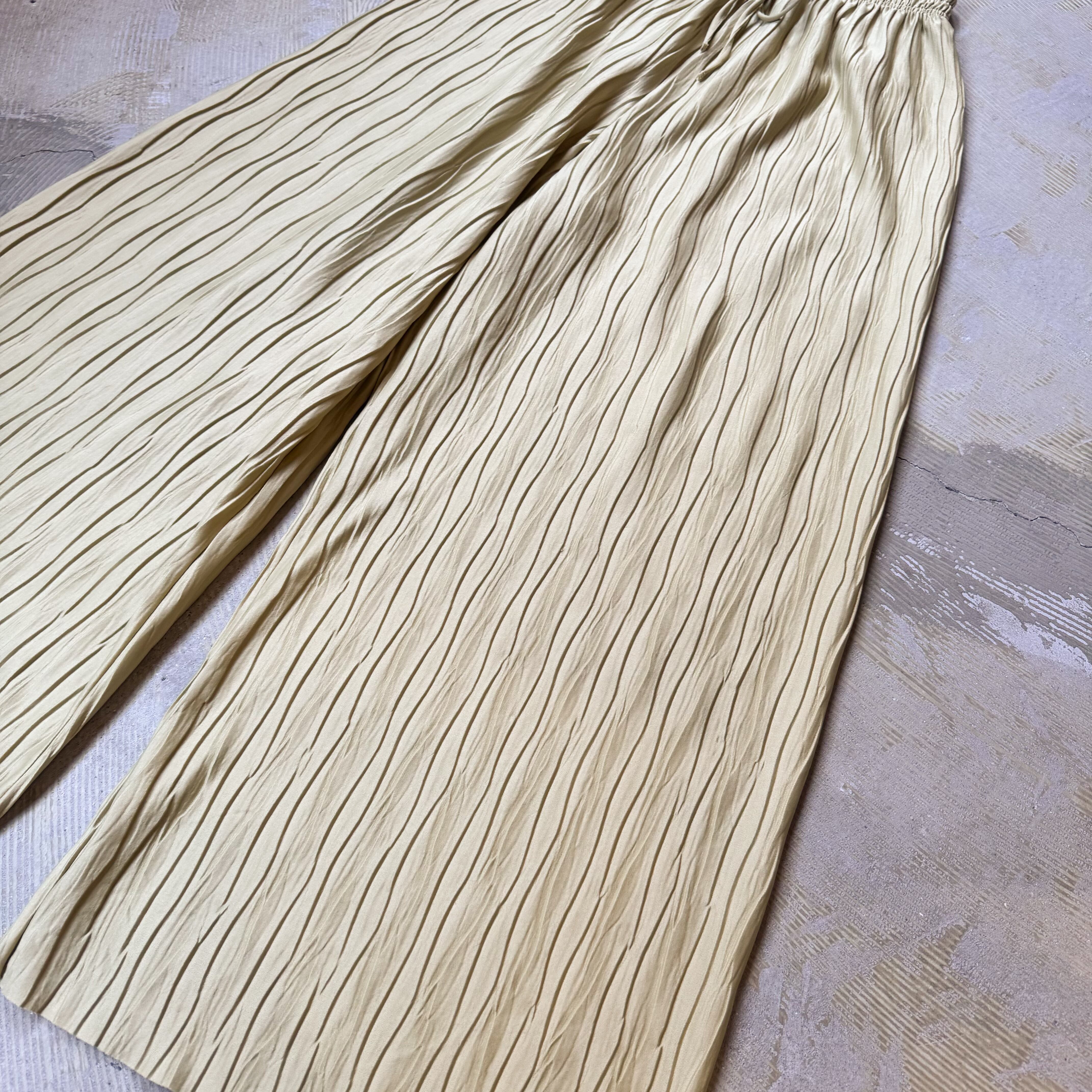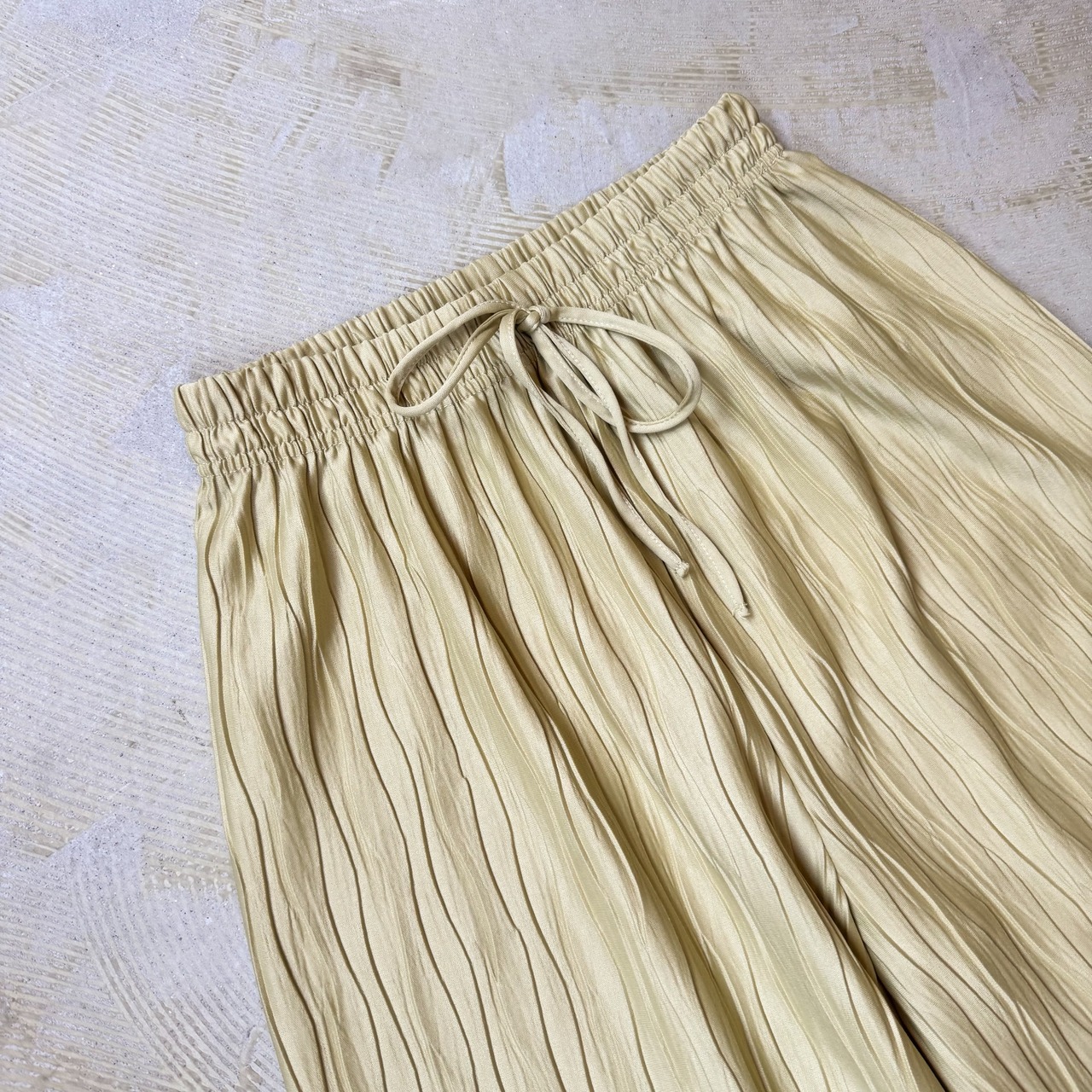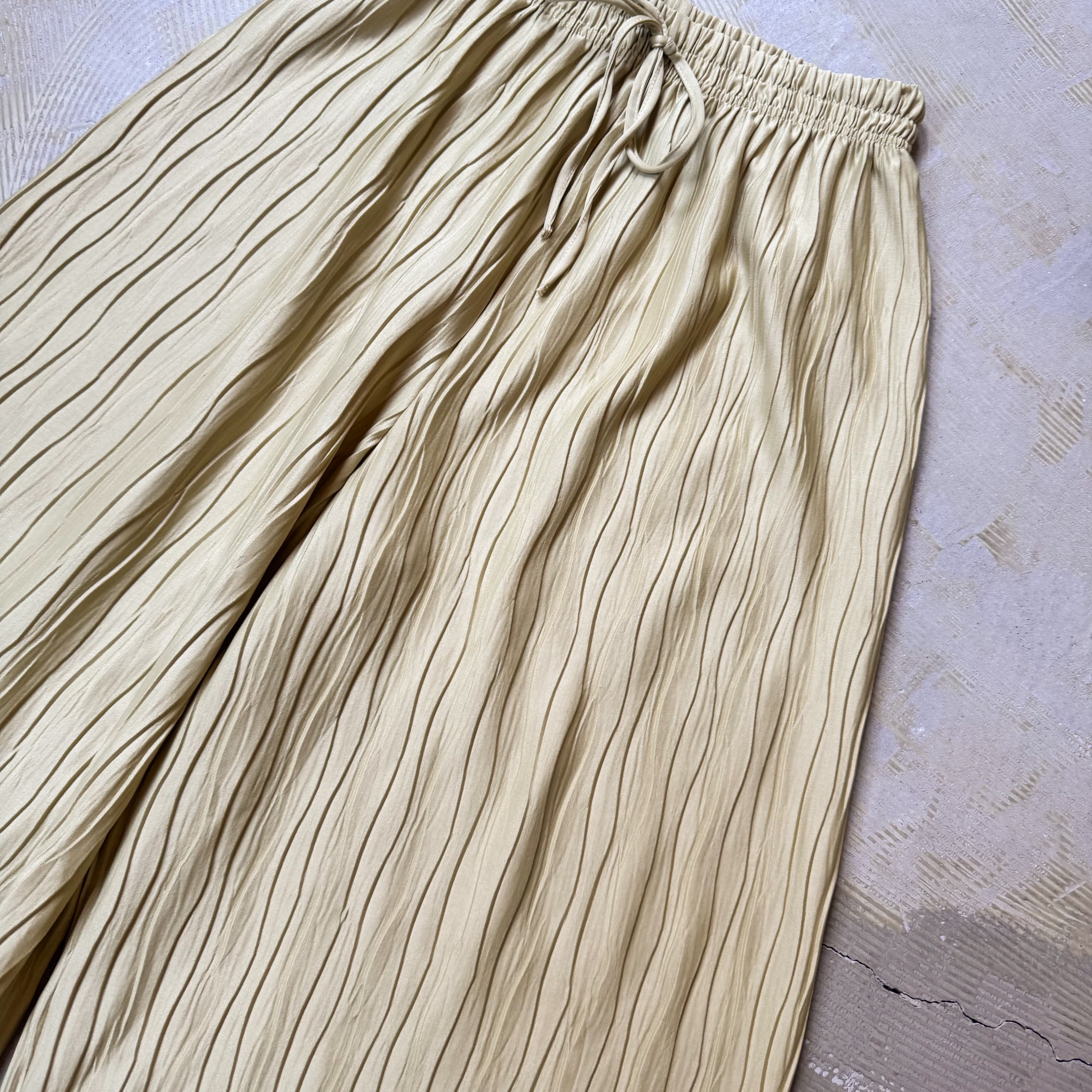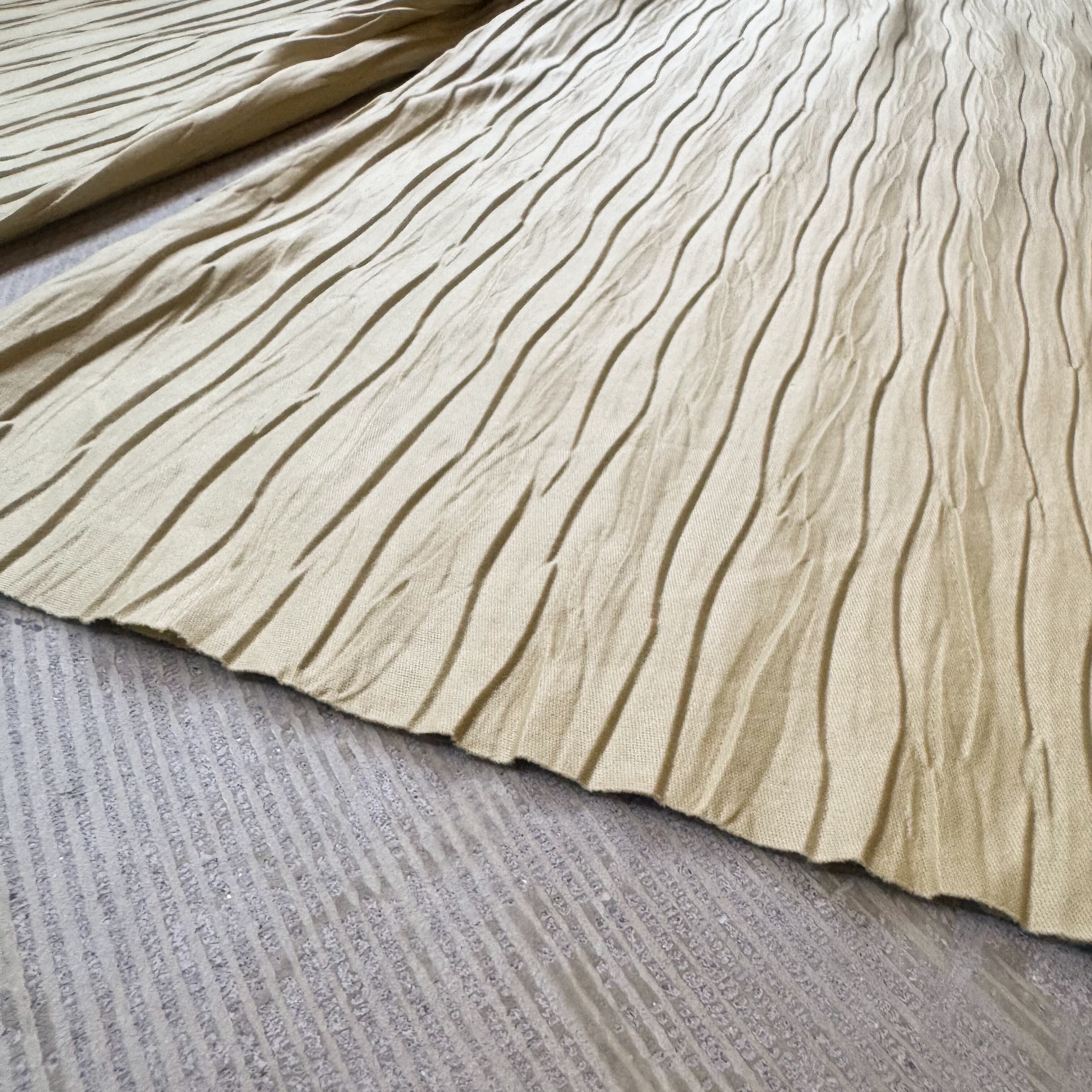 ・波打つ縦模様と柔らかなイエローベージュトーンが