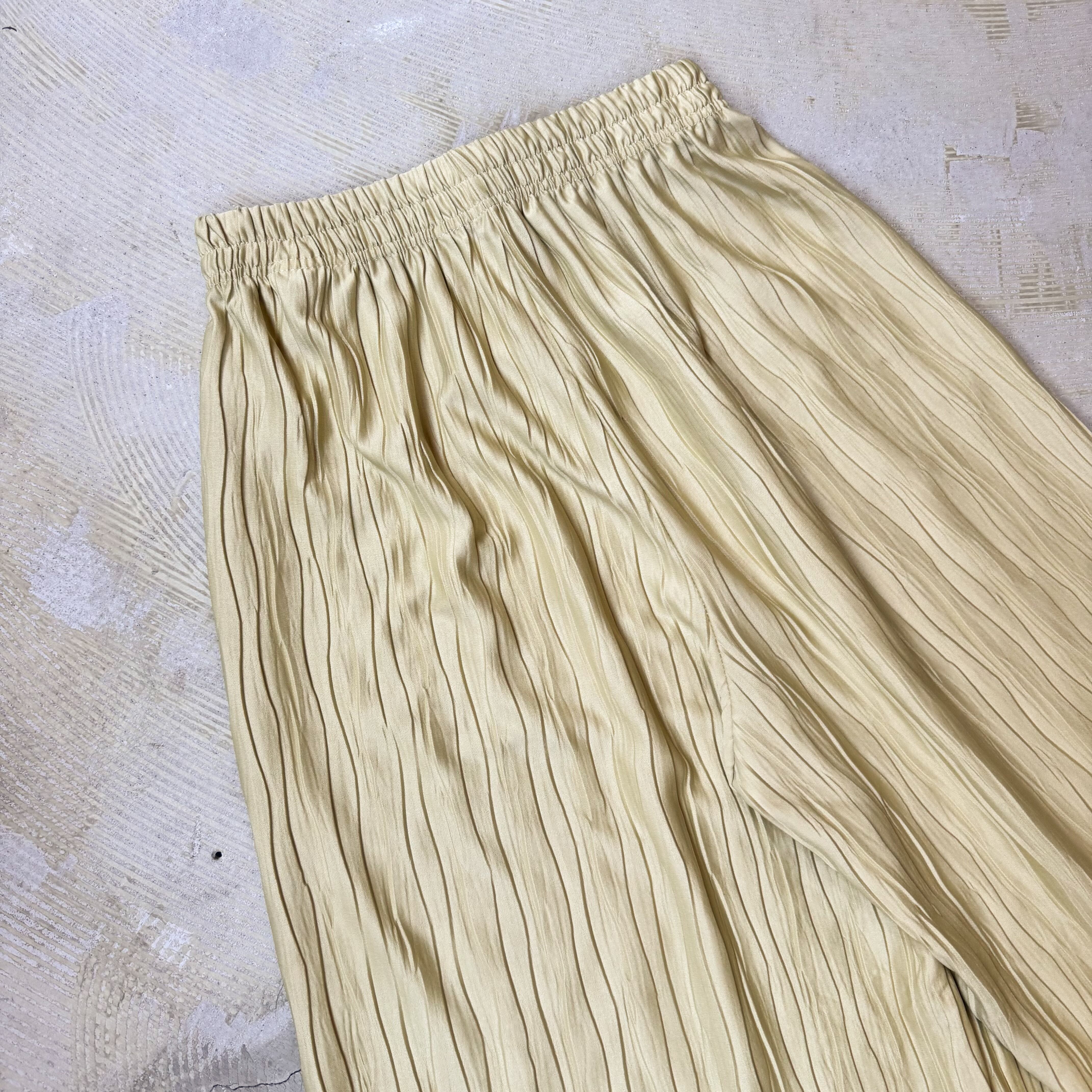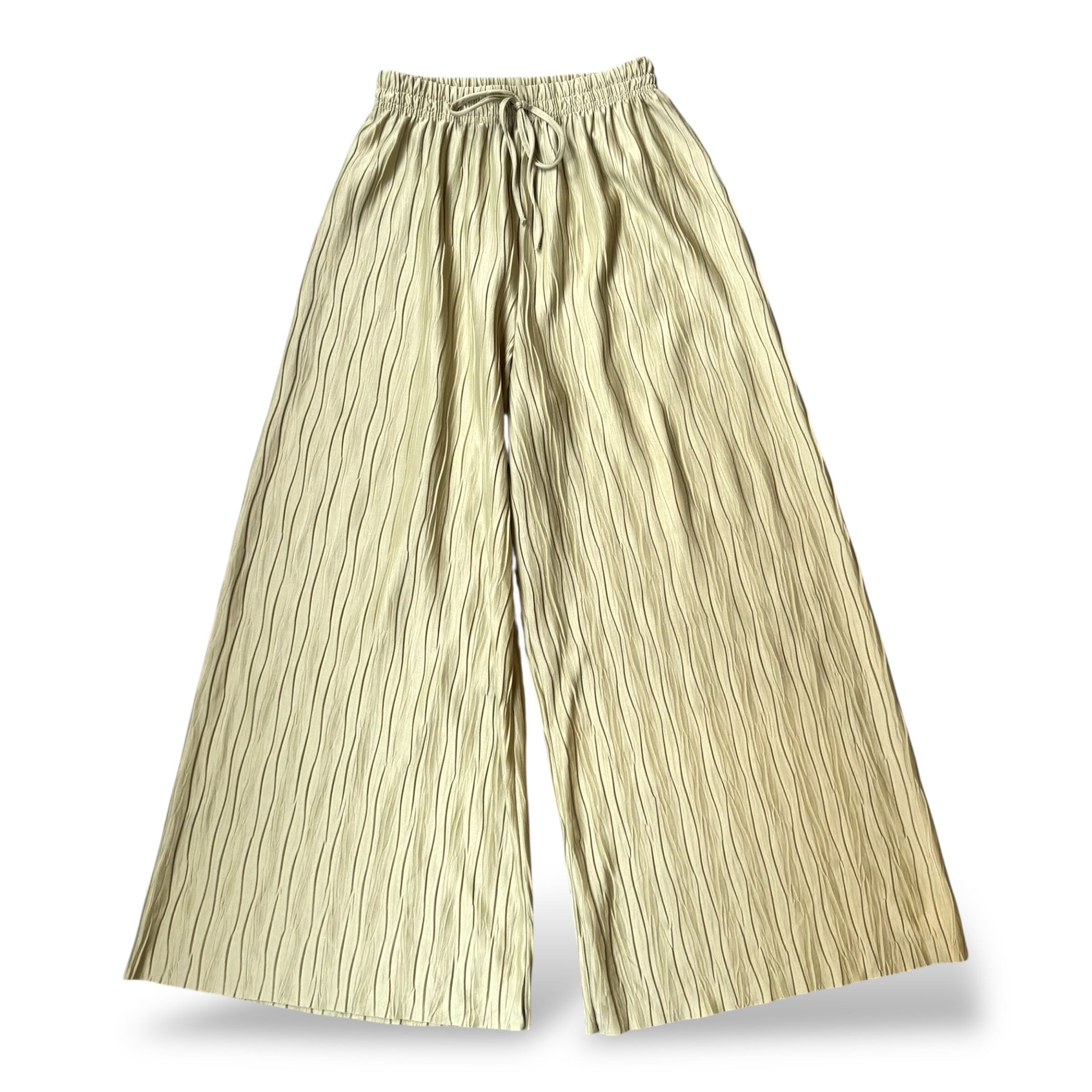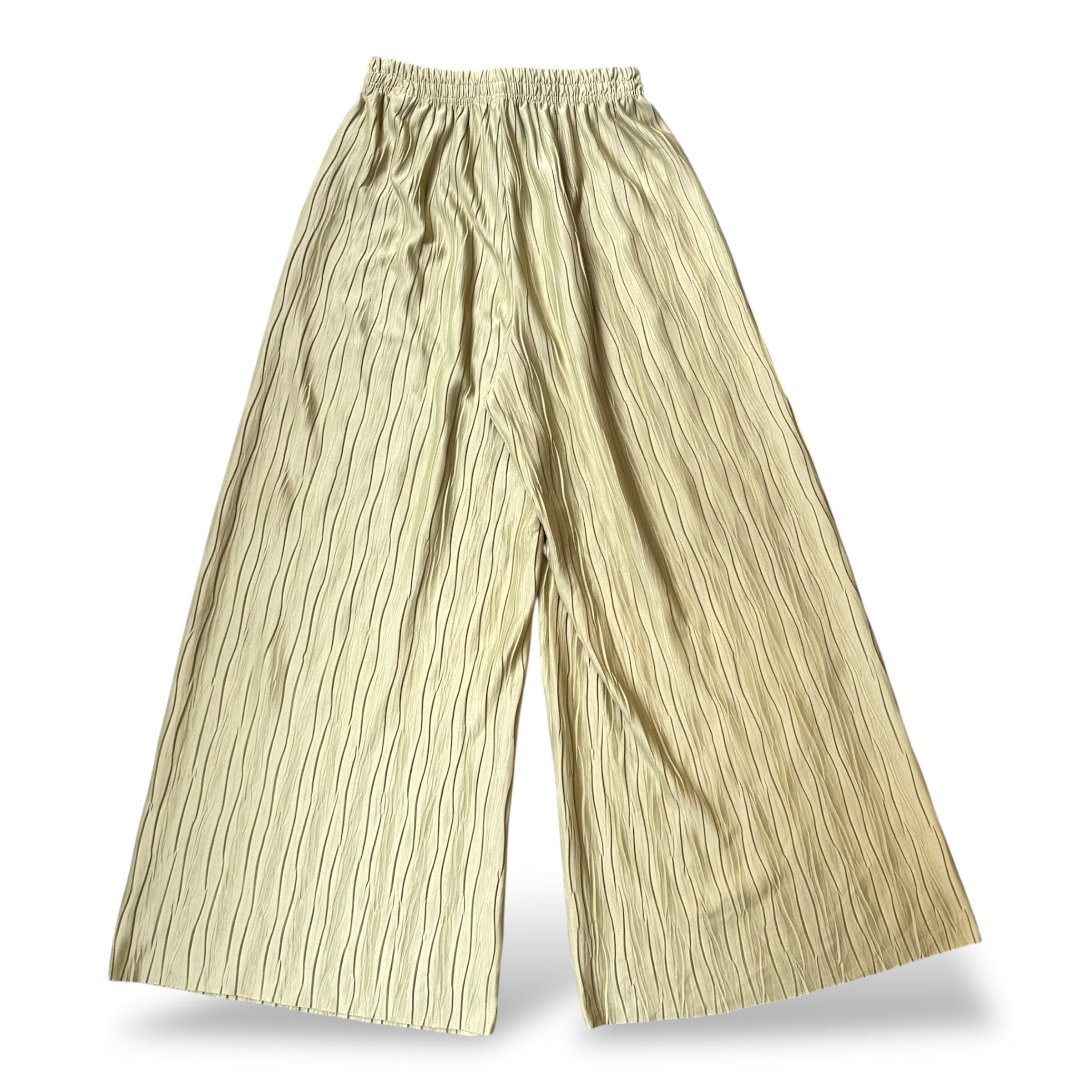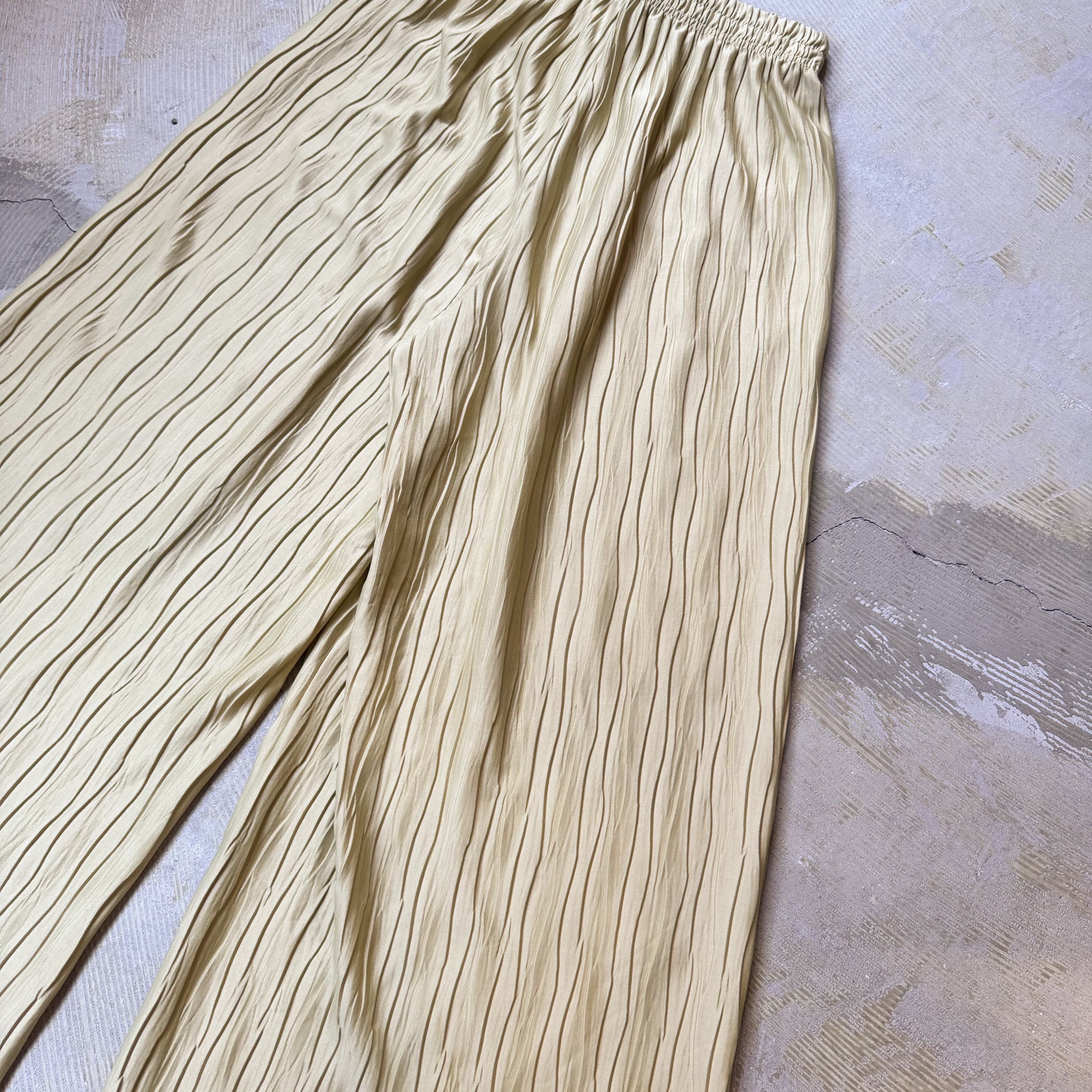 ・波打つ縦模様と柔らかなイエローベージュトーンが