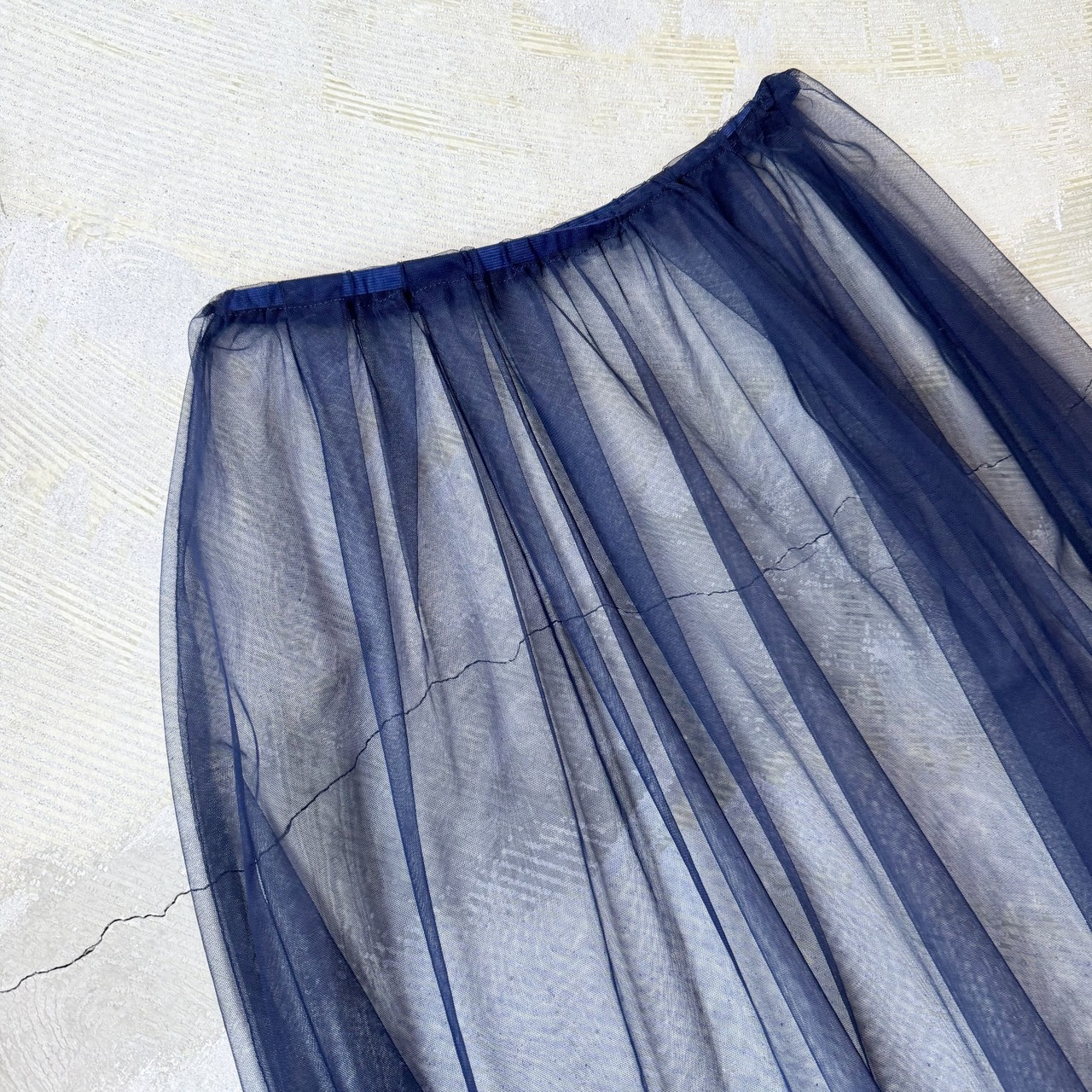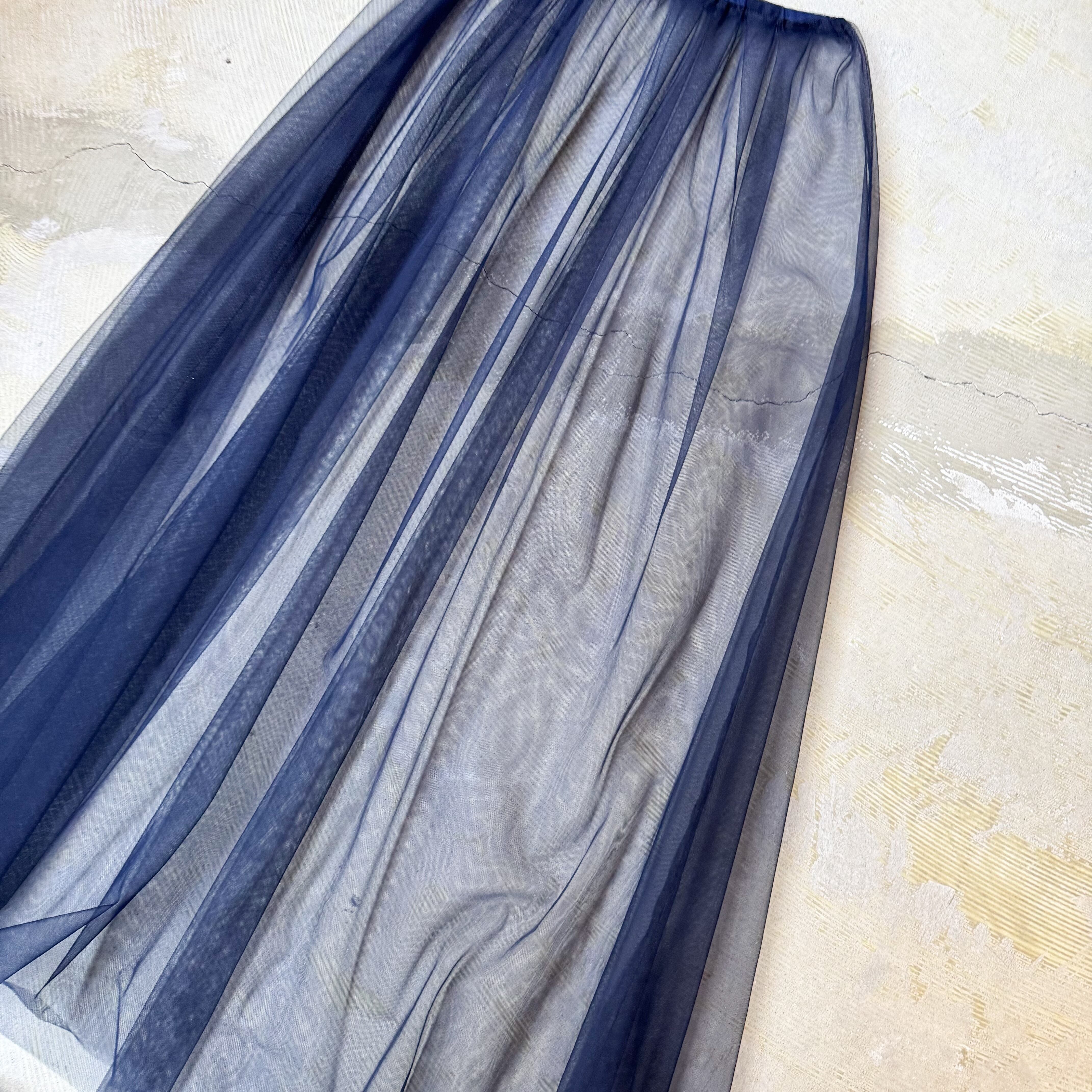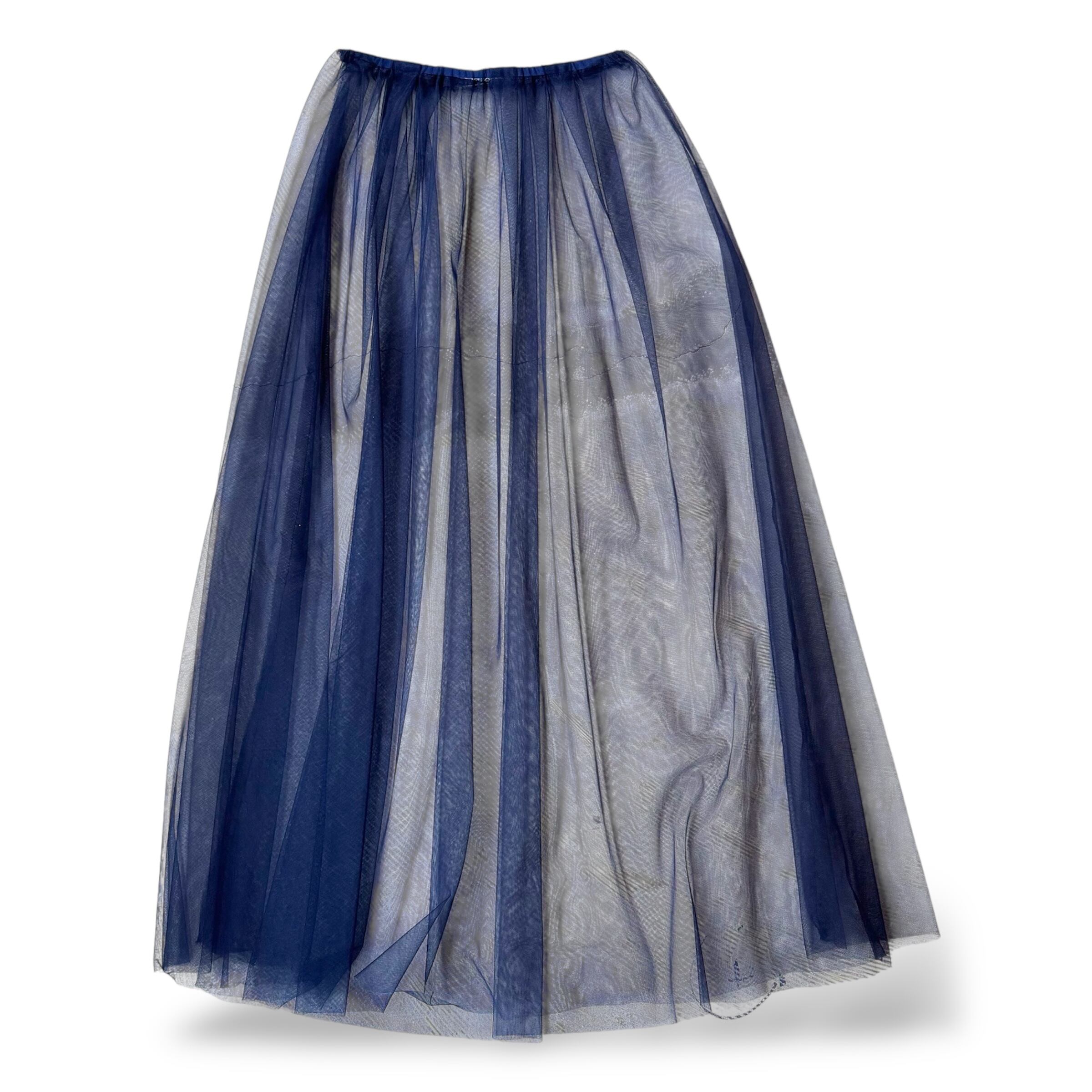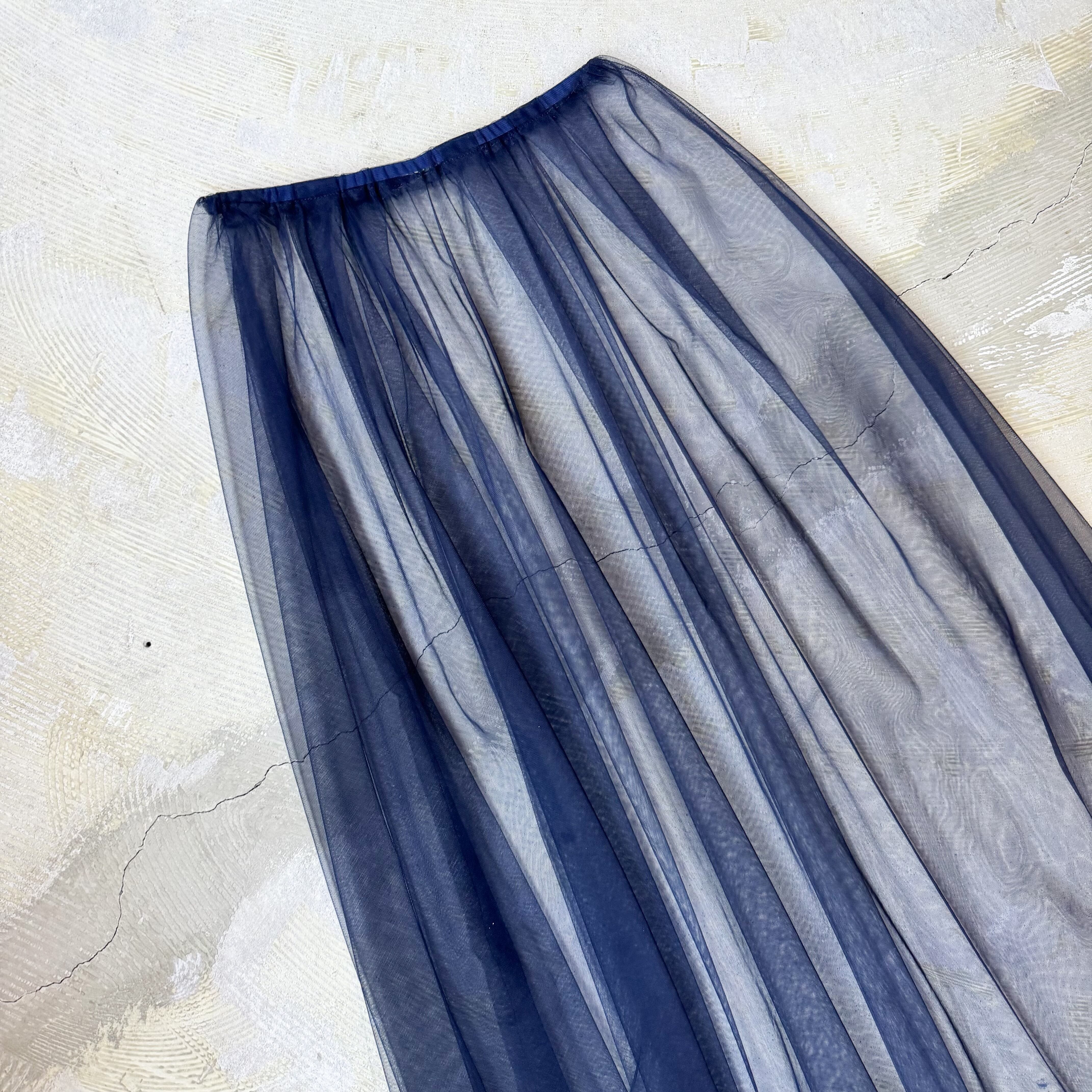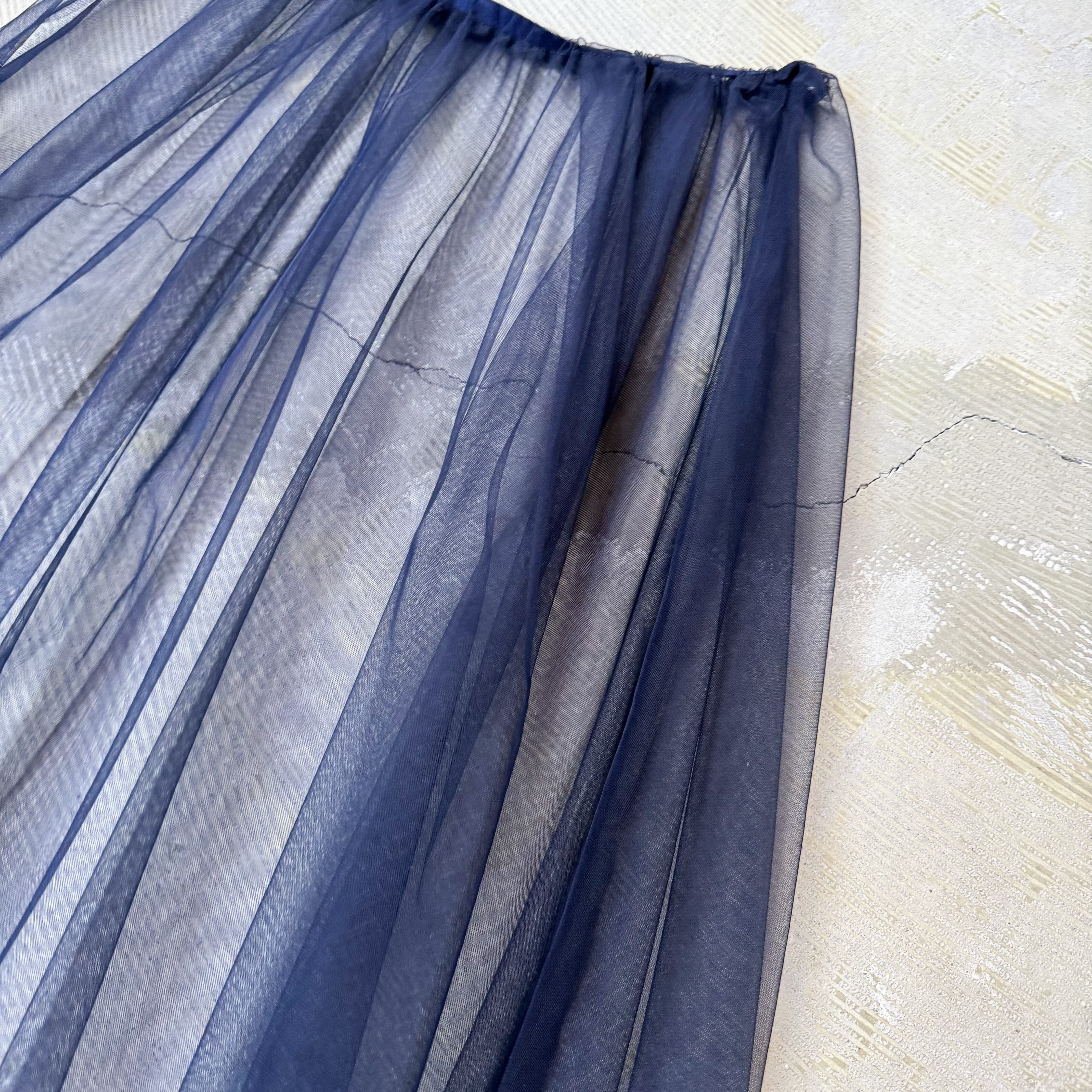 AIRY NAVY COLOR SHEER TULLE SKIRT / シアー シースルー チュール スカート