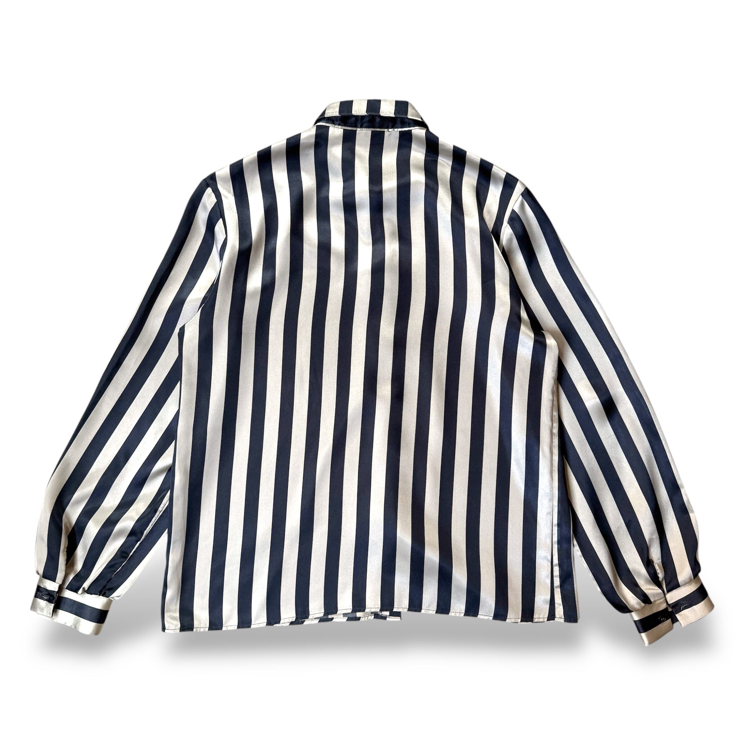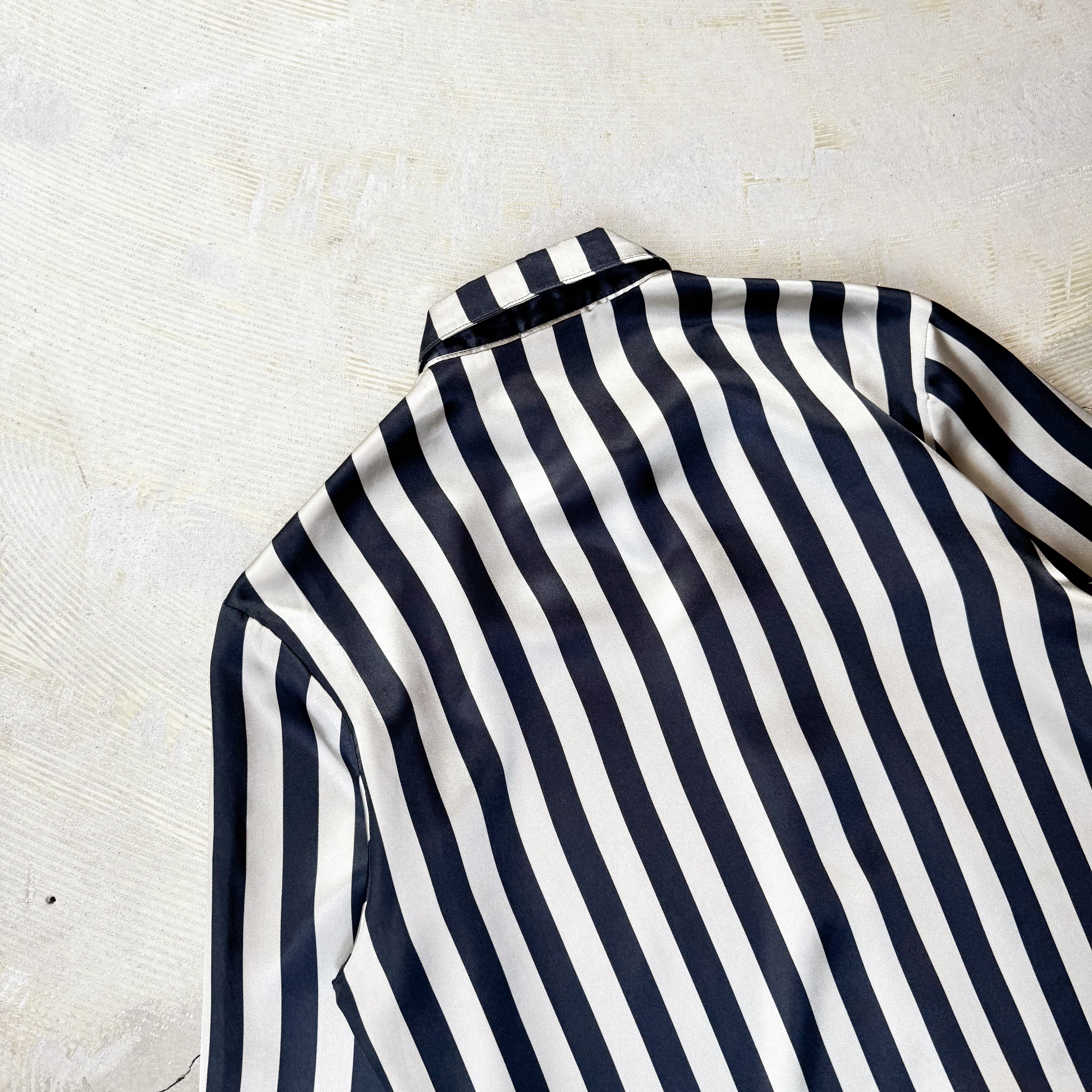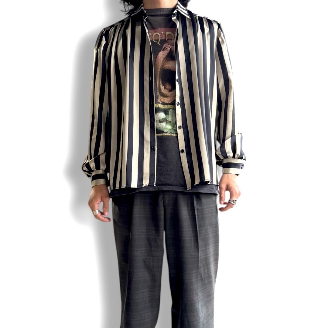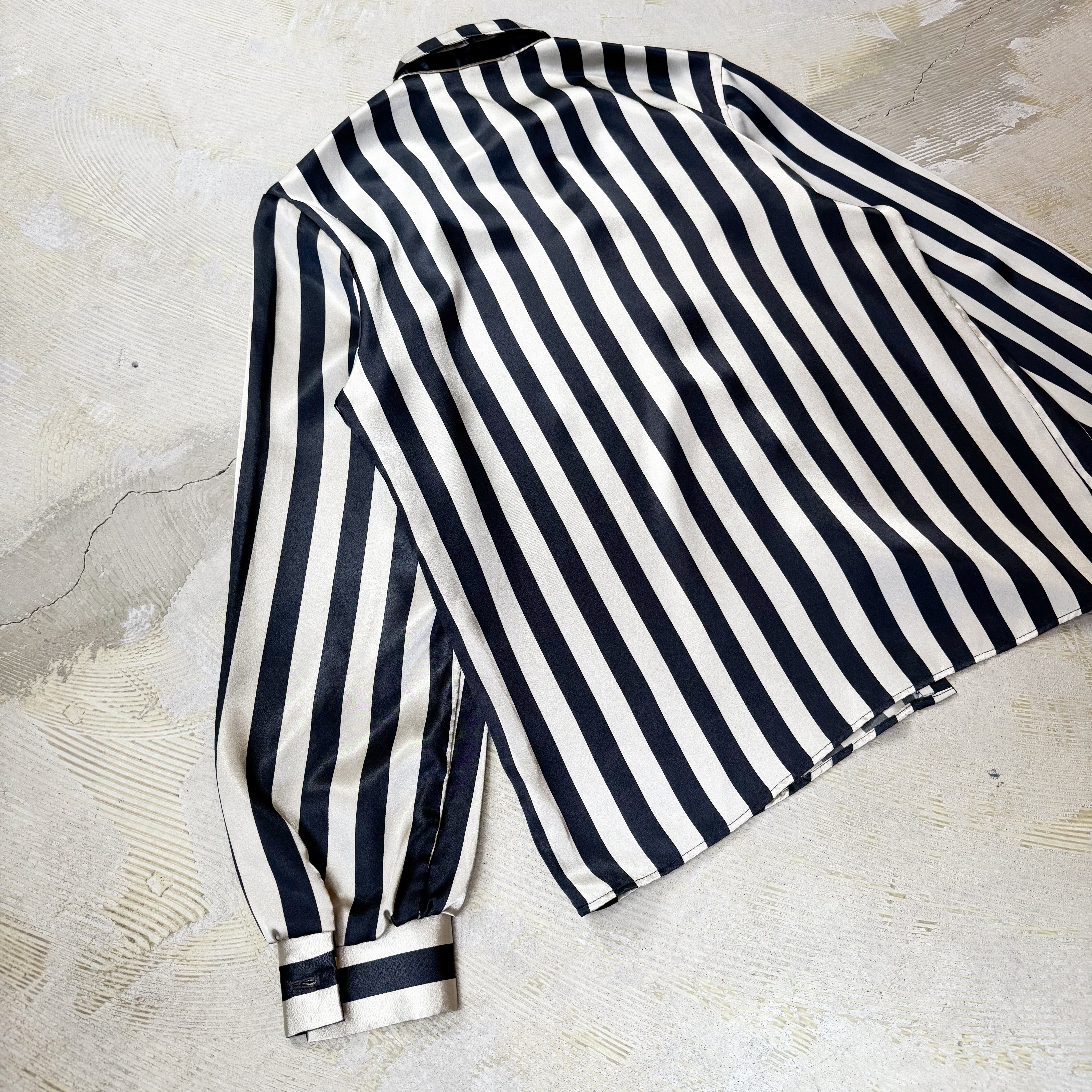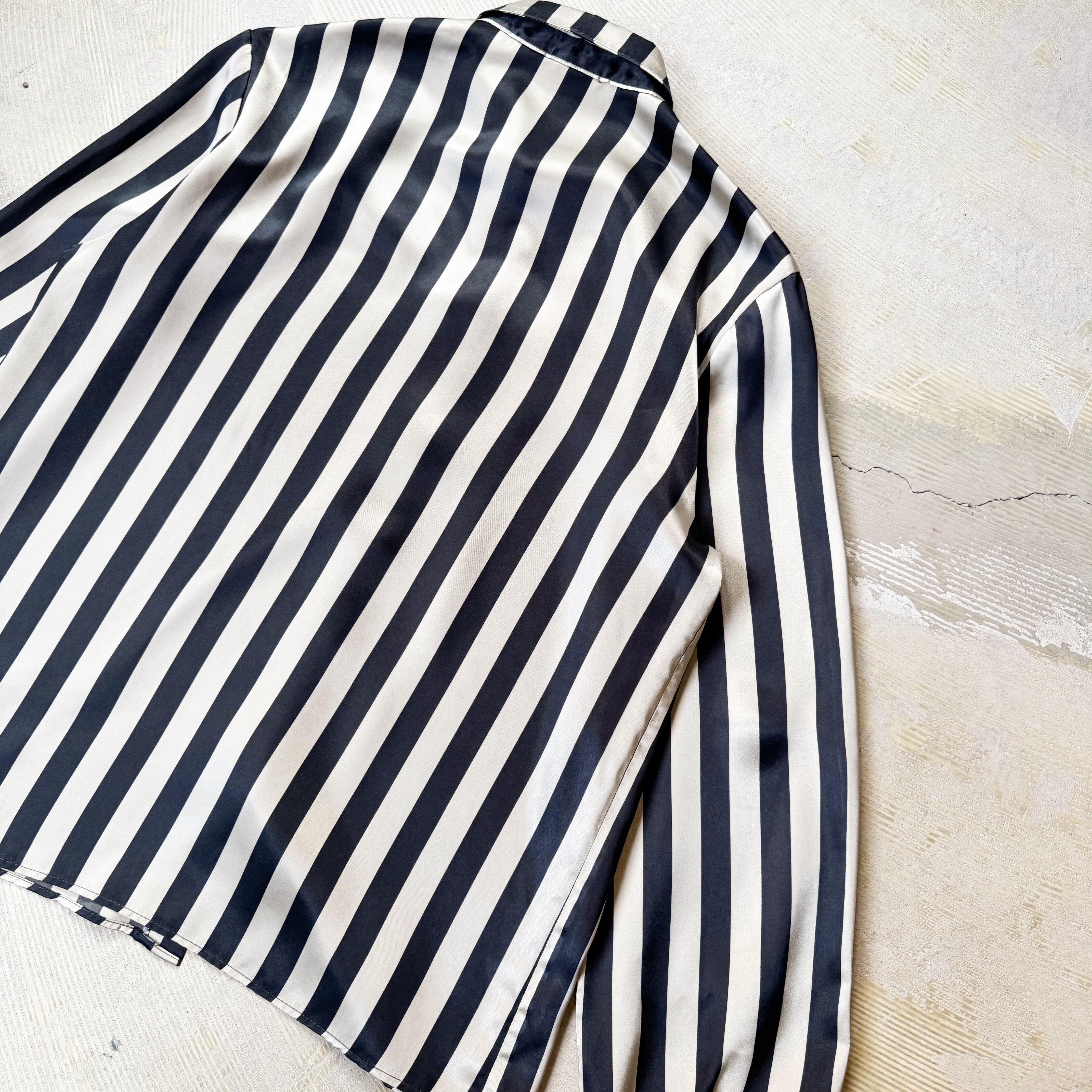 1980's MONOCHROME STRIPE PATTERN SATIN L/S SHIRT / MADE IN USA / 80年代 ストライプ 柄 サテン 長袖 シャツ