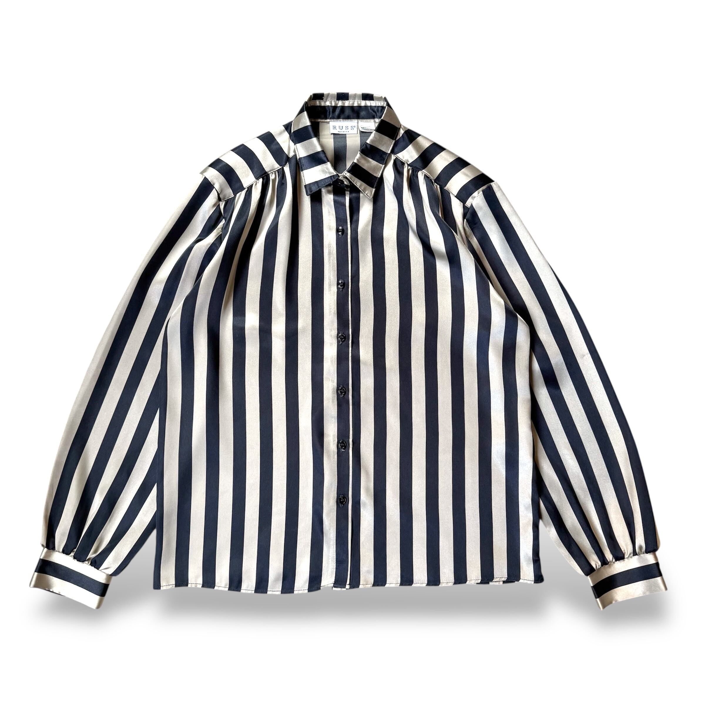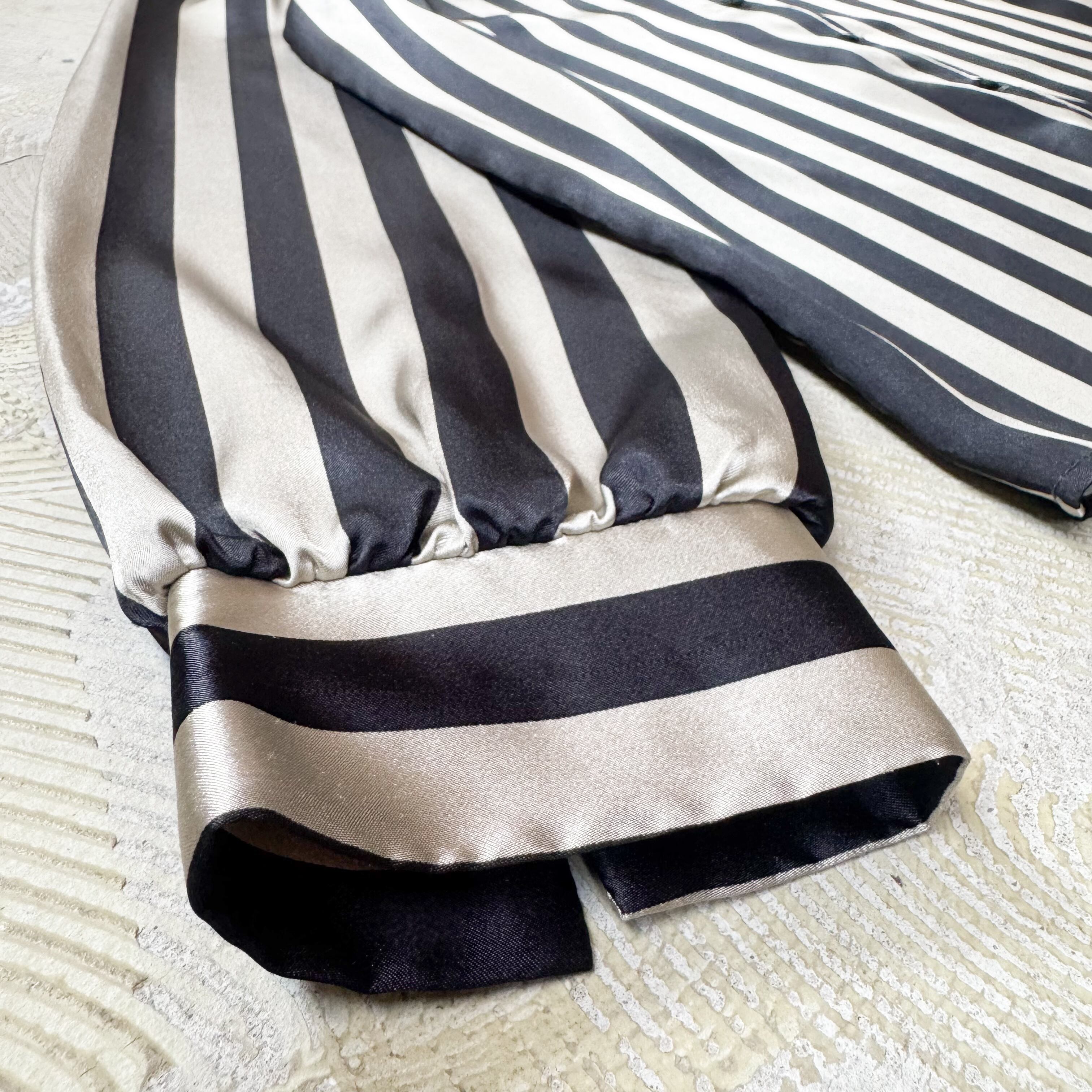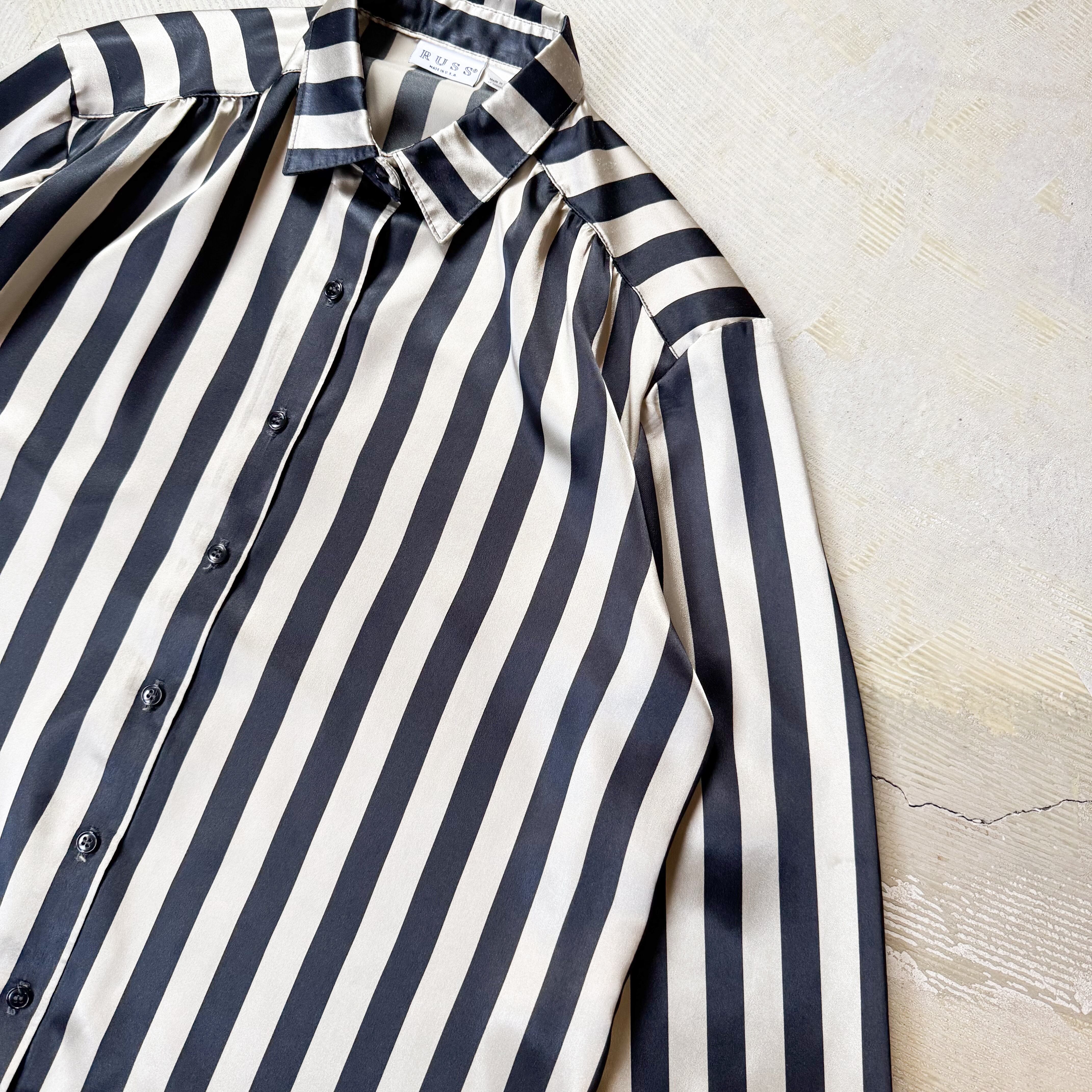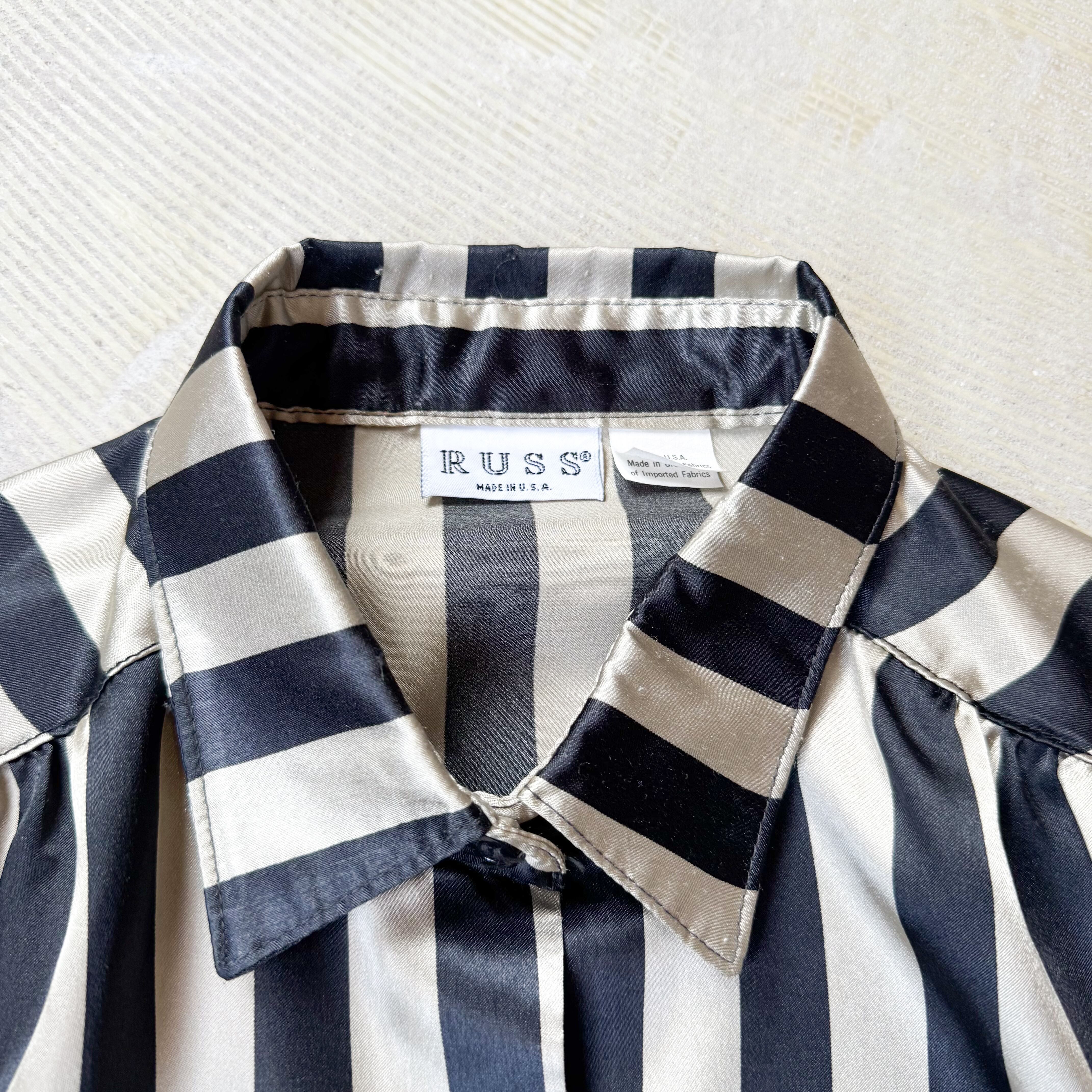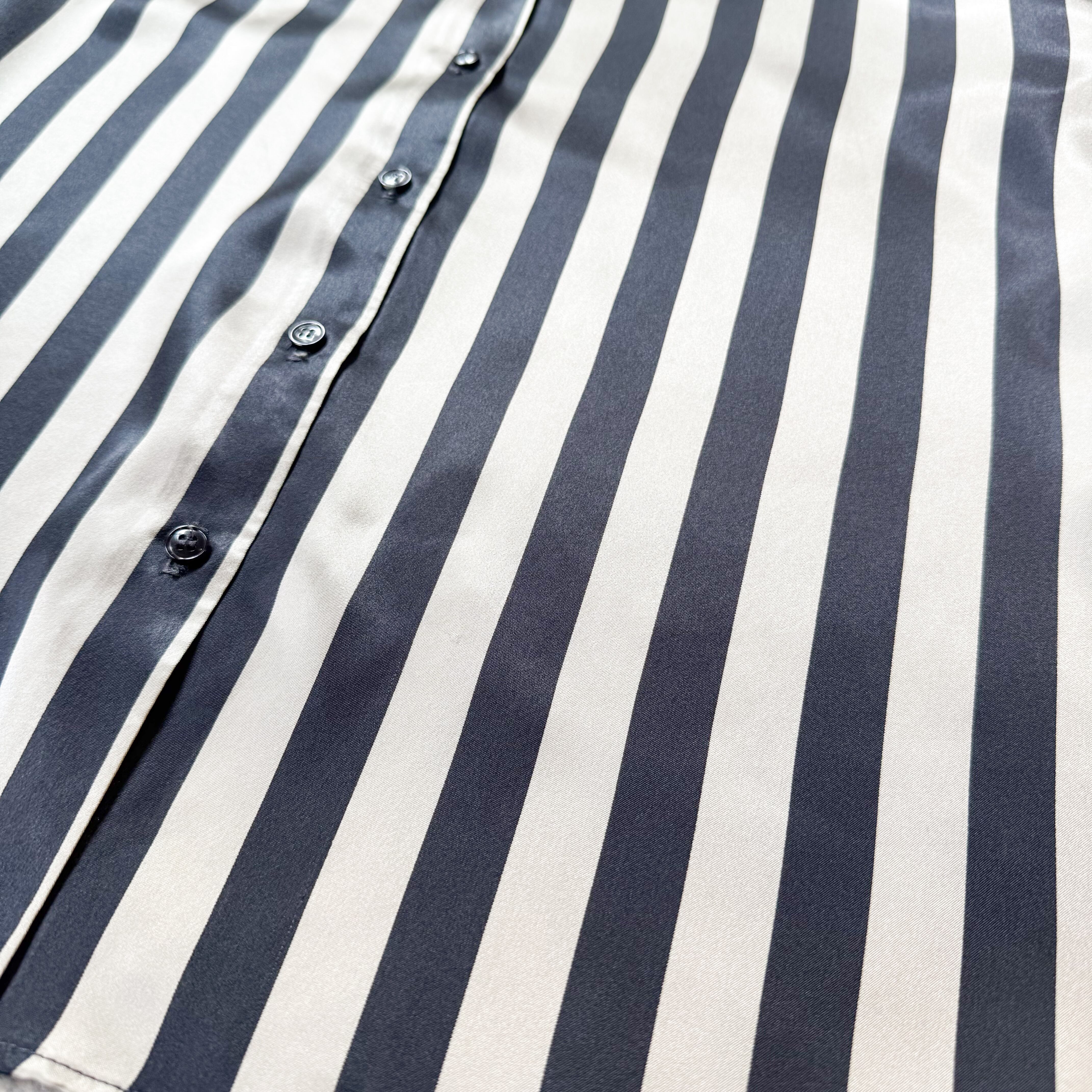 1980's MONOCHROME STRIPE PATTERN SATIN L/S SHIRT / MADE IN USA / 80年代 ストライプ 柄 サテン 長袖 シャツ