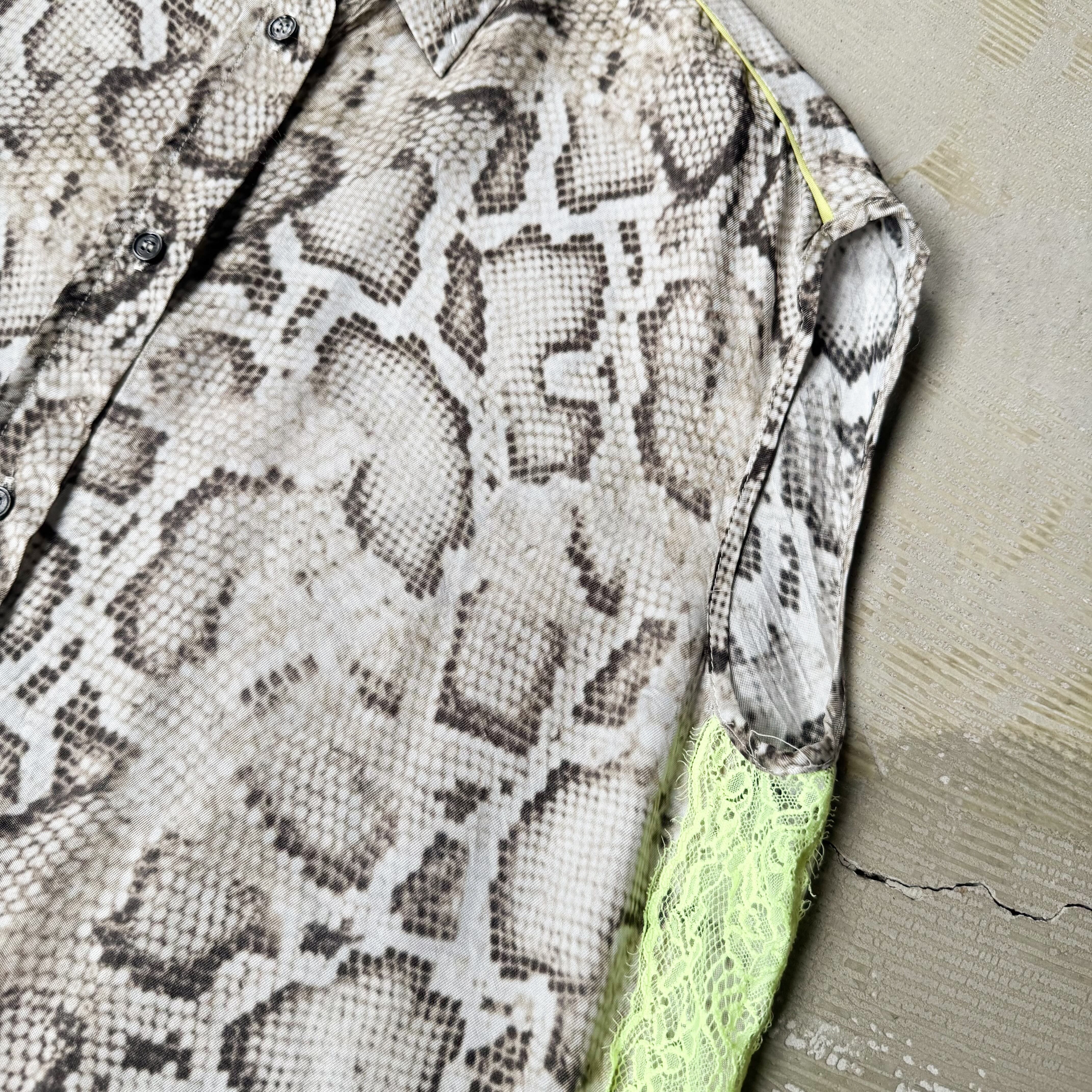 PYTHON PATTERN SIDE LACE N/S SHIRT VEST / 蛇 柄 アニマル パイソン ノースリーブ シャツ レース ベスト