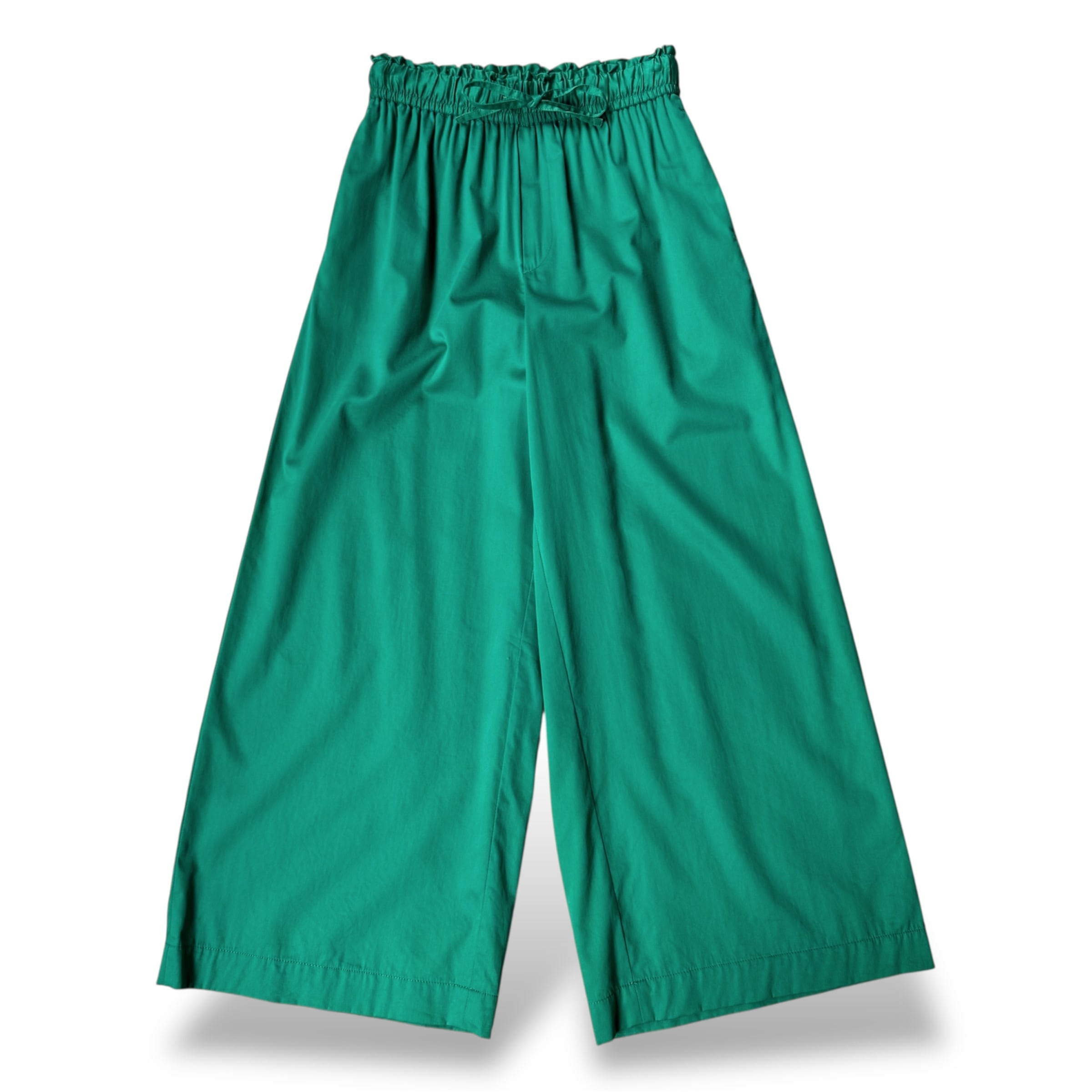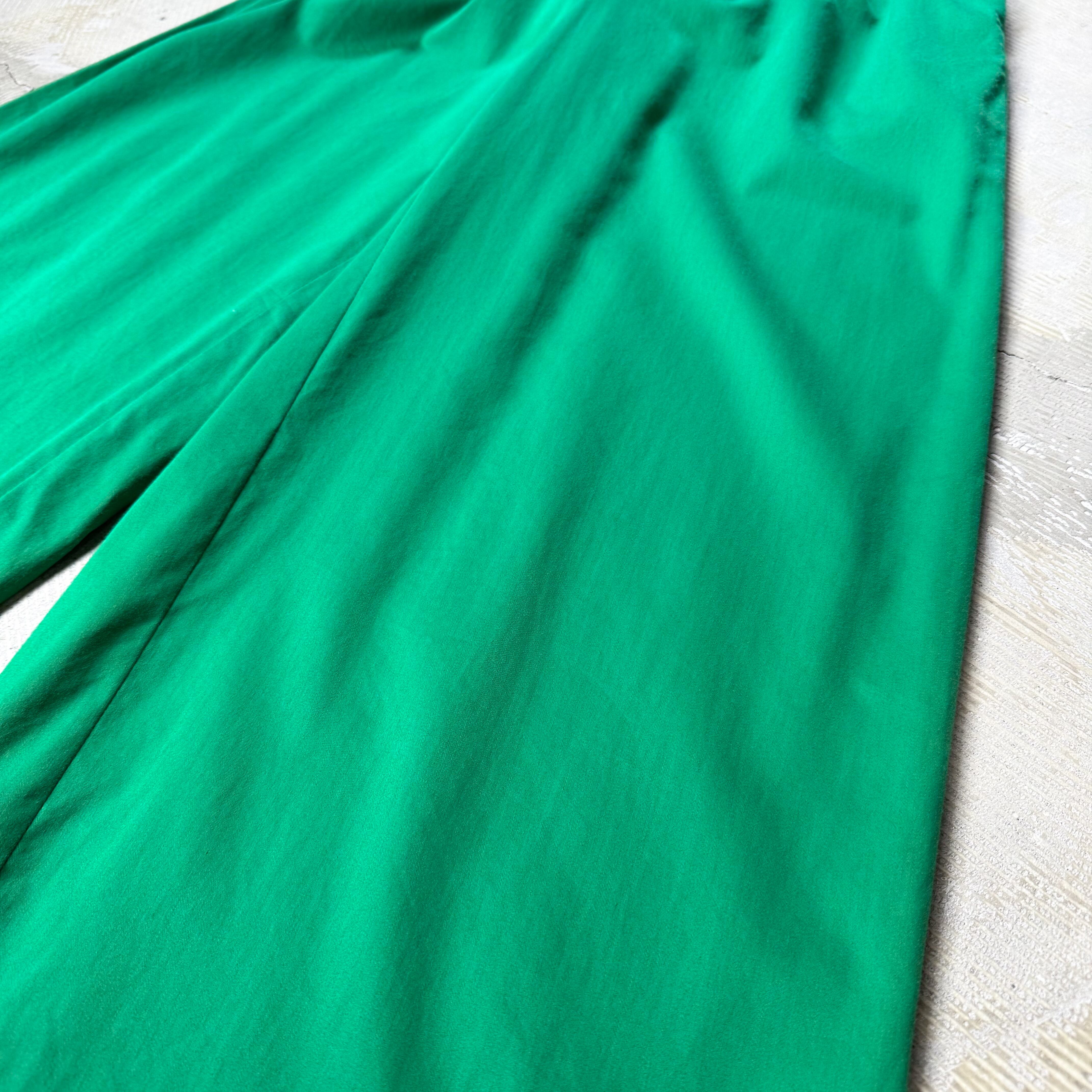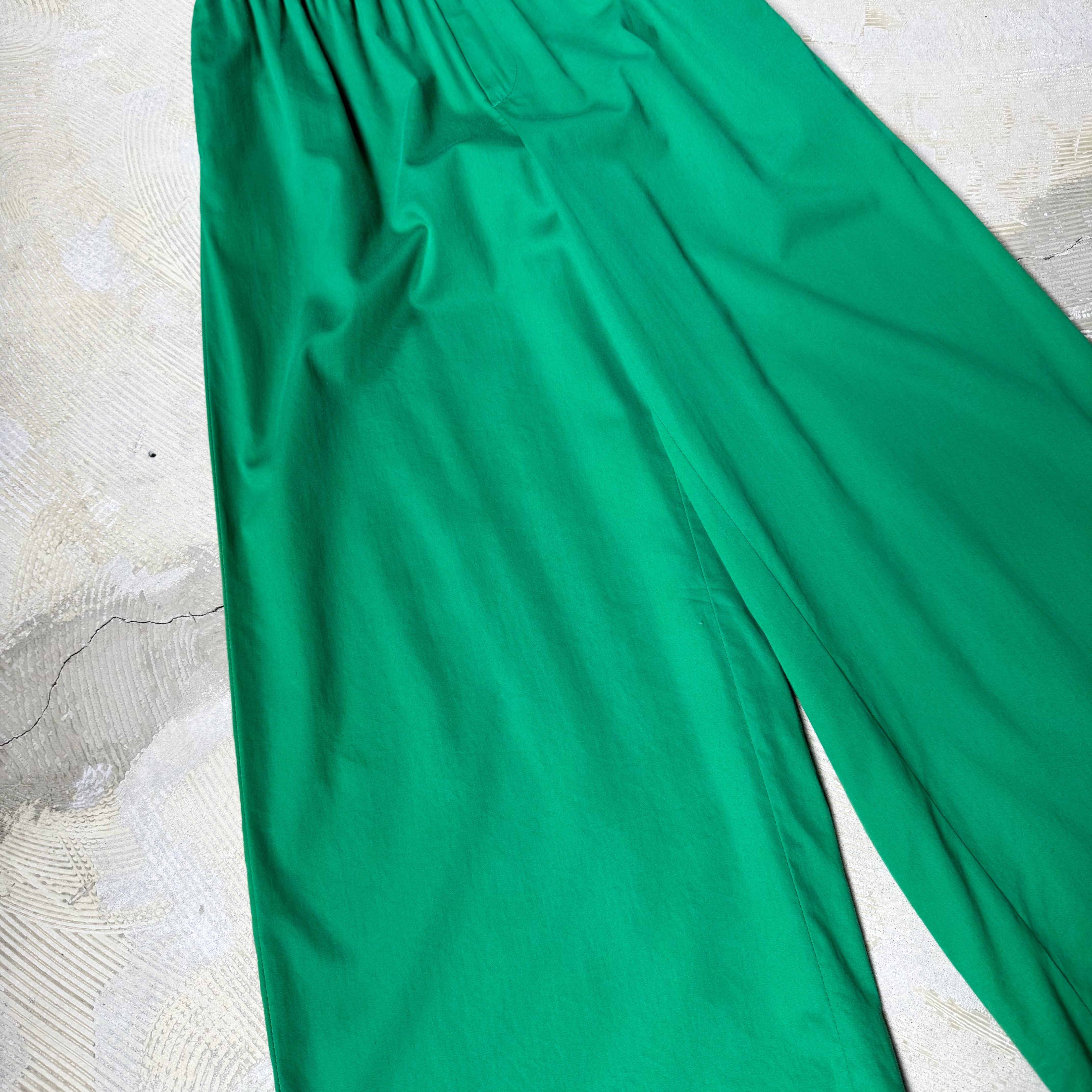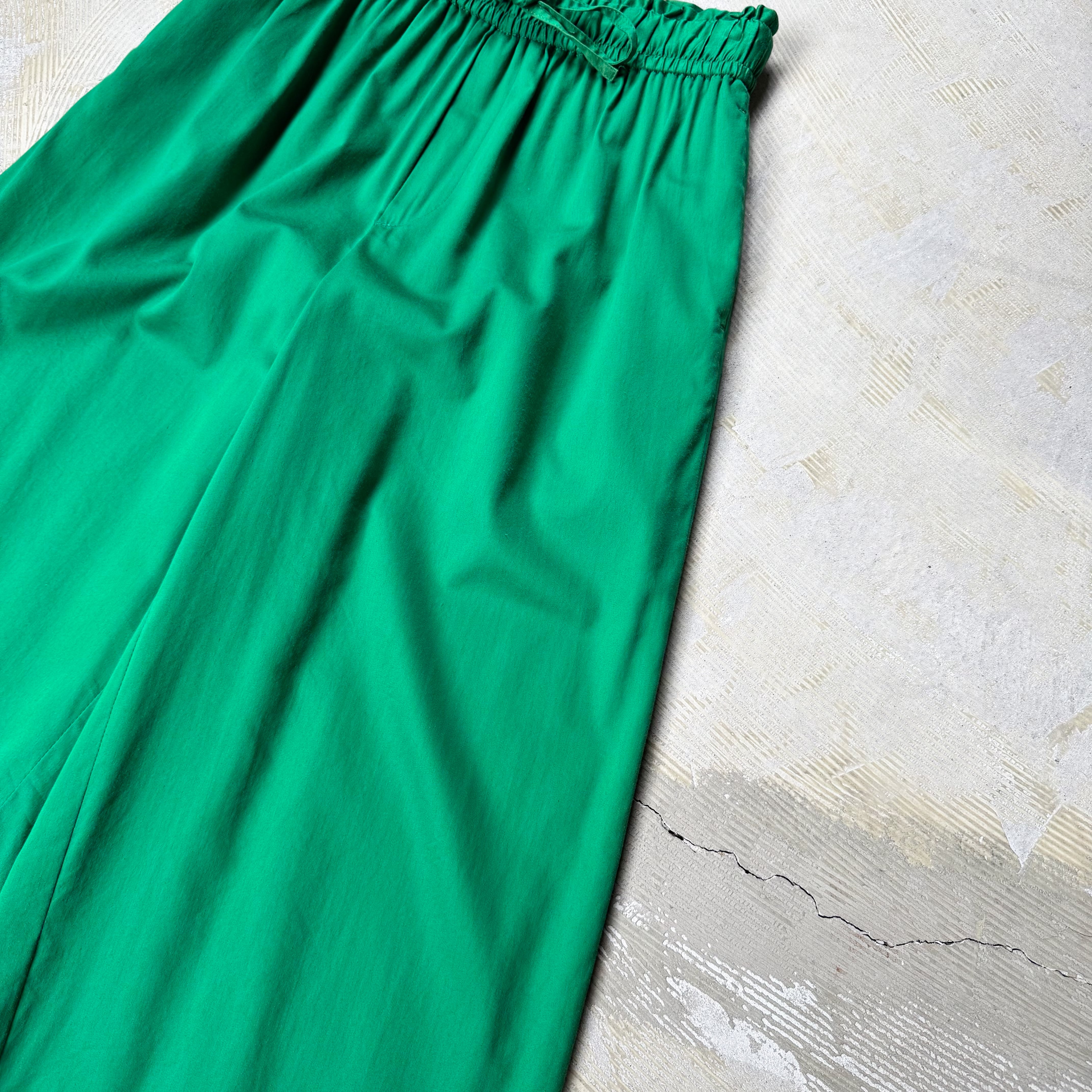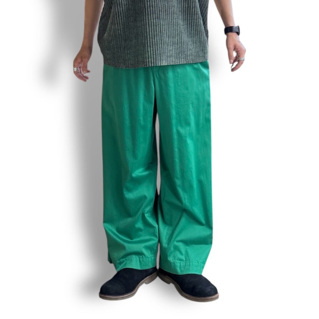 GREEN COLOR GATHER DESIGN WIDE SILHOUETTE PANTS / カラー デザイン ワイド ギャザー パンツ