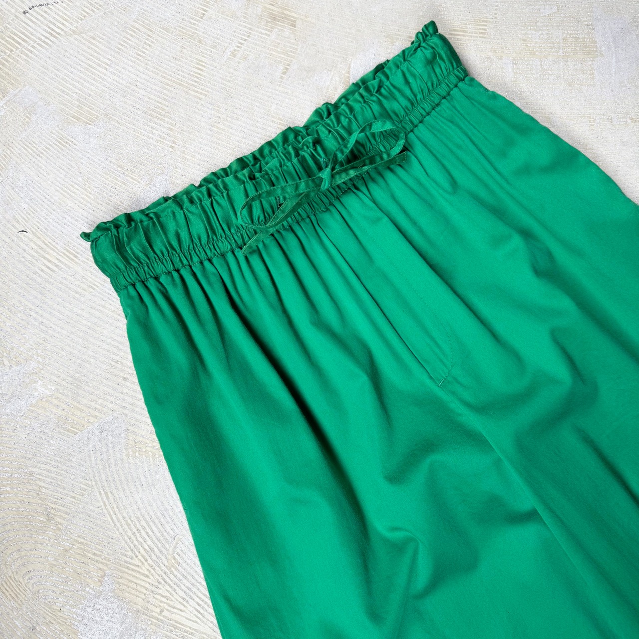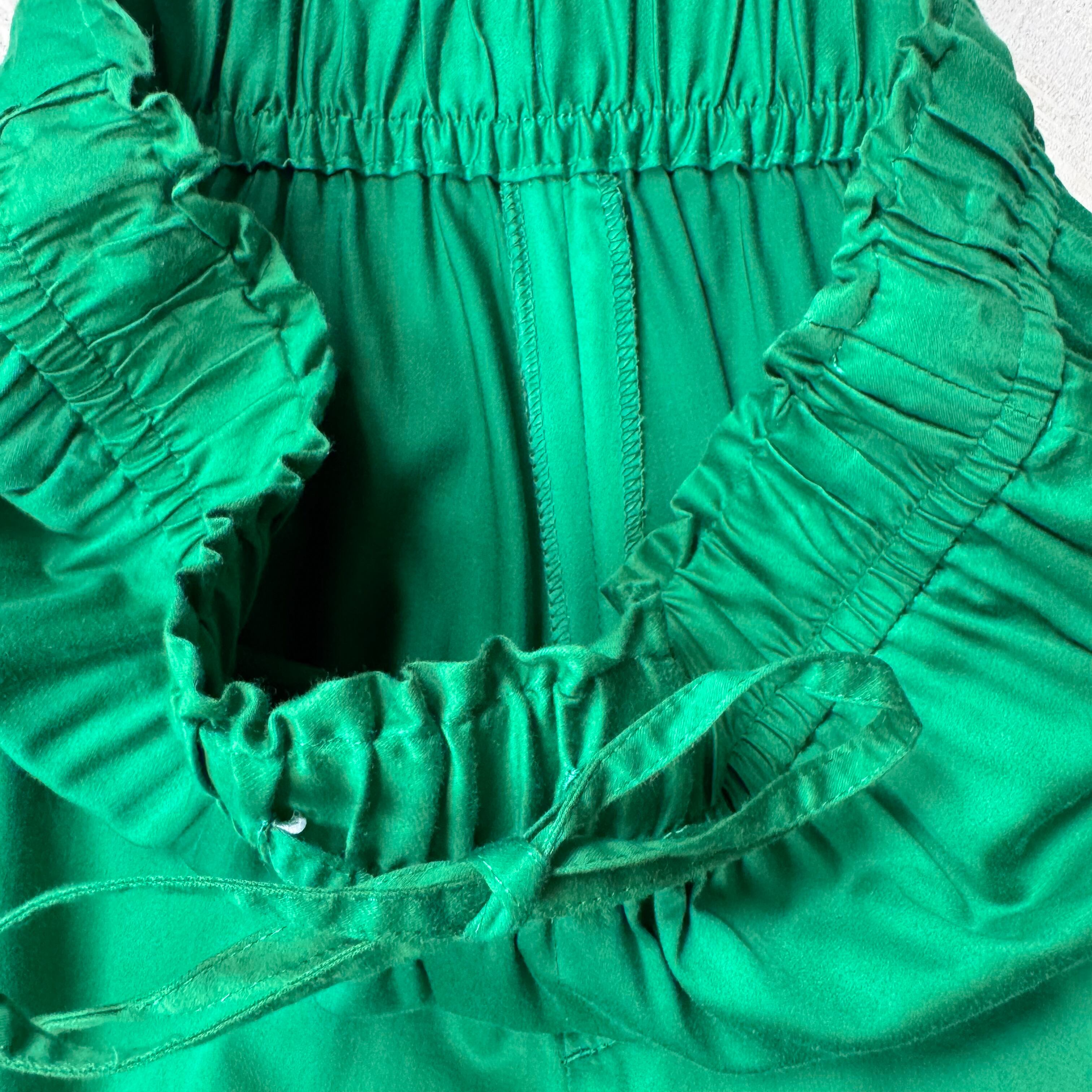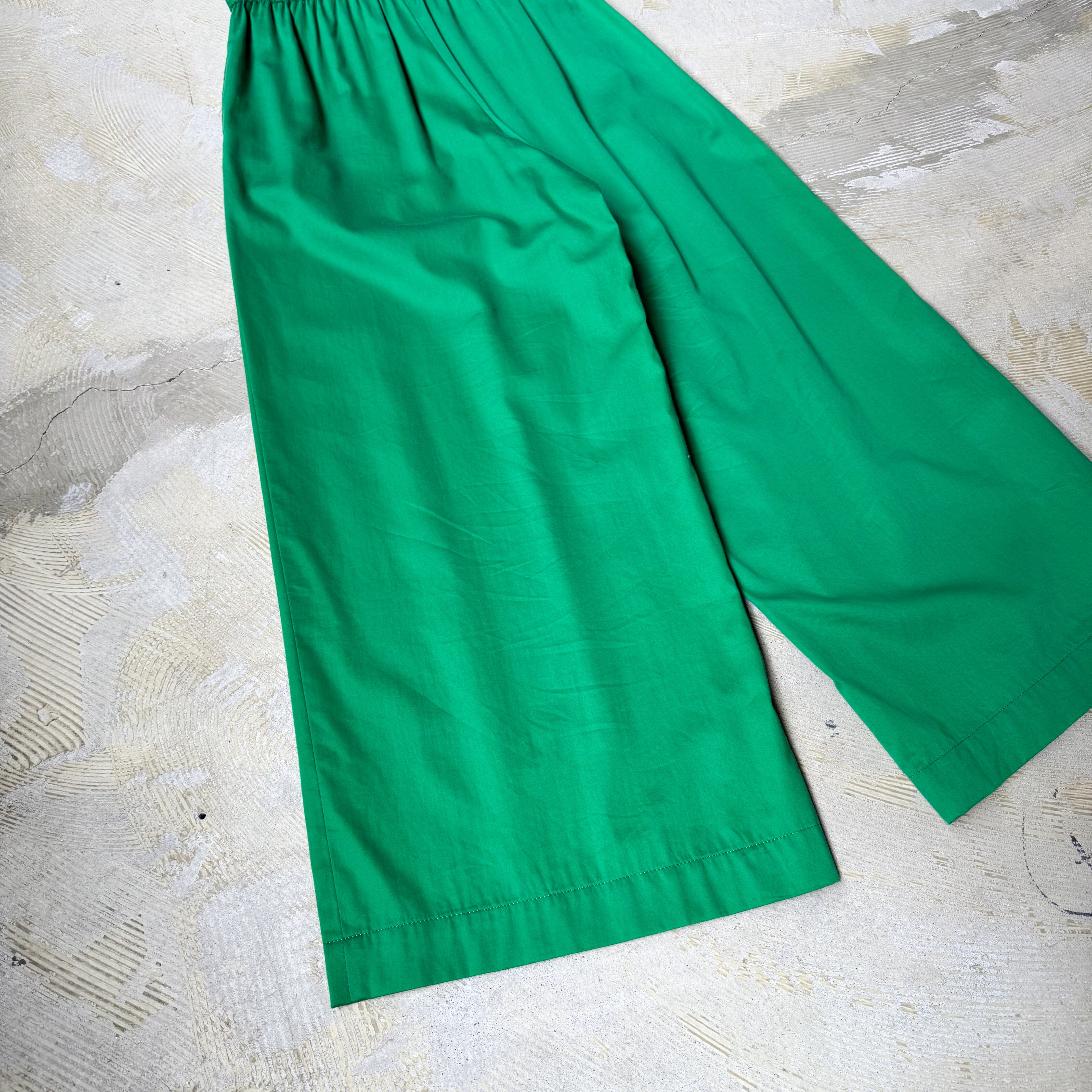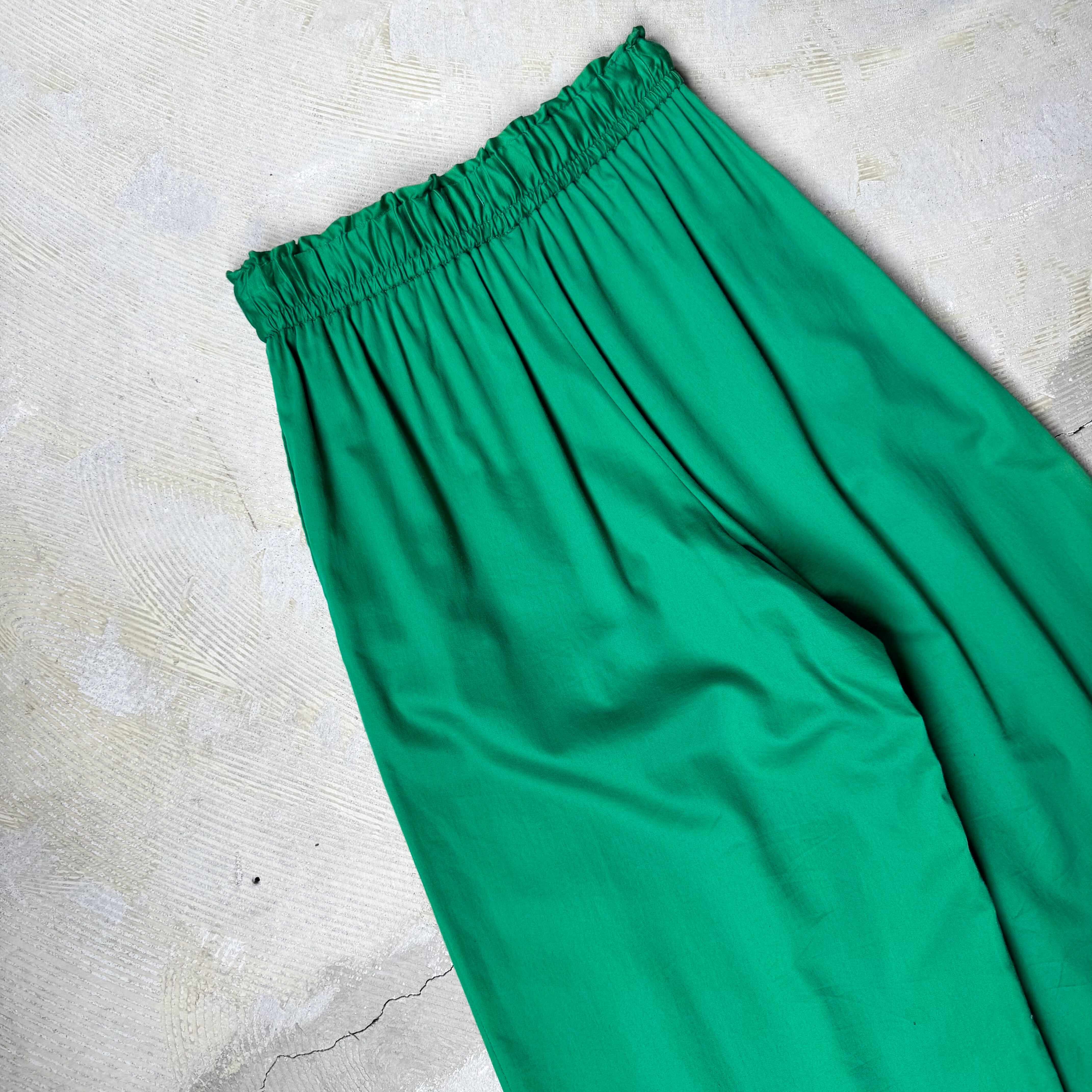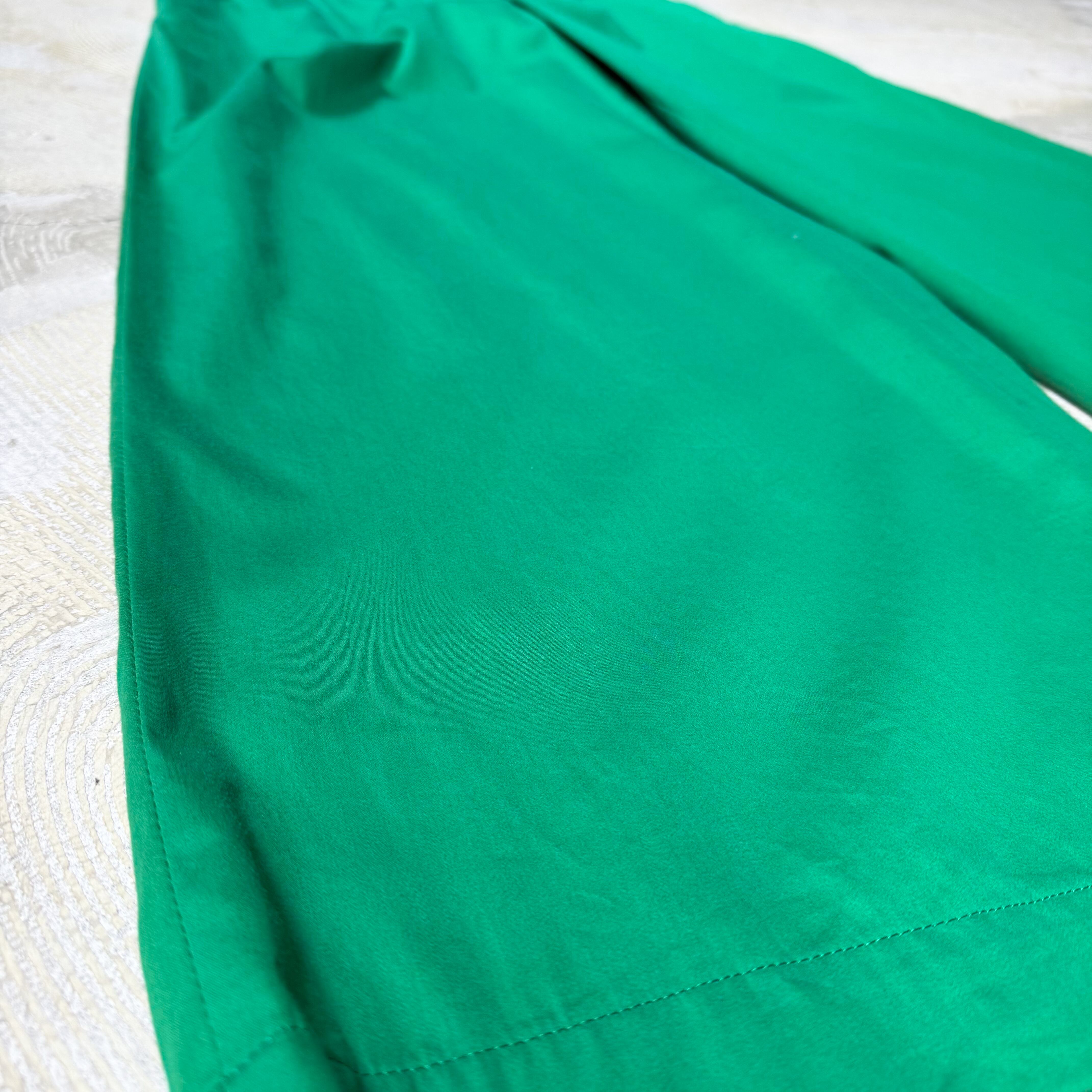GREEN COLOR GATHER DESIGN WIDE SILHOUETTE PANTS / カラー デザイン ワイド ギャザー パンツ