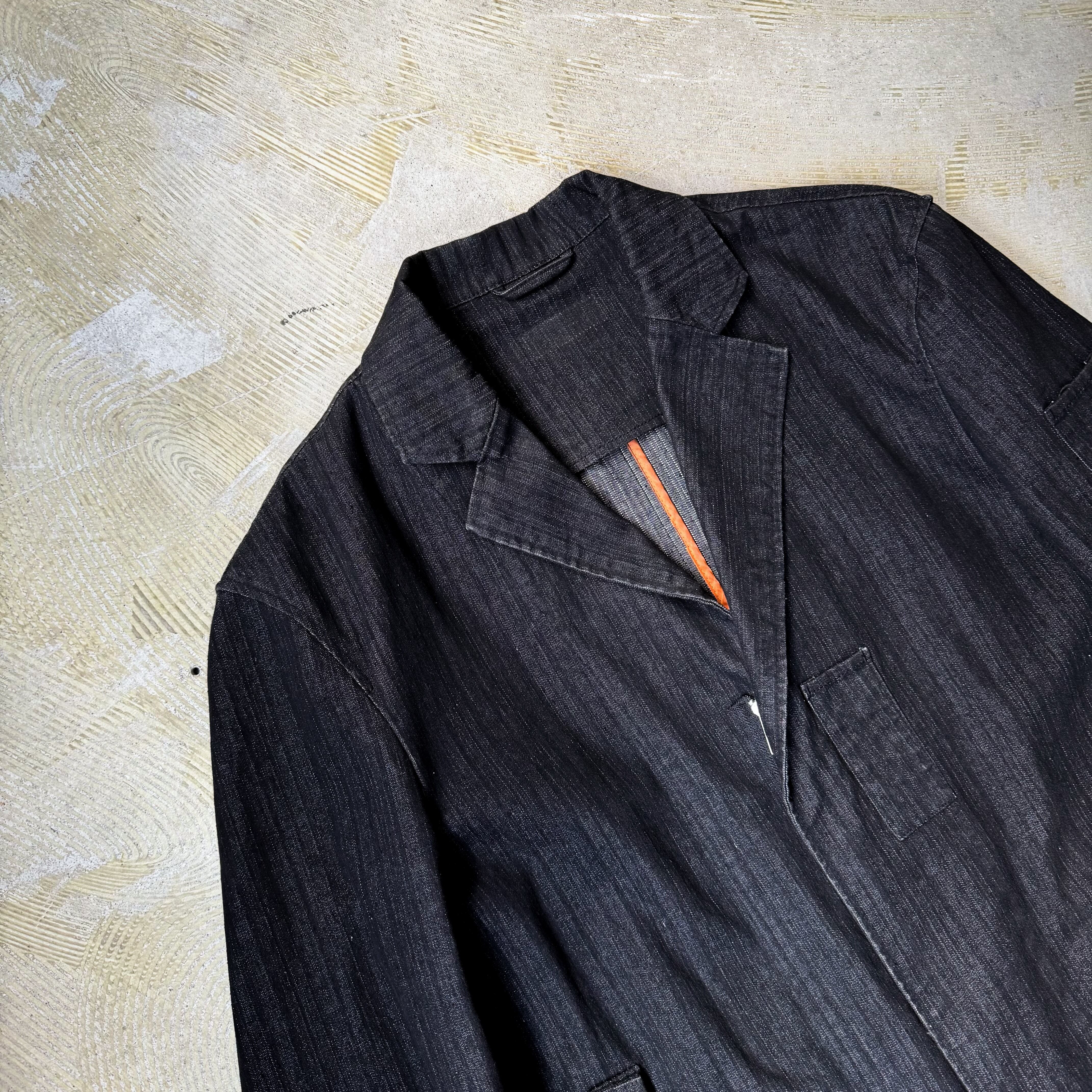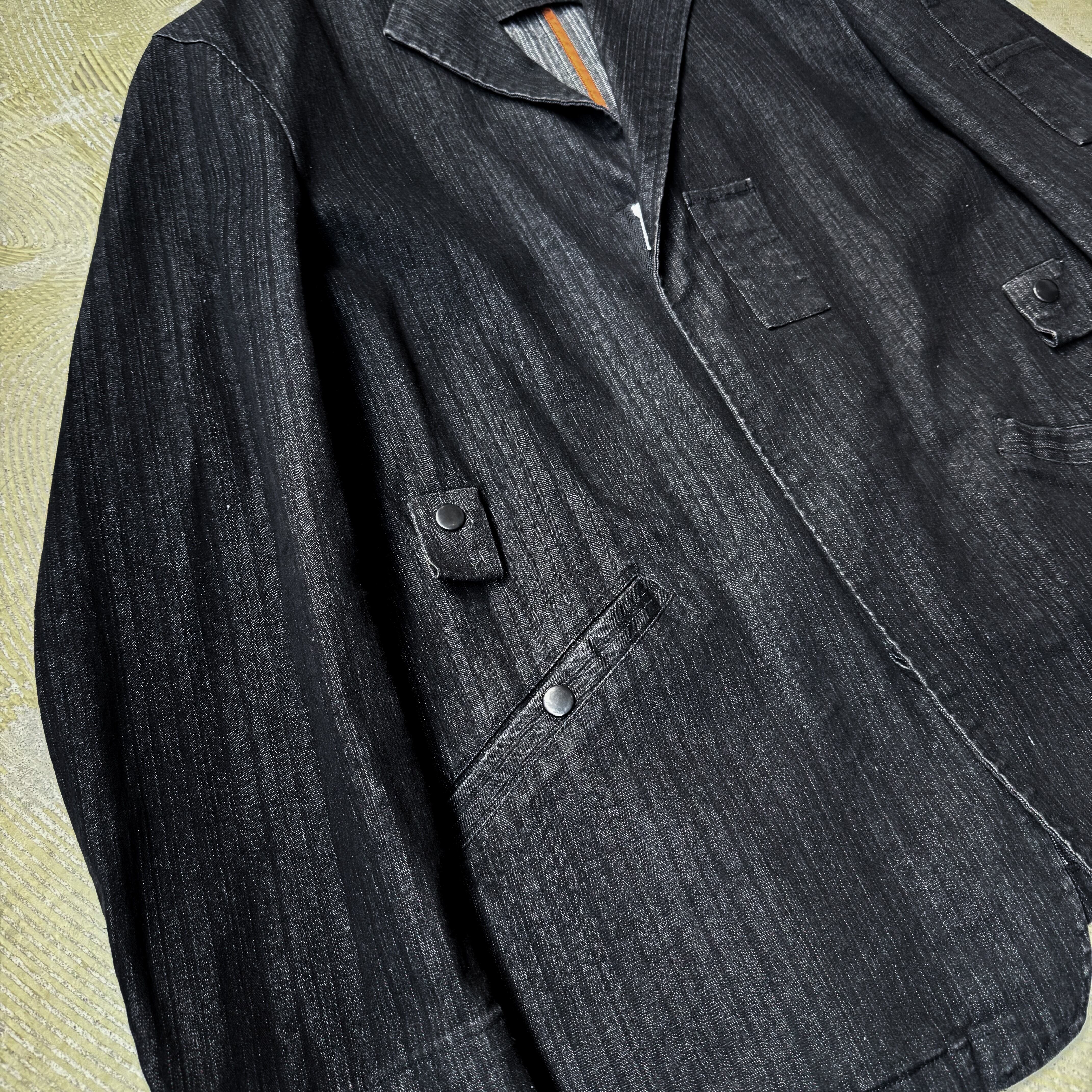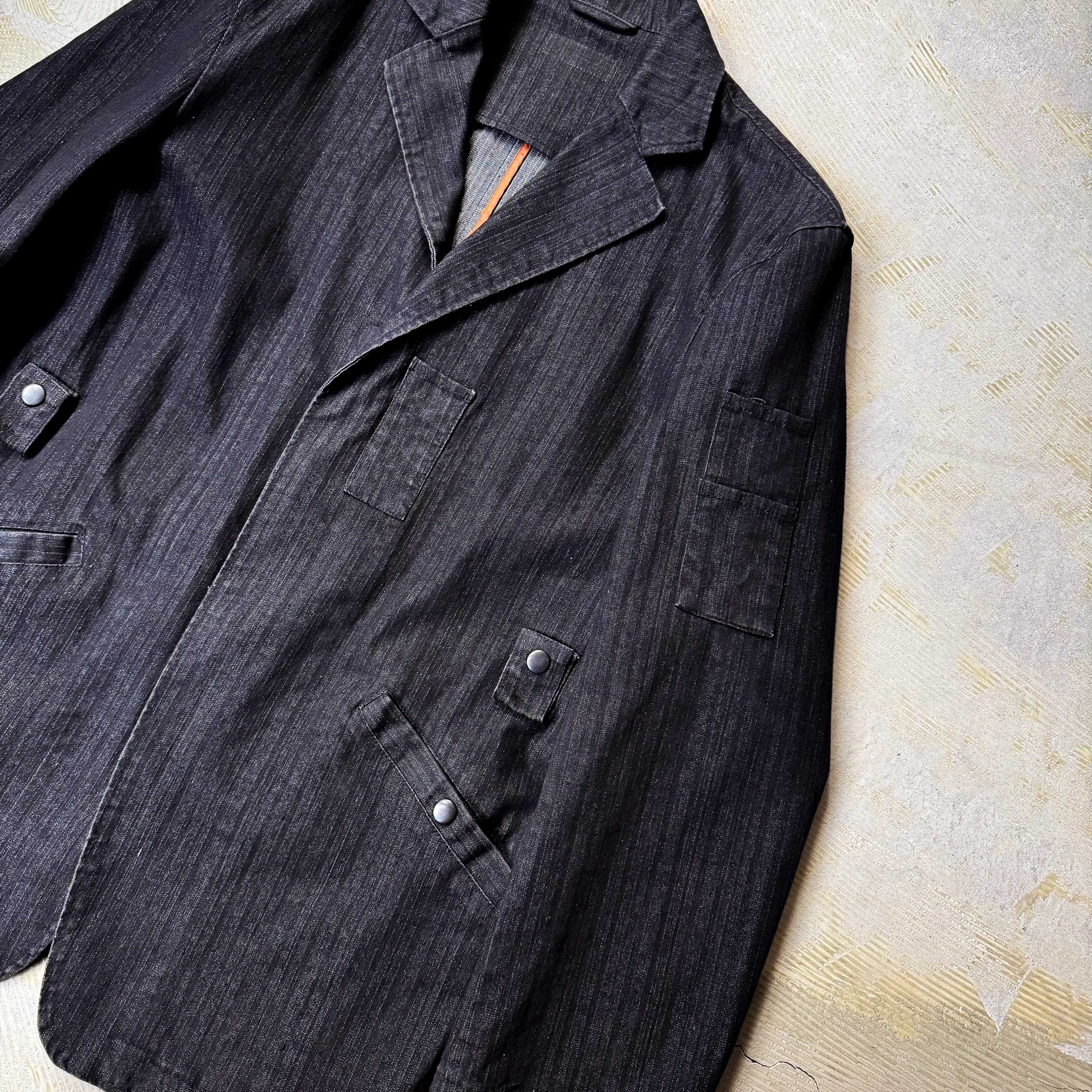 BLACK DENIM WORK DEISGN TAILORED JACKET / ブラック デニム ワーク テーラード ジャケット