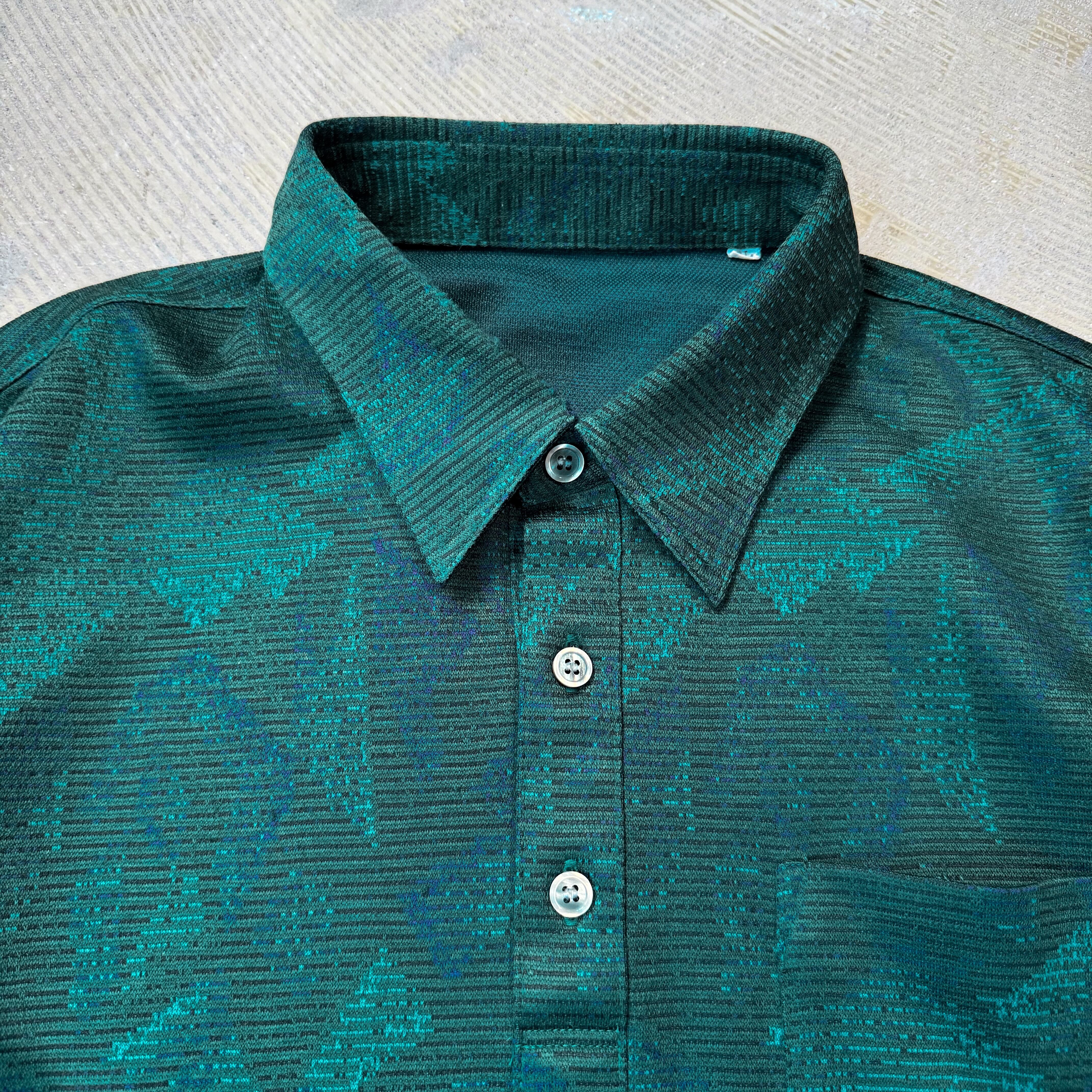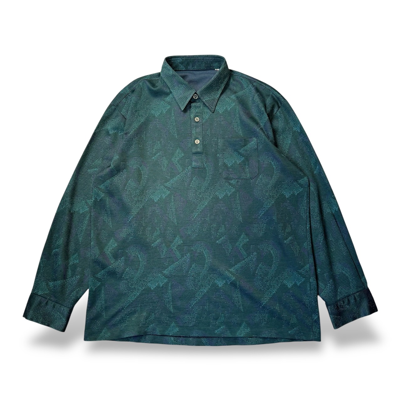 GEOMETRIC ABSTRACT PATTERN L/S POLO SHIRT / 幾何学 抽象 アート 長袖 ポロ シャツ