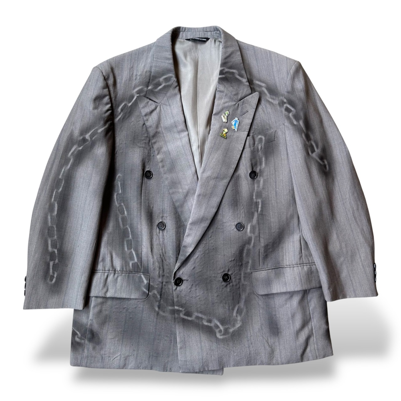 1980's SPRAY CHAIN MOTIF DOUBLE BREASTED JACKET / 80年代 スプレー ピンズ チェーン ダブル ブレスト テーラード ジャケット