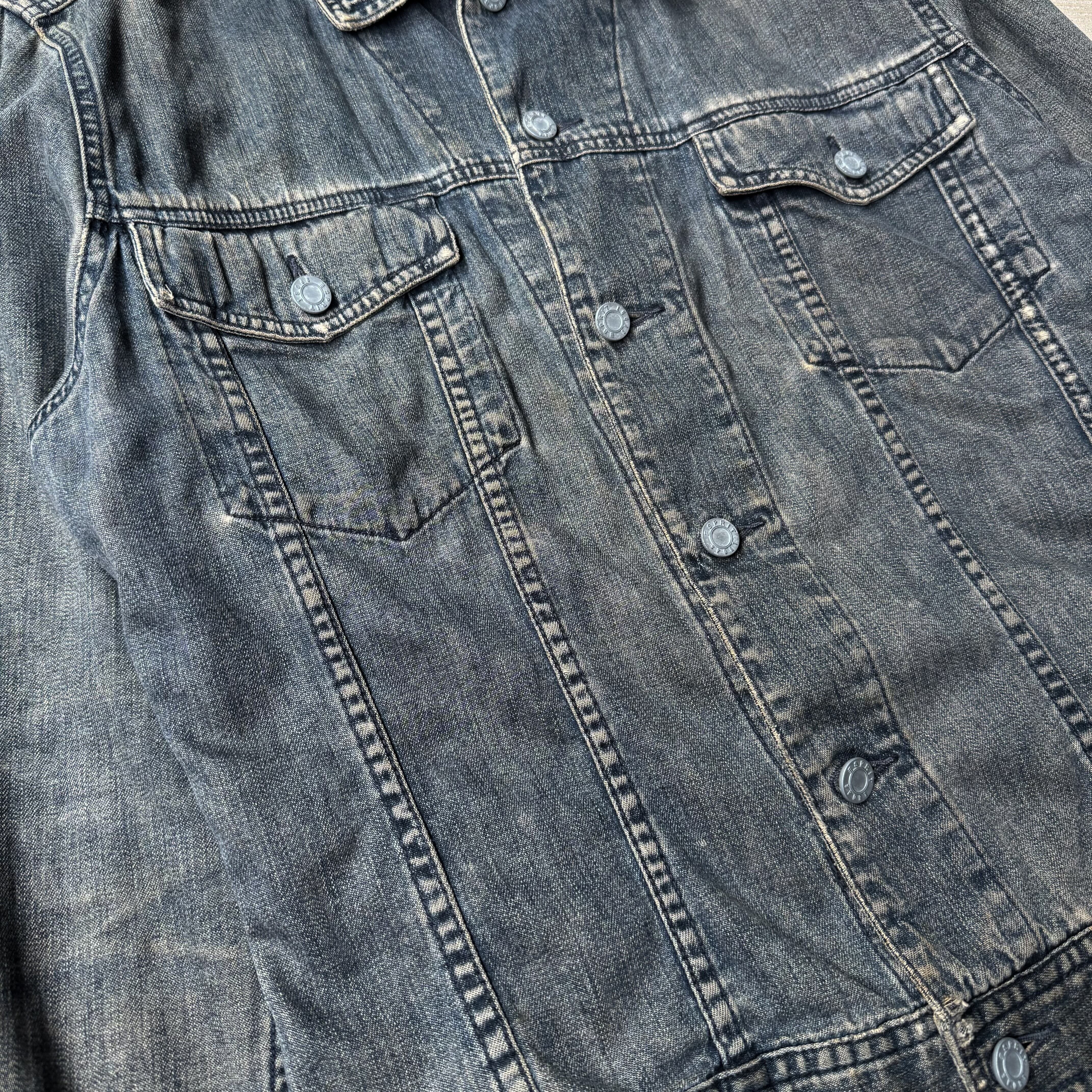 1990's "BRUSH" STENCIL DESIGN DENIM JACKET / 90年代 ステンシル フェード デニム ジャケット