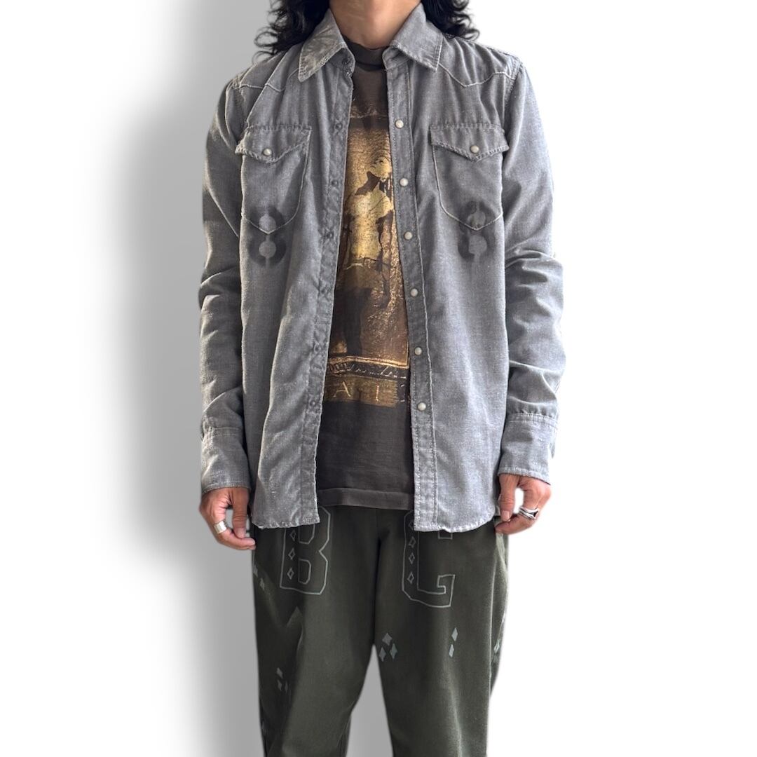 STENCIL ART WESTERN DESIGN DAMAGE LINEN L/S SHIRT / ステンシル アート ウエスタン ダメージ リネン 長袖 シャツ