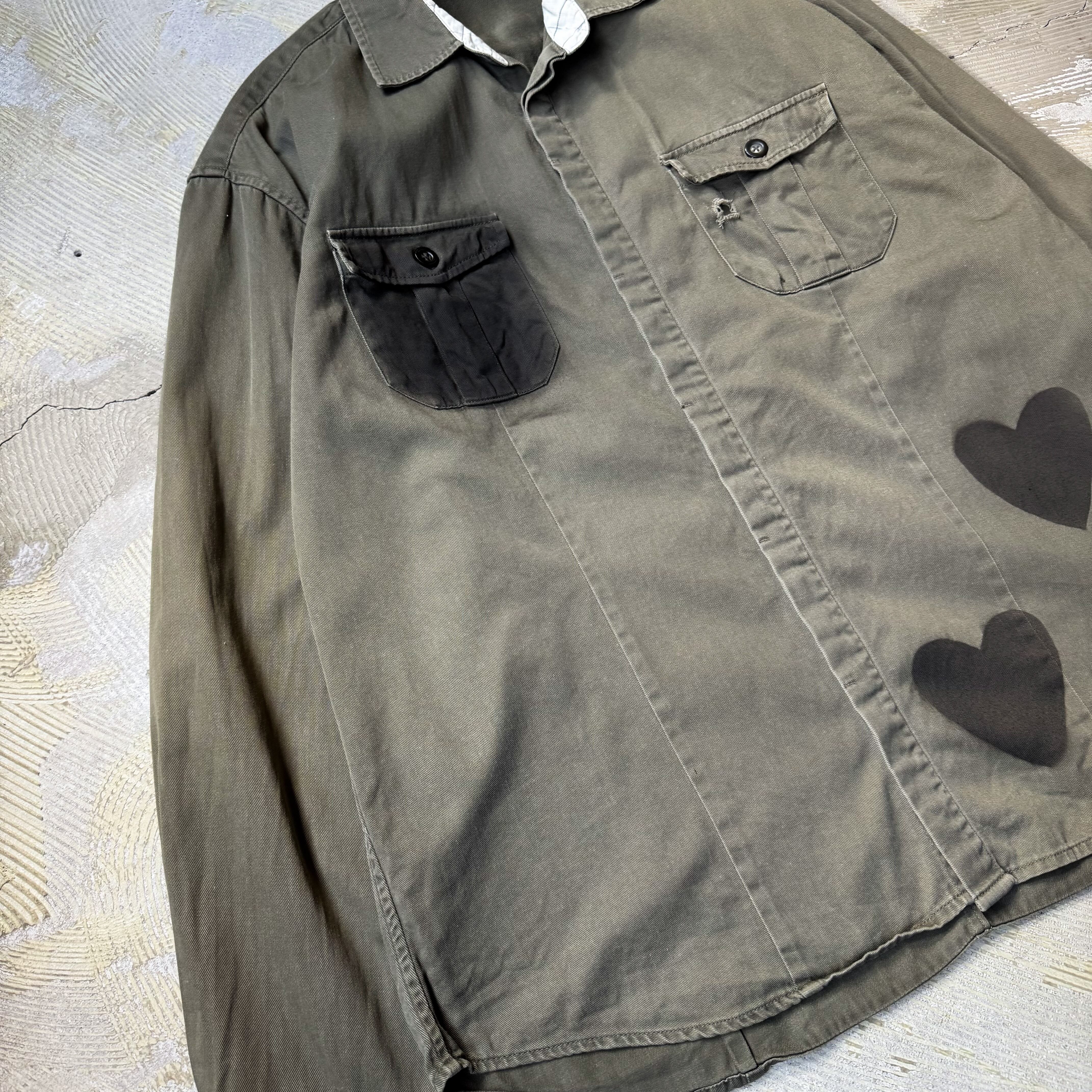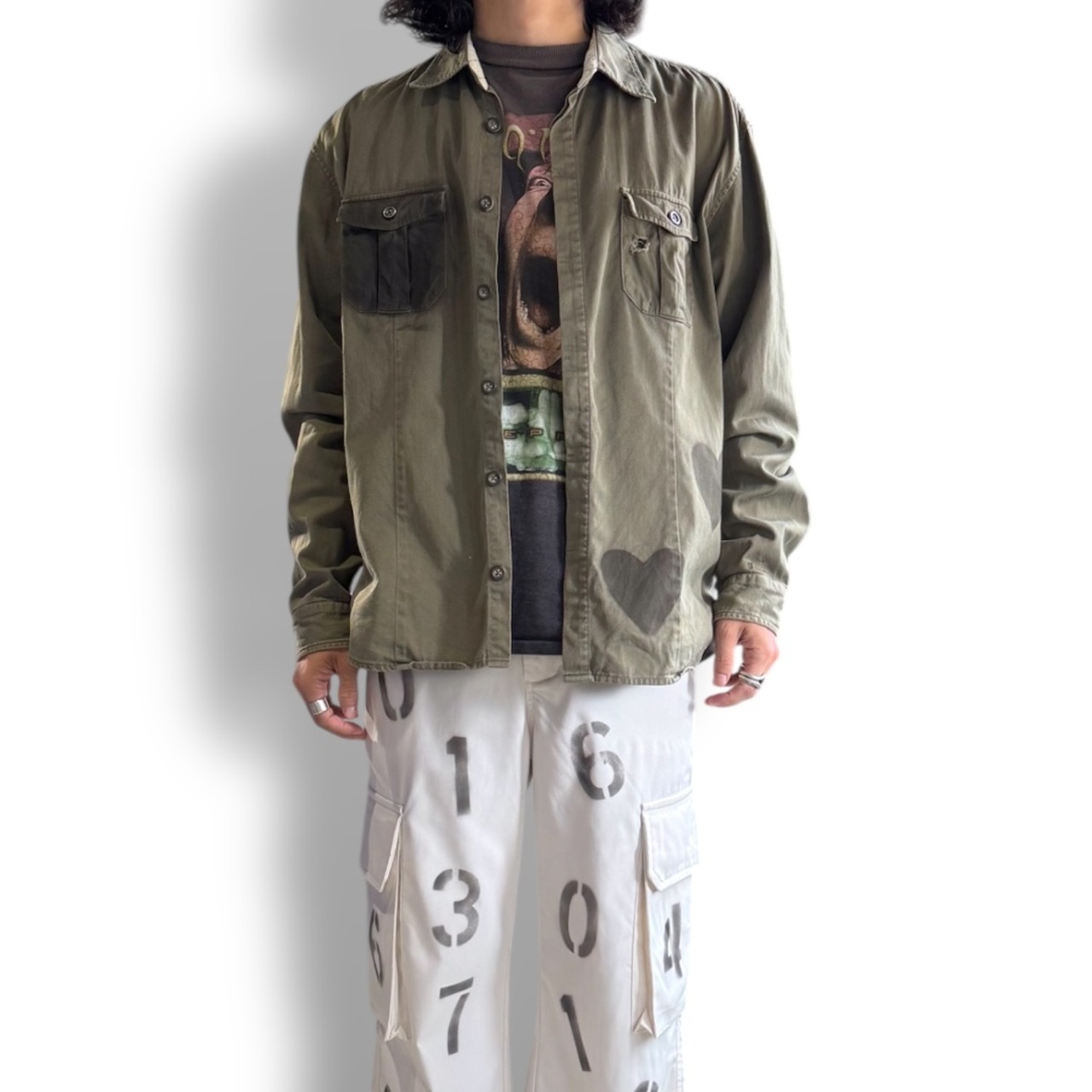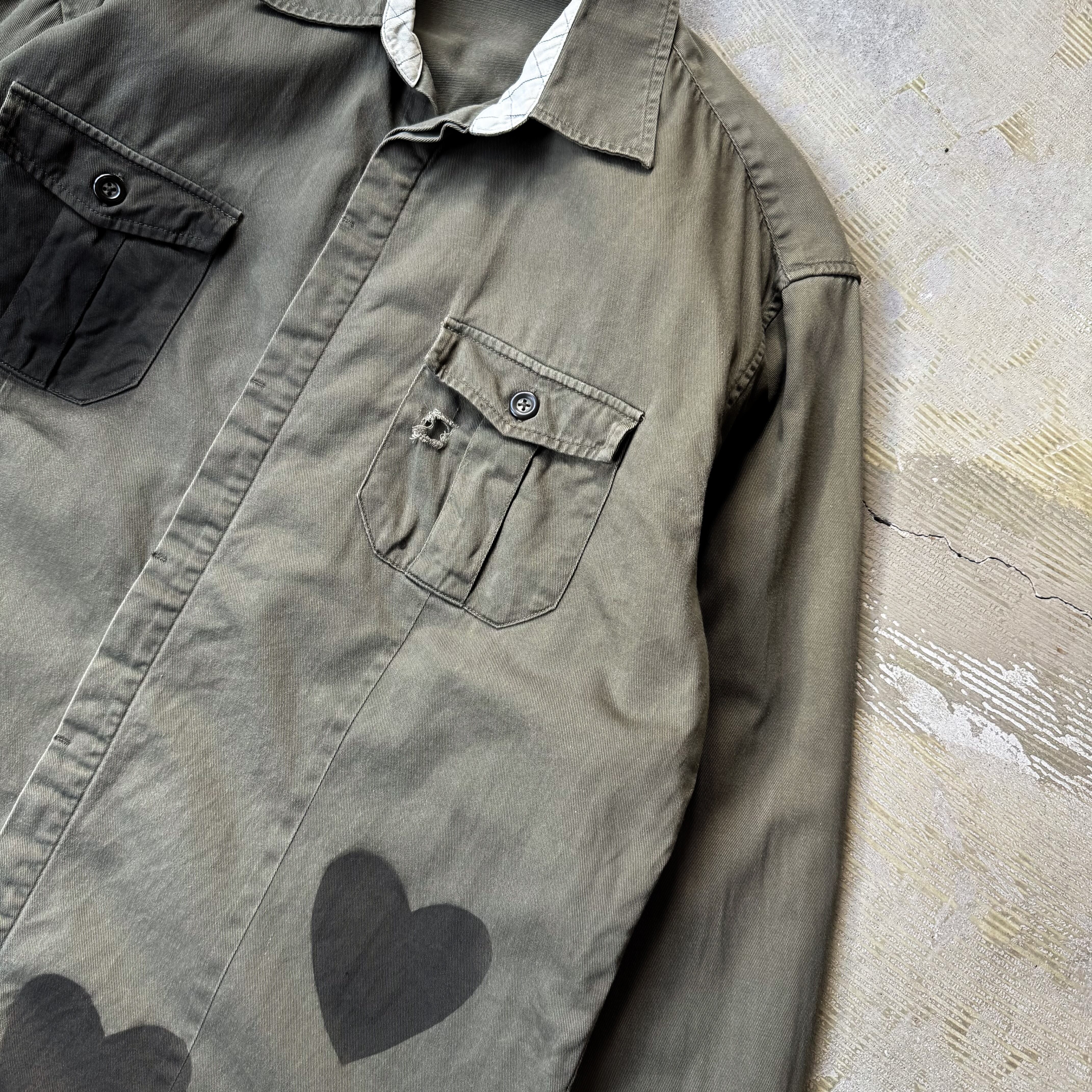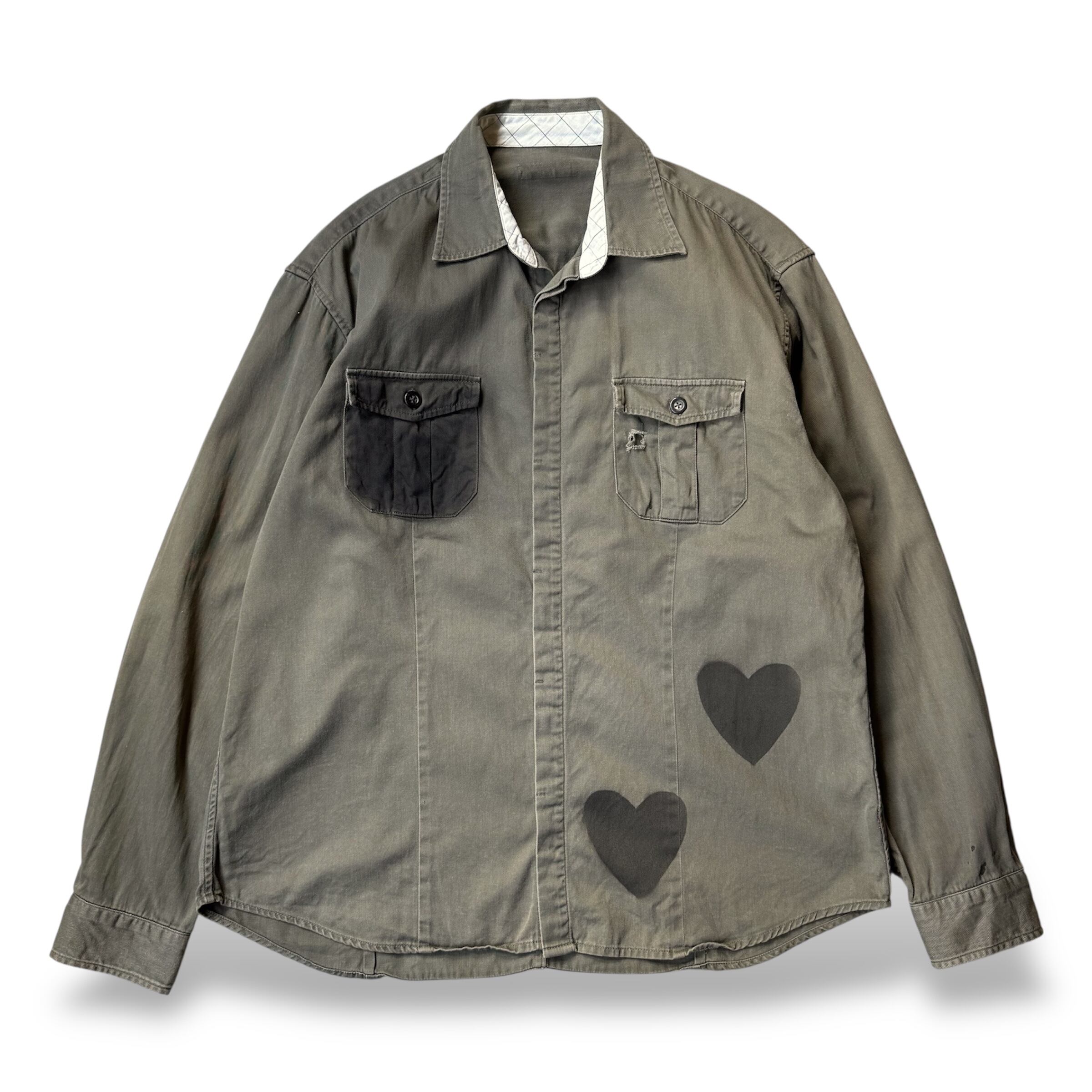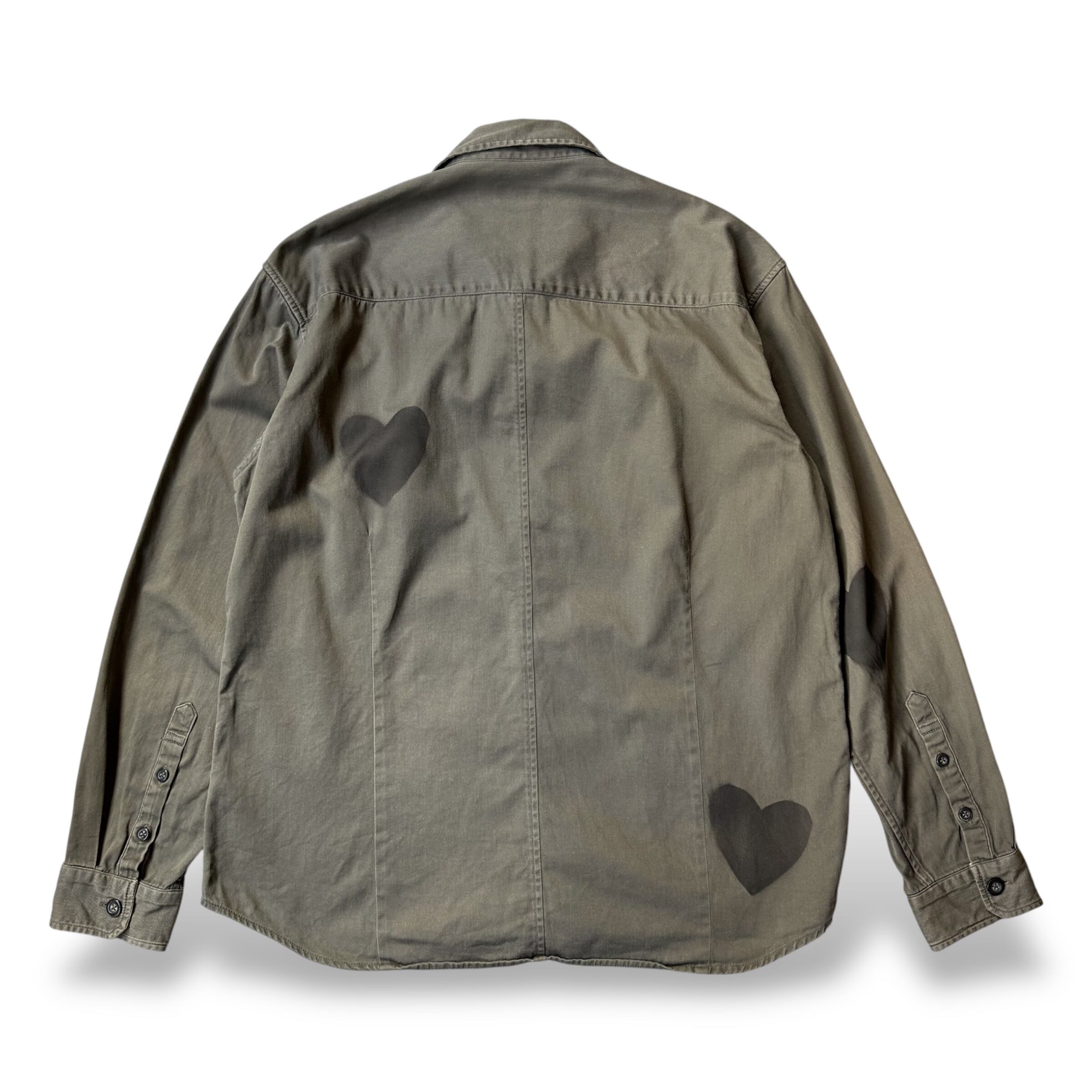 HEART STENCIL ART OPEN COLLAR L/S SHIRT / ステンシル アート ハート ミリタリー 長袖 シャツ