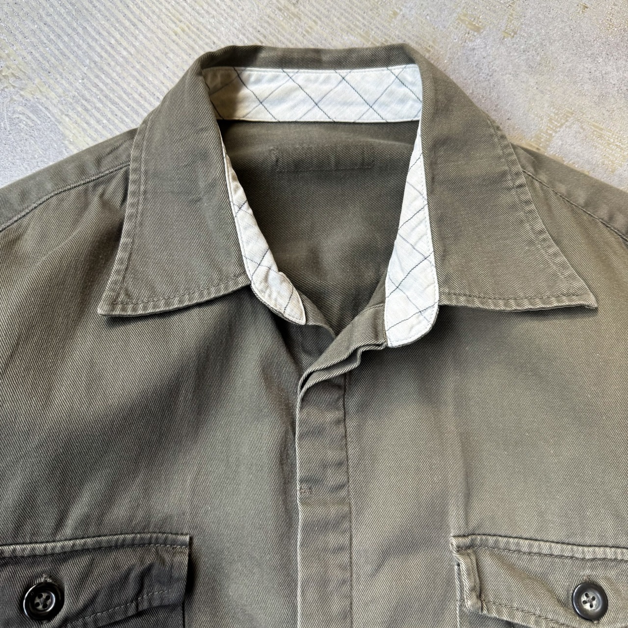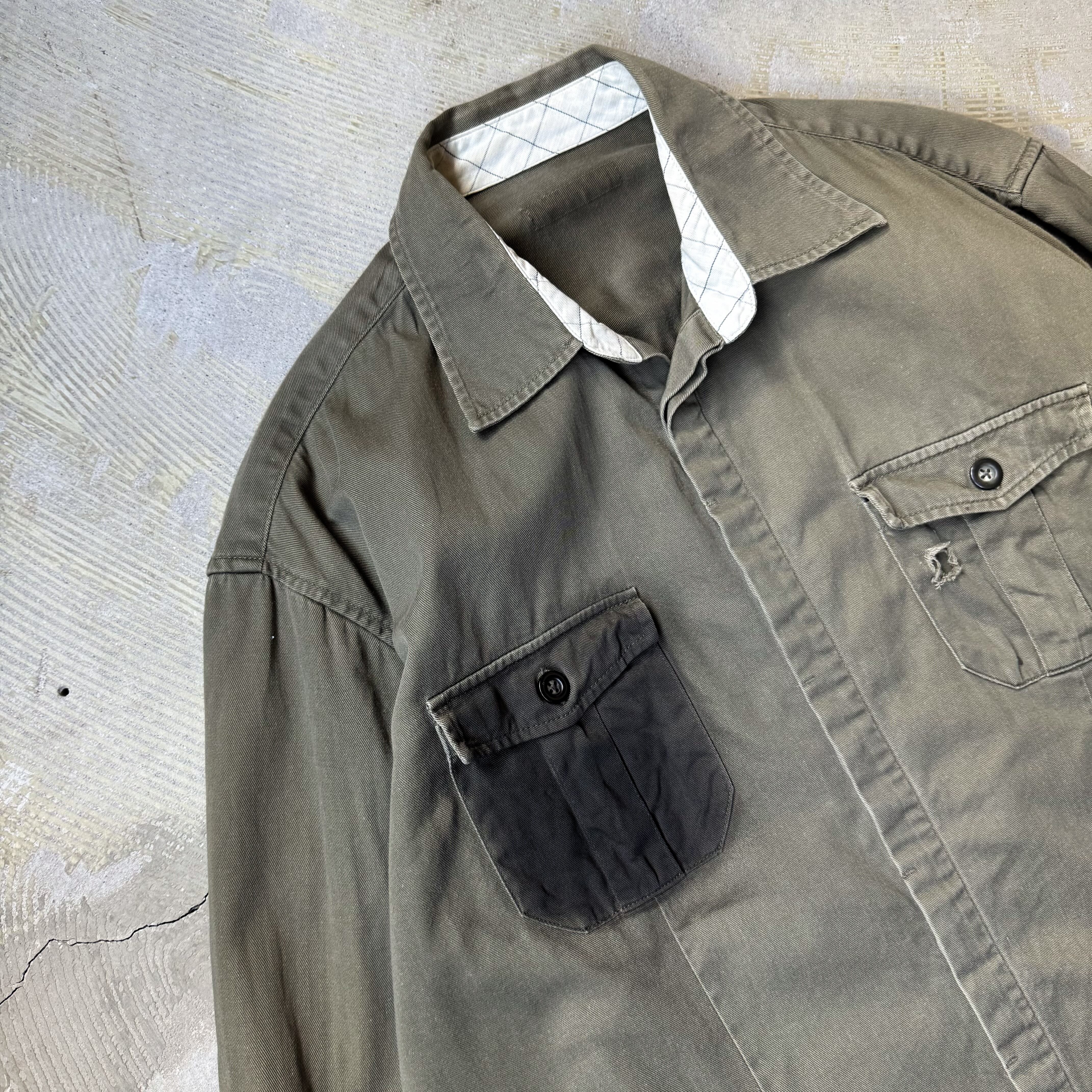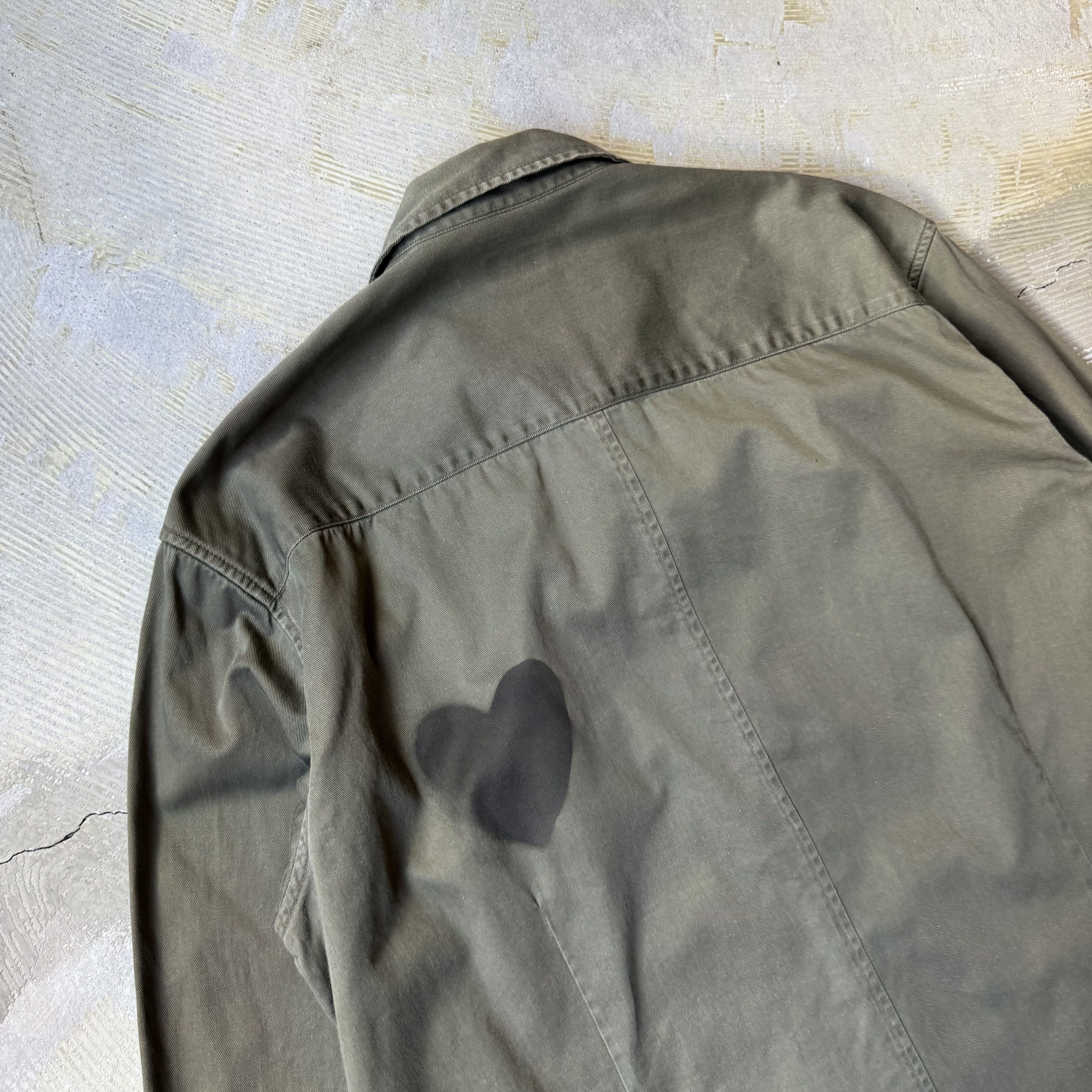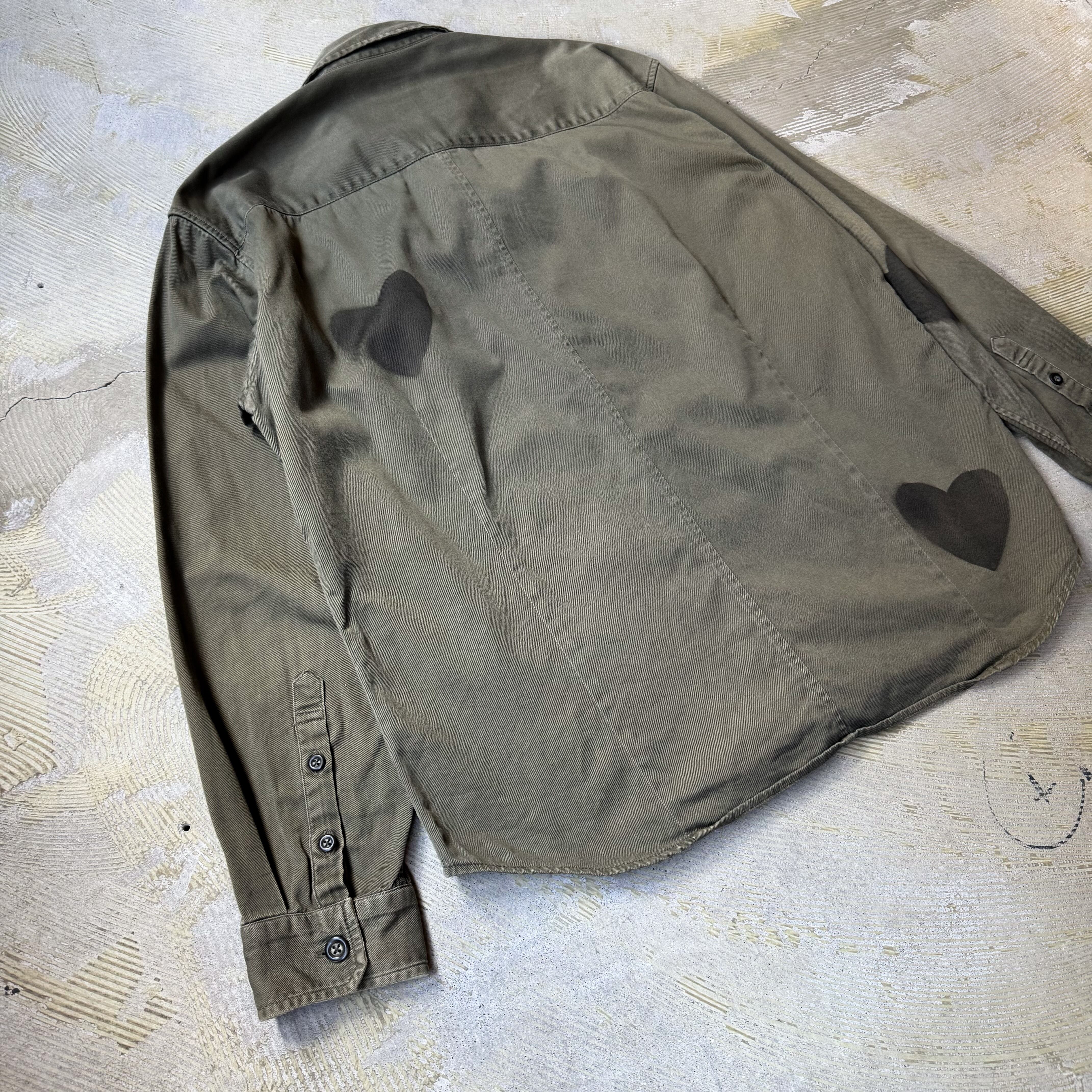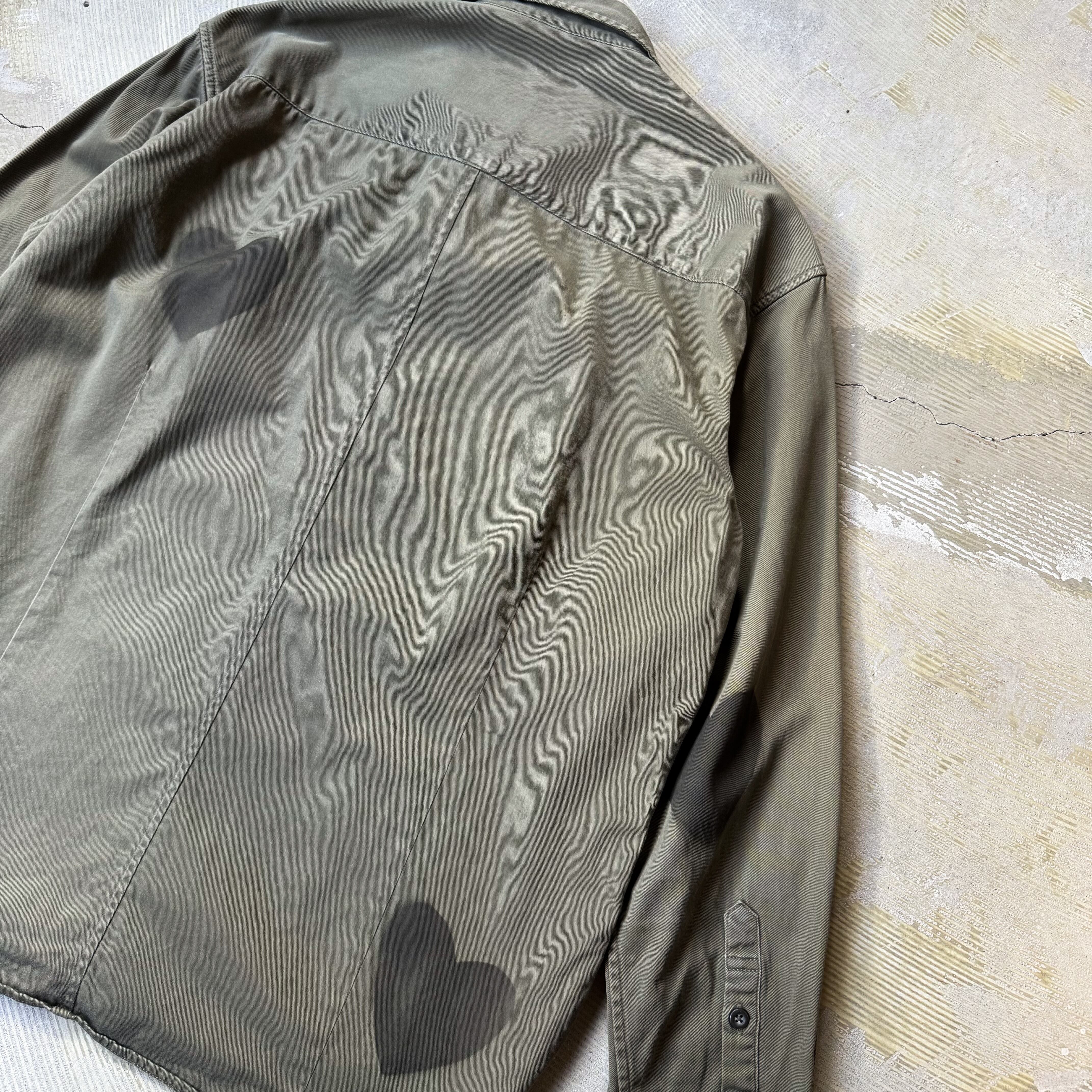 HEART STENCIL ART OPEN COLLAR L/S SHIRT / ステンシル アート ハート ミリタリー 長袖 シャツ