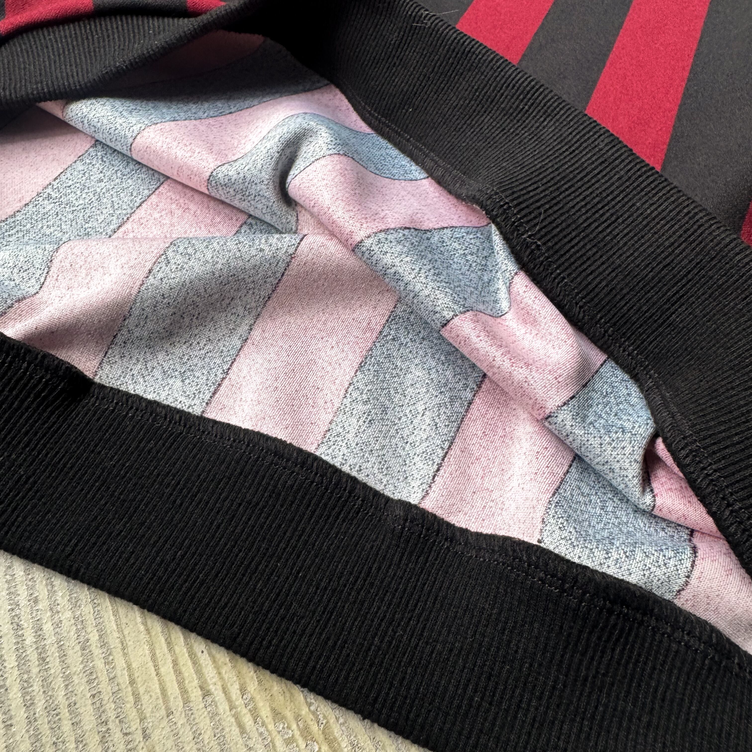 ・赤と黒の縦縞が生み出す強いコントラストは、クラシックとモダン