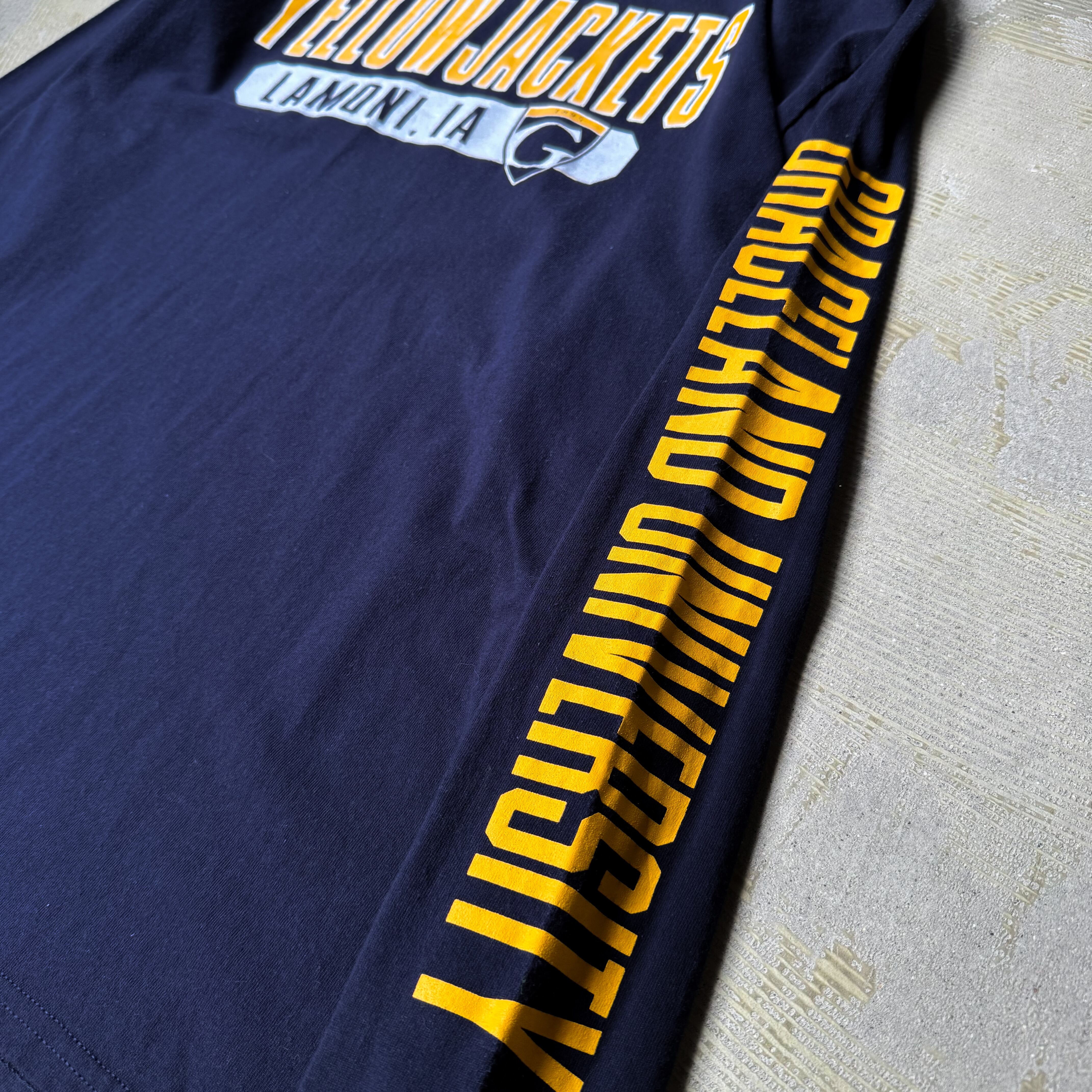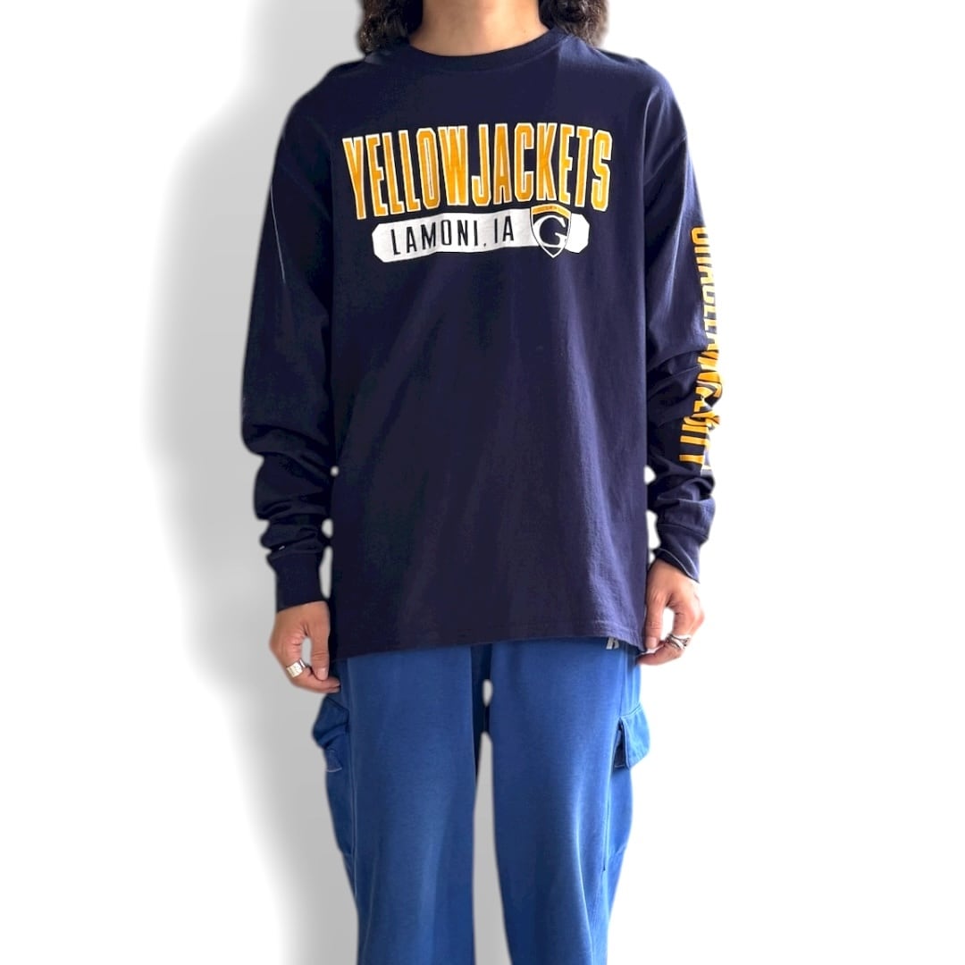 ネイビーボディに、イエロー×ホワイトの「YELLOWJACKETS」ロゴが映えるロングスリーブ。