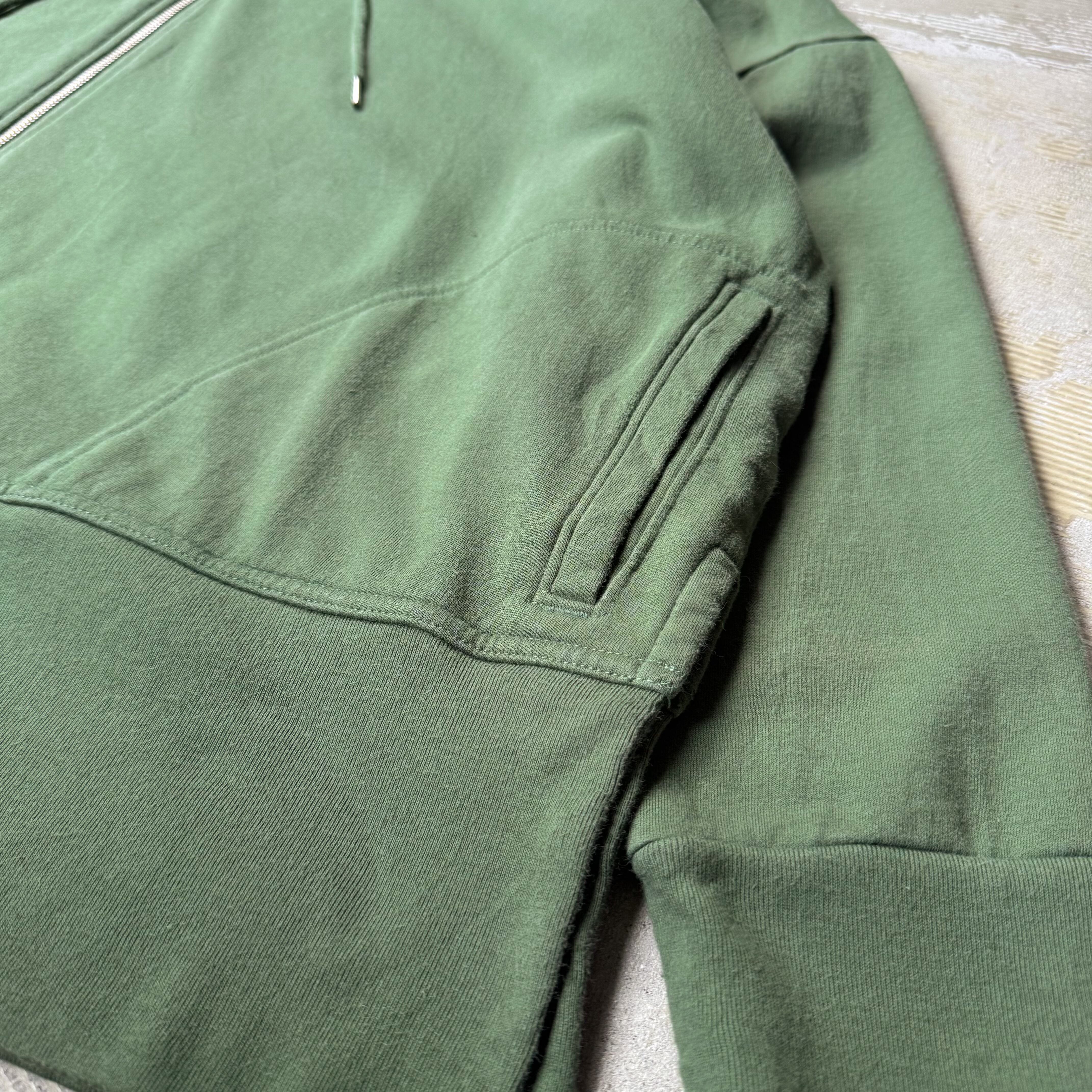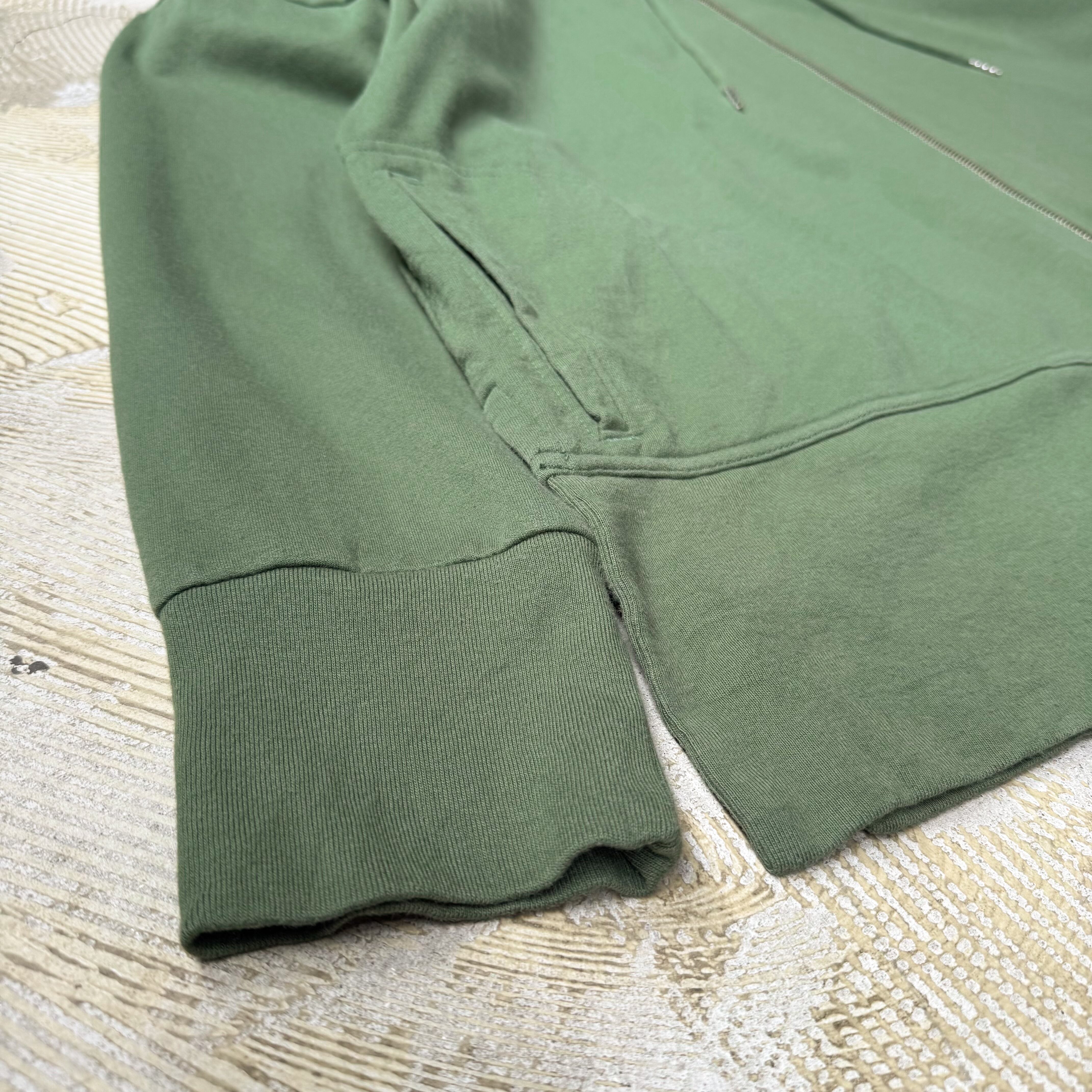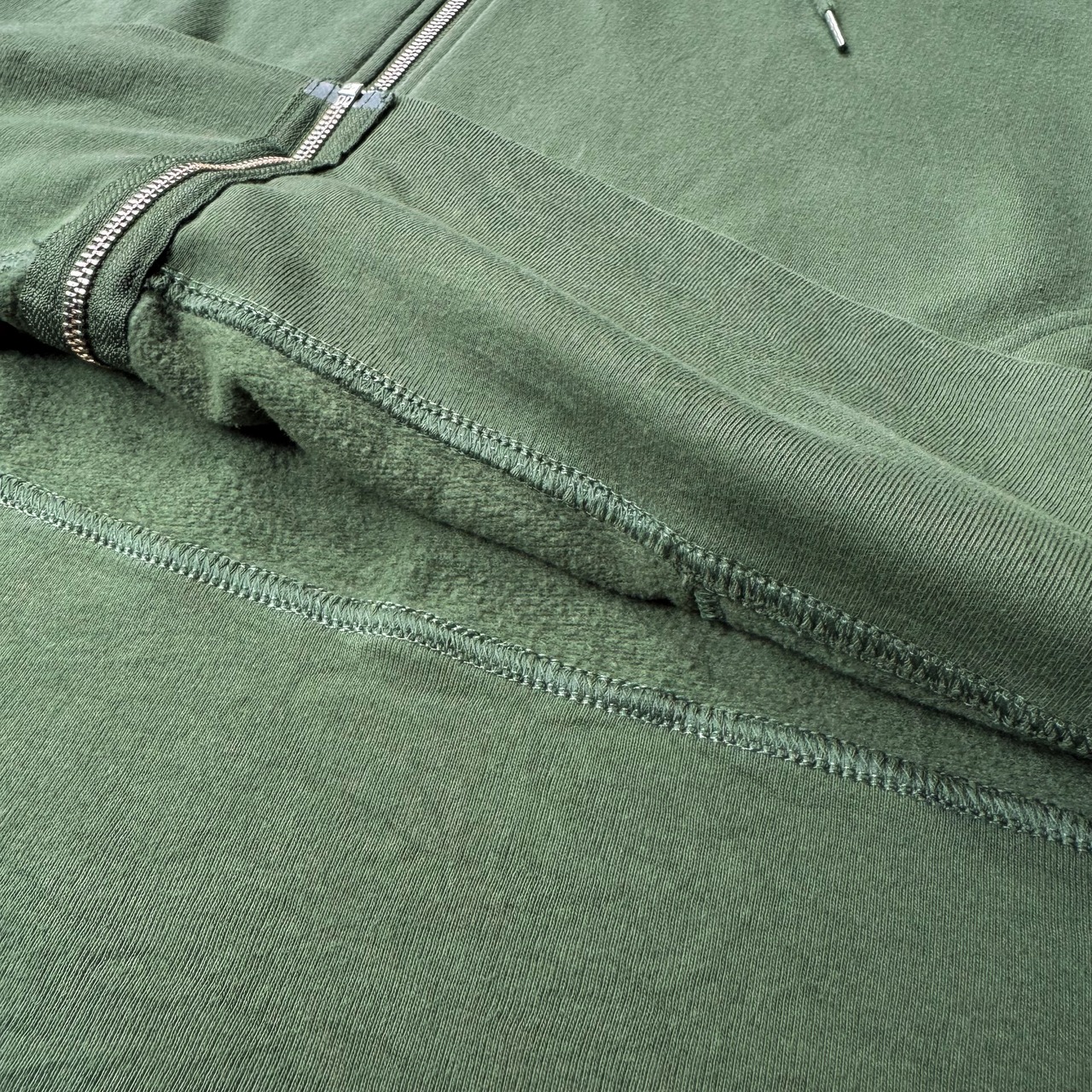 ・深みのあるグリーンカラーが印象的なジップアップパーカー。