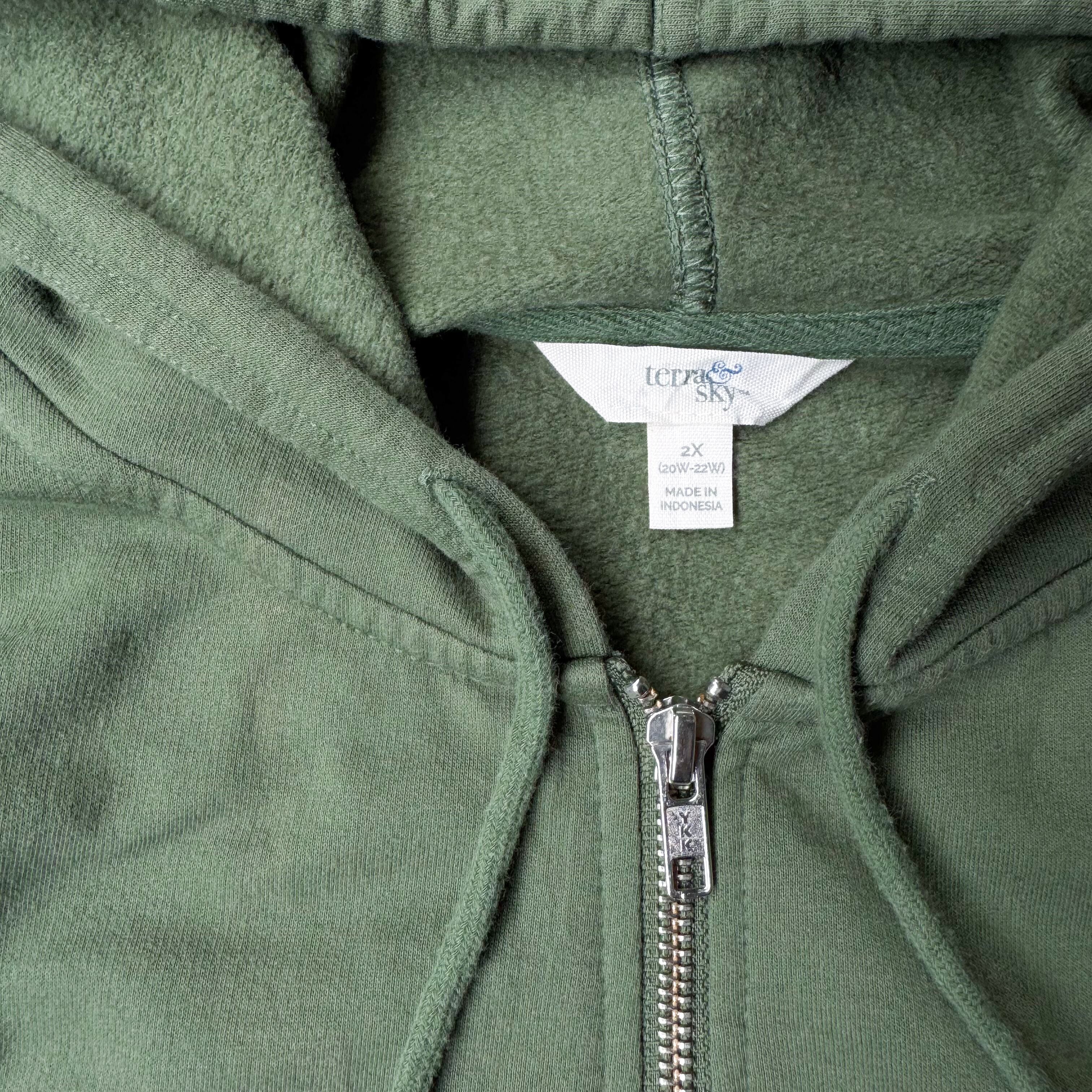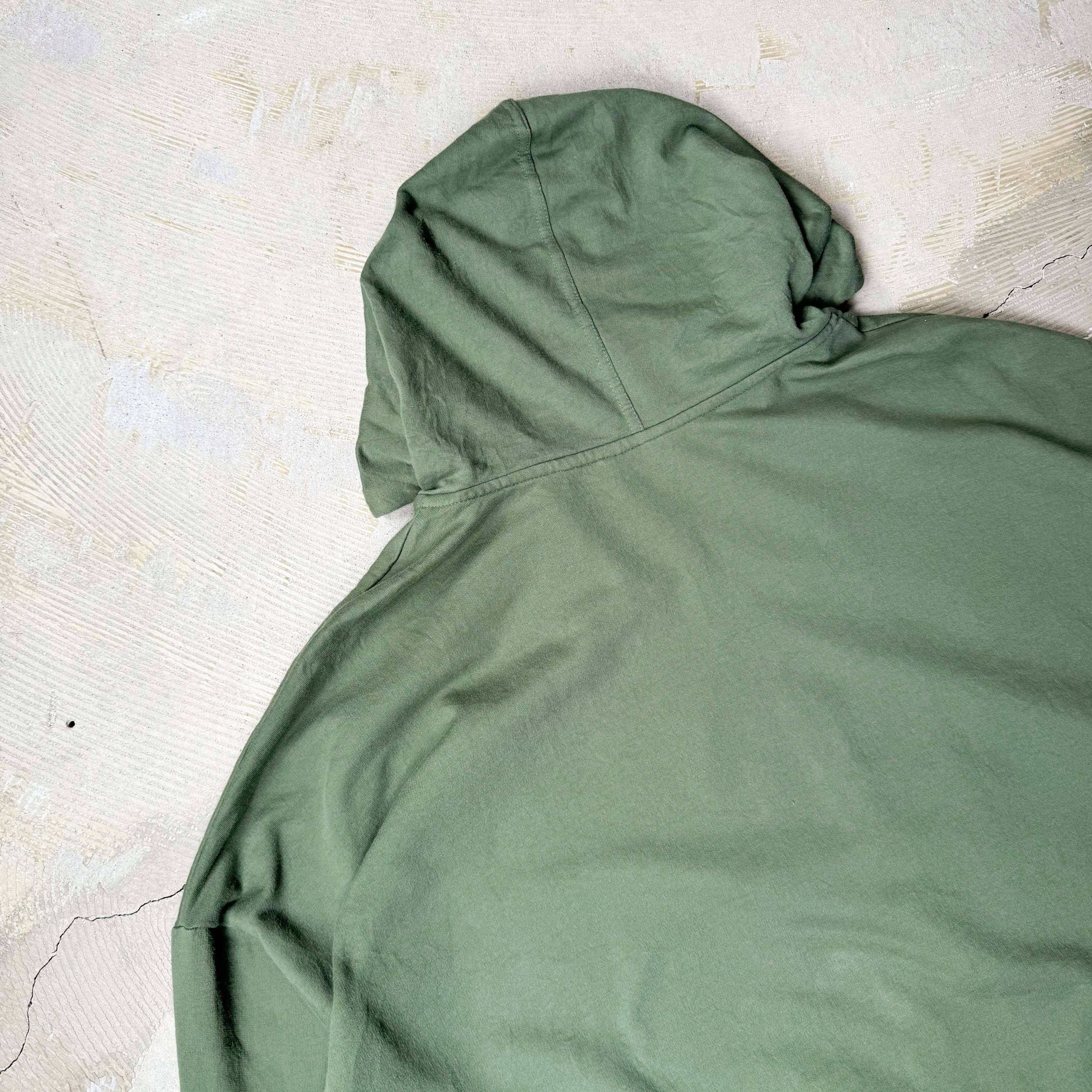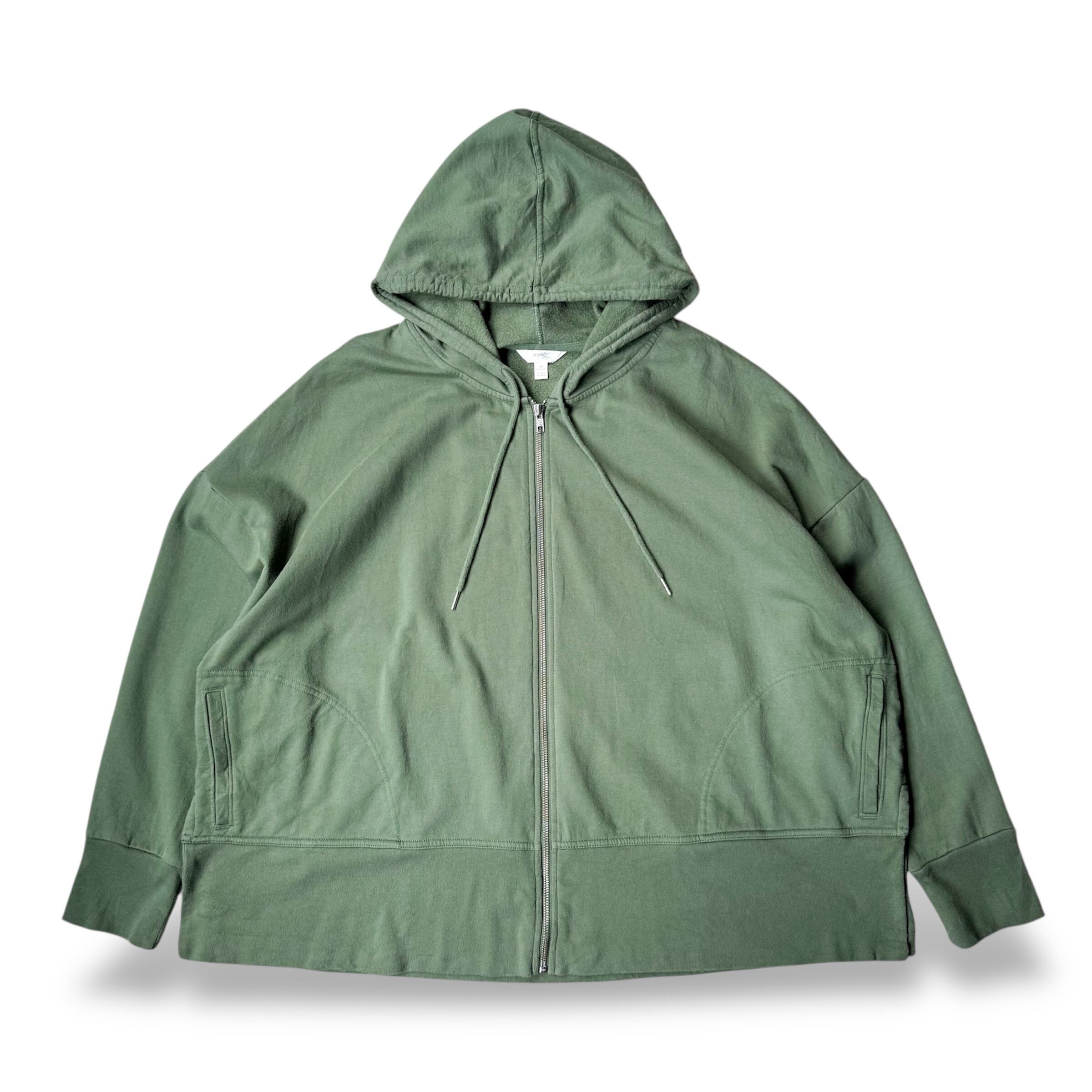 ・深みのあるグリーンカラーが印象的なジップアップパーカー。