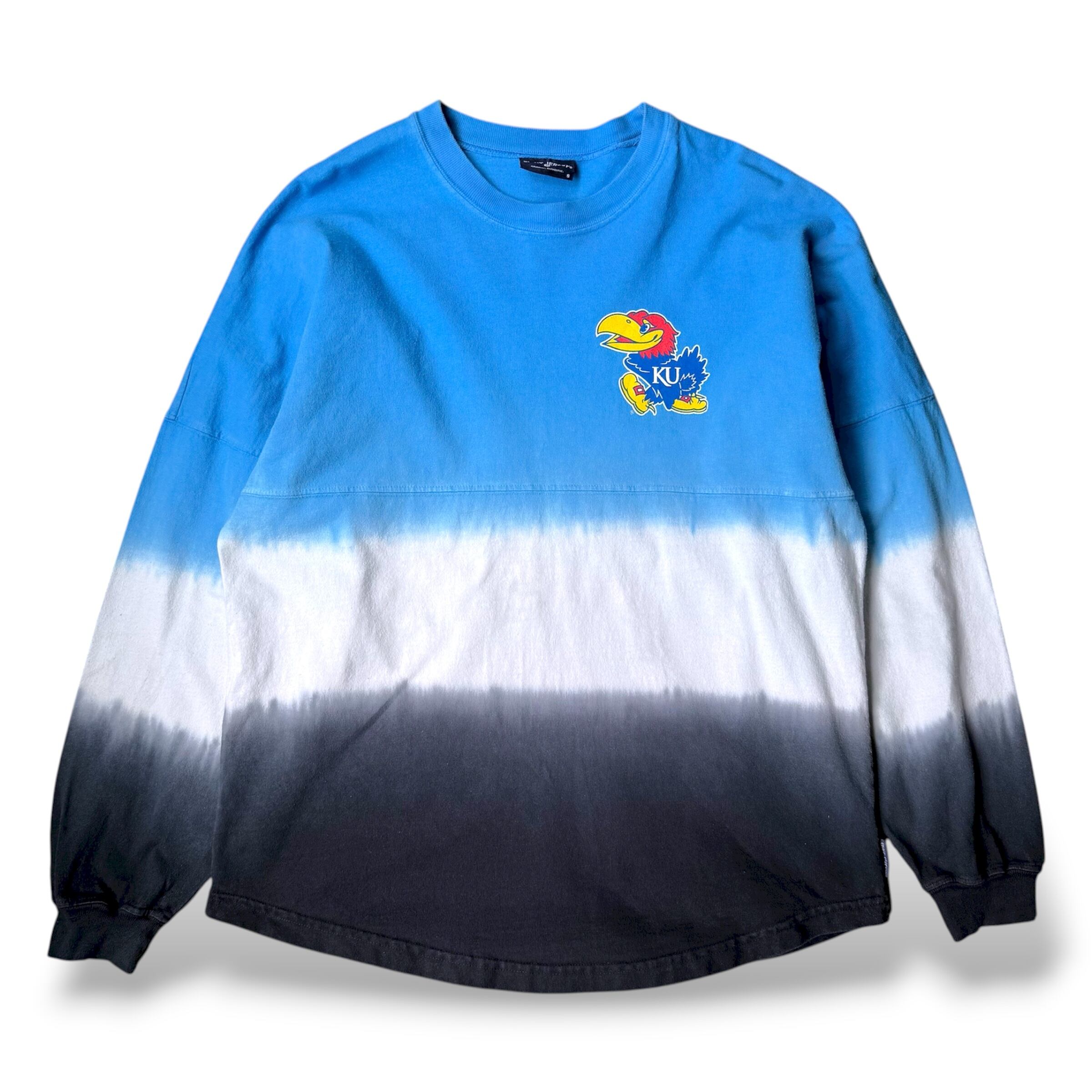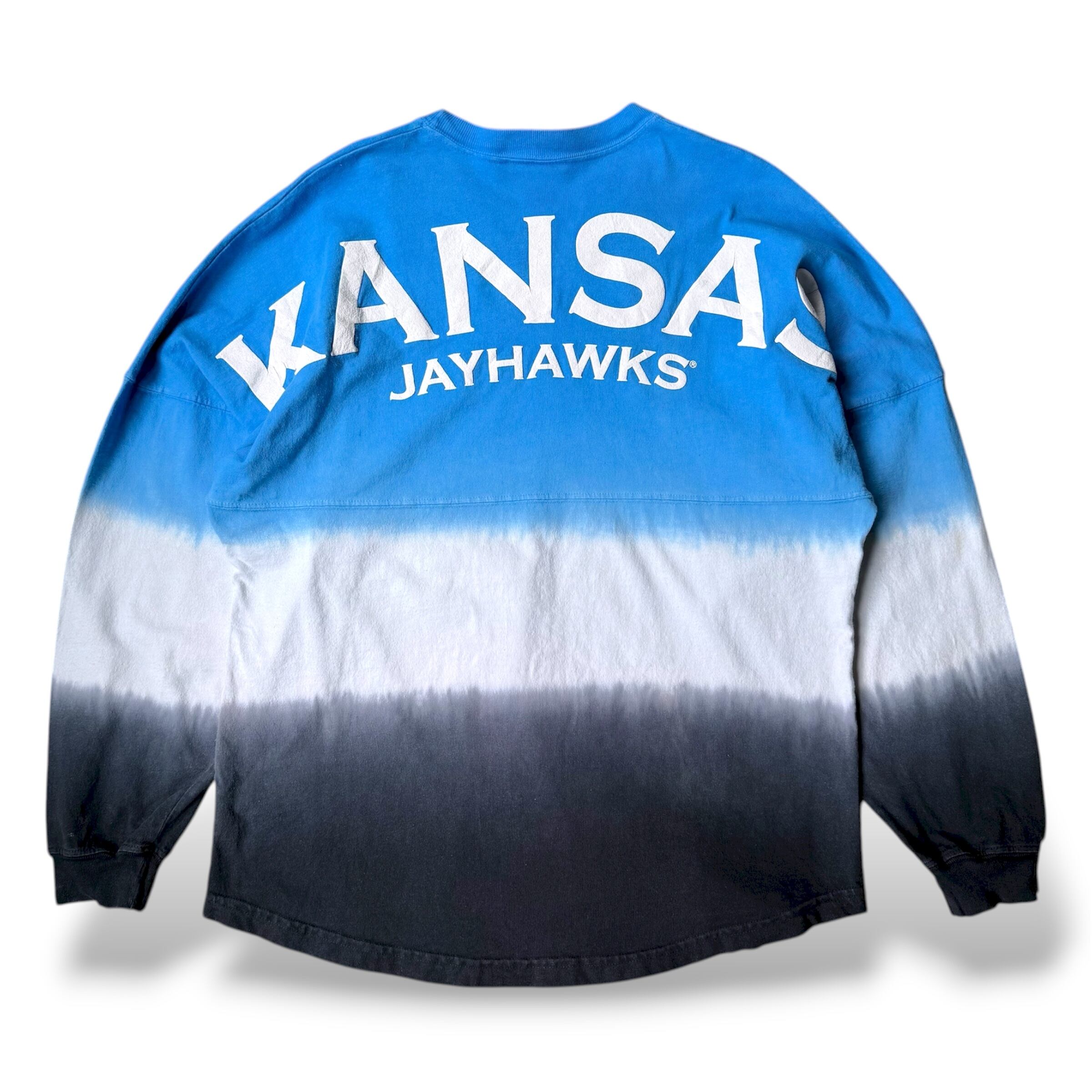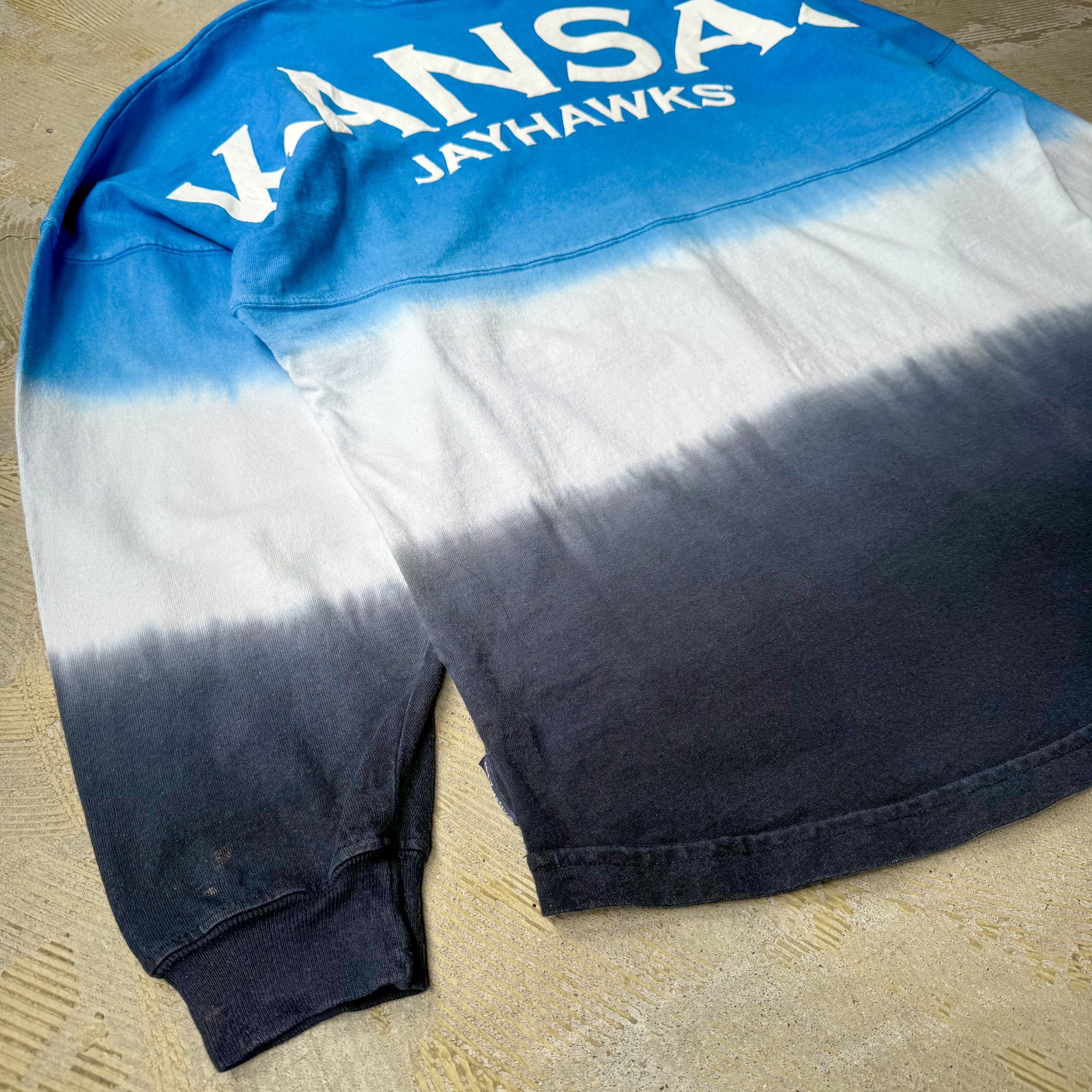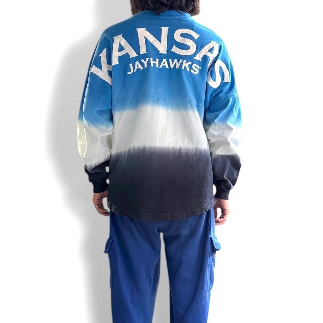 【SPIRIT JERSEY】 "KANSAS JAYHAWKS" FOAM PRINT GRADATION L/S TEE / MADE IN USA / 発泡 プリント 長袖 ロン T シャツ