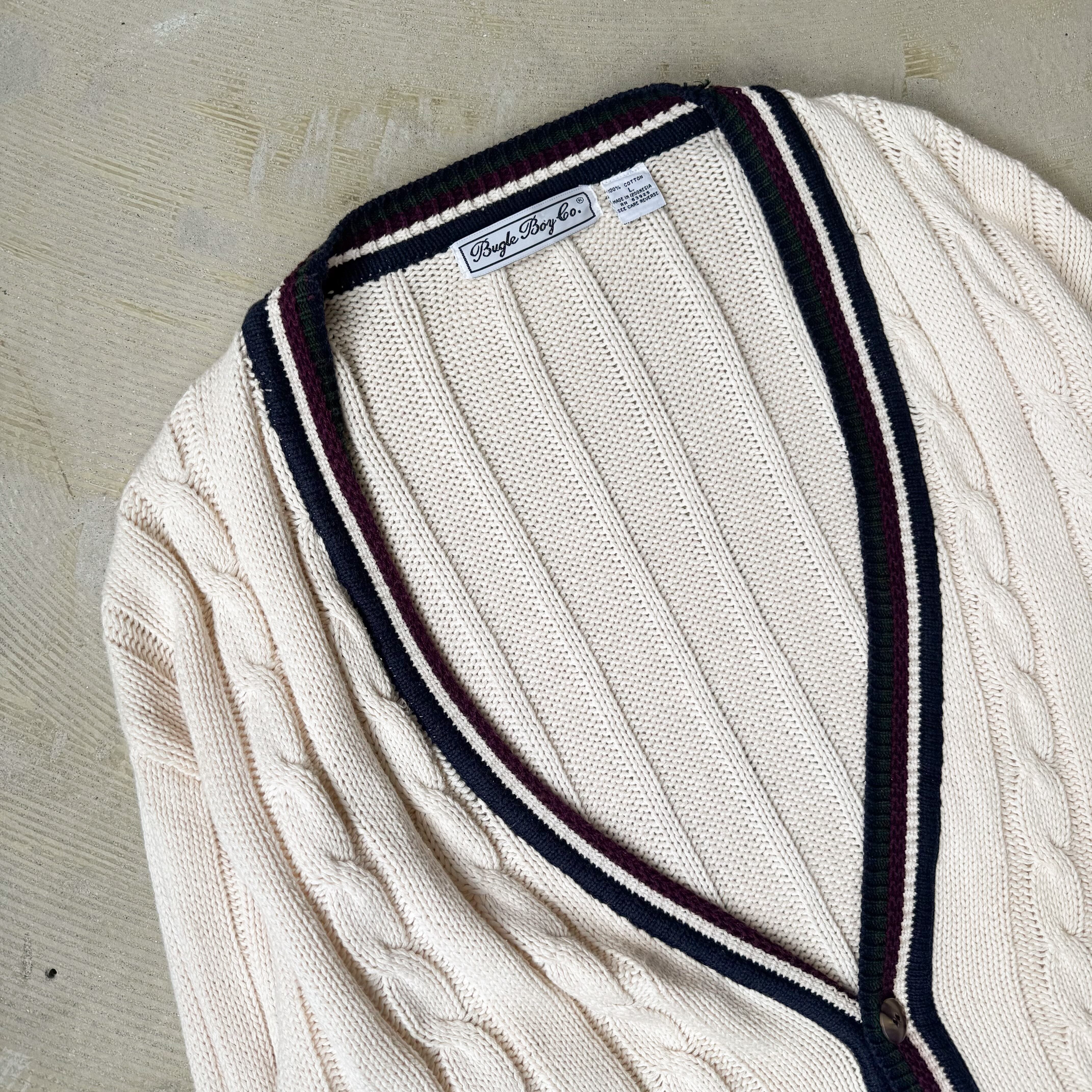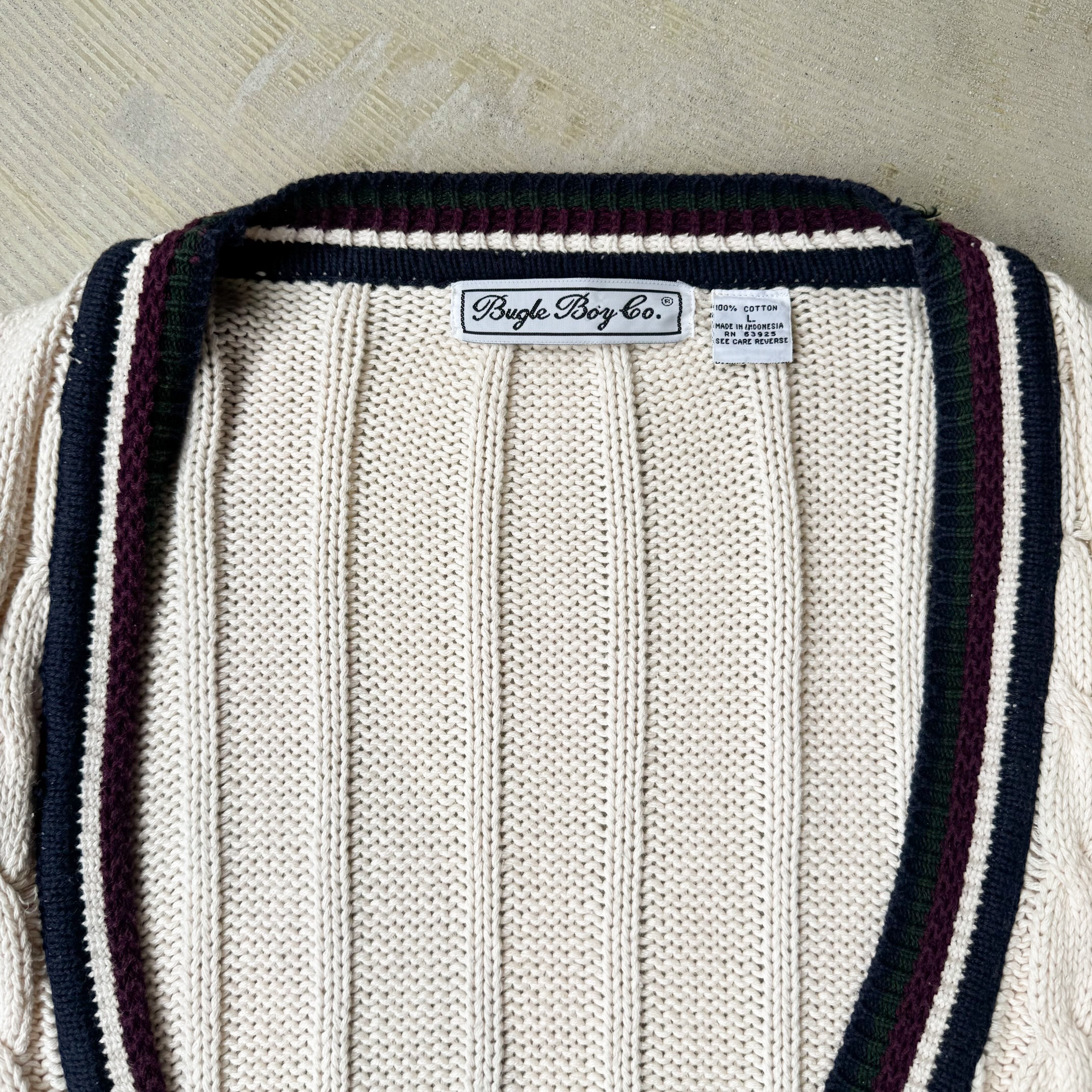 1990's 【BUGLE BOY】VINTAGE SCHOOL LINE KNIT CARDIGAN / 90年代 ビューグル ボーイ ニット カーディガン ビンテージ
