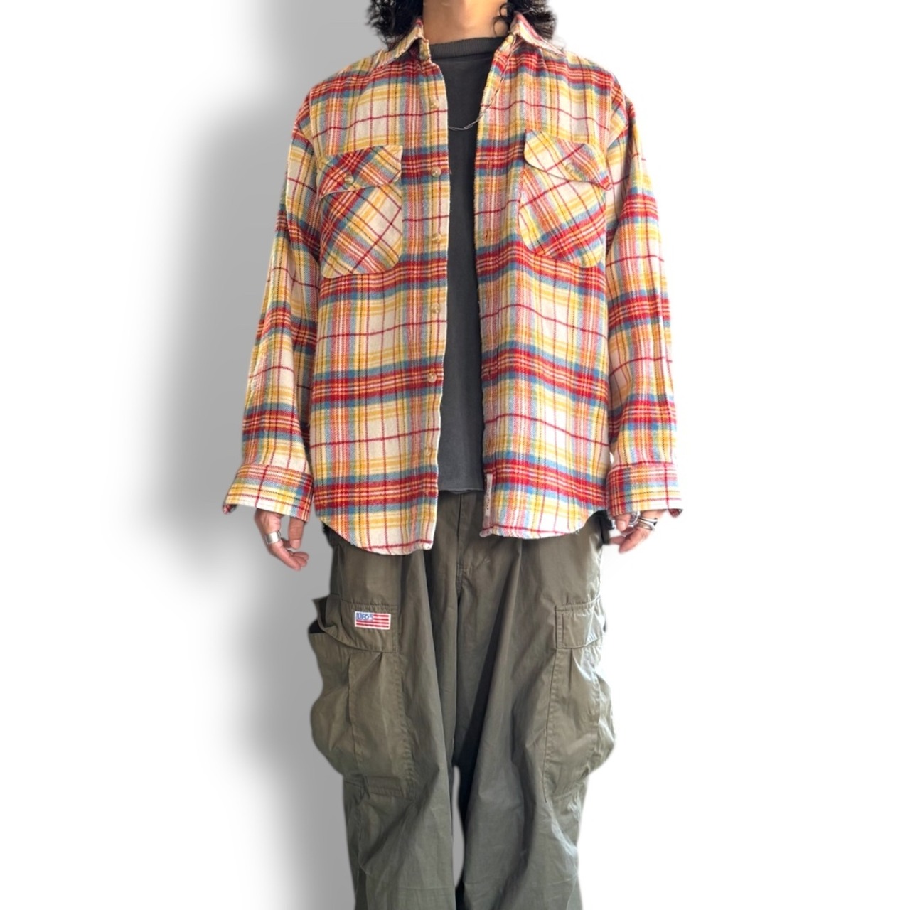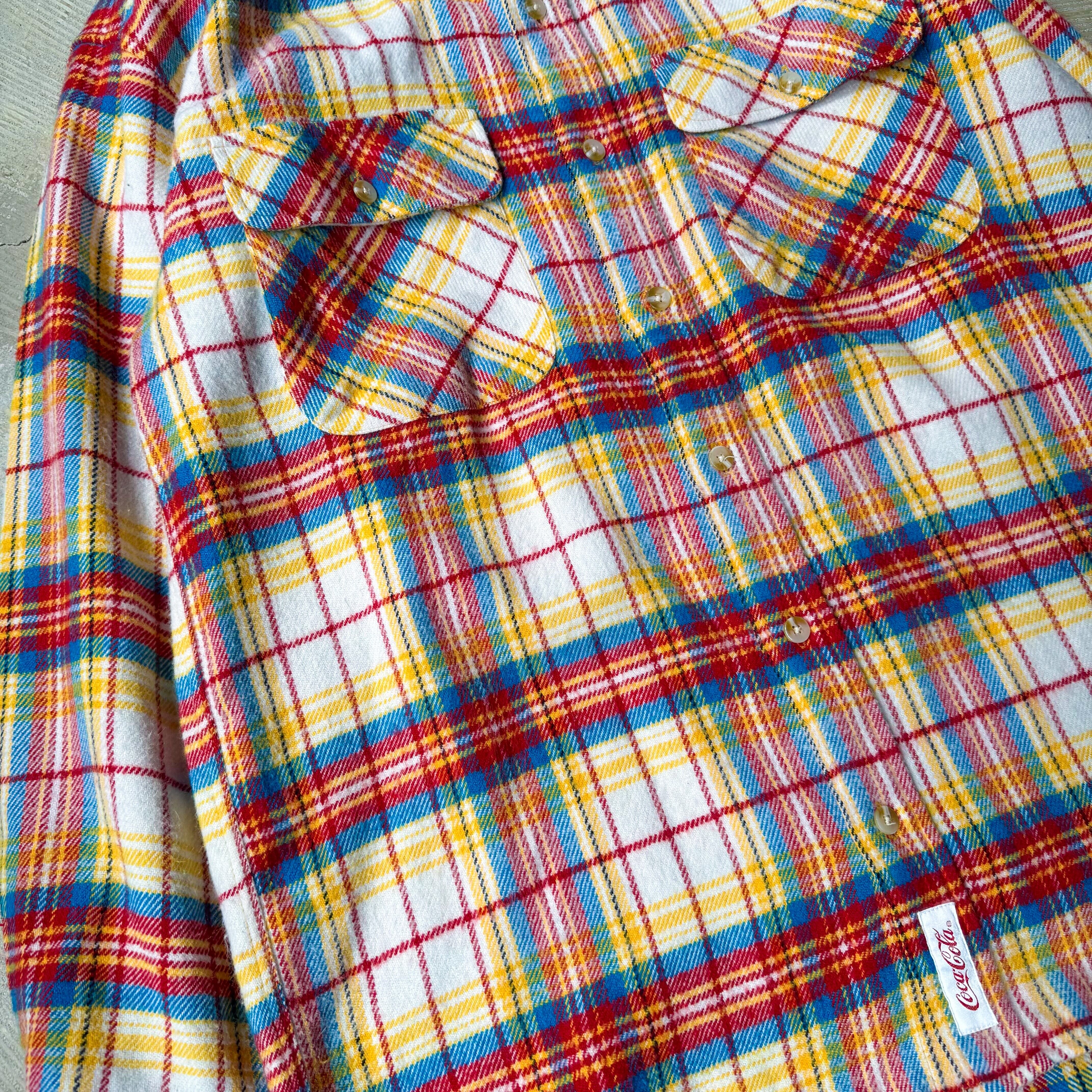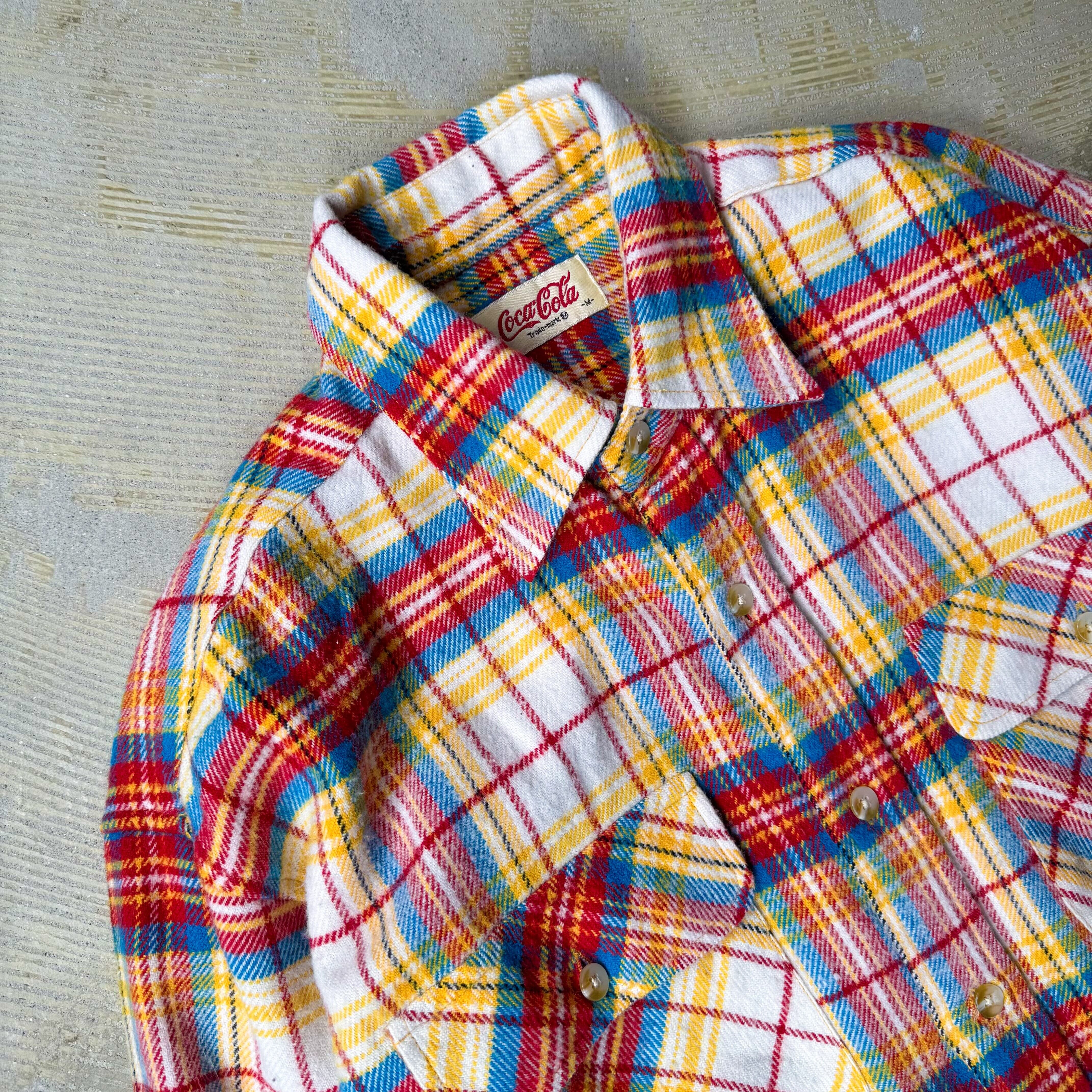 1990's 【Coca Cola】 VINTAGE MADRAS CHECK PATTERN L/S SHIRT / 90年代 マドラス チェック 柄 長袖 シャツ