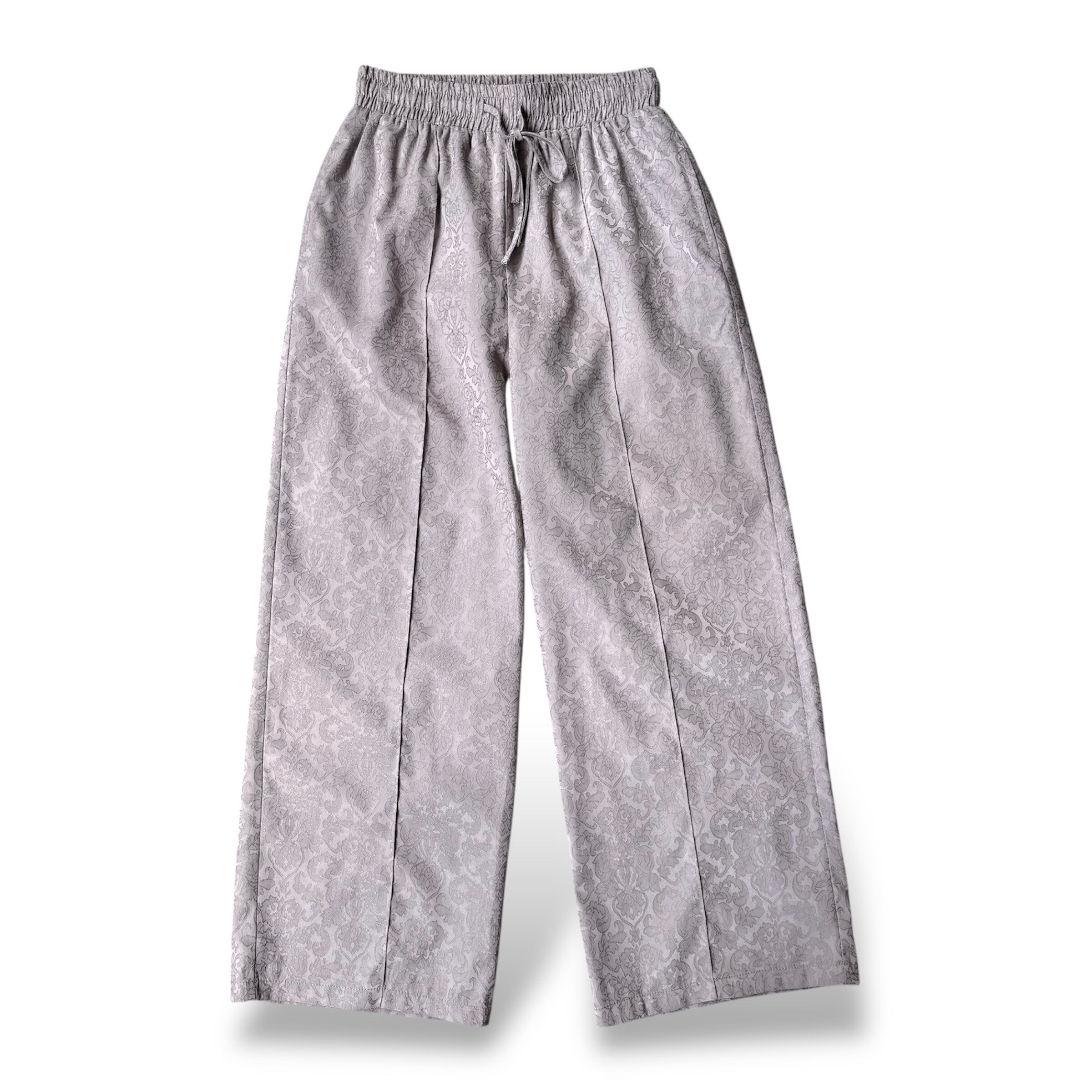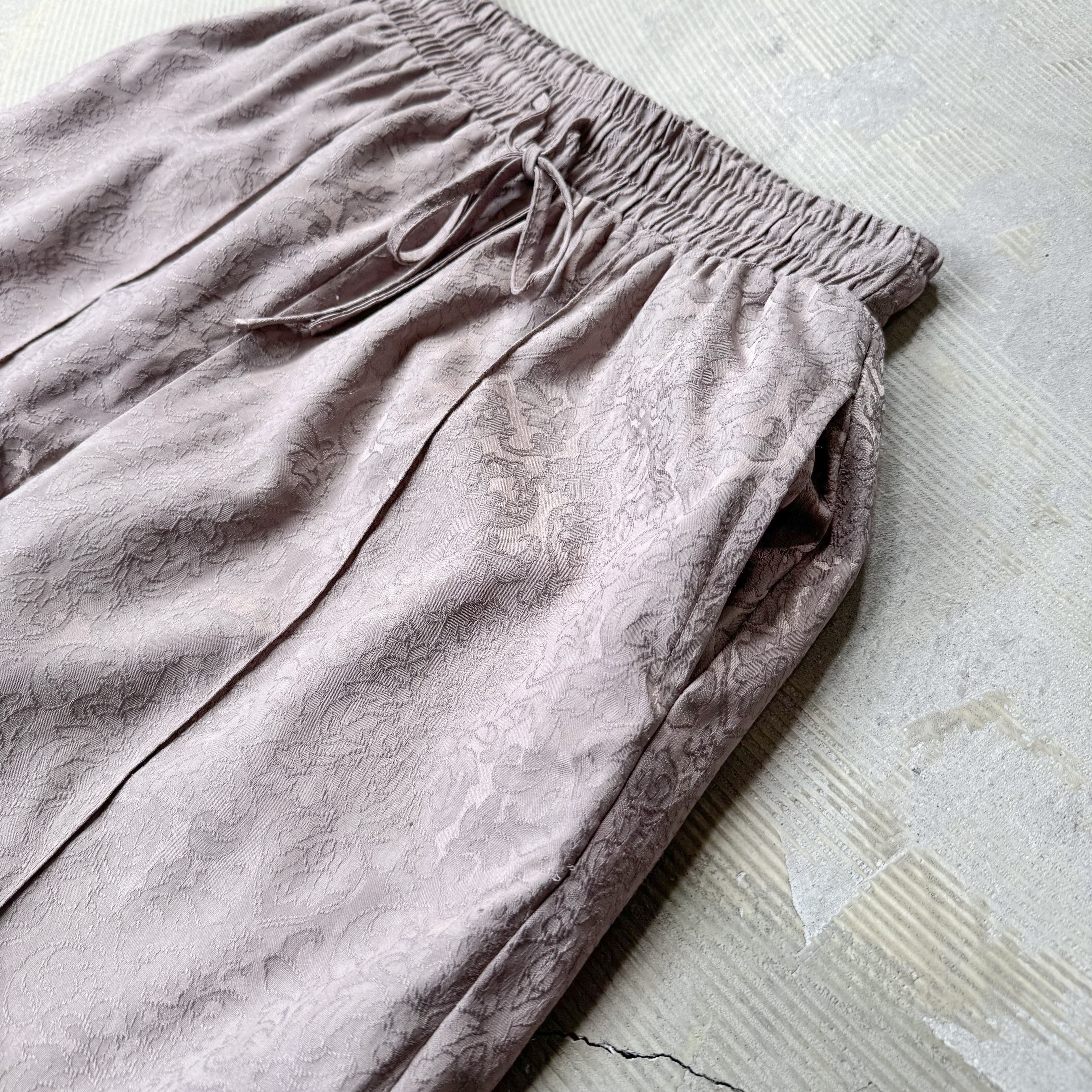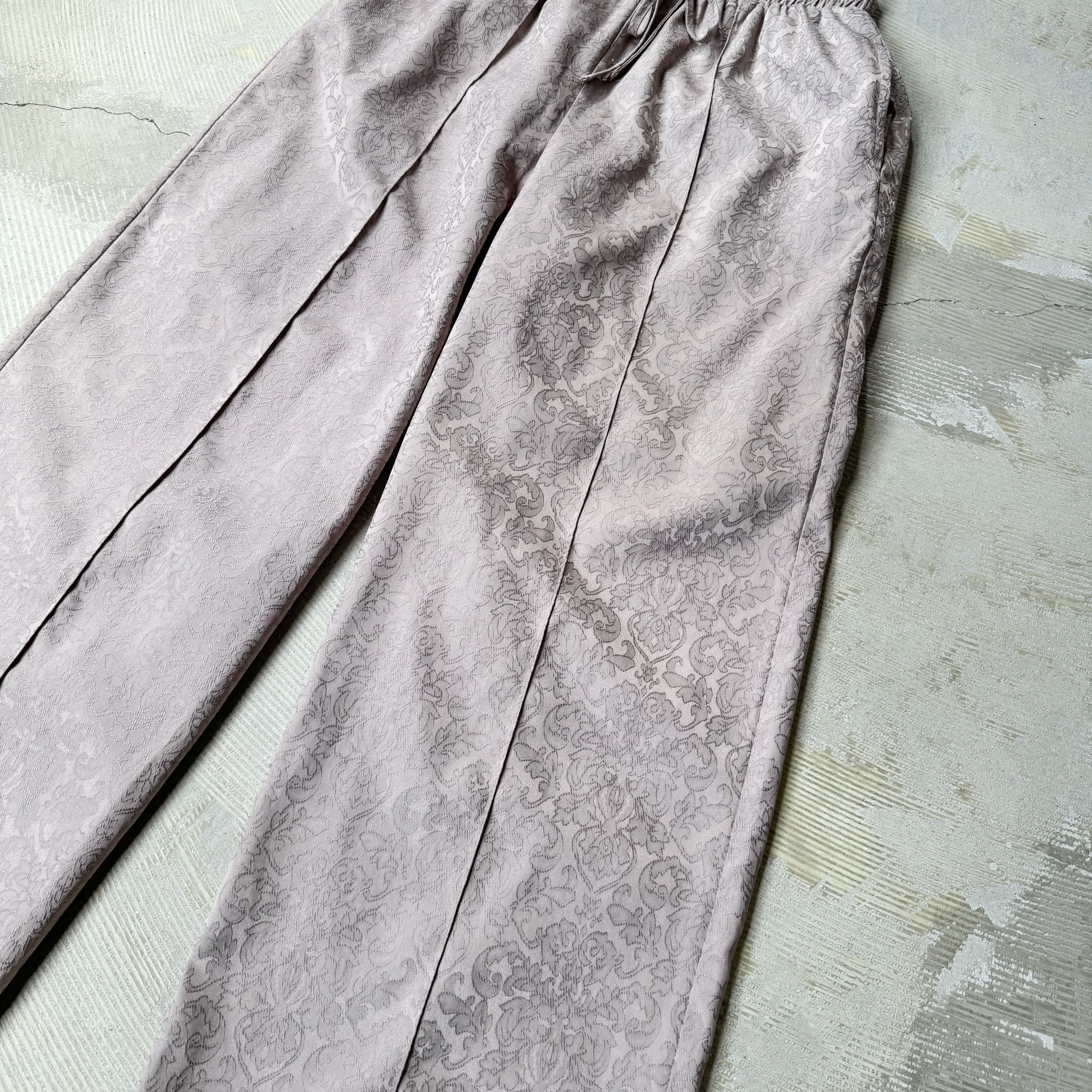 このパンツは、柄の主張を抑えながらも、“視覚的な揺らぎ”と“静かな装飾性”を持つ一着。