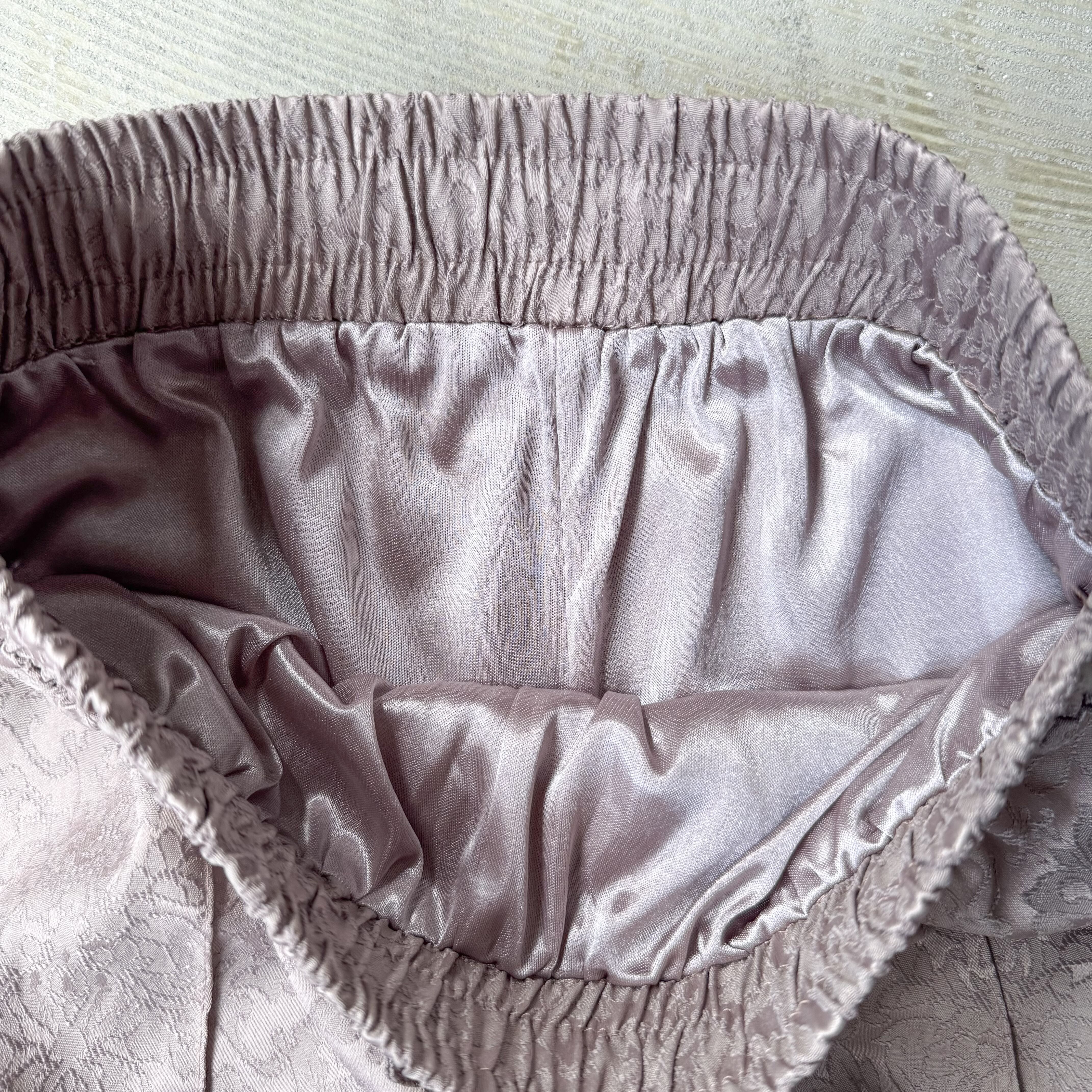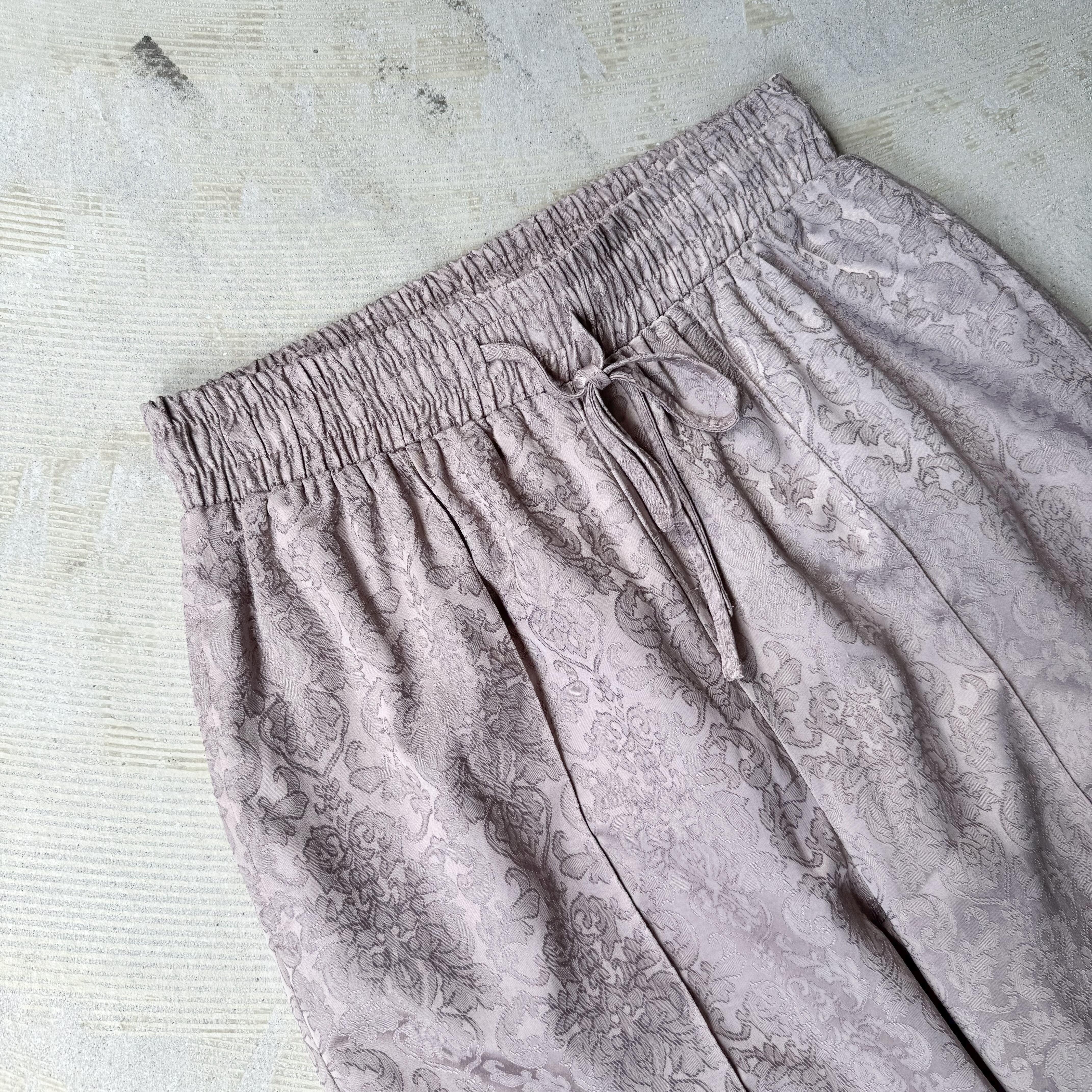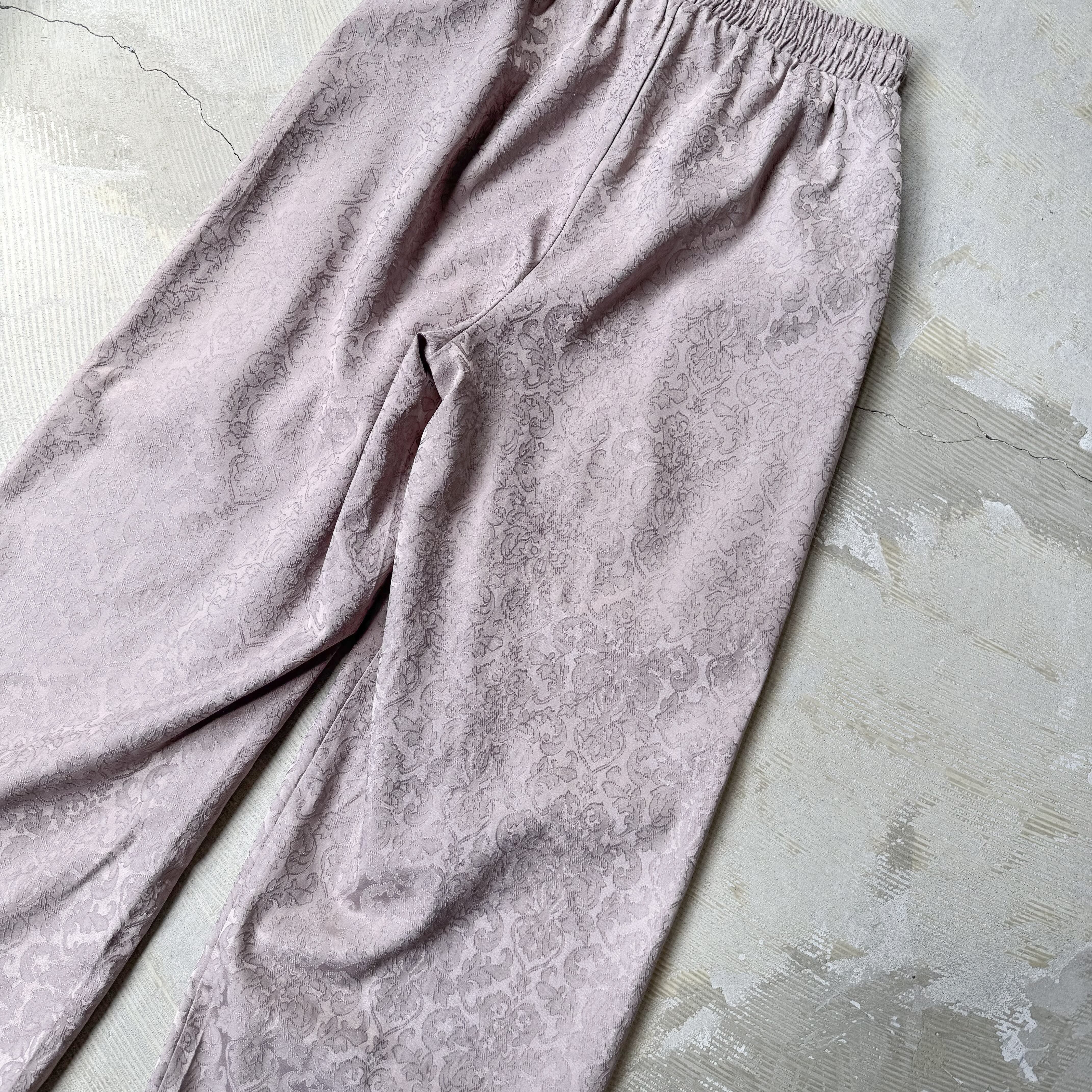 このパンツは、柄の主張を抑えながらも、“視覚的な揺らぎ”と“静かな装飾性”を持つ一着。